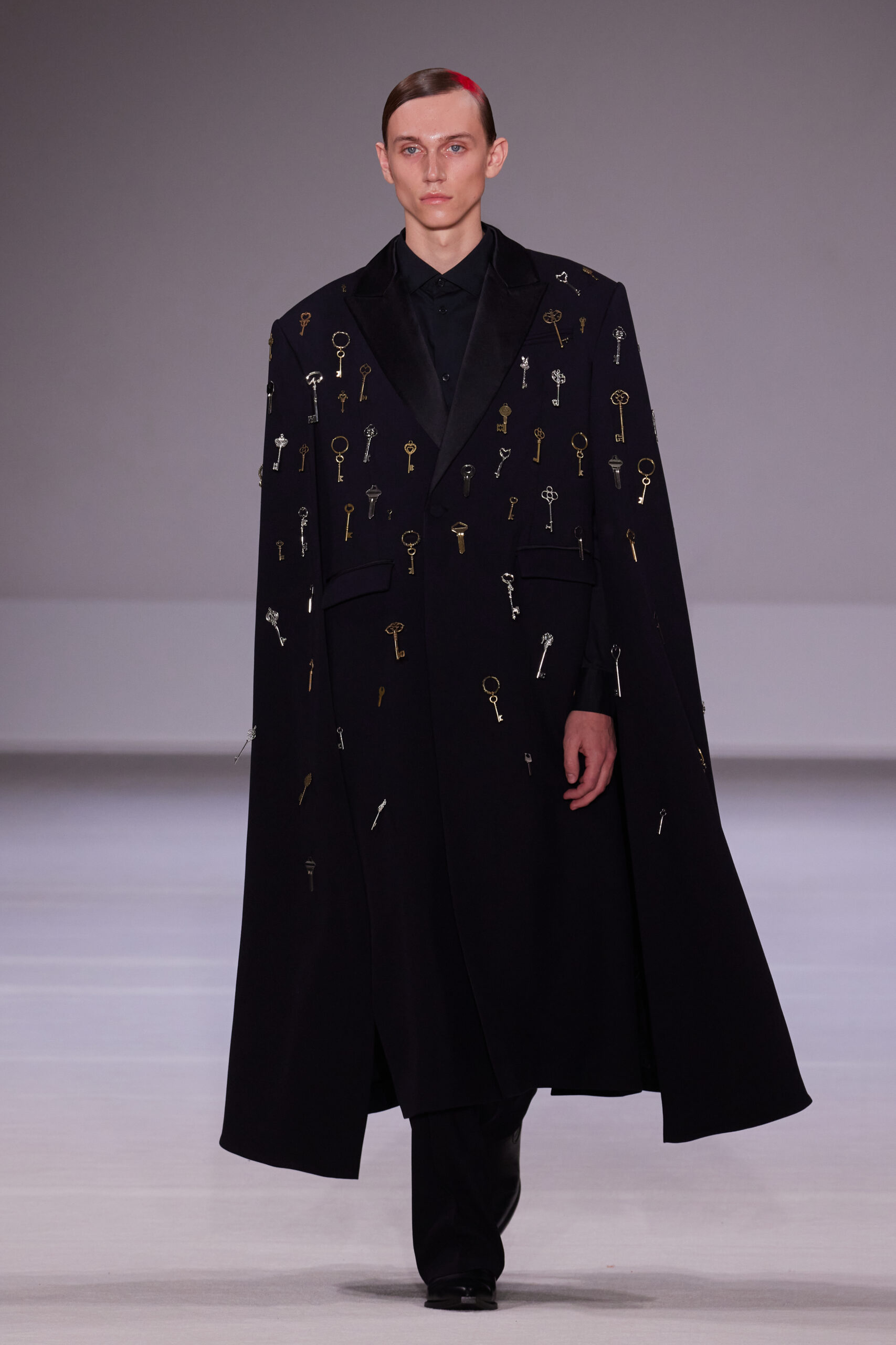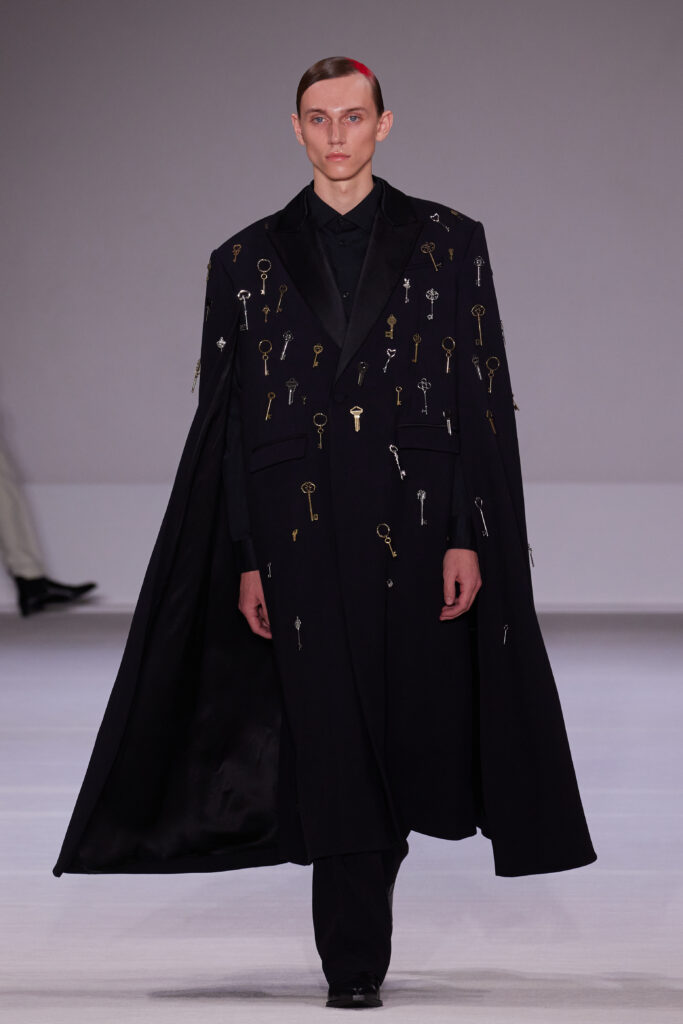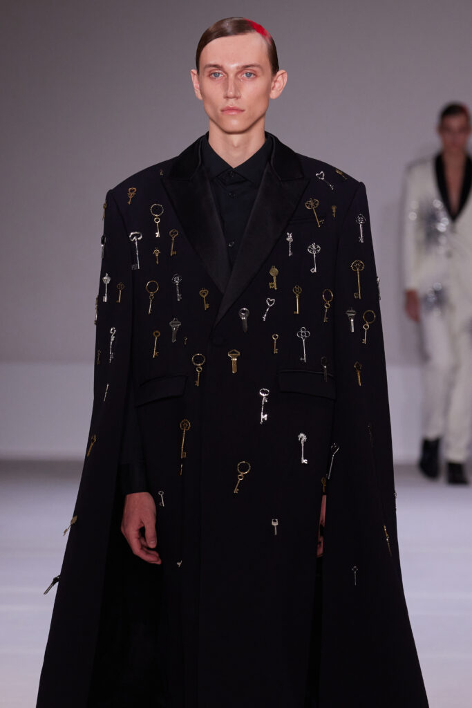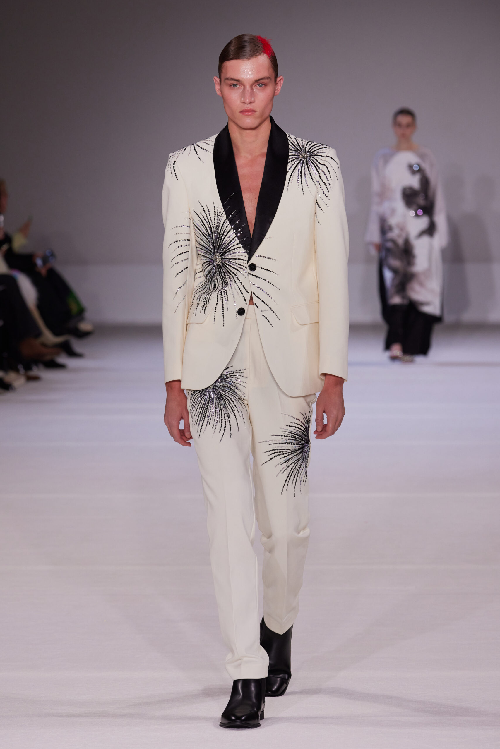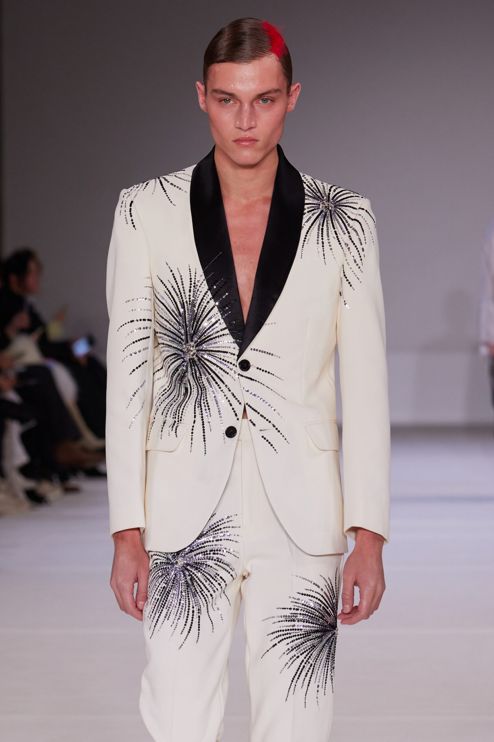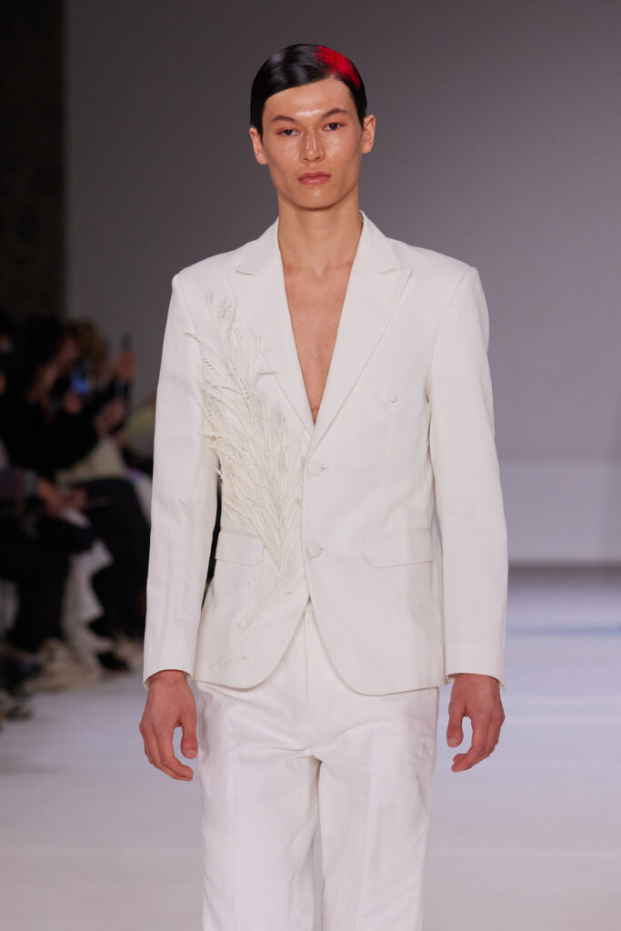 La conception scénique du défilé, orchestrée par l’équipe de FOCUS à New York, a vu des effets d’éclairage évoquant l’évolution des flammes, de l’aube au crépuscule, inspirés par les lever et coucher de soleil à Angkor Wat et sur l’île de Sabah en Malaisie. La musique, arrangée par NONE SOUNDS à Paris, a complété cette atmosphère féerique, plongeant les spectateurs dans une expérience purificatrice, comme un renouveau émanant de l’énergie du feu.
