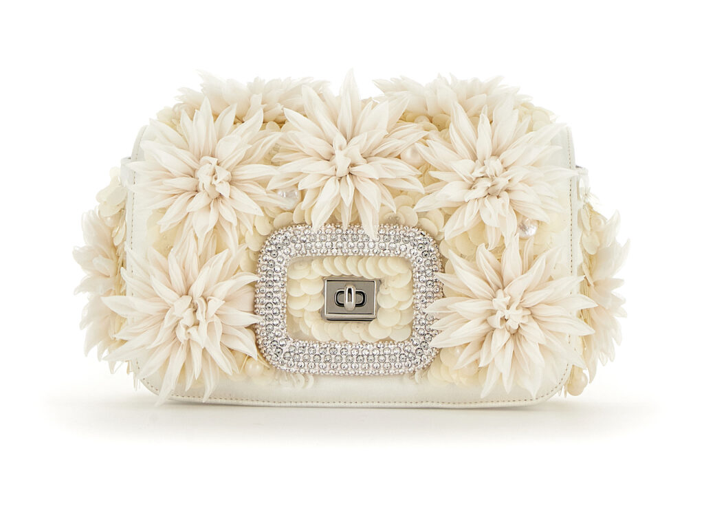 Inspiré par un jardin classique d’un autre monde, regorgeant de fleurs venues des quatre coins du globe, Felloni réfléchit aux personnalités et particularités de chaque variété, ancrées par l’architecture fluide du sac Viv’ Choc. La broderie à la main, triomphante, fait écho au toucher délicat de Monsieur Vivier, qui a su apporter la fantaisie de la Haute Couture dans le monde des accessoires tout au long de la seconde moitié du XXe siècle.