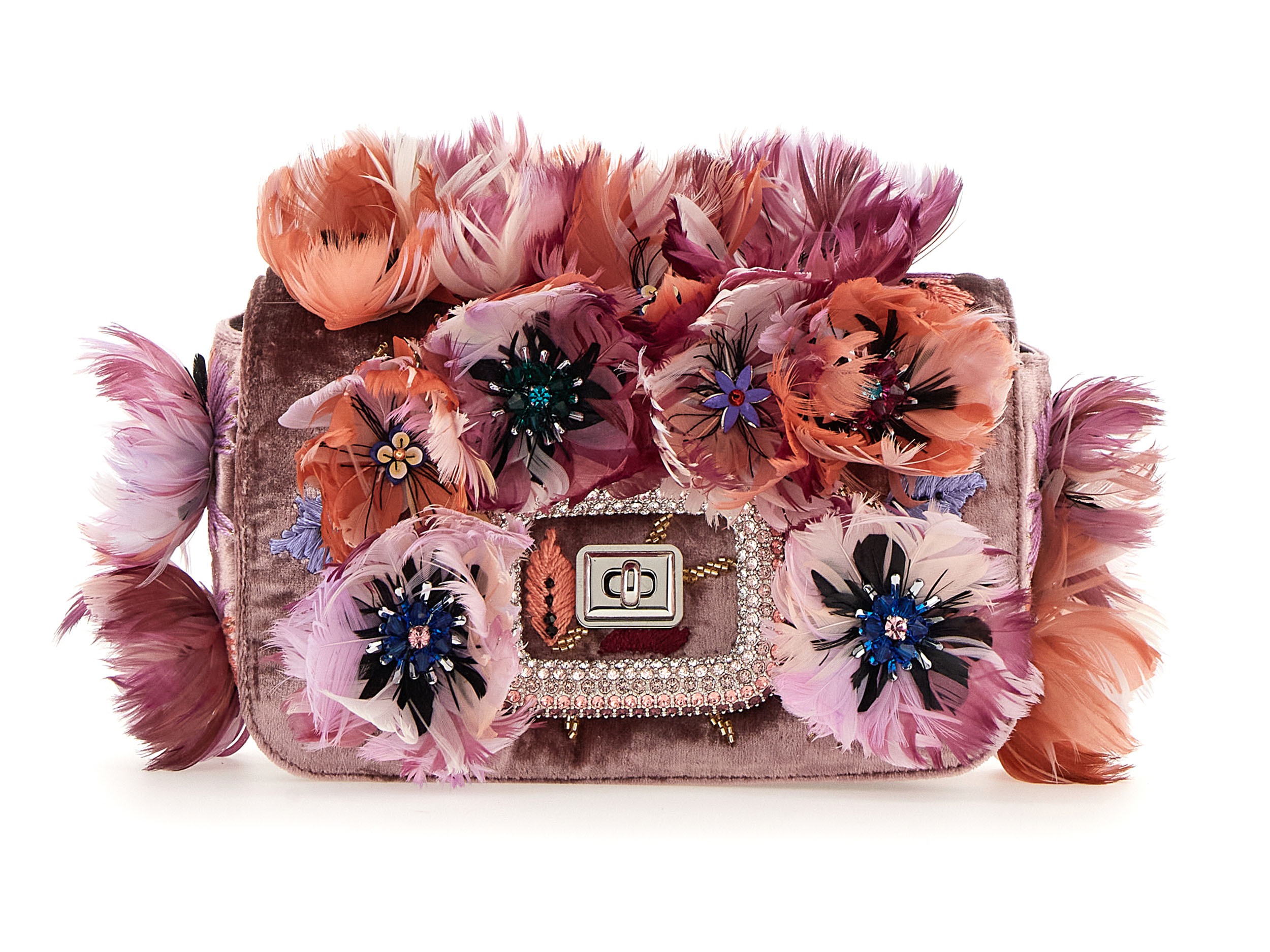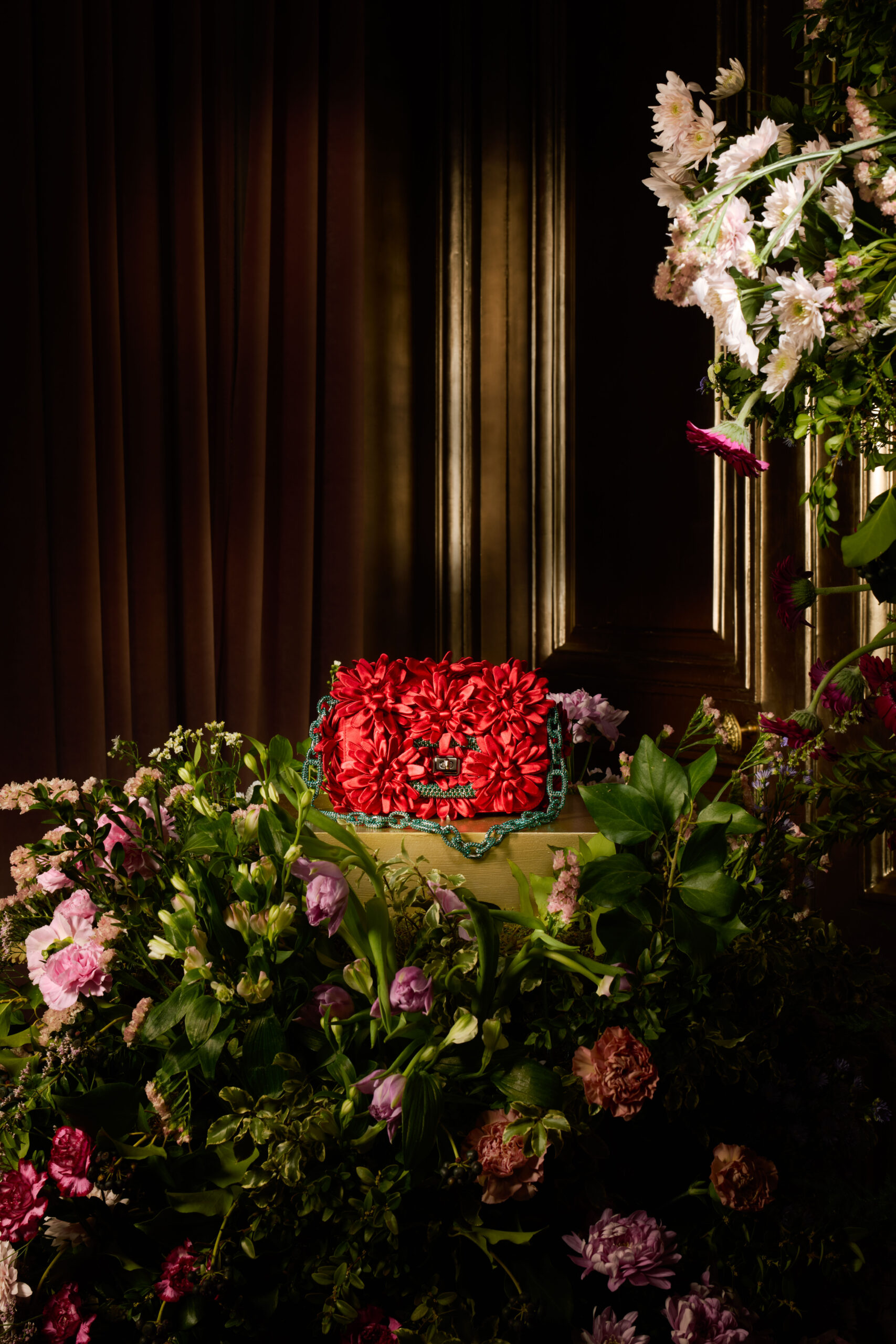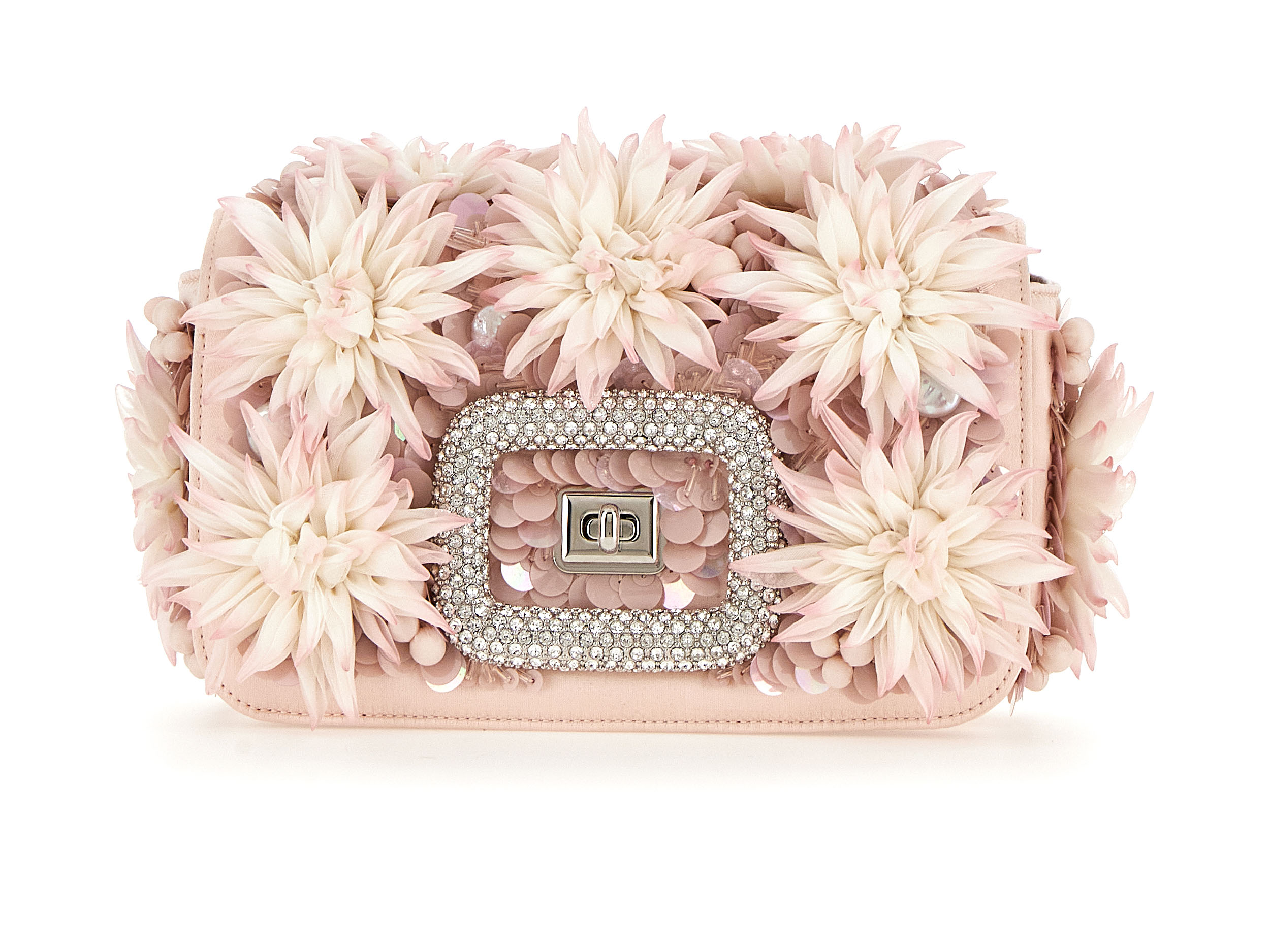 Inspiré par un jardin classique d’un autre monde, regorgeant de fleurs venues des quatre coins du globe, Felloni réfléchit aux personnalités et particularités de chaque variété, ancrées par l’architecture fluide du sac Viv’ Choc. La broderie à la main, triomphante, fait écho au toucher délicat de Monsieur Vivier, qui a su apporter la fantaisie de la Haute Couture dans le monde des accessoires tout au long de la seconde moitié du XXe siècle.