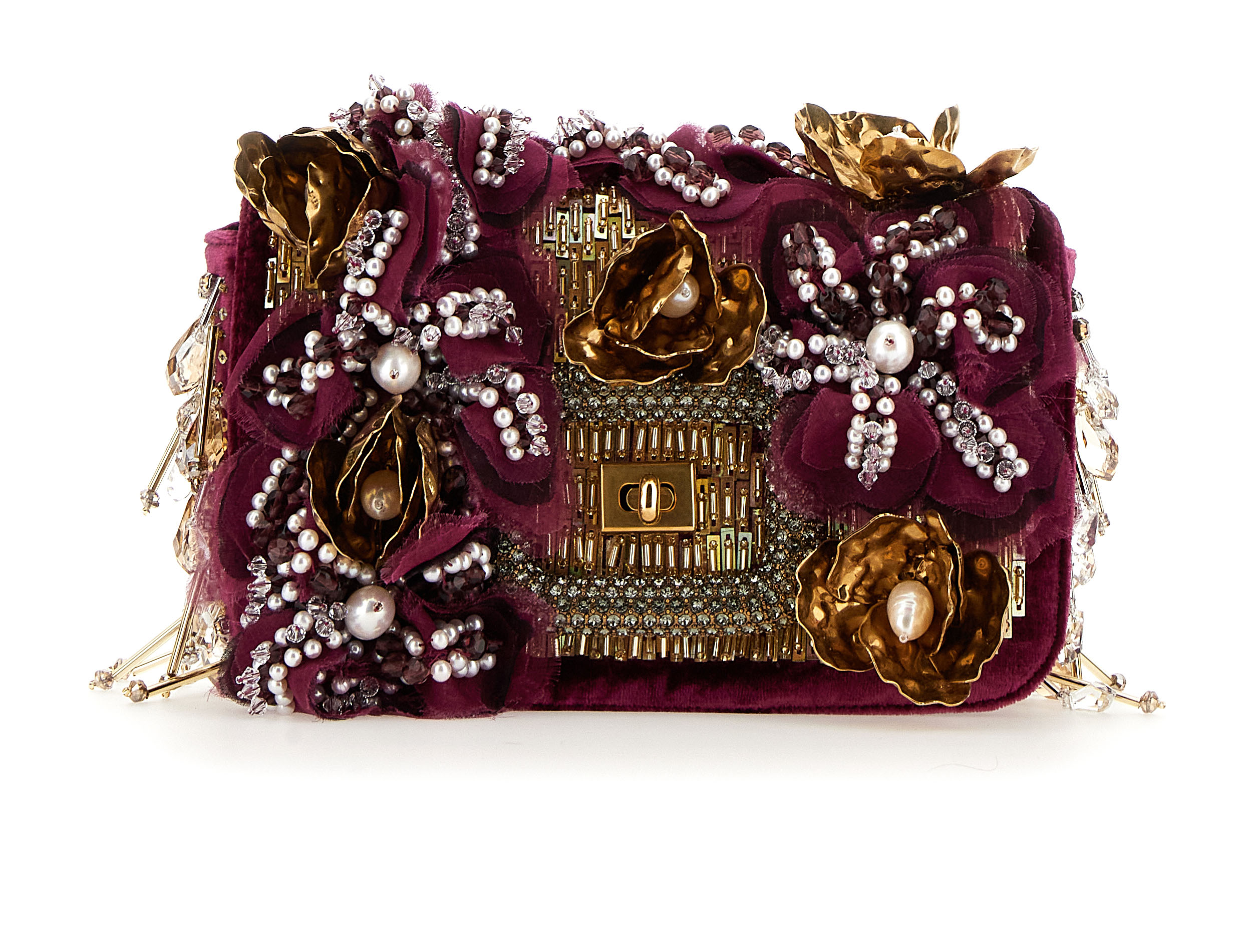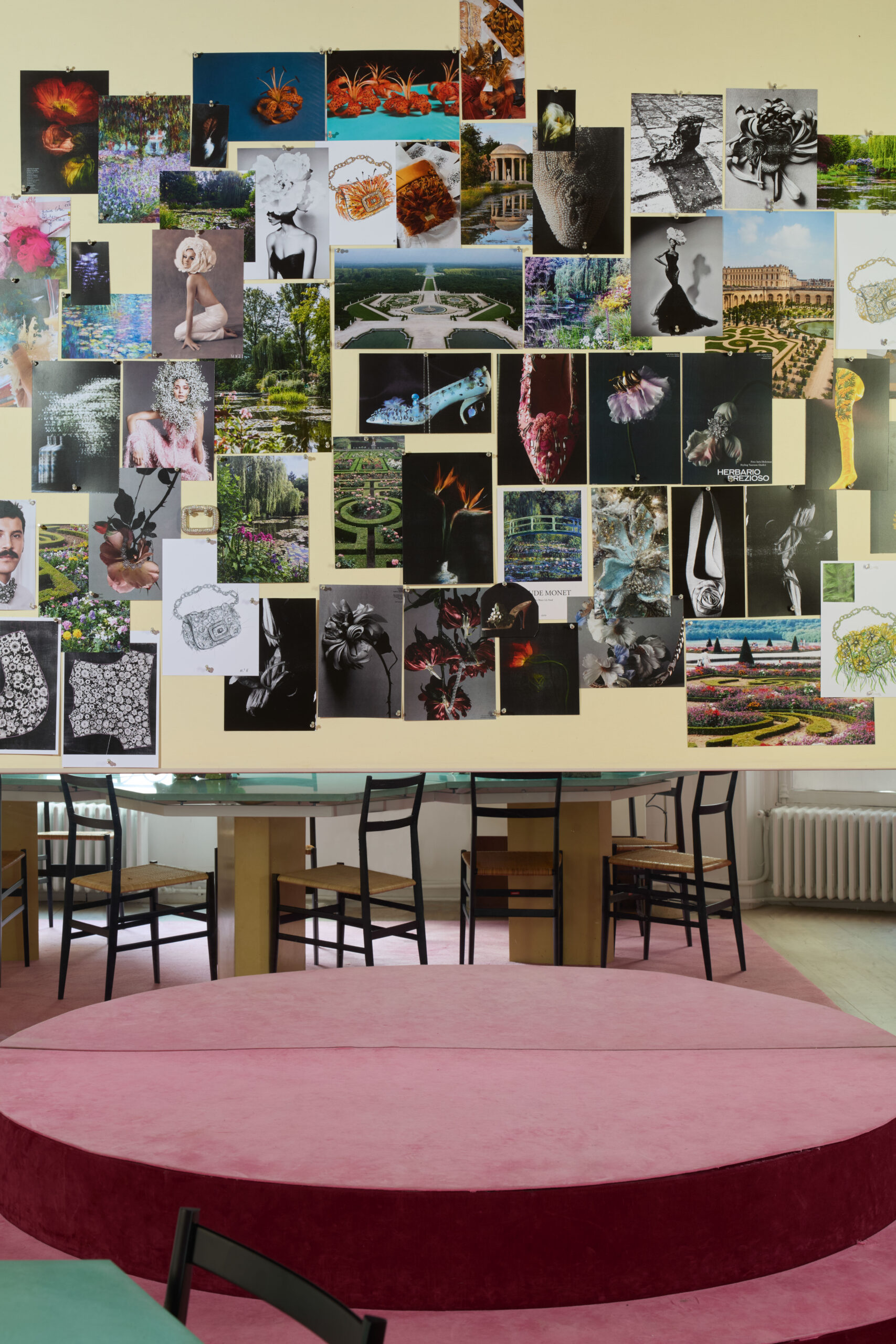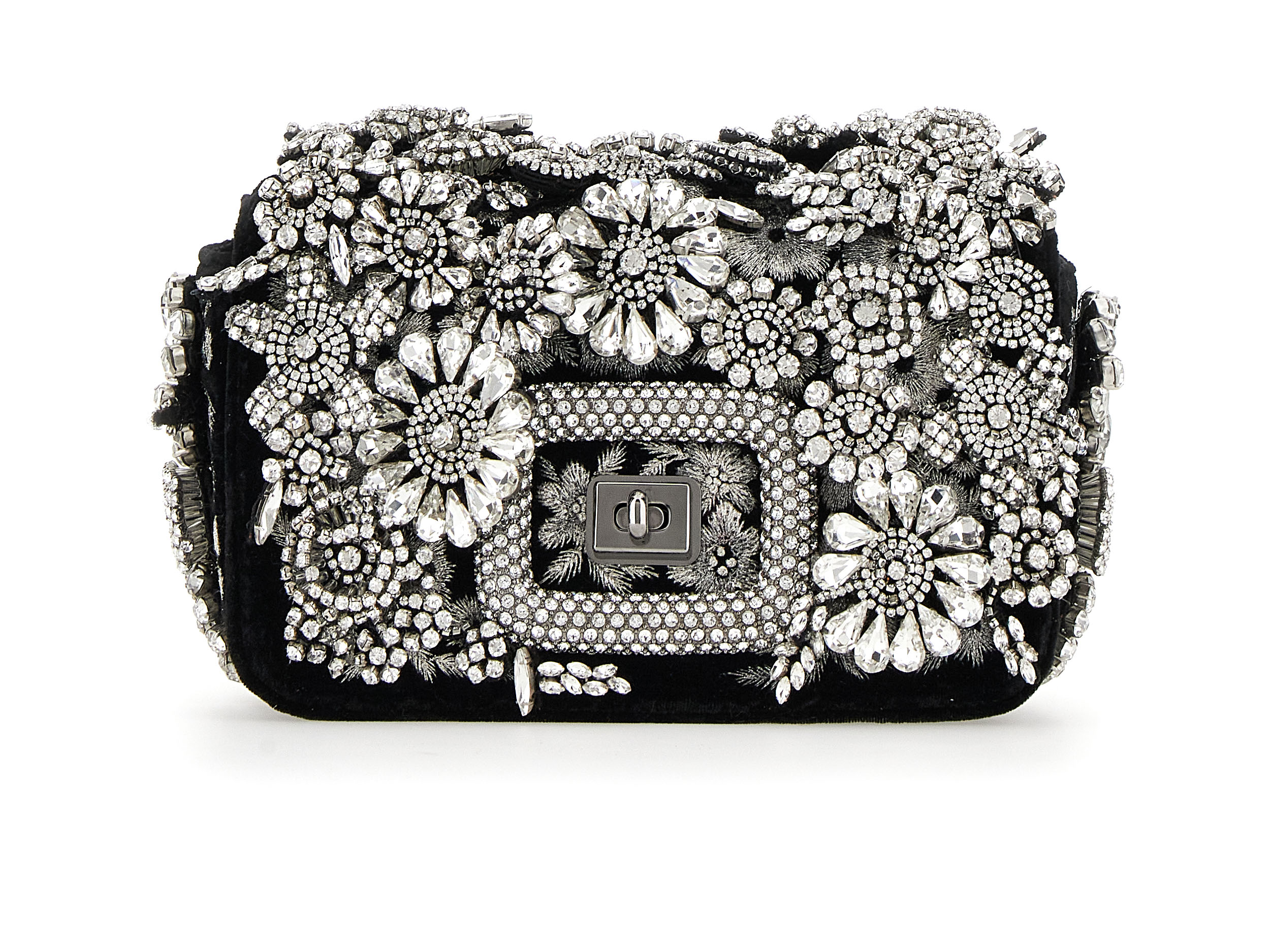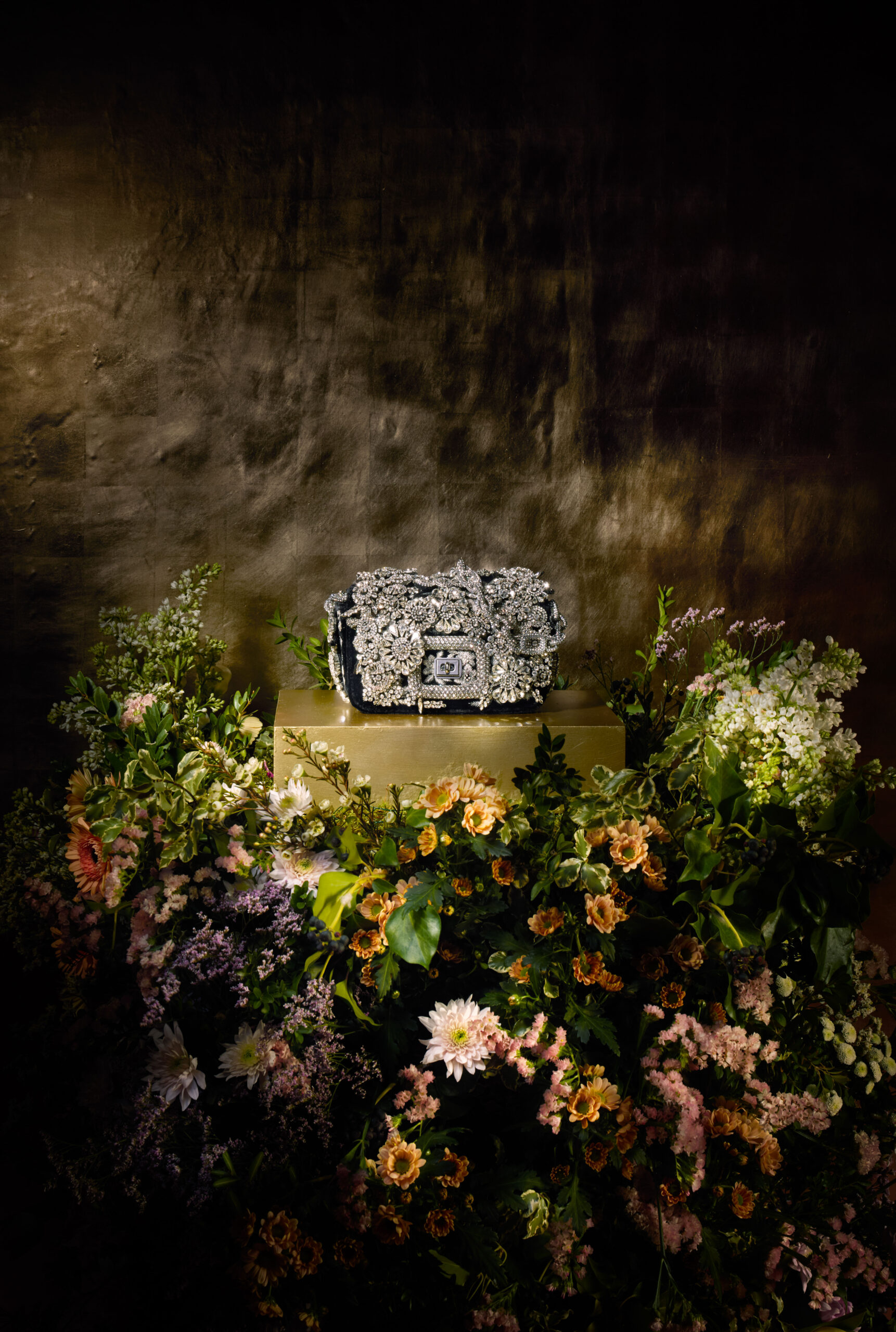 Inspiré par un jardin classique d’un autre monde, regorgeant de fleurs venues des quatre coins du globe, Felloni réfléchit aux personnalités et particularités de chaque variété, ancrées par l’architecture fluide du sac Viv’ Choc. La broderie à la main, triomphante, fait écho au toucher délicat de Monsieur Vivier, qui a su apporter la fantaisie de la Haute Couture dans le monde des accessoires tout au long de la seconde moitié du XXe siècle.