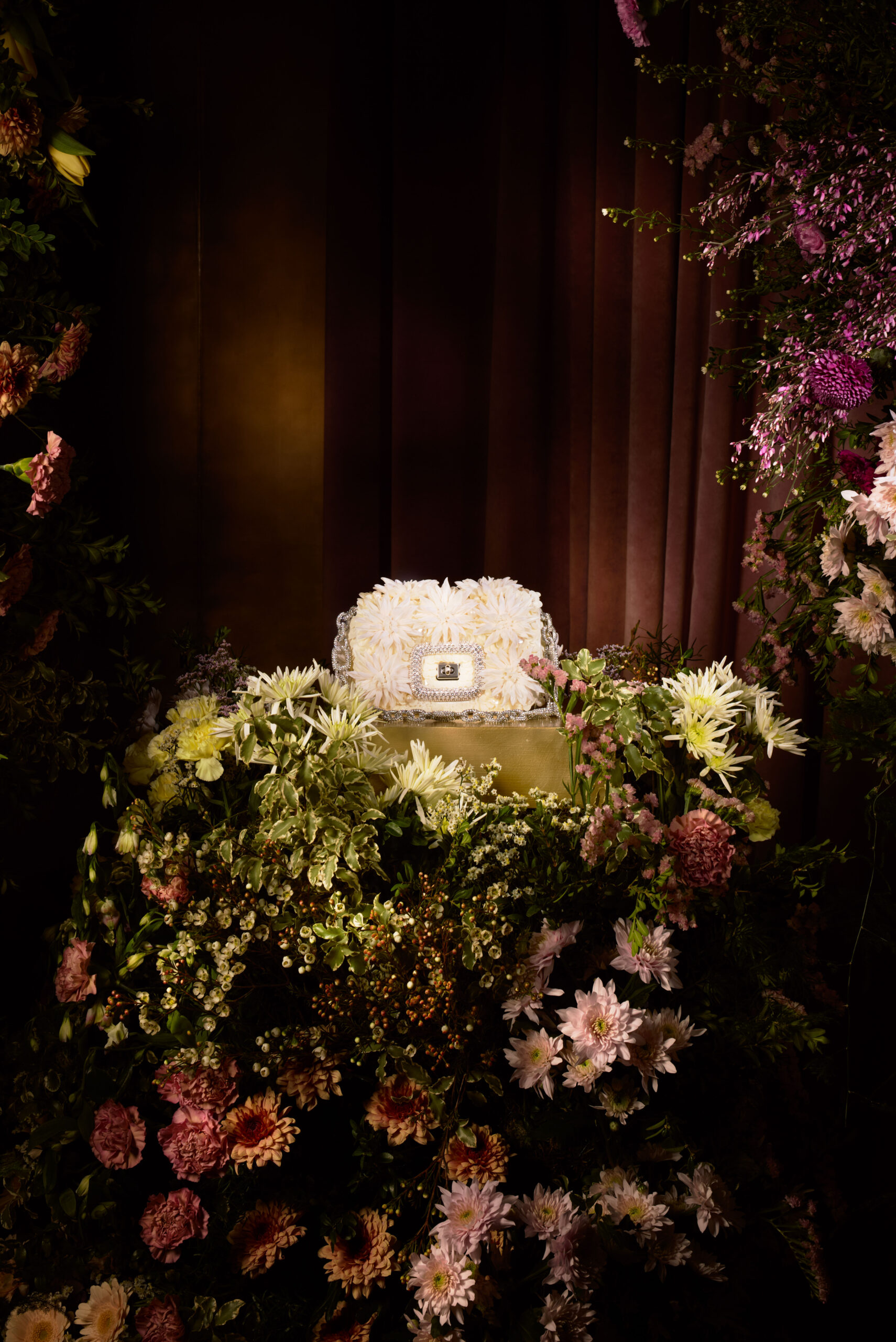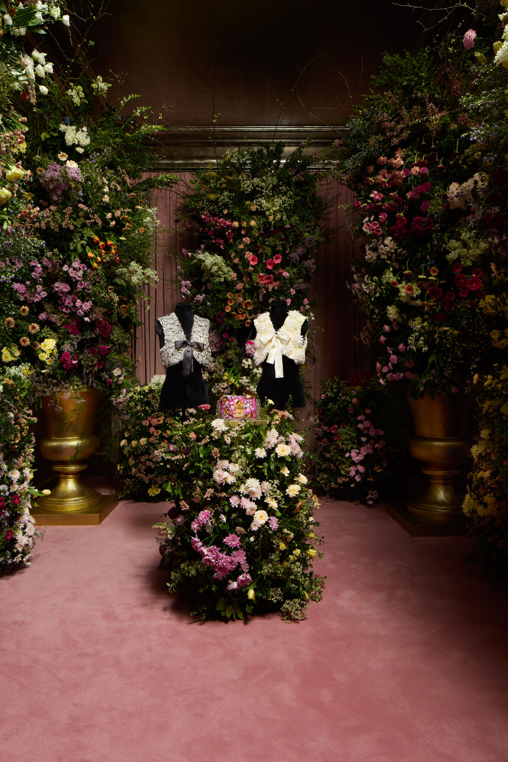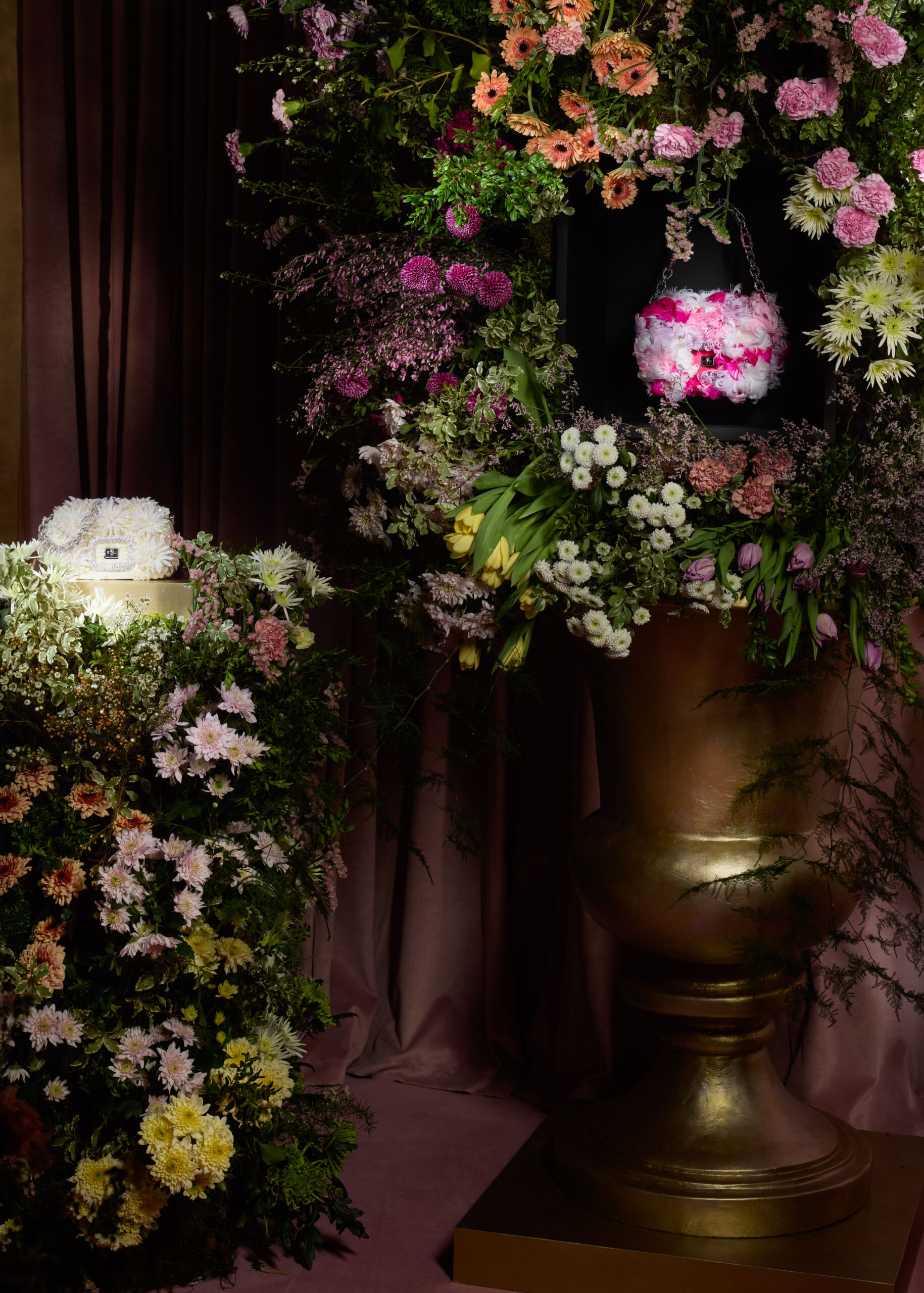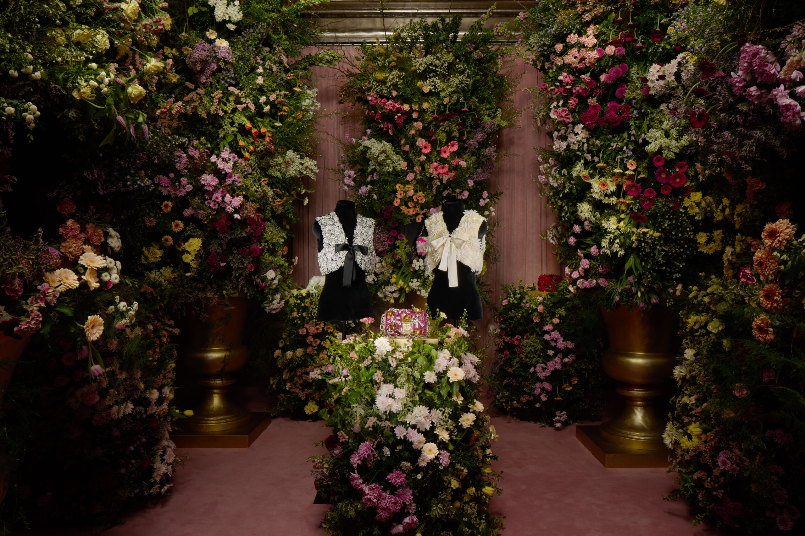Au cœur de la prestigieuse rue du Faubourg Saint-Honoré à Paris, la Salle d’Argent de la boutique Roger Vivier, enveloppée dans ses mythiques murs argentés, s’anime une nouvelle fois sous l’impulsion créative de Gherardo Felloni. Le directeur artistique dévoile la seconde installation des créations ‘Pièce Unique’ Roger Vivier à l’occasion de la saison Haute Couture printemps-été 2024, nous invitant dans un univers féerique où les sacs à main précieux éclosent en fleurs de couture. Cet hommage vibrant à la beauté et au savoir-faire transforme cet espace historique en une célébration éclatante, où les fleurs fraîches s’élancent vers le ciel en bouquets épiques, dissimulant dans leur dense coloration des pochettes du soir Pièce Unique, scintillantes de formes botaniques merveilleuses.