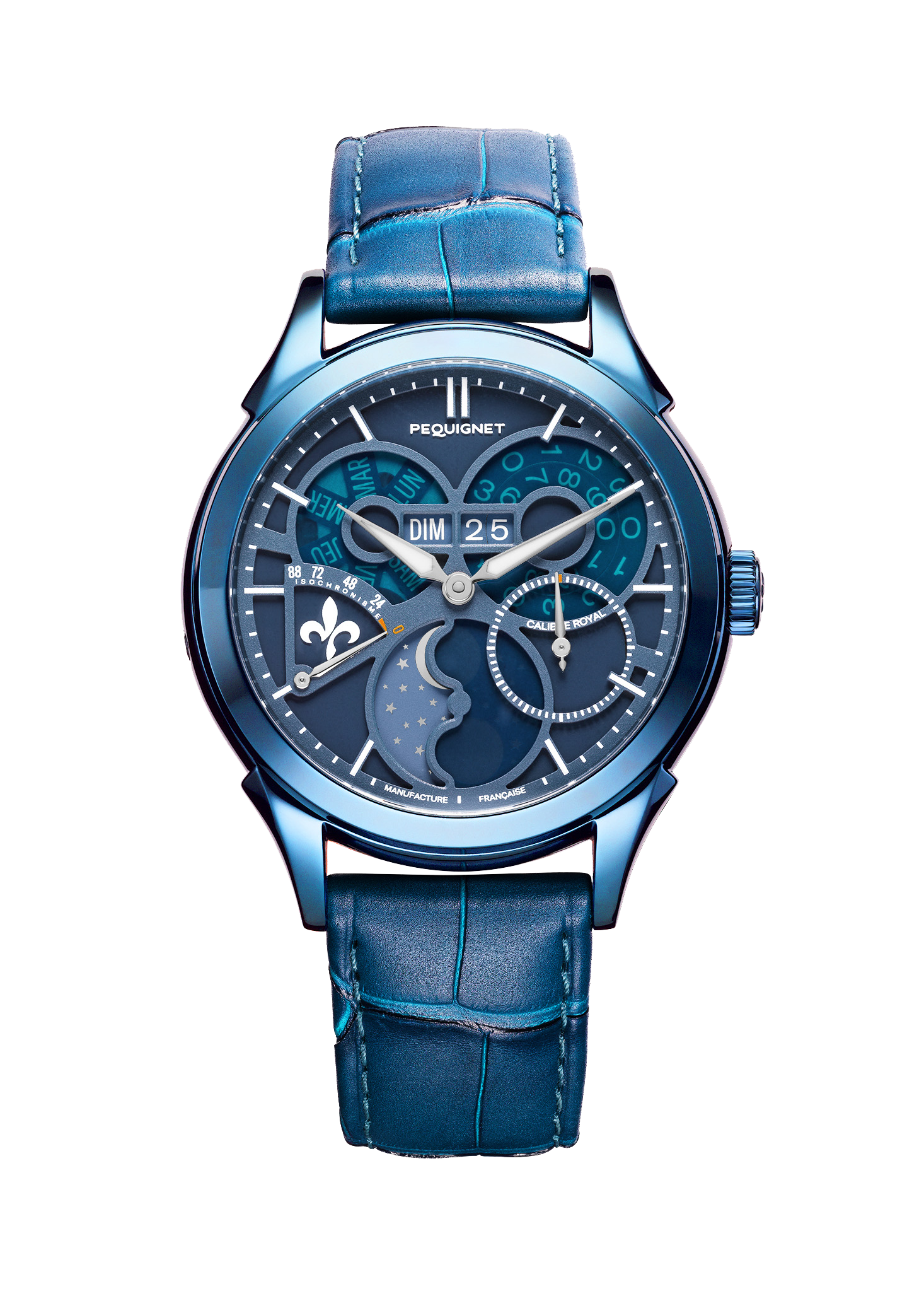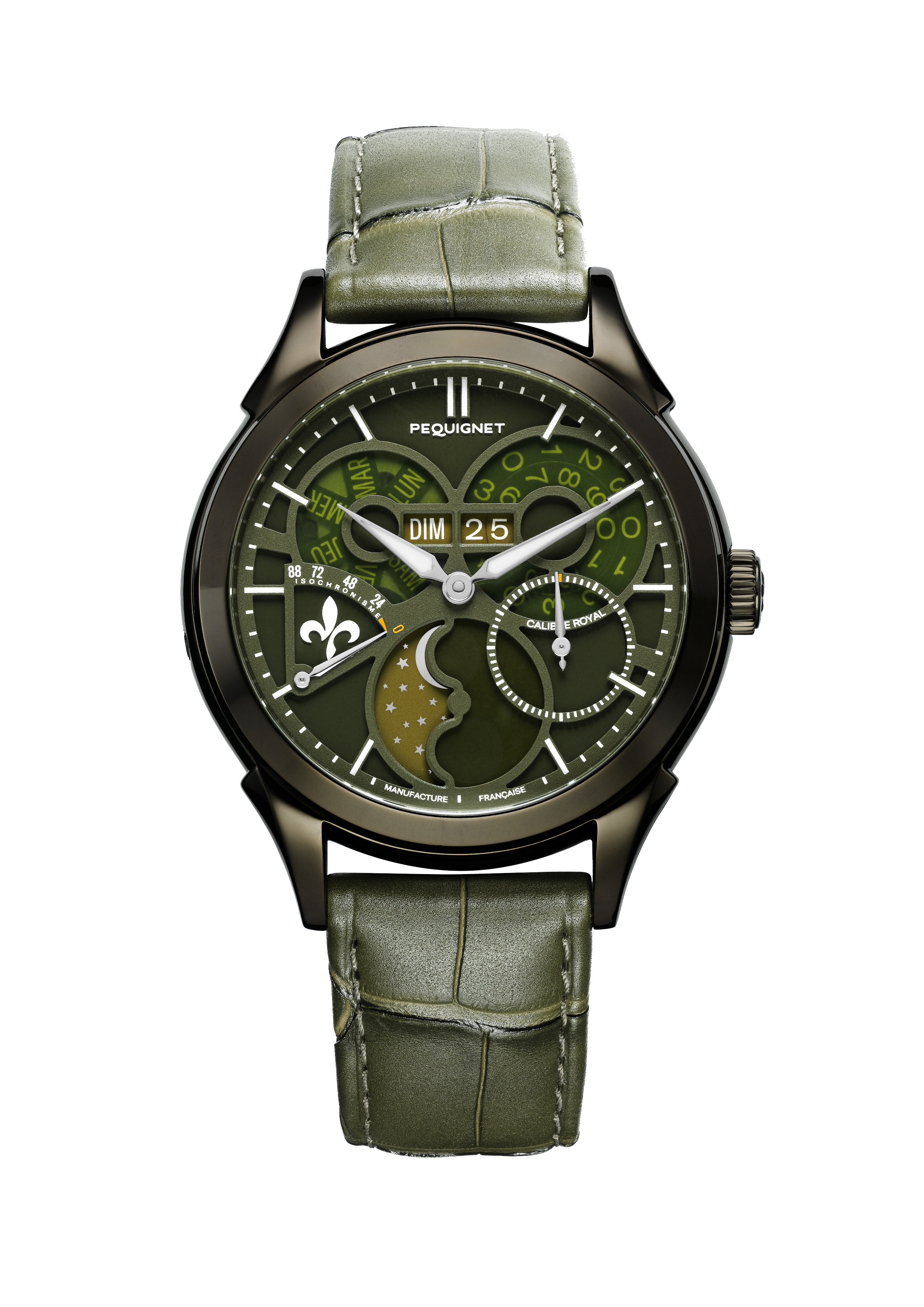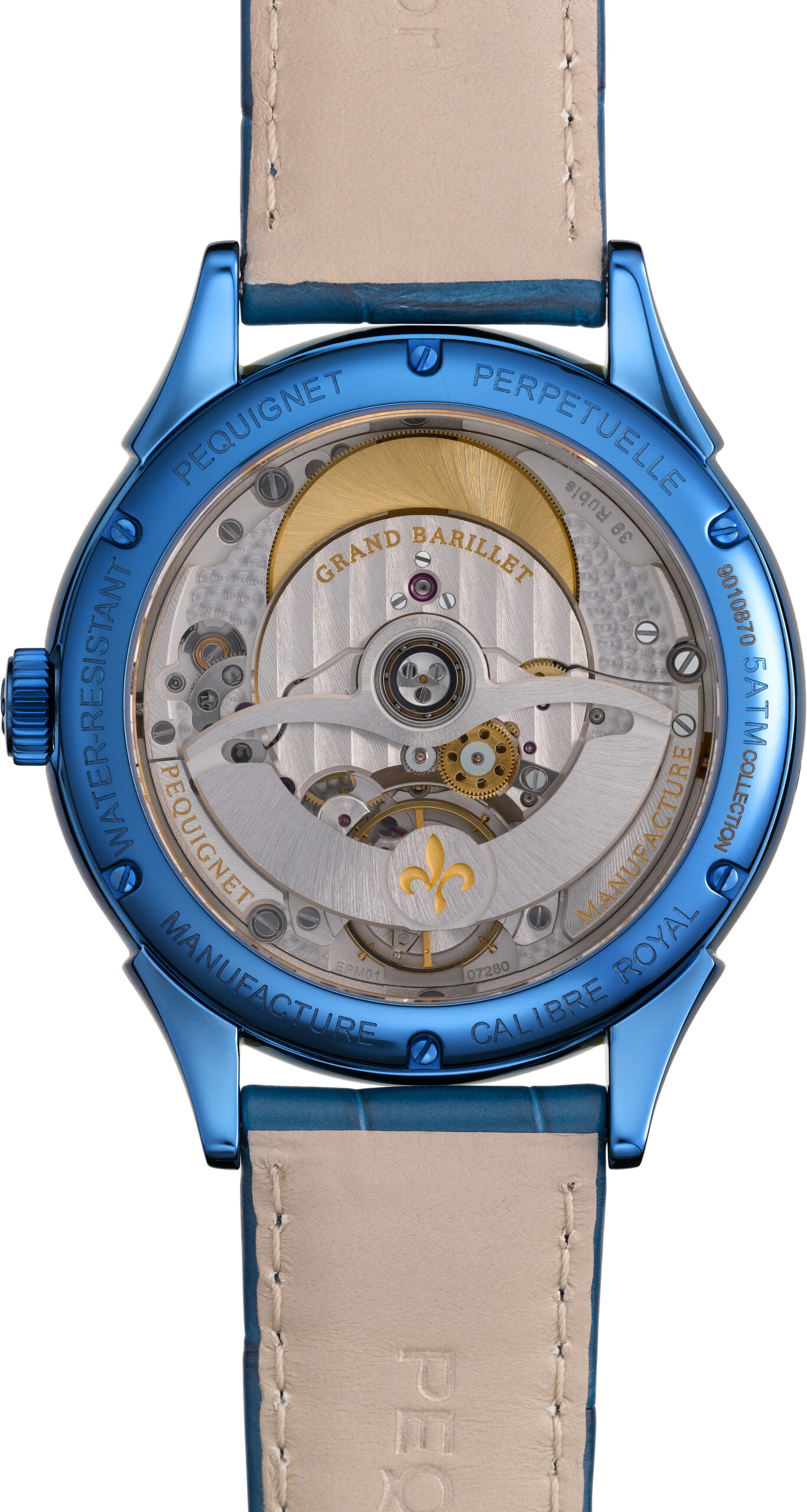Le cœur de chaque montre de cette collection est le Calibre Royal®, un mouvement mécanique de précision entièrement conçu et fabriqué en France. Ce calibre, qui a nécessité le dépôt de 8 brevets internationaux, est composé de plus de 350 composants, tous sourcés à moins de 80 km de Morteau, le siège de la manufacture PEQUIGNET. Cette proximité géographique des composants témoigne de l’engagement de la marque envers la qualité et le savoir-faire local.