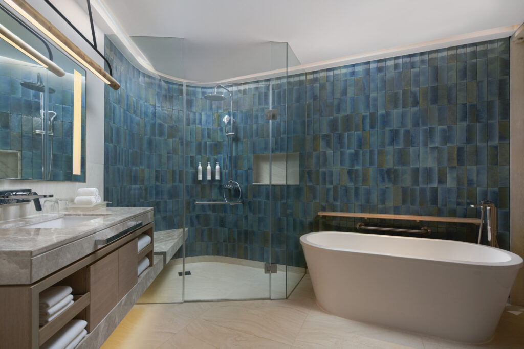 Le complexe offre également une expérience culinaire riche, avec le Nook et l’Ocean Kitchen, où les saveurs locales et internationales se rencontrent. Les clients peuvent savourer une sélection de cuisine européenne et moyen-orientale, complétée par des boissons artisanales, des vins fins et des cocktails créatifs.
