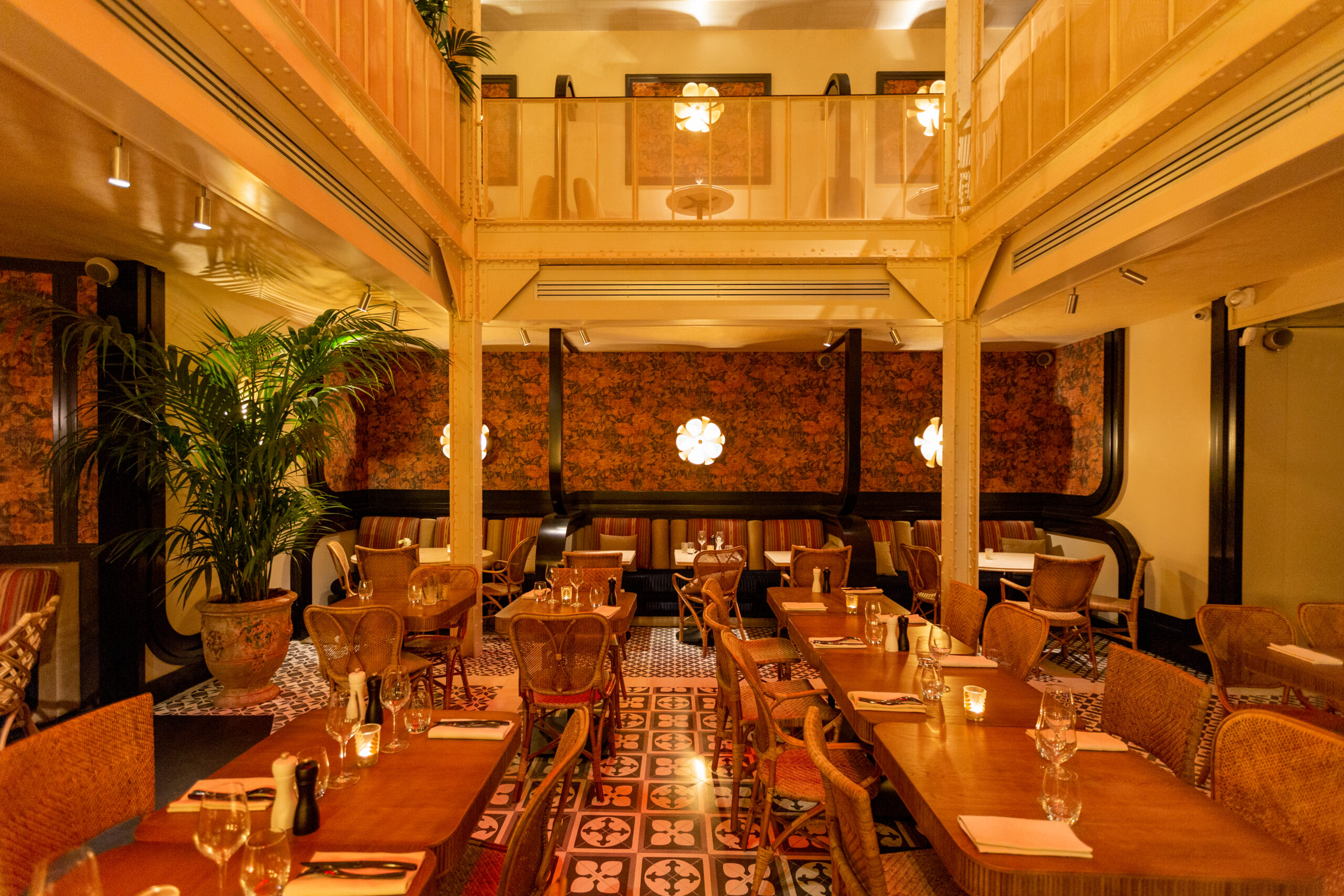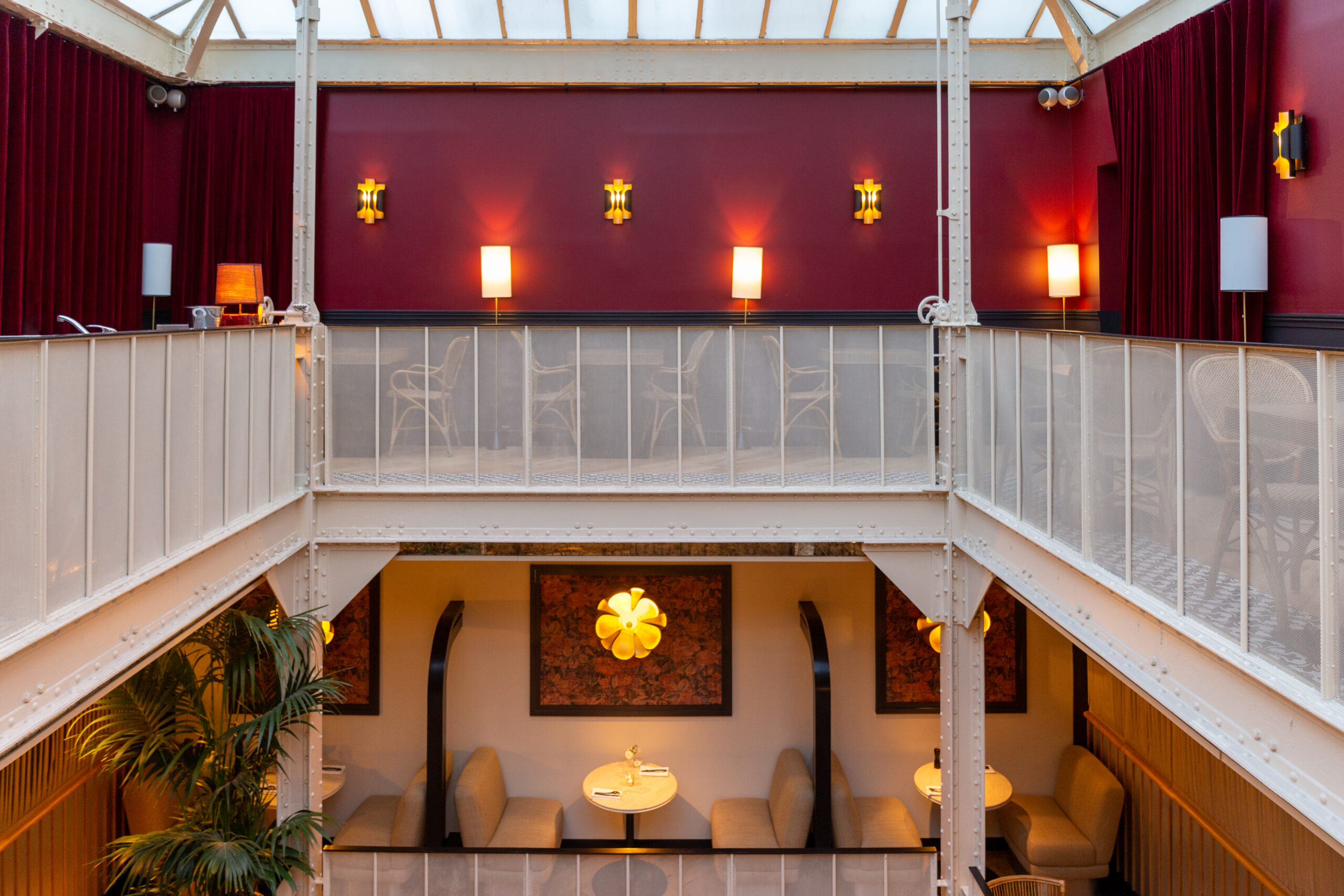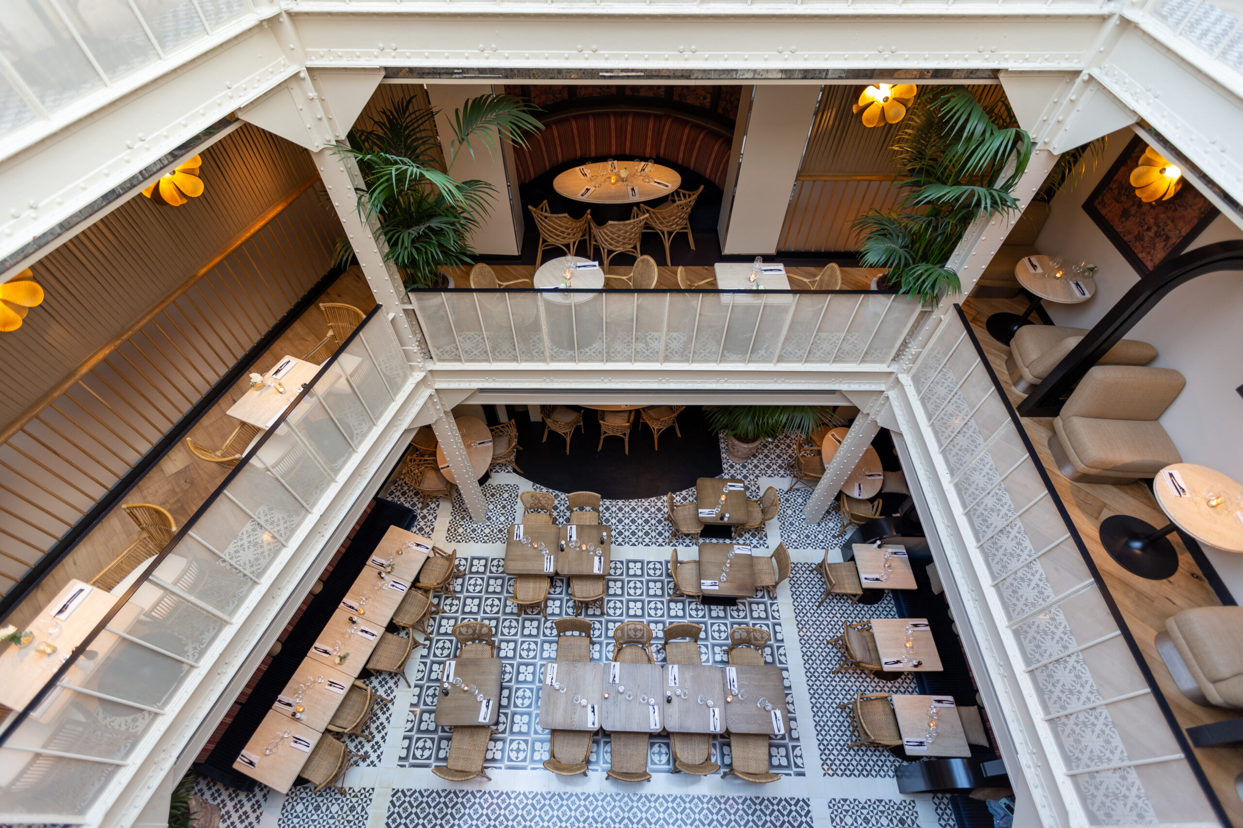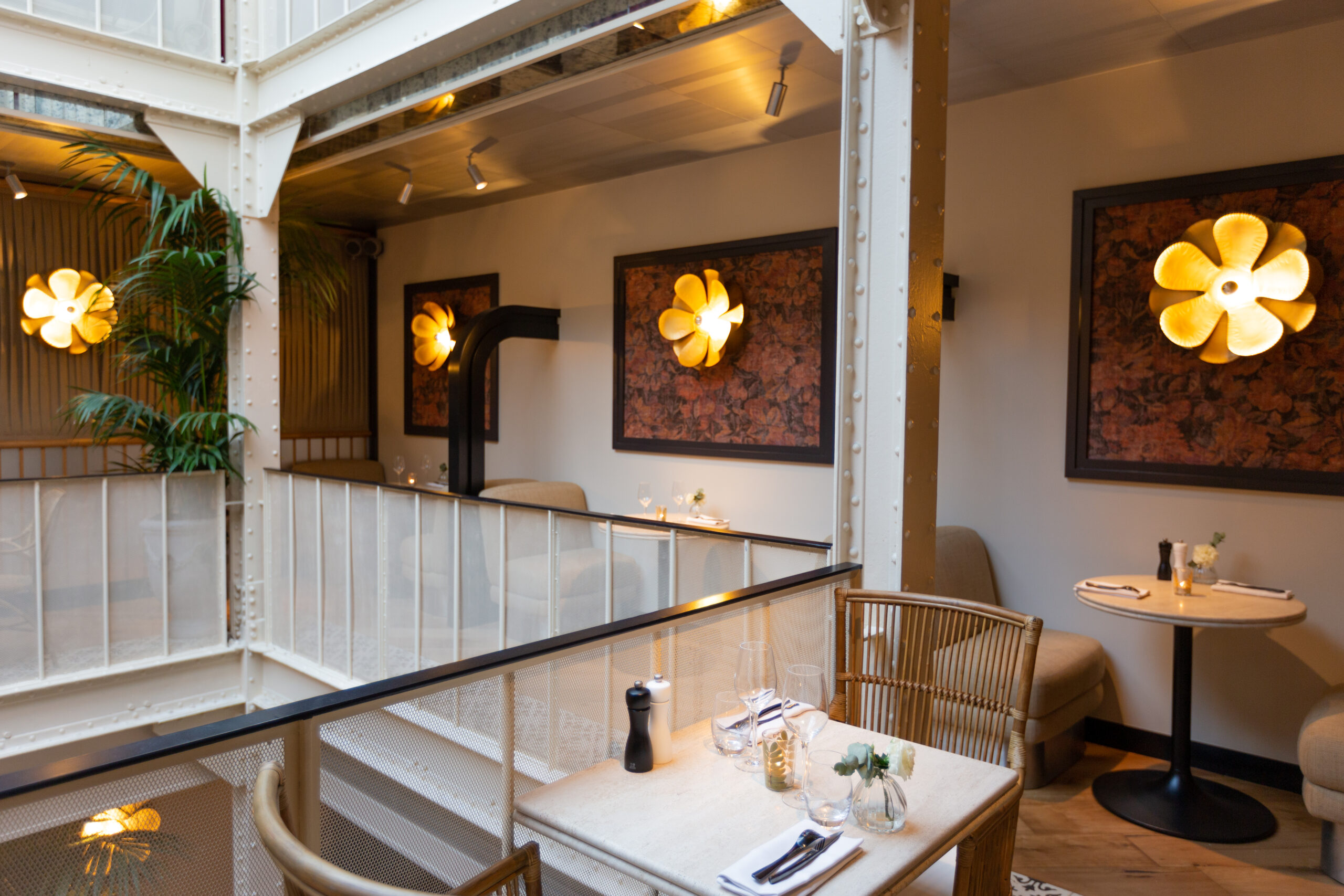 Les Chouettes se distinguent par une décoration soigneusement repensée, fusionnant l’élégance parisienne et les mystères de l’histoire des Templiers. L’établissement rend hommage à son passé riche, évoquant l’esprit créatif de Victor Prat et la maroquinerie de Louis Peschard du XIXe siècle, tout en invitant les convives à plonger dans une ambiance aérienne et captivante grâce à sa grande verrière de style Eiffel.