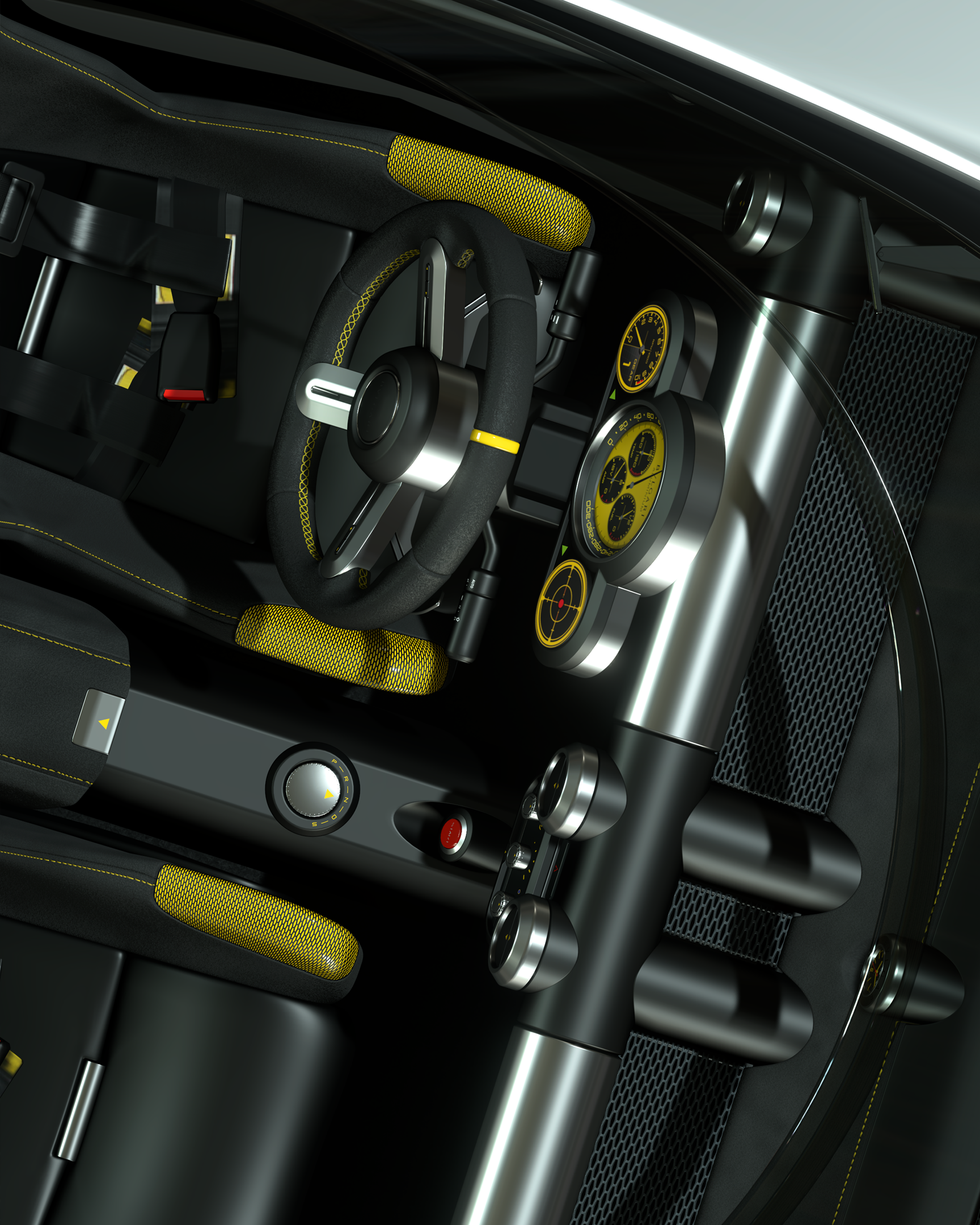 - Intérieur : Alcantara anthracite avec accents jaunes, évoquant le cadran de la montre.