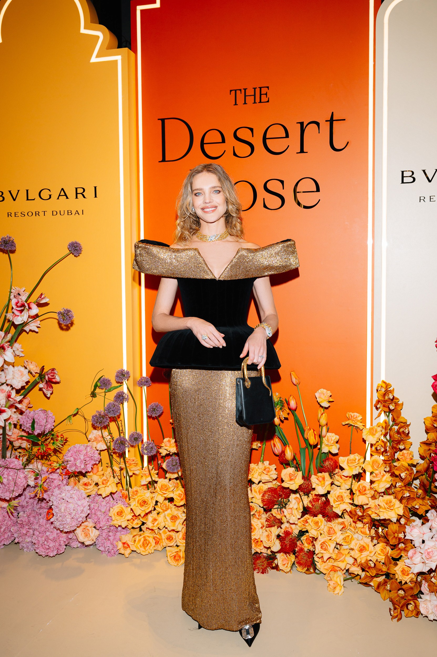 Le dîner de gala Desert Rose a été l’occasion pour BULGARI de démontrer une fois de plus son expertise dans le domaine de la haute joaillerie et de la maroquinerie de luxe. À travers le choix de Natalia Vodianova, BULGARI confirme son statut de référence ultime en matière de glamour, d’artisanat d’excellence et d’innovation dans le design.