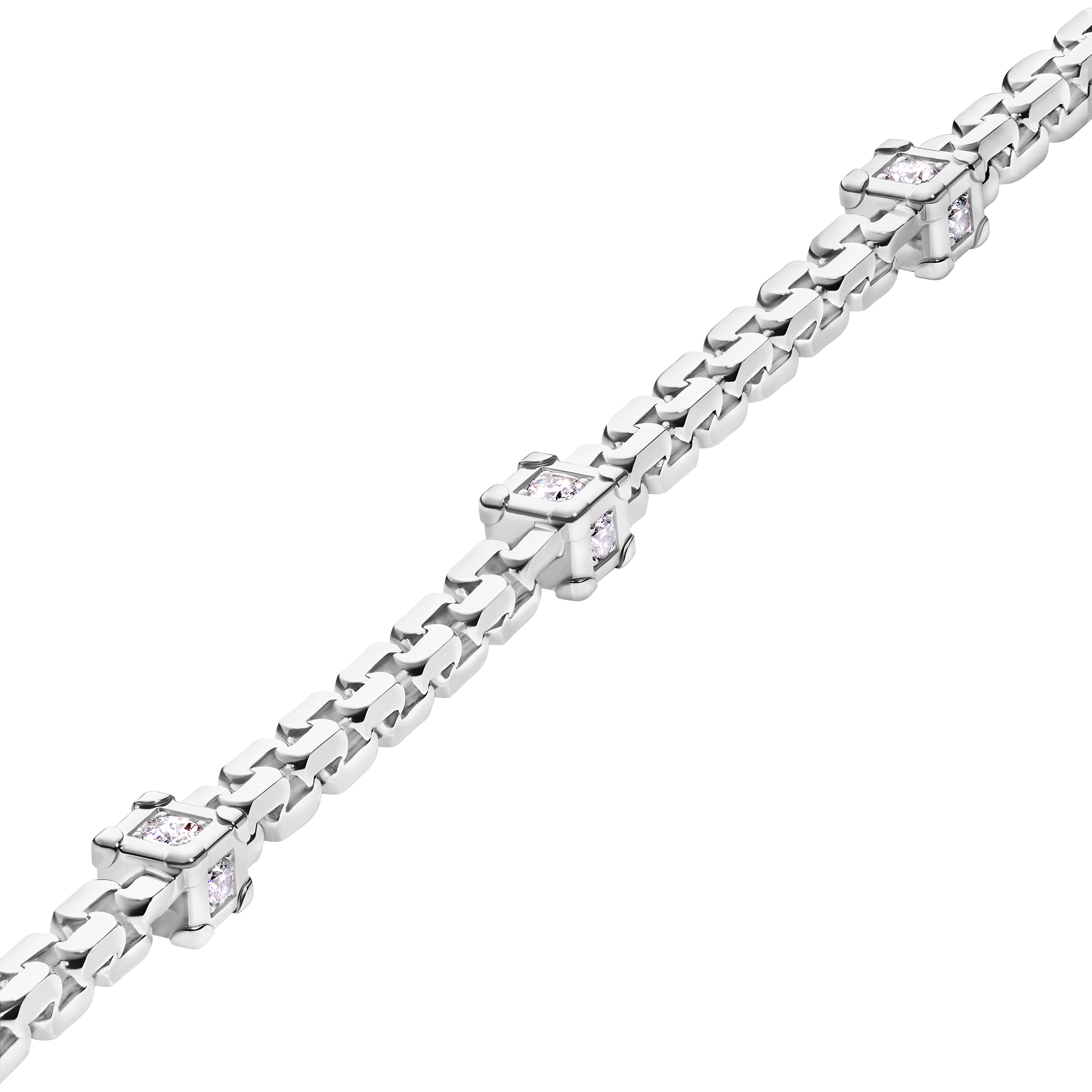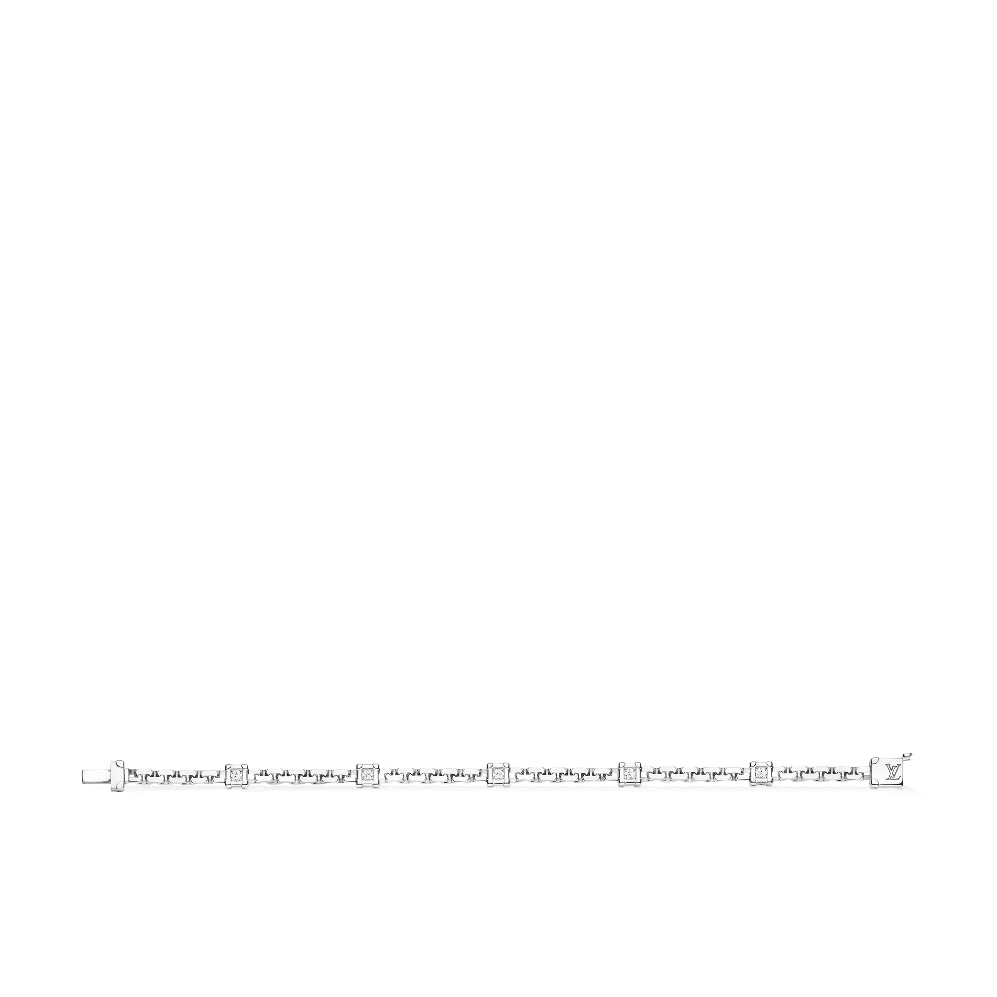Francesca Amfitheatrof, à travers cette collection, établit un parallèle entre Gaston-Louis Vuitton et les hommes et femmes d’aujourd’hui, tous sensibles et ouverts sur le monde. Elle propose 18 pièces, incluant deux chefs-d’œuvre, réparties en trois chapitres, où les icônes emblématiques de la Maison – le Monogram et la malle – sont revisitées dans un esprit contemporain. L’emblématique Monogram est réinterprété avec une technologie de découpe au laser, tandis que le motif de la malle se révèle dans sa version miniature, associant or blanc et diamants.