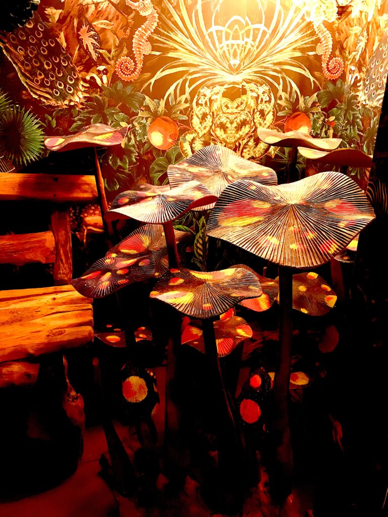Le Jungle Palace, nouvelle adresse parisienne, facilite l’immersion. Végétaux en cascade du plafond jusqu’aux murs, projections vidéo, peaufinent les sensations. Les bananes plantin frites et leur sauce pimentée, les poivrons de Padròn grillés, salés au robatayaki, les pommes de terre douce avec citron, yaourt et cacahuètes de la cheffe Laurelia Constanzia jouent du craquant et du suave. L’adéquation se révèle parfaite avec les cocktails exotiques, L’Exploration, Amazonia, Palomita.