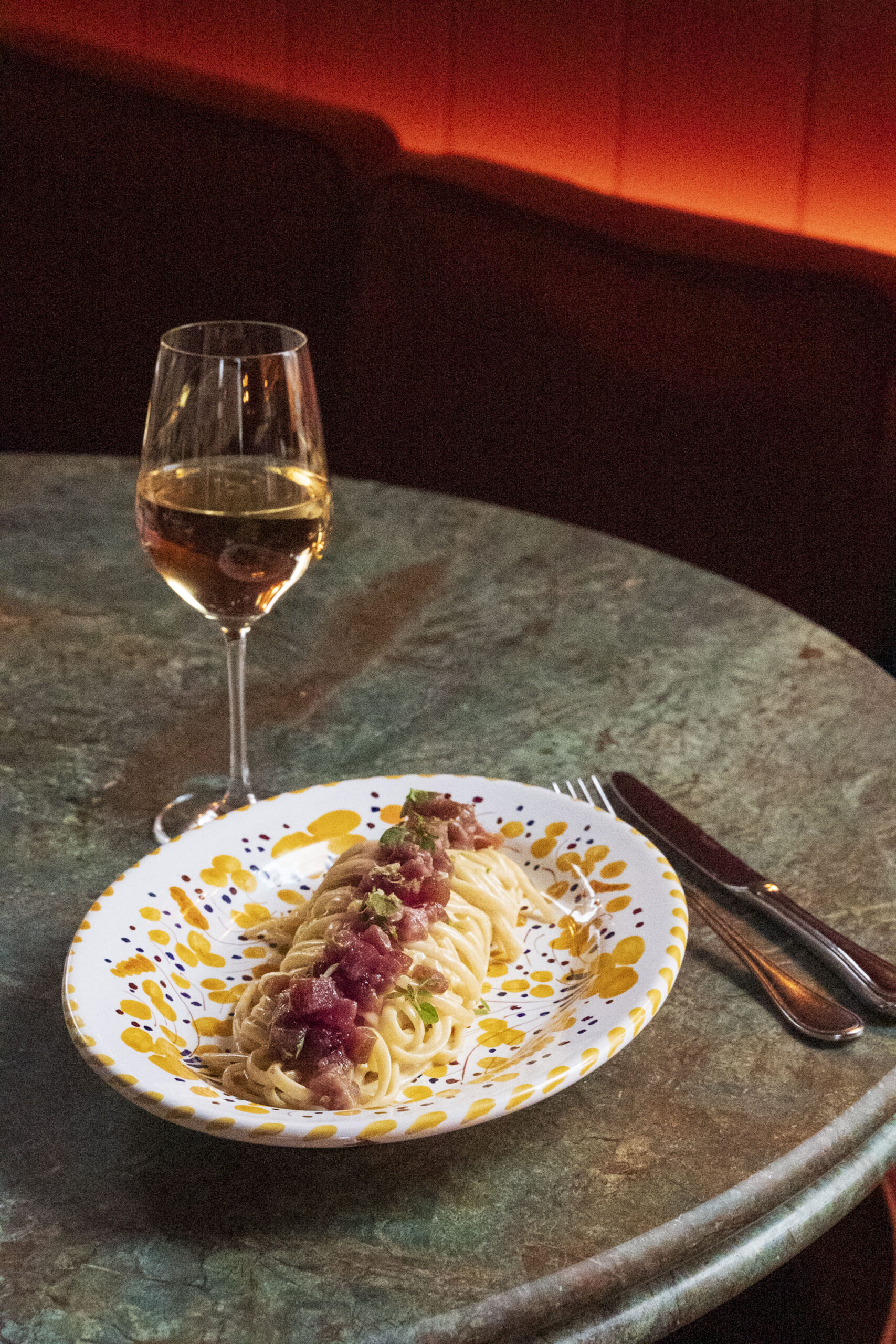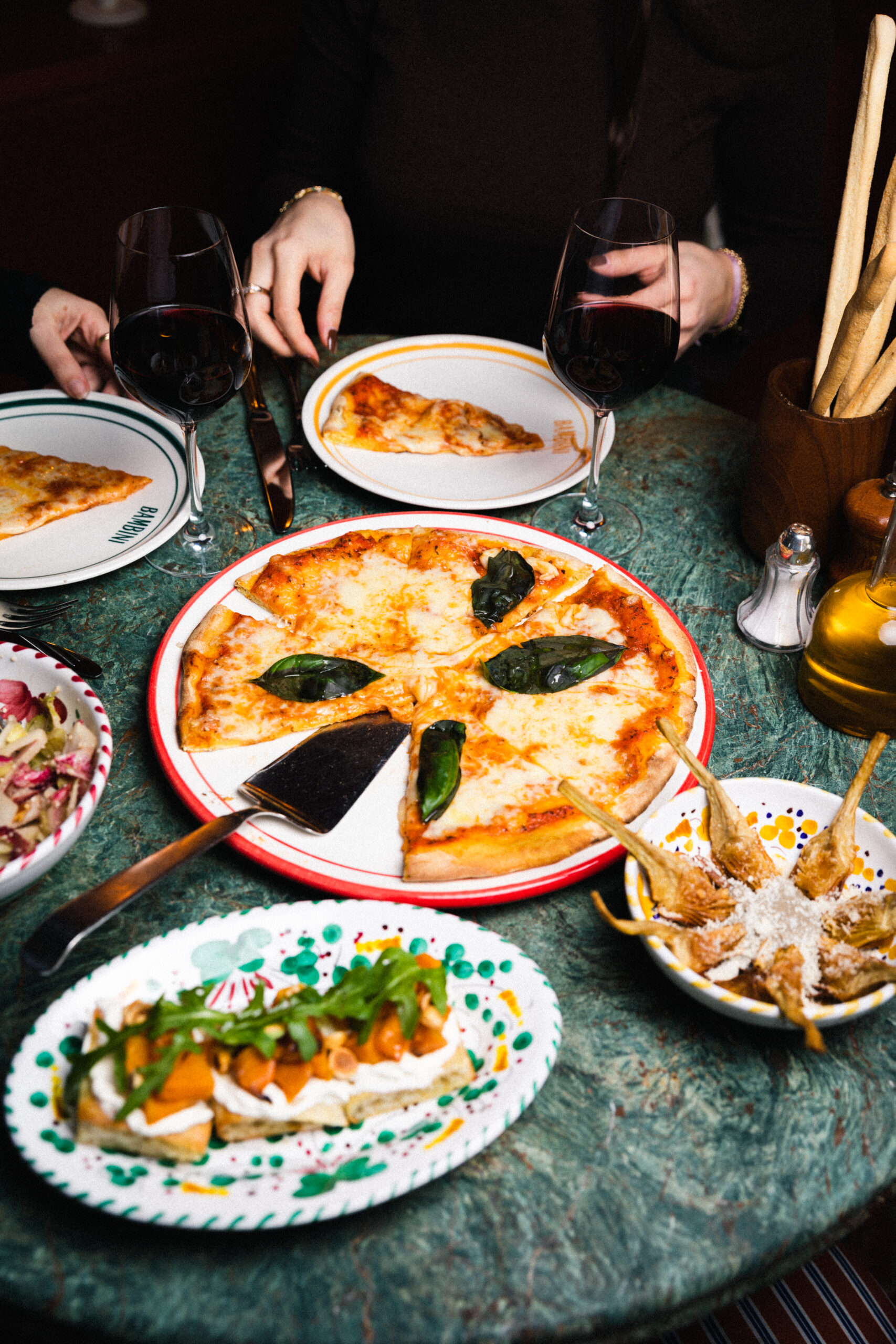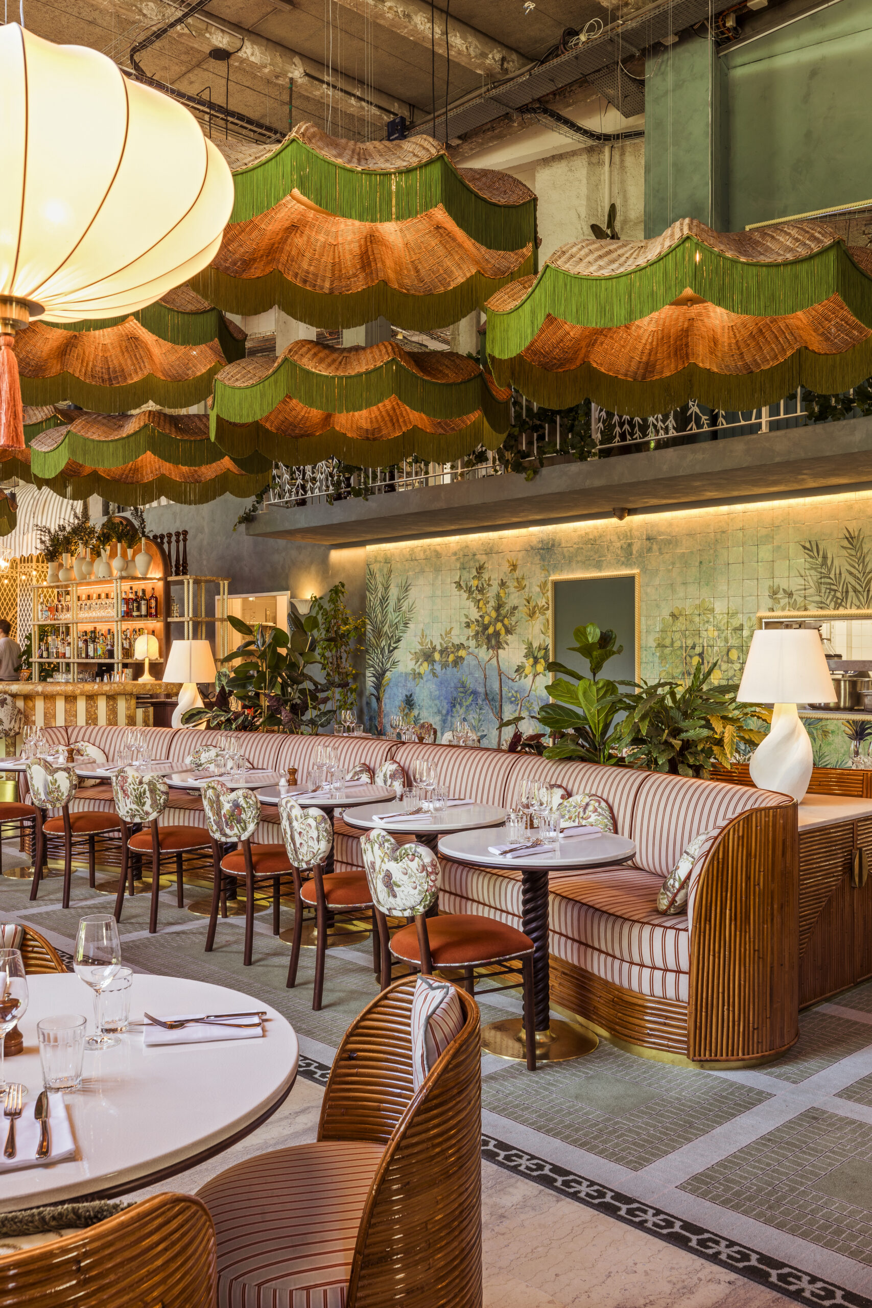 Dès l’entrée, Bambini séduit par son décor à la fois ludique et raffiné, fruit de l’imagination fertile de Friedmann et Versace. L’ambiance y est théâtrale, évoquant les couleurs et l’insouciance de l’Italie festive. Chaque détail du lieu, des couleurs vives aux éléments de décoration choisis avec soin, contribue à créer une atmosphère immersive et chaleureuse qui rappelle la dolce vita.