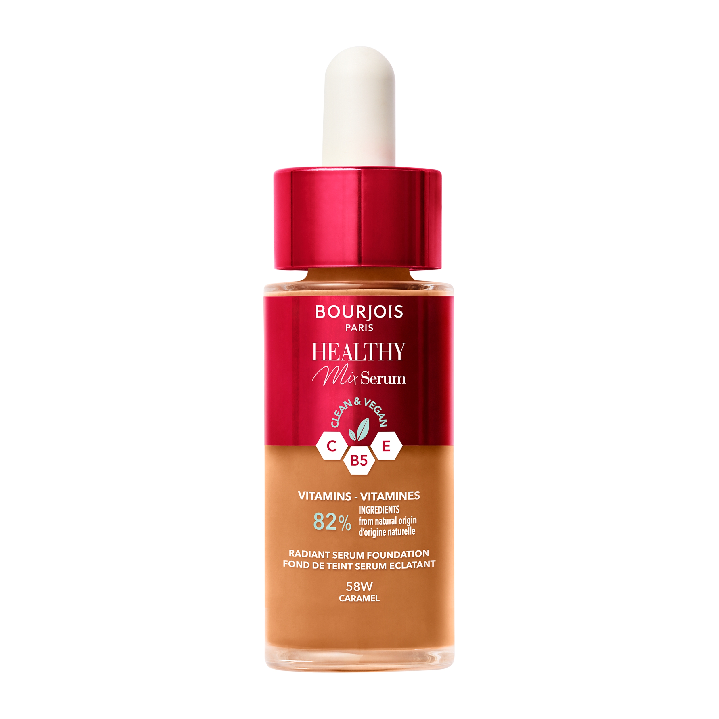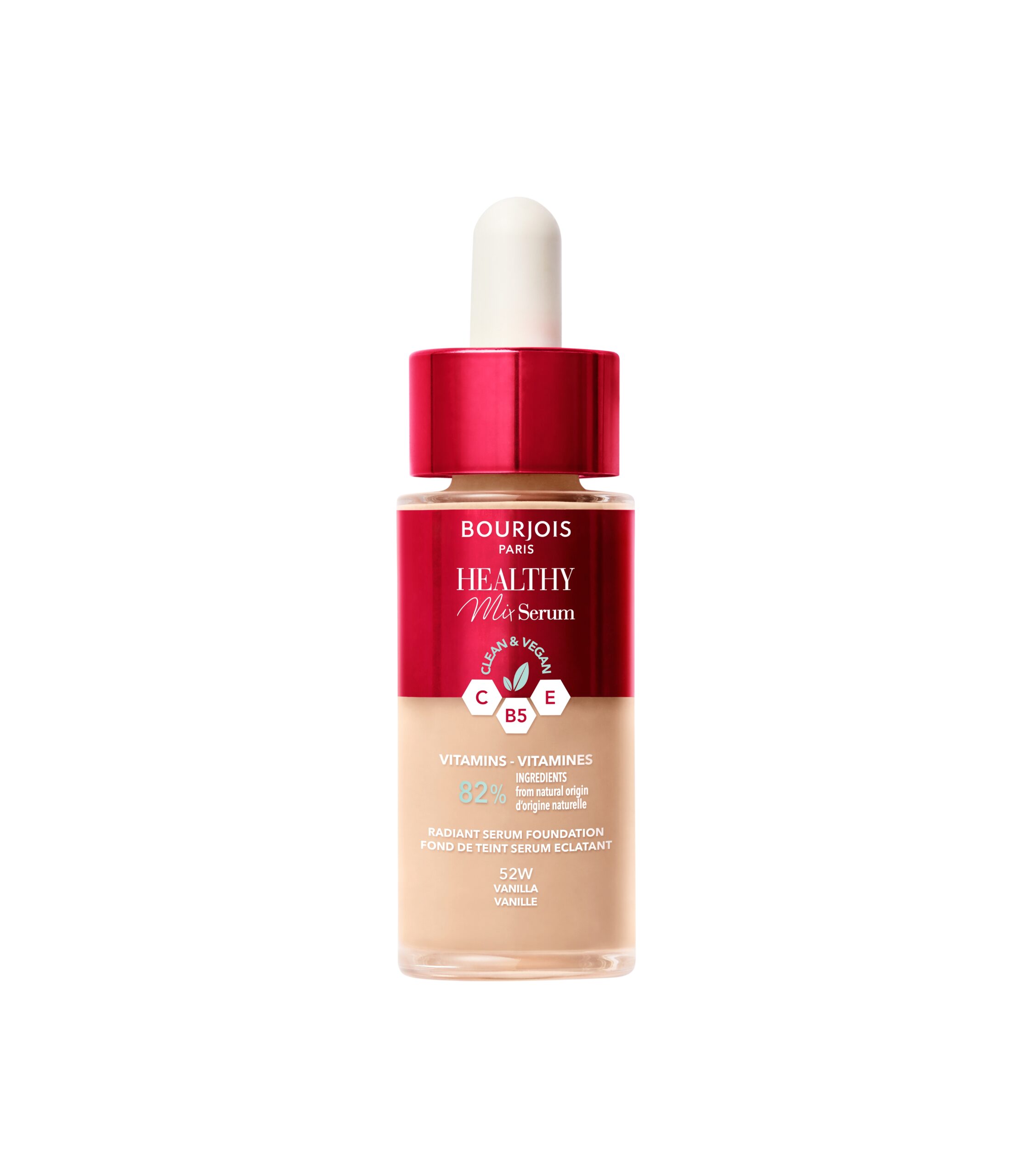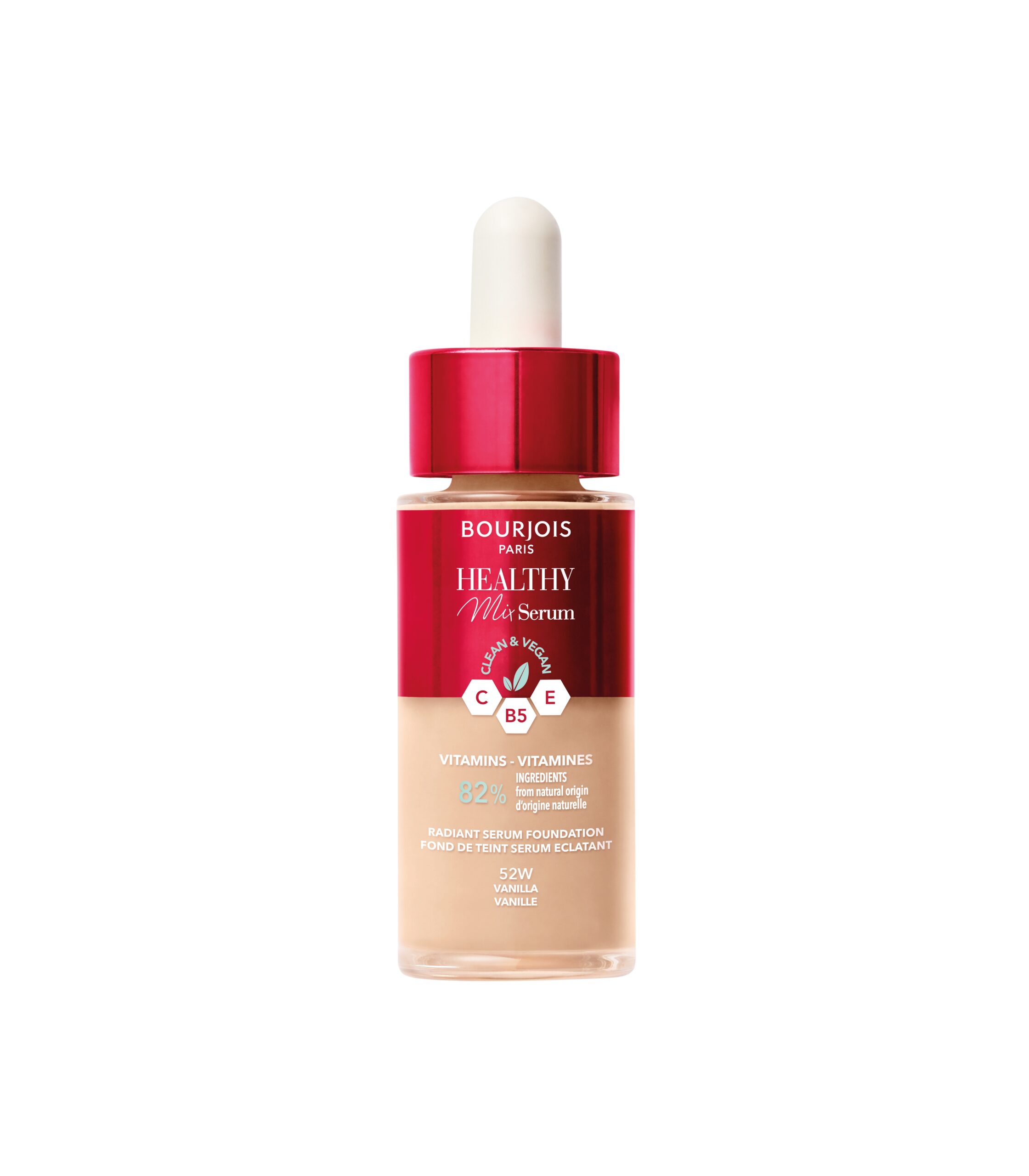 Formulé avec 82 % d’ingrédients naturels, ce fond de teint sérum est enrichi en extrait de cranberry, un puissant peptide naturel reconnu pour ses propriétés anti-âge. Il stimule la production de collagène, préservant ainsi la jeunesse de la peau et aidant à prévenir la formation des rides. De plus, il contient l’antioxydant Healthy Mix emblématique de Bourjois, composé de vitamines C, E et B5, renforçant la barrière cutanée pour une peau éclatante.