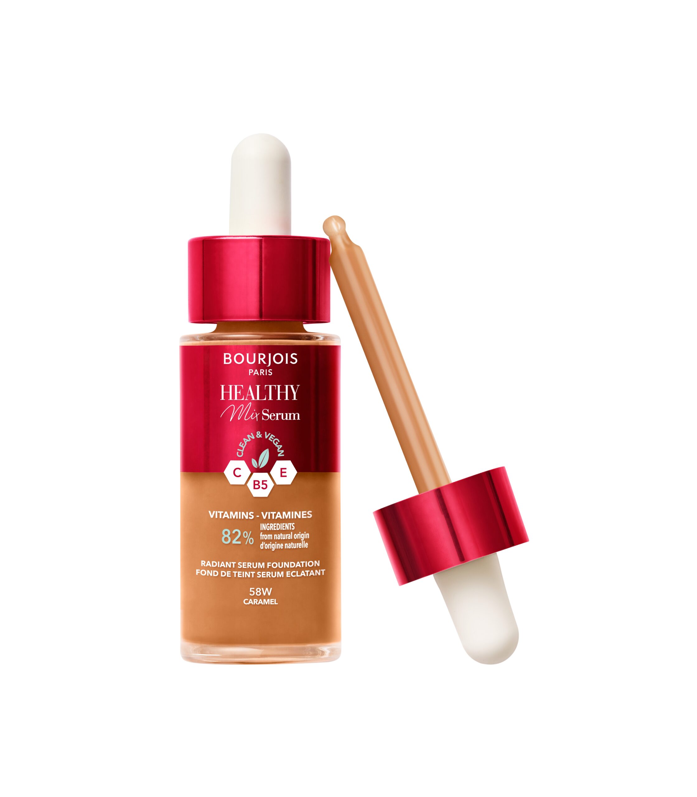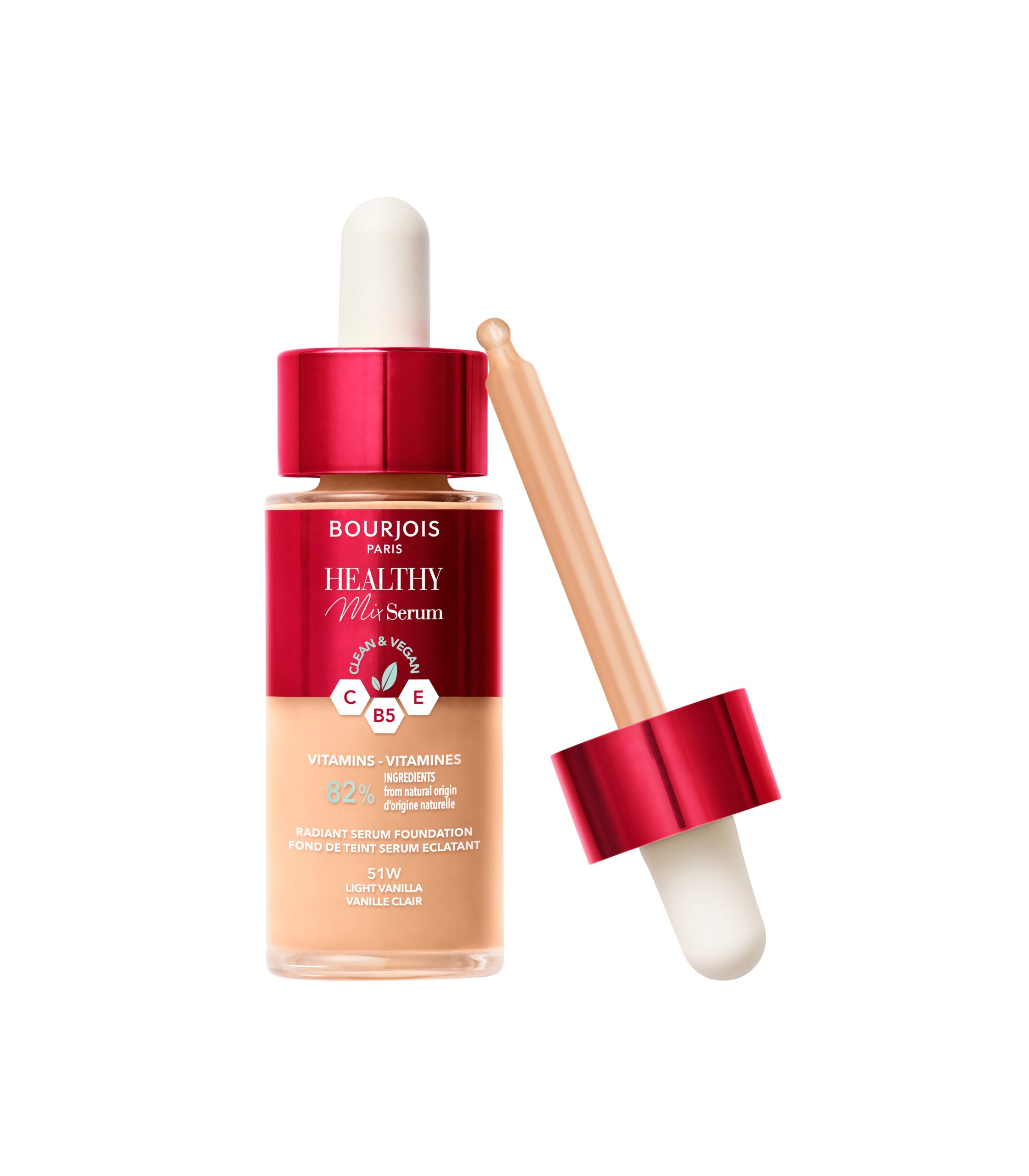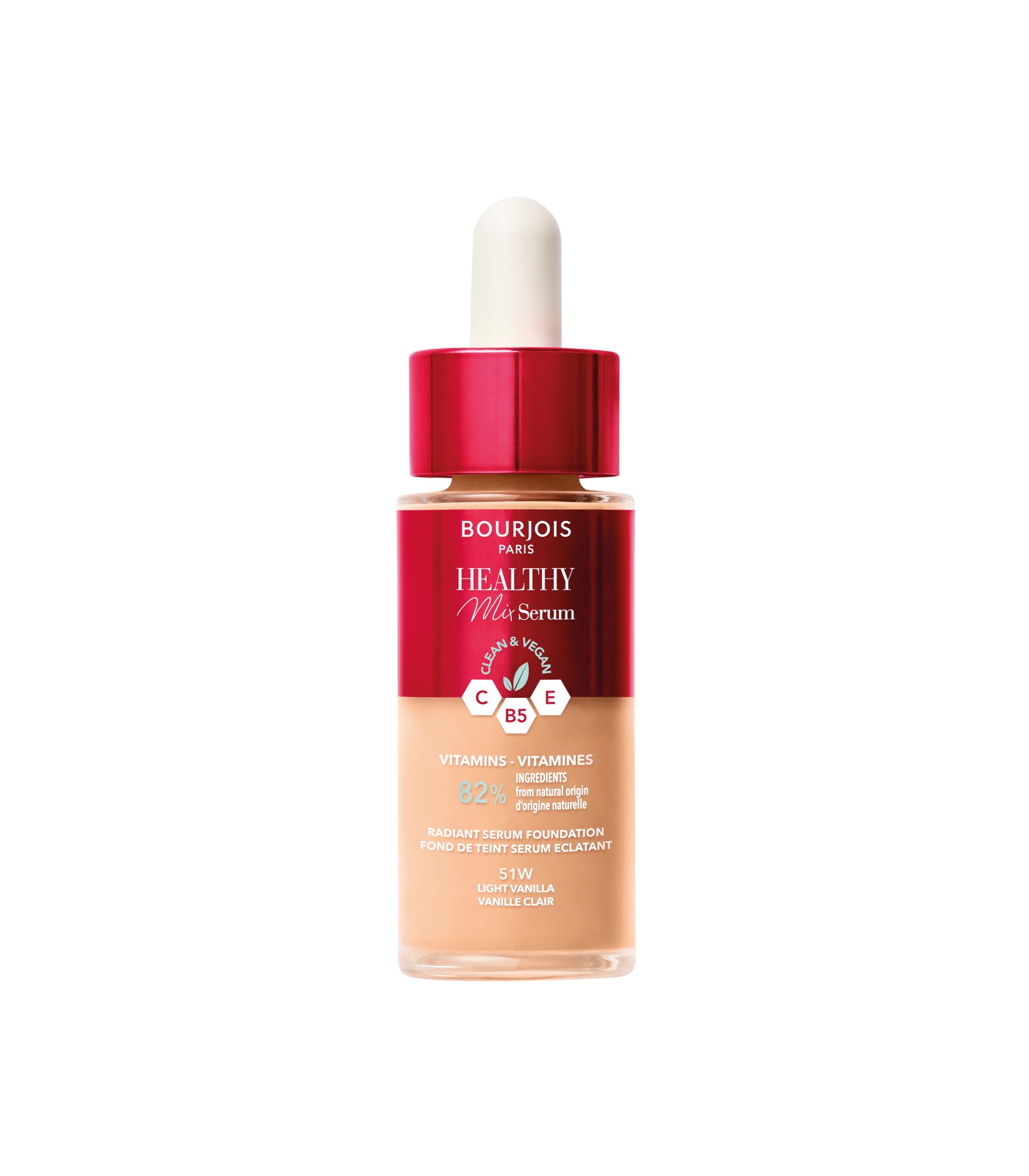 Formulé avec 82 % d’ingrédients naturels, ce fond de teint sérum est enrichi en extrait de cranberry, un puissant peptide naturel reconnu pour ses propriétés anti-âge. Il stimule la production de collagène, préservant ainsi la jeunesse de la peau et aidant à prévenir la formation des rides. De plus, il contient l’antioxydant Healthy Mix emblématique de Bourjois, composé de vitamines C, E et B5, renforçant la barrière cutanée pour une peau éclatante.