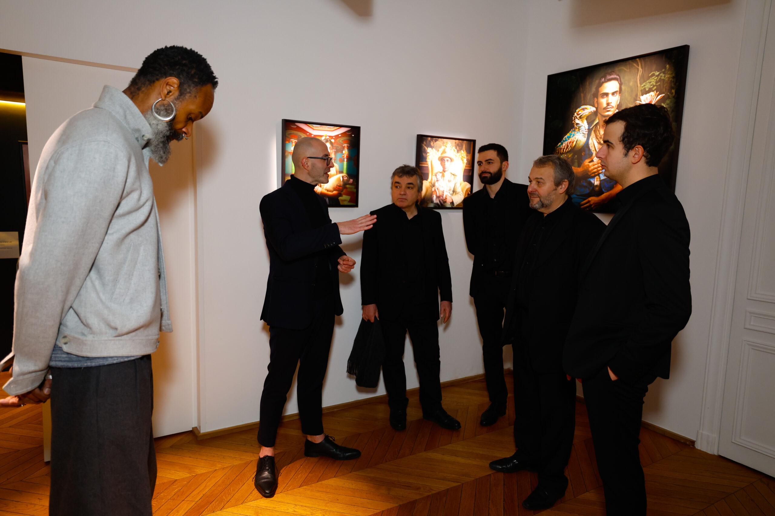 Le noir domine la palette, symbolisant la profondeur et le mystère, tandis que des touches de couleurs vibrantes comme le rouge, le fuchsia et l’or apportent éclat et vitalité, illustrant la capacité de la femme à transcender les épreuves. Sorbier rend ainsi hommage à la guérisseuse moderne, une femme qui, à l’instar du phénix, se renouvelle sans cesse, défiant les obstacles avec grâce et puissance.