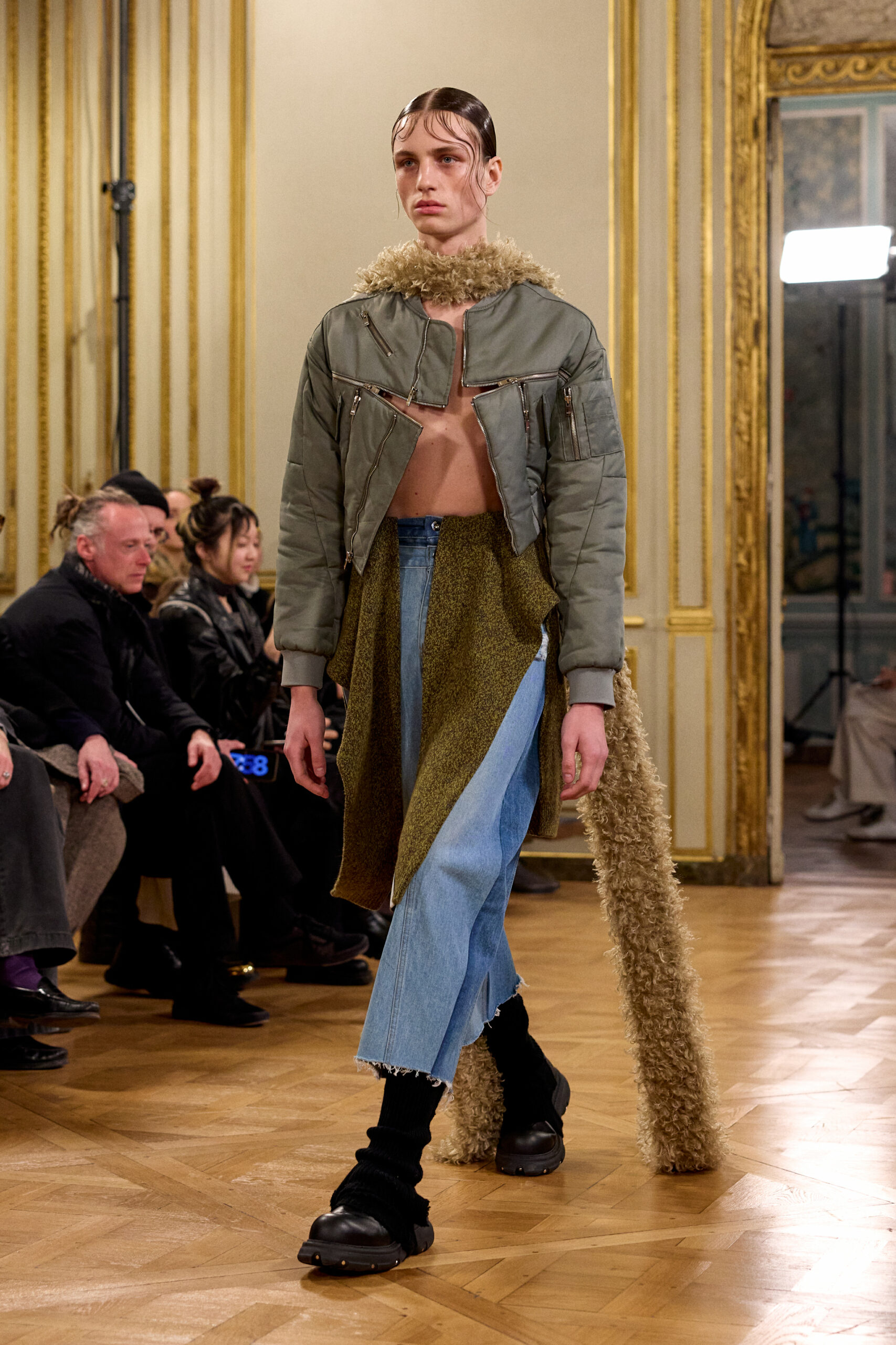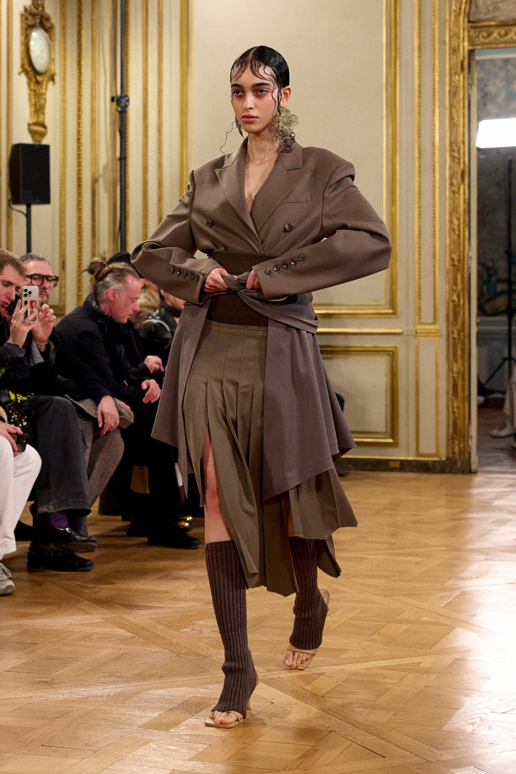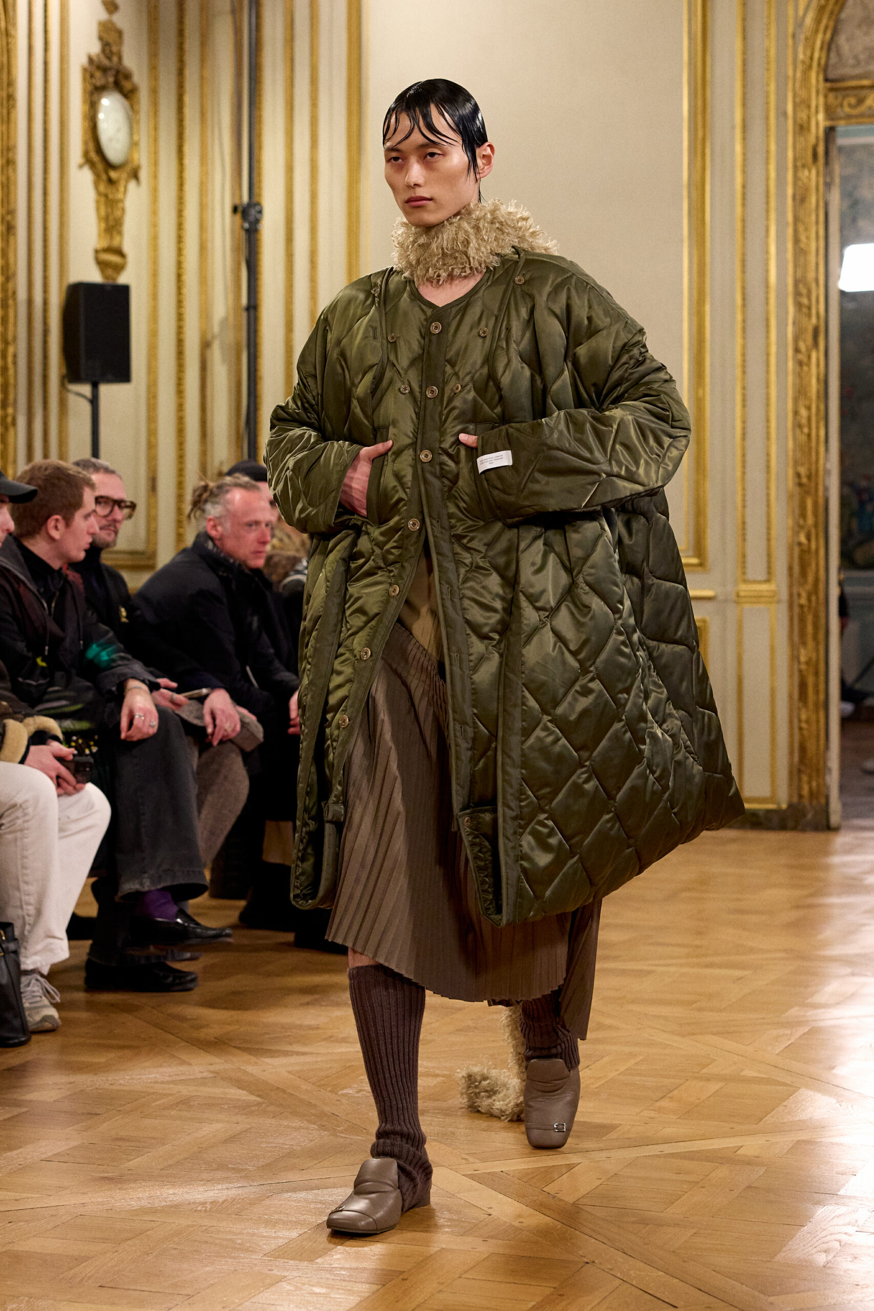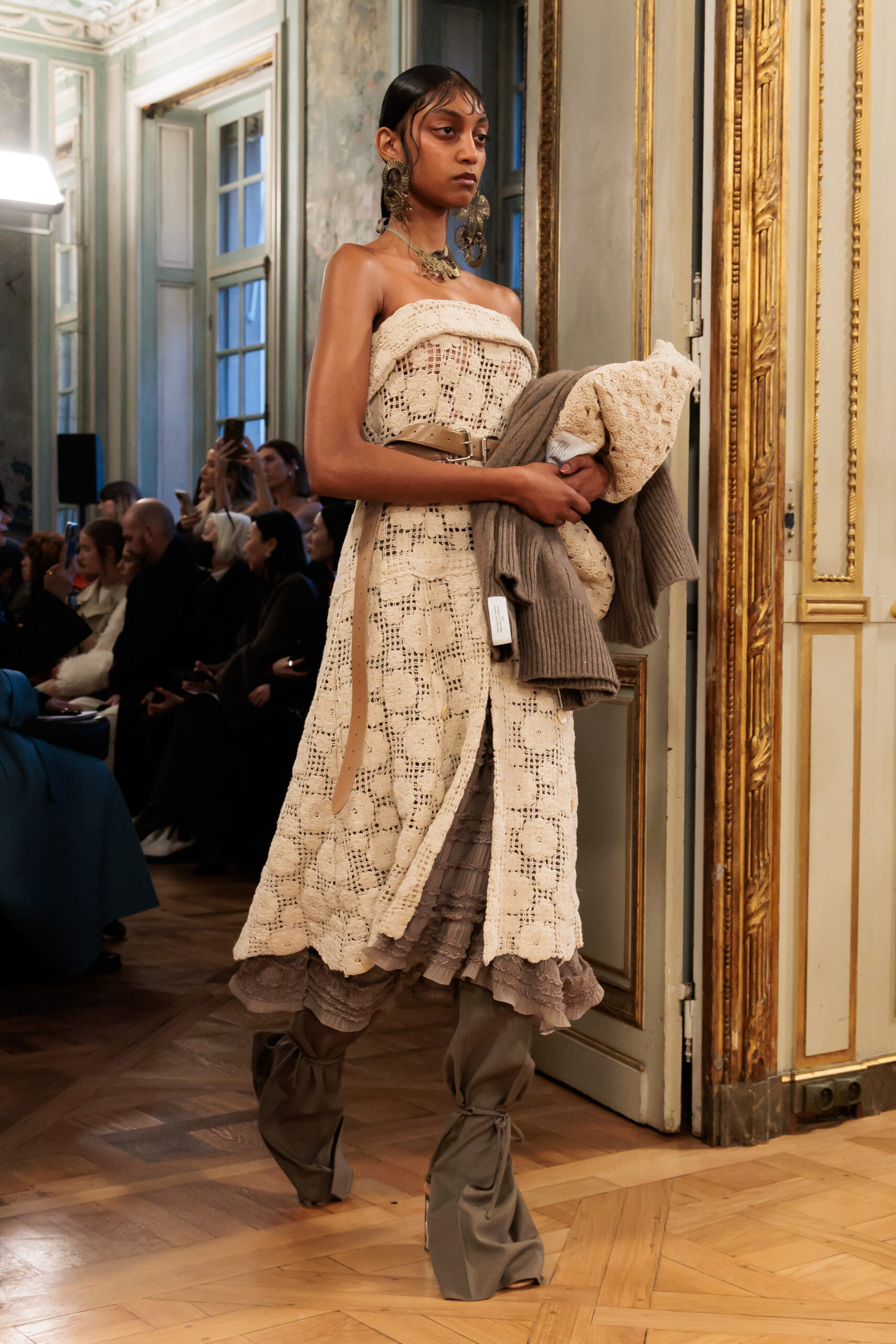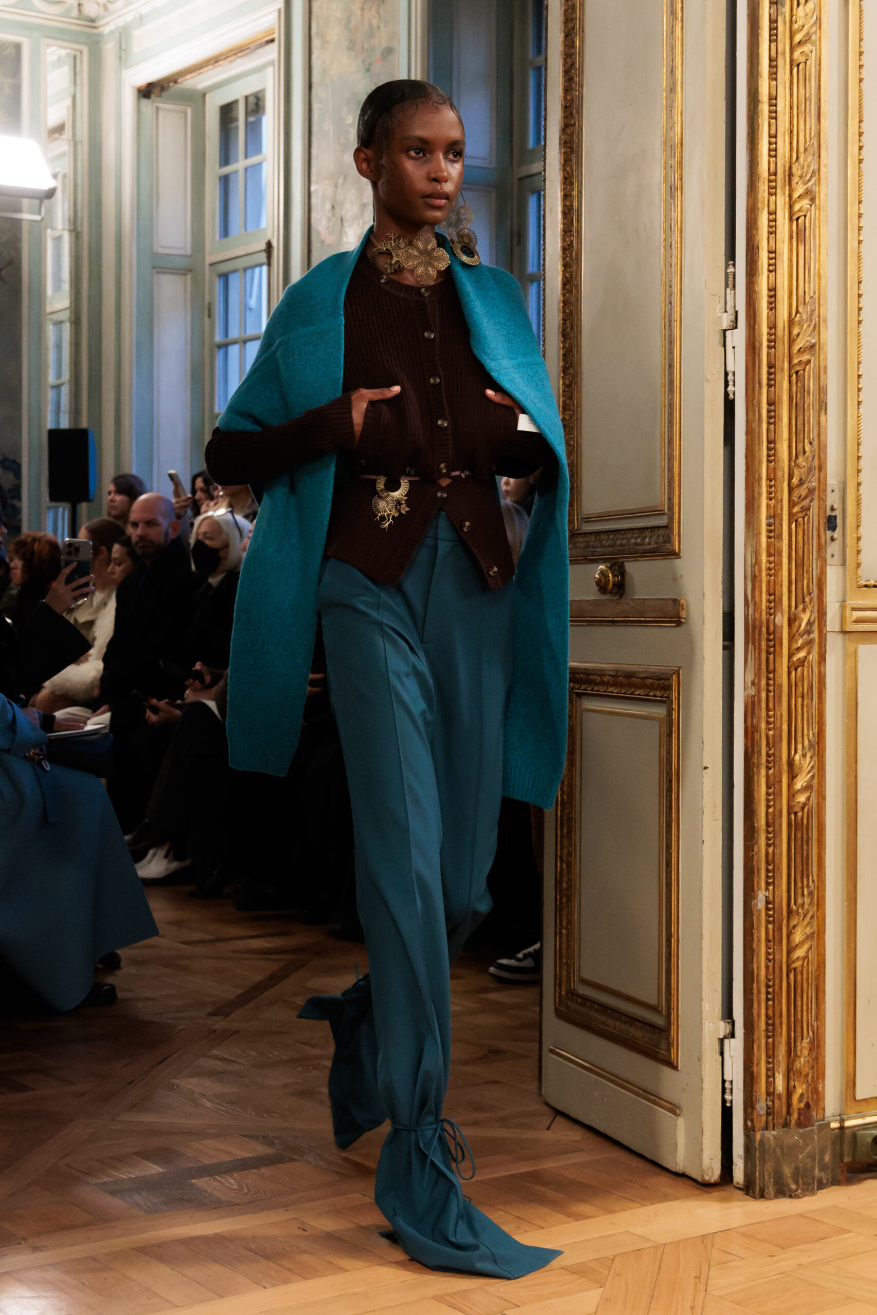 Tout au long de la collection, les vêtements subissent une transformation, avec des manteaux qui se transforment en vestes et des trench-coats qui se mélangent avec des manteaux formels grâce à des techniques innovantes de coupe de patrons et de drapage à la main. Ces pièces, imprégnées de taille sartoriale, témoignent de l’engagement de Rokh à repousser les limites de la mode tout en honorant les traditions intemporelles.