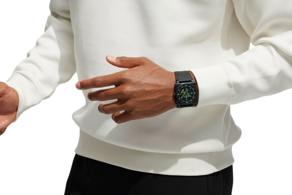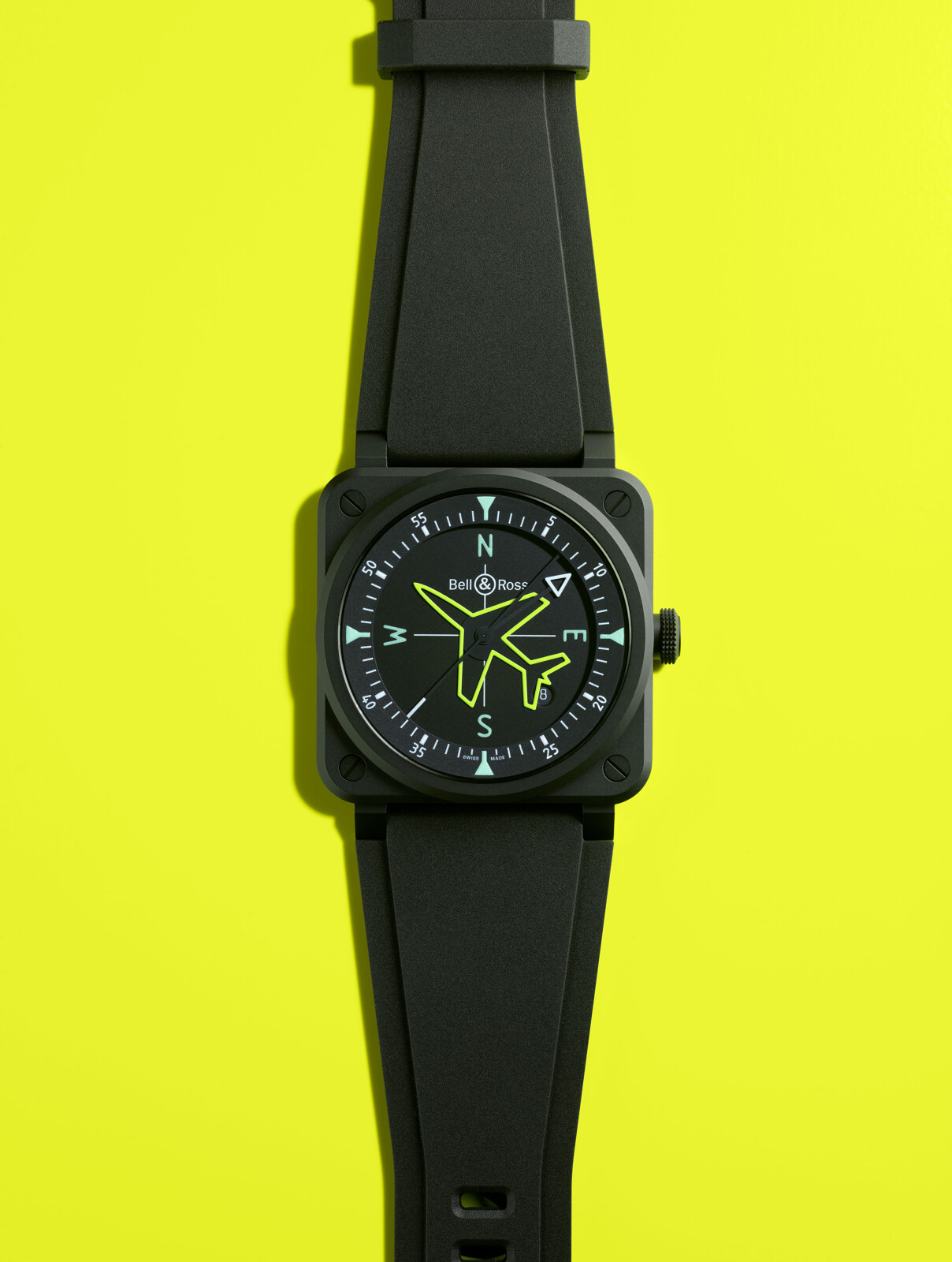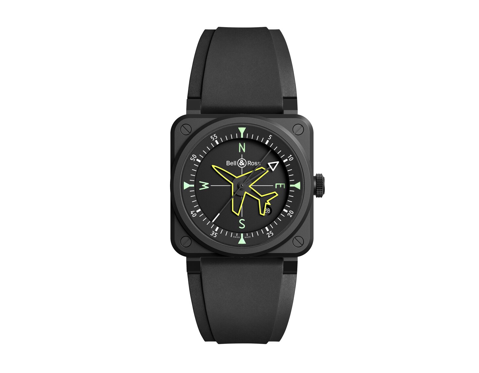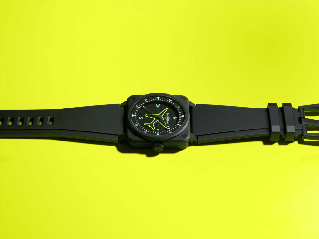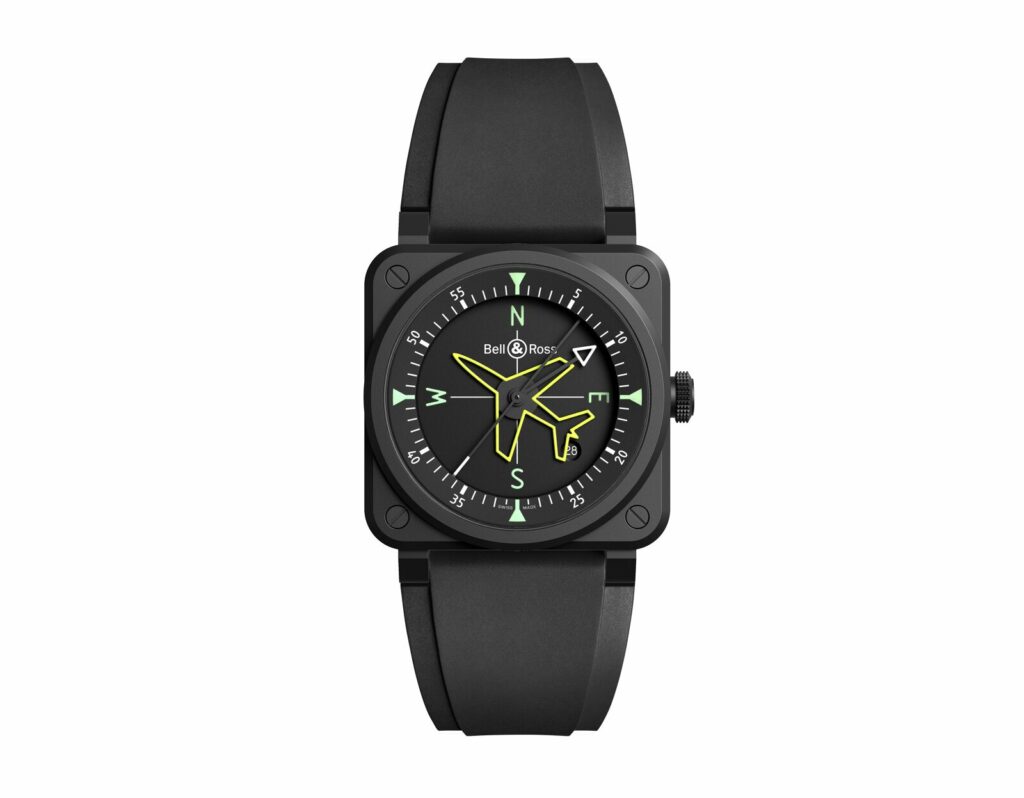 Réinventée cette année, la BR 03 Gyrocompass arbore le design emblématique de la gamme BR 03, avec sa forme rond dans le carré, dans un boitier de 41 mm. En céramique noire, mesurant seulement 10,6 mm d’épaisseur et étanche à 100 mètres, elle reflète une ingénierie et un design de pointe. Le bracelet en caoutchouc noir souligne sa robustesse et son aspect professionnel.
