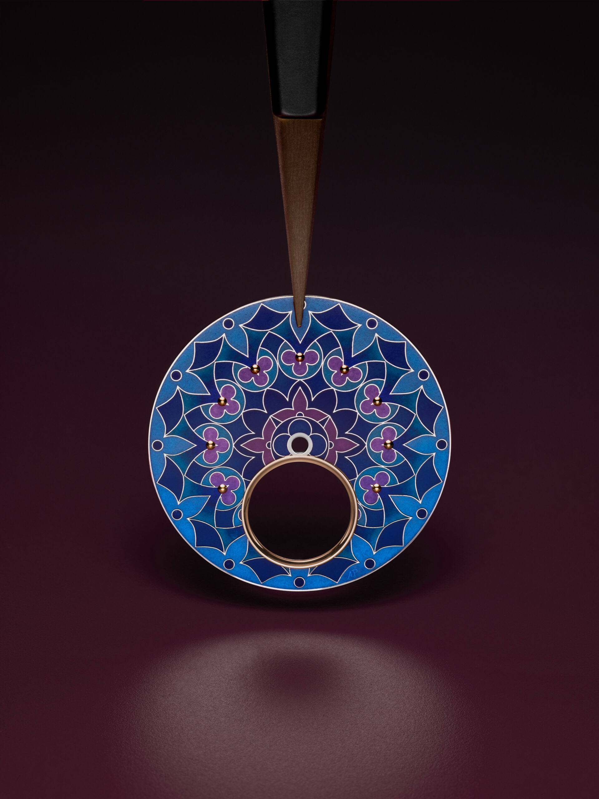 - Cadran : Émail cloisonné réalisé à la main par Anita Porchet.