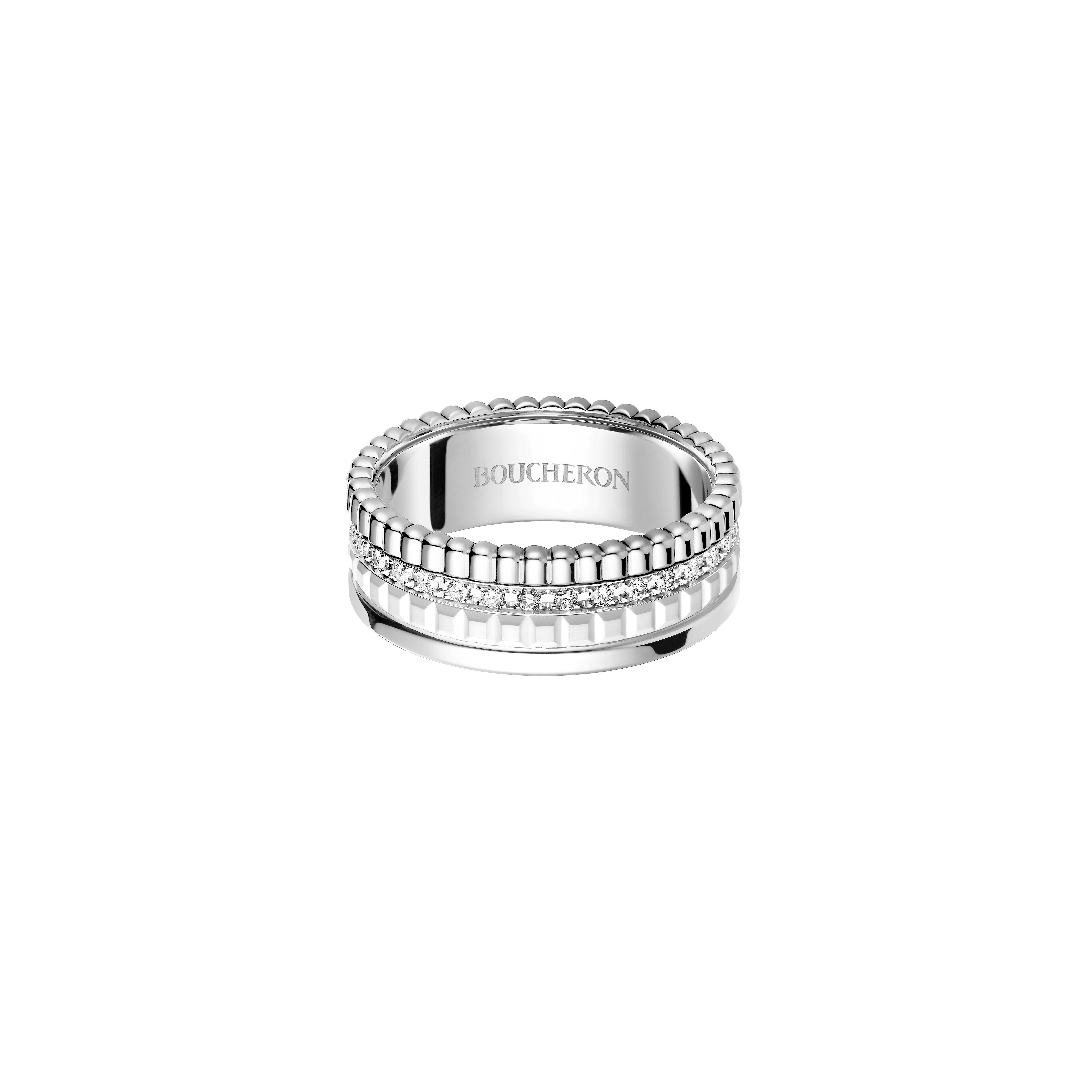 Mais l’élégance de Theron ne s’arrêtait pas là. La bague et le bracelet Vendôme Liseré, alliage raffiné d’or blanc, de diamants et de laque noire signature, ajoutaient une touche d’avant-gardisme à son look. Les bagues et le clip d’oreille Quatre Double White Edition, sublimes mariages d’or blanc, de diamants et d’hyceram blanche – une innovation maison – parachevaient sa transformation en véritable égérie Boucheron, de la tête aux pieds.