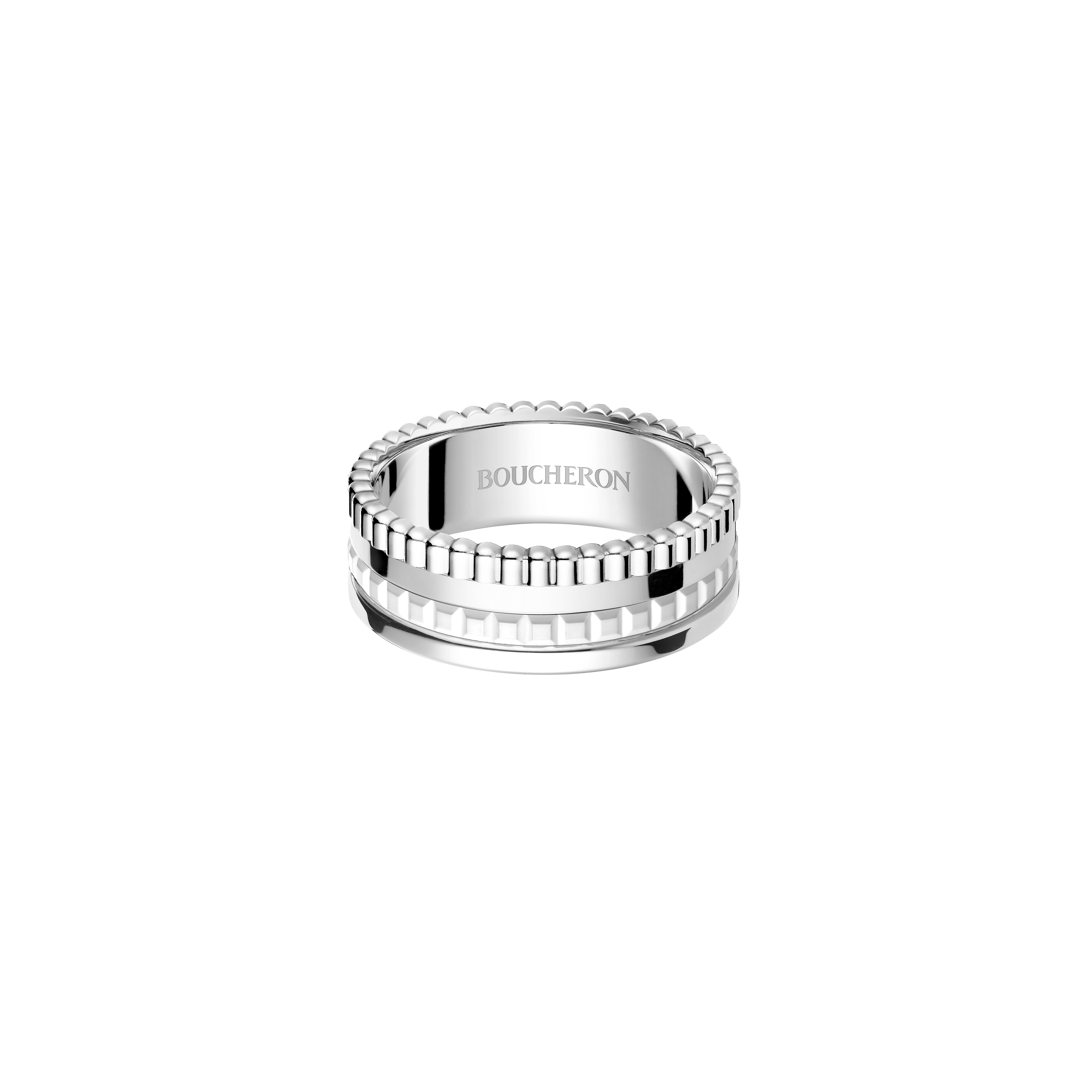 Le look d’Antoine Reinartz, mannequin et égérie mode, n’était pas en reste. Il arborait la broche « Barrette » de 1918, en platine, or et diamants, elle aussi provenant du patrimoine joaillier exceptionnel de Boucheron. La bague Quatre Black Edition en or blanc et PVD noir apportait la touche mode et avant-gardiste indispensable.