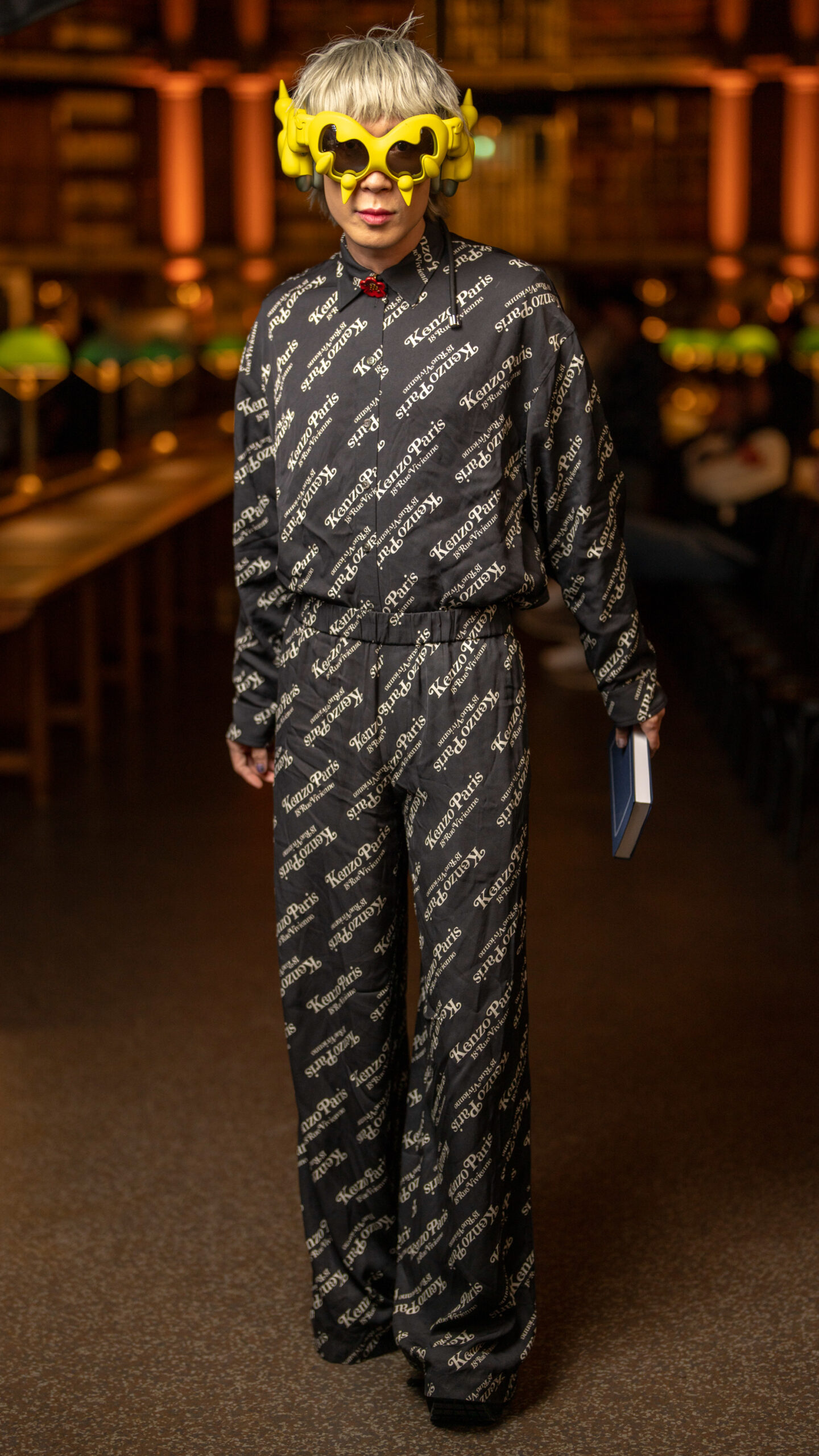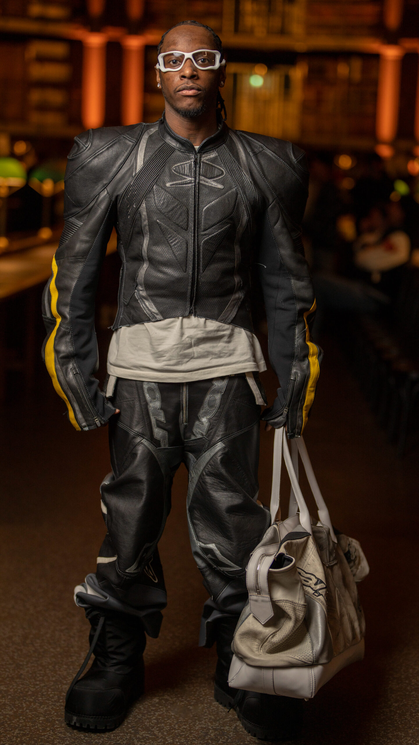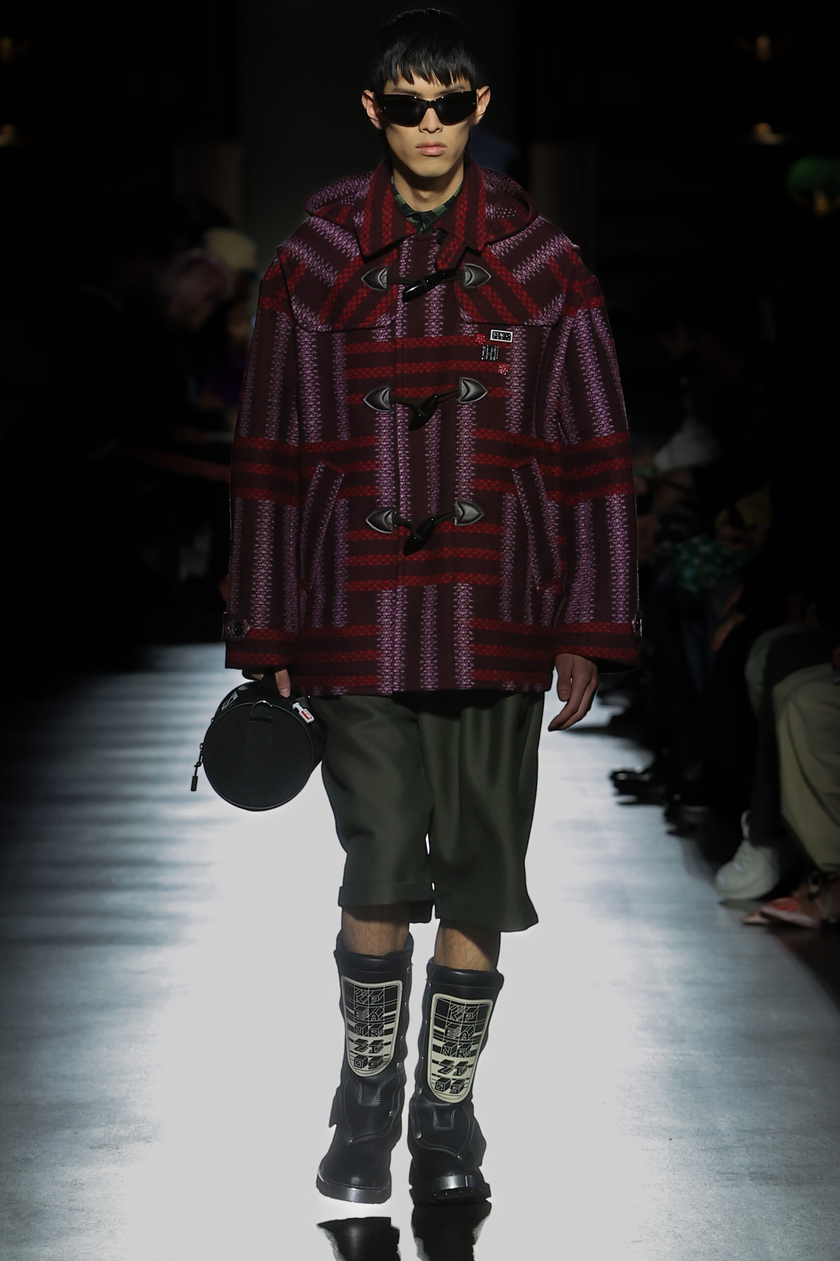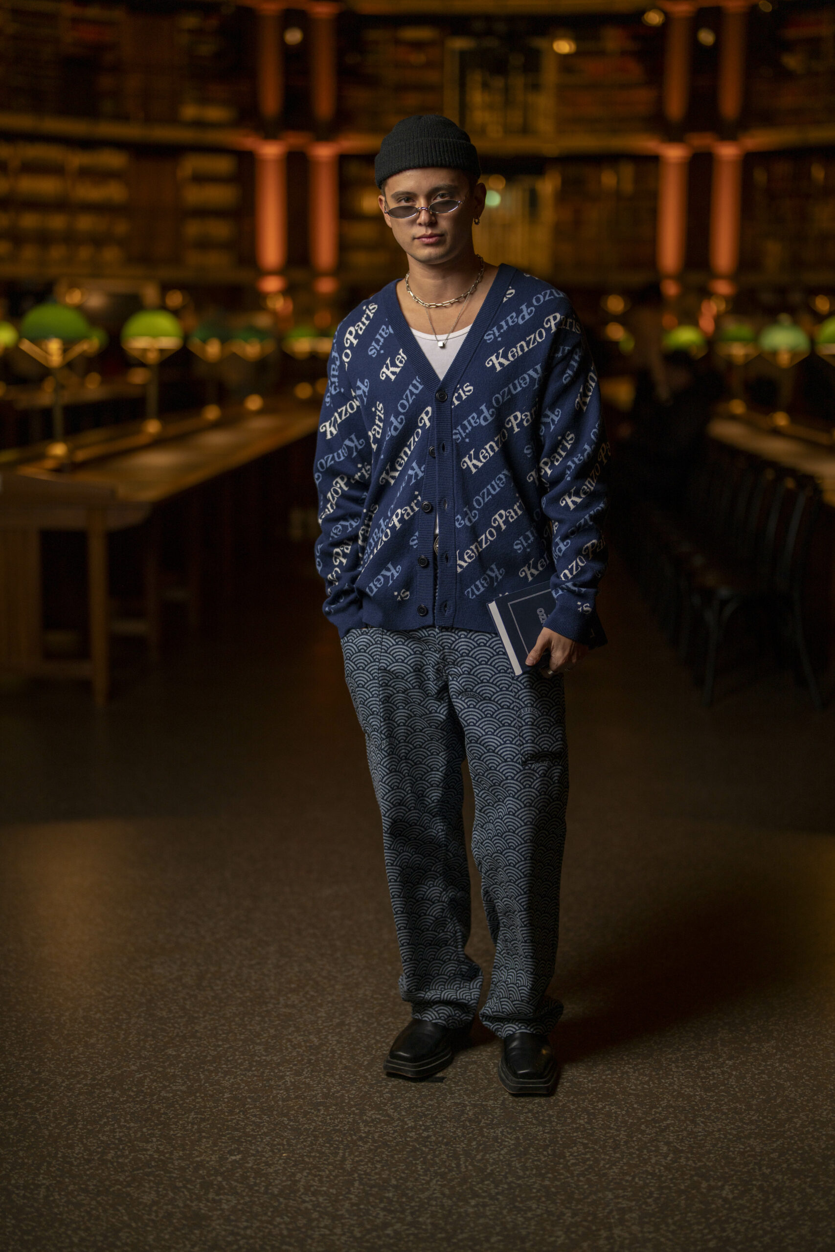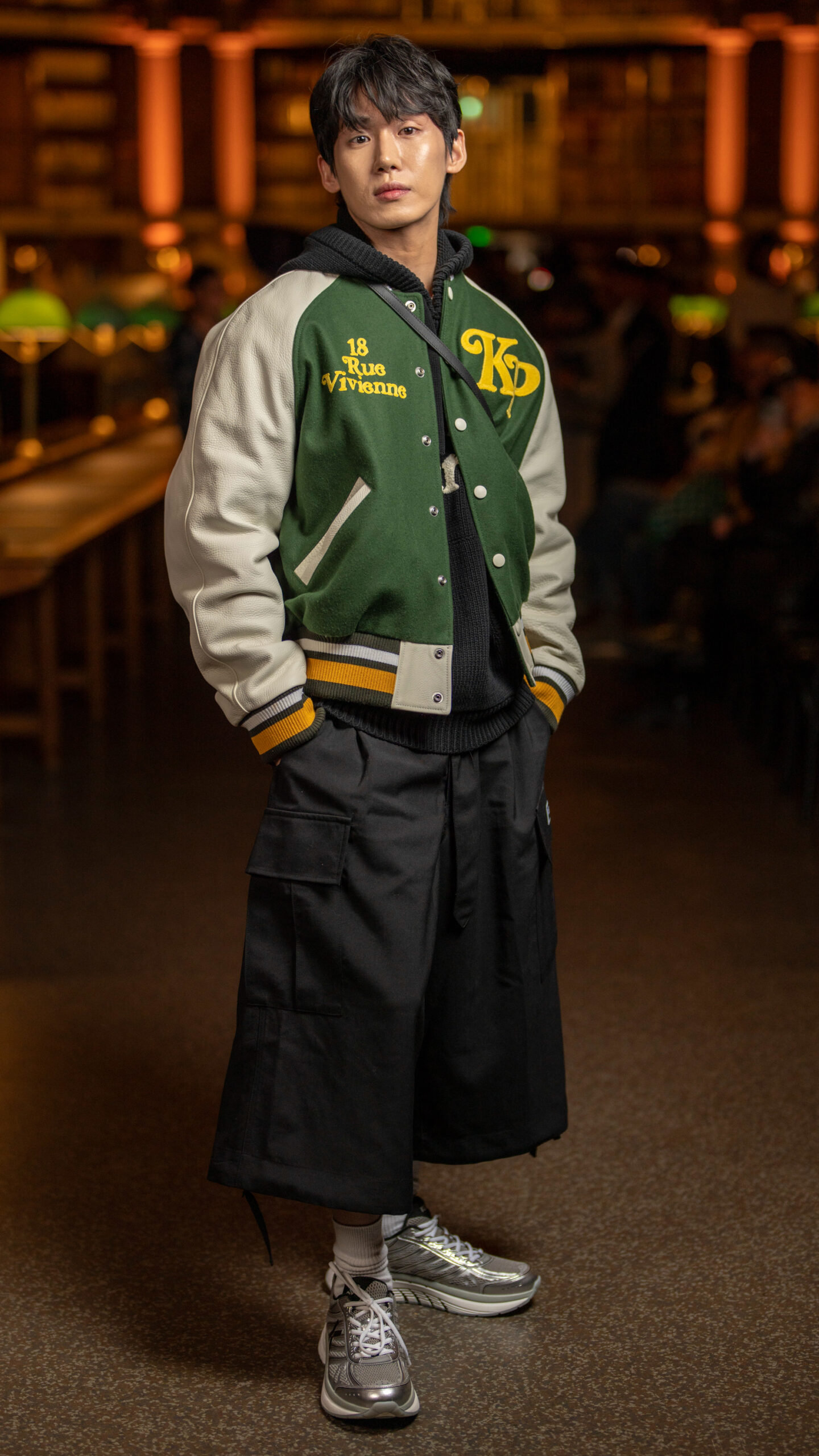 La collection met en avant les textures, du faux fourrure aux tricots tridimensionnels, en passant par les métalliques futuristes et les jacquards. Les costumes Gakuran, les cotons résistants et le denim dans diverses nuances renforcent l’écho entre passé et futur, tradition et innovation.