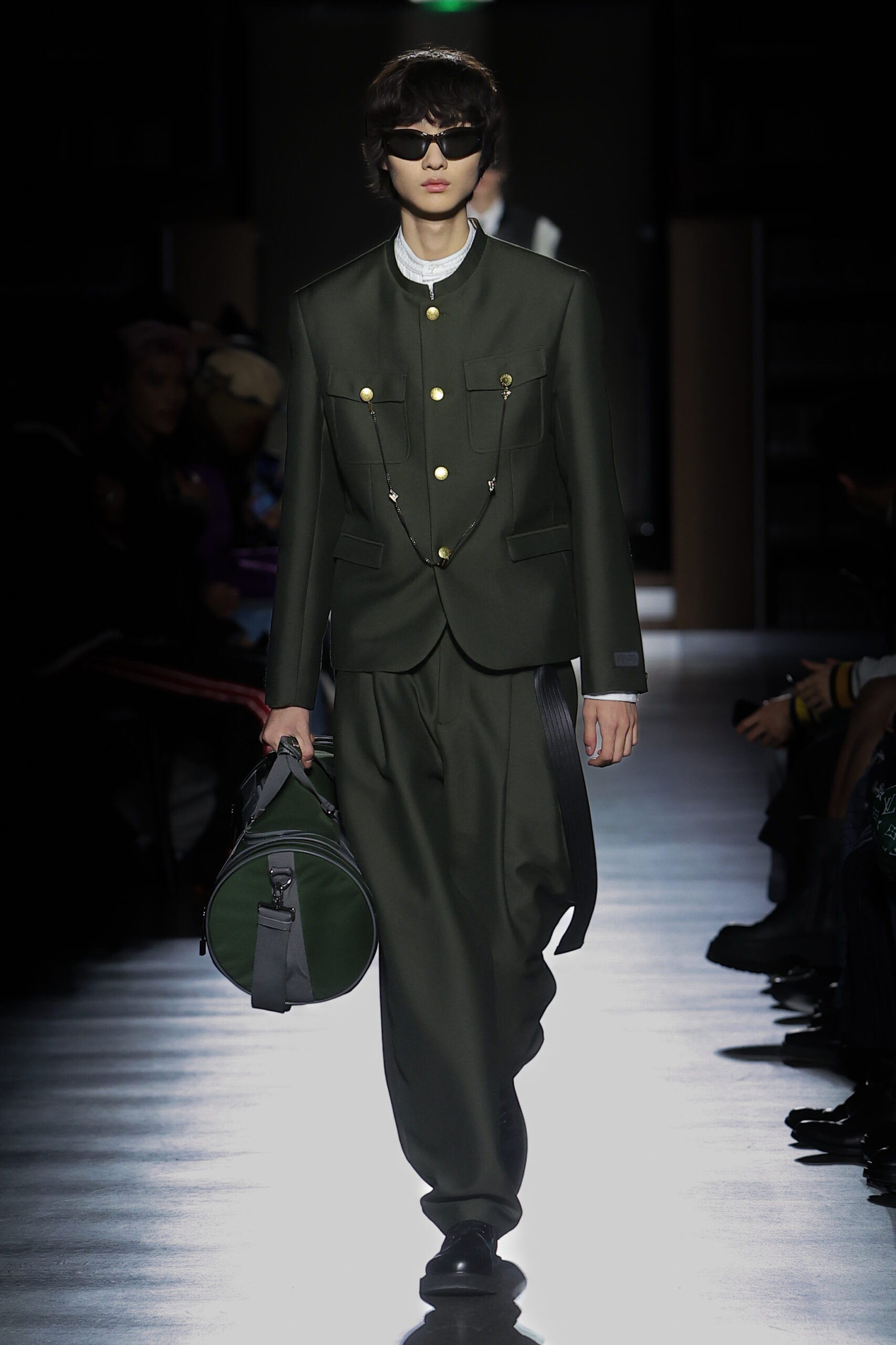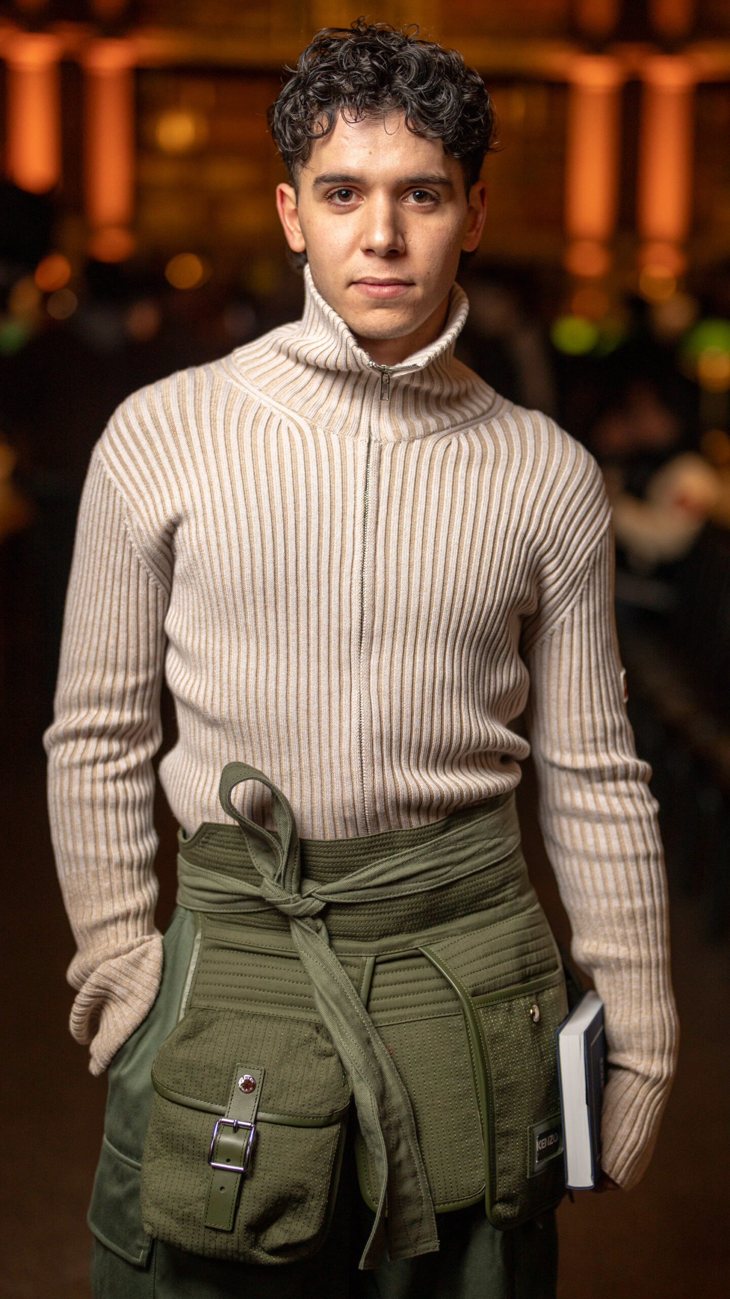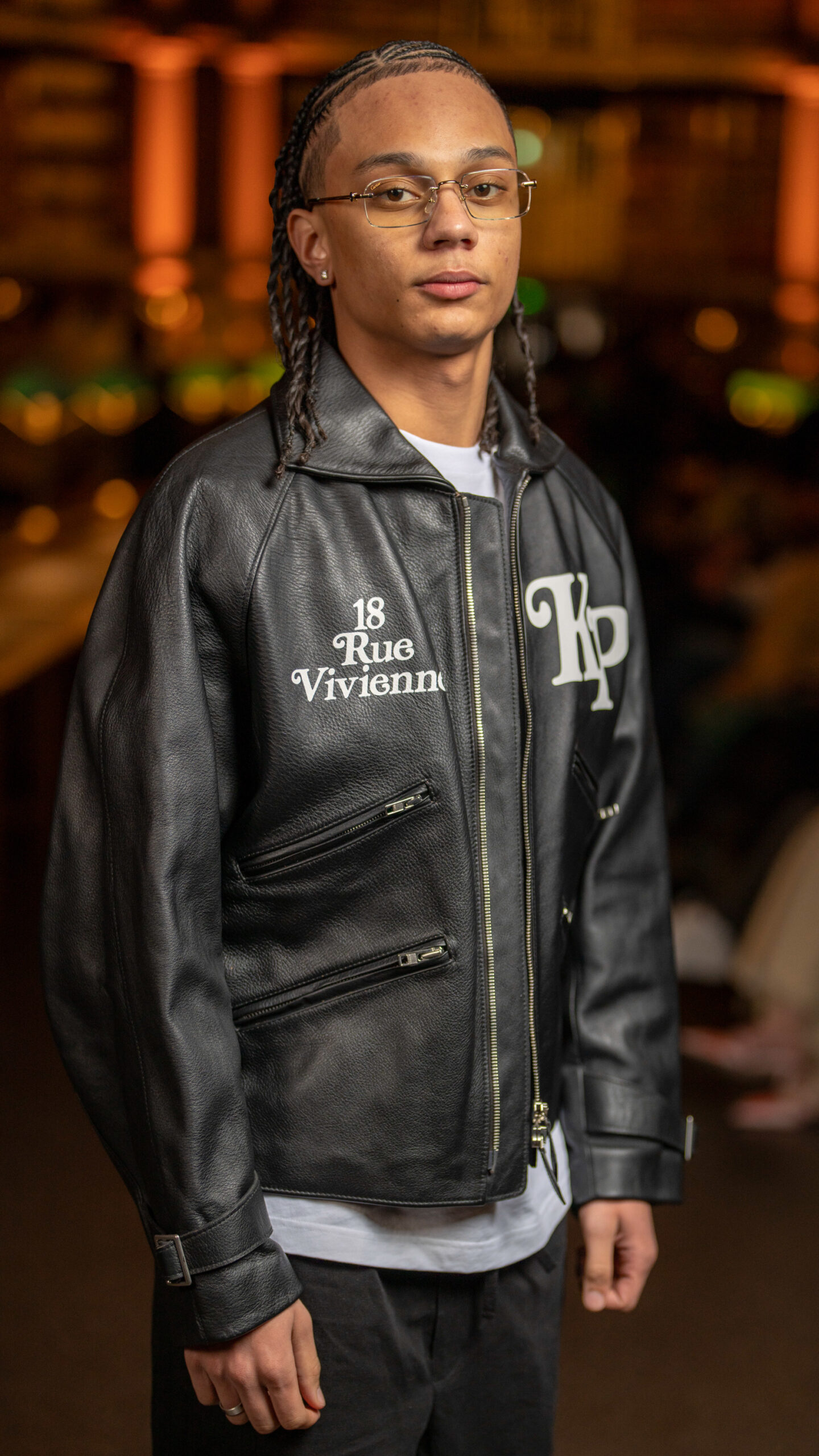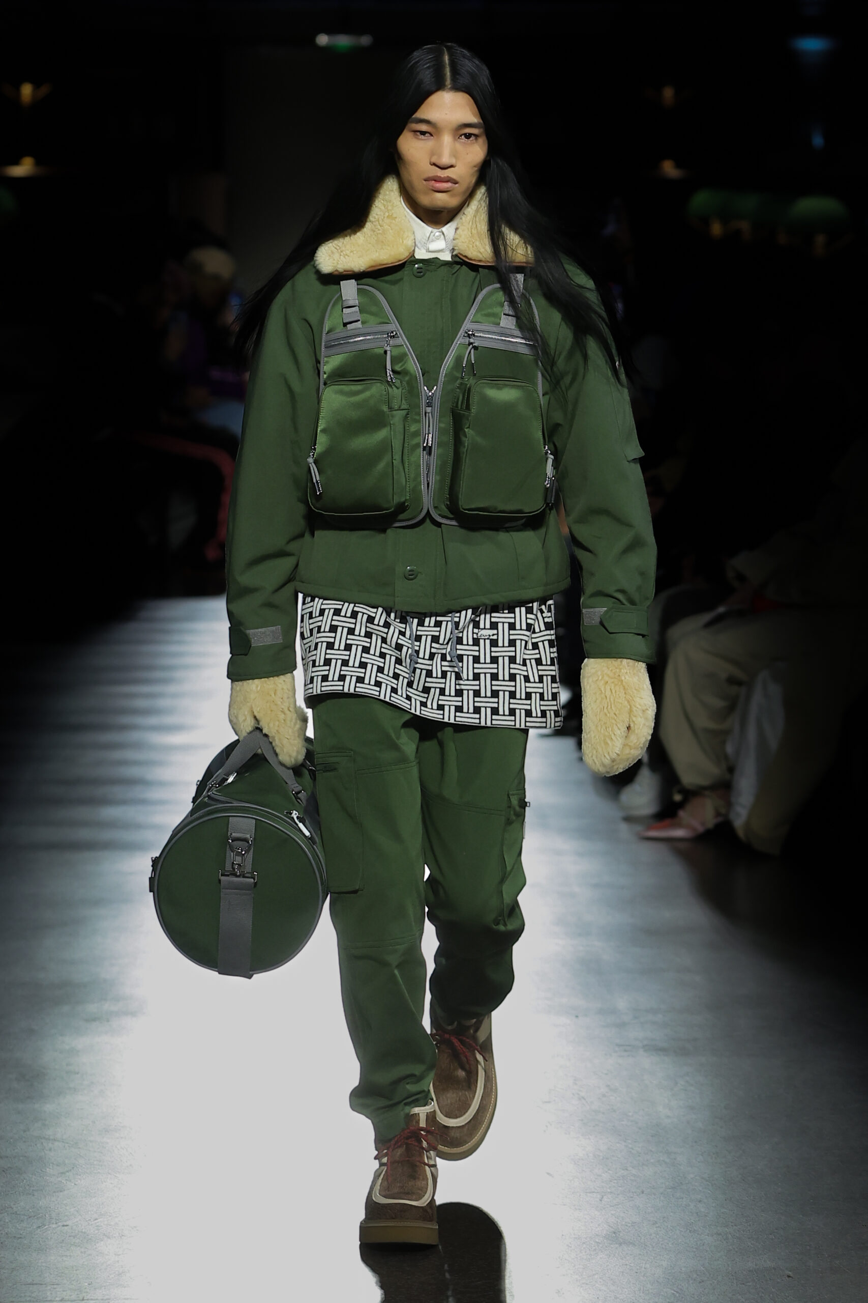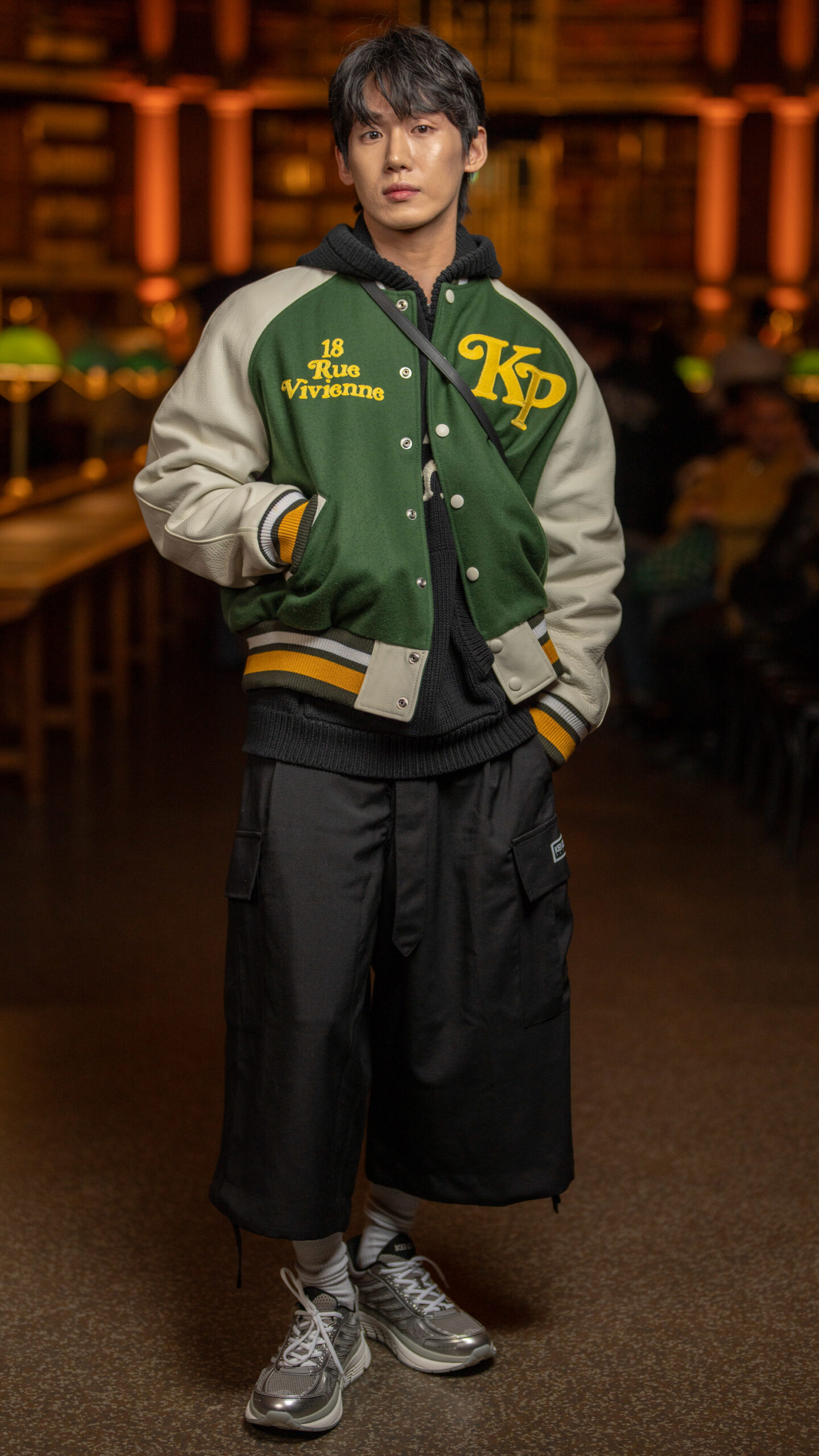 La collection met en avant les textures, du faux fourrure aux tricots tridimensionnels, en passant par les métalliques futuristes et les jacquards. Les costumes Gakuran, les cotons résistants et le denim dans diverses nuances renforcent l’écho entre passé et futur, tradition et innovation.
