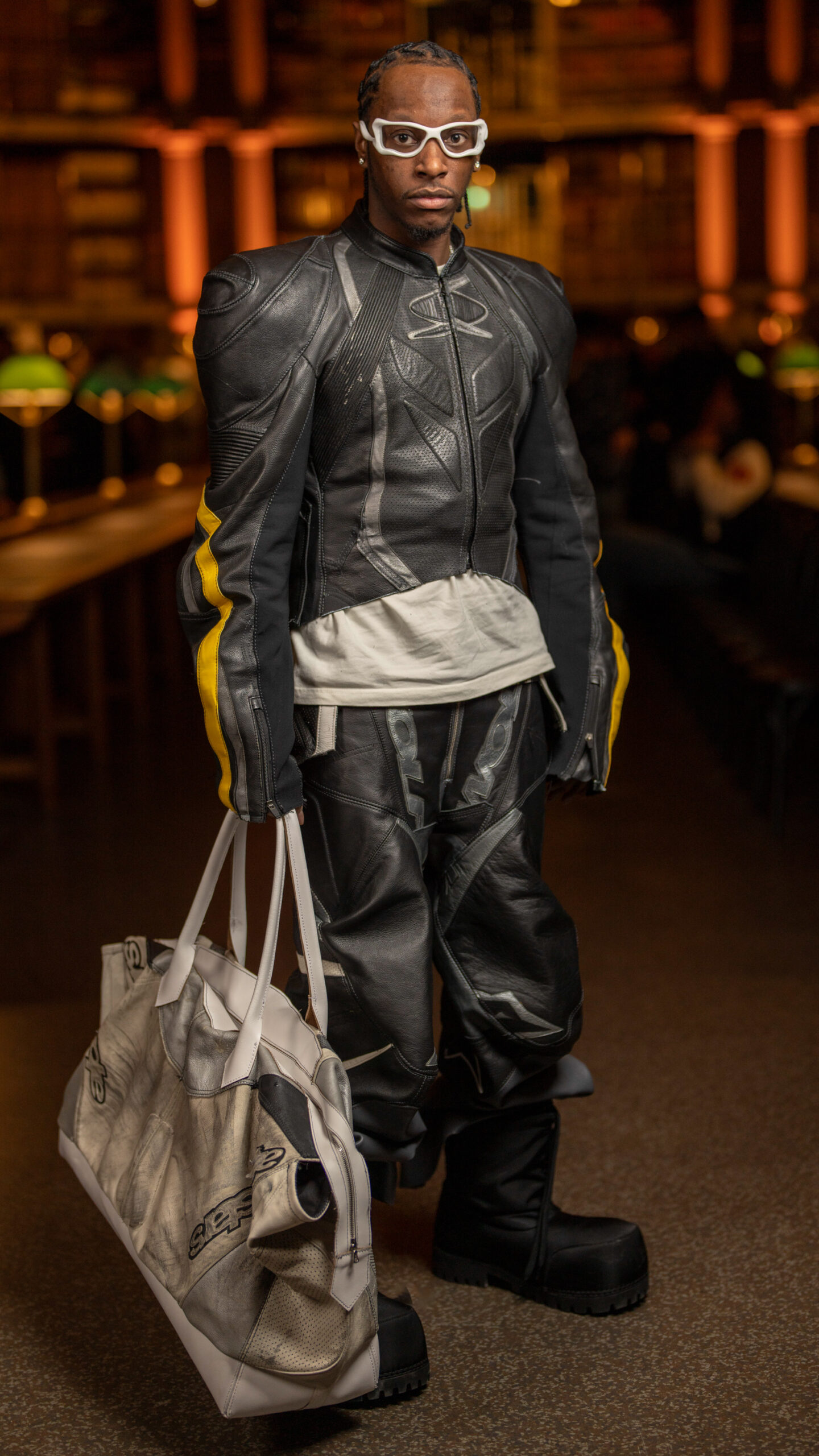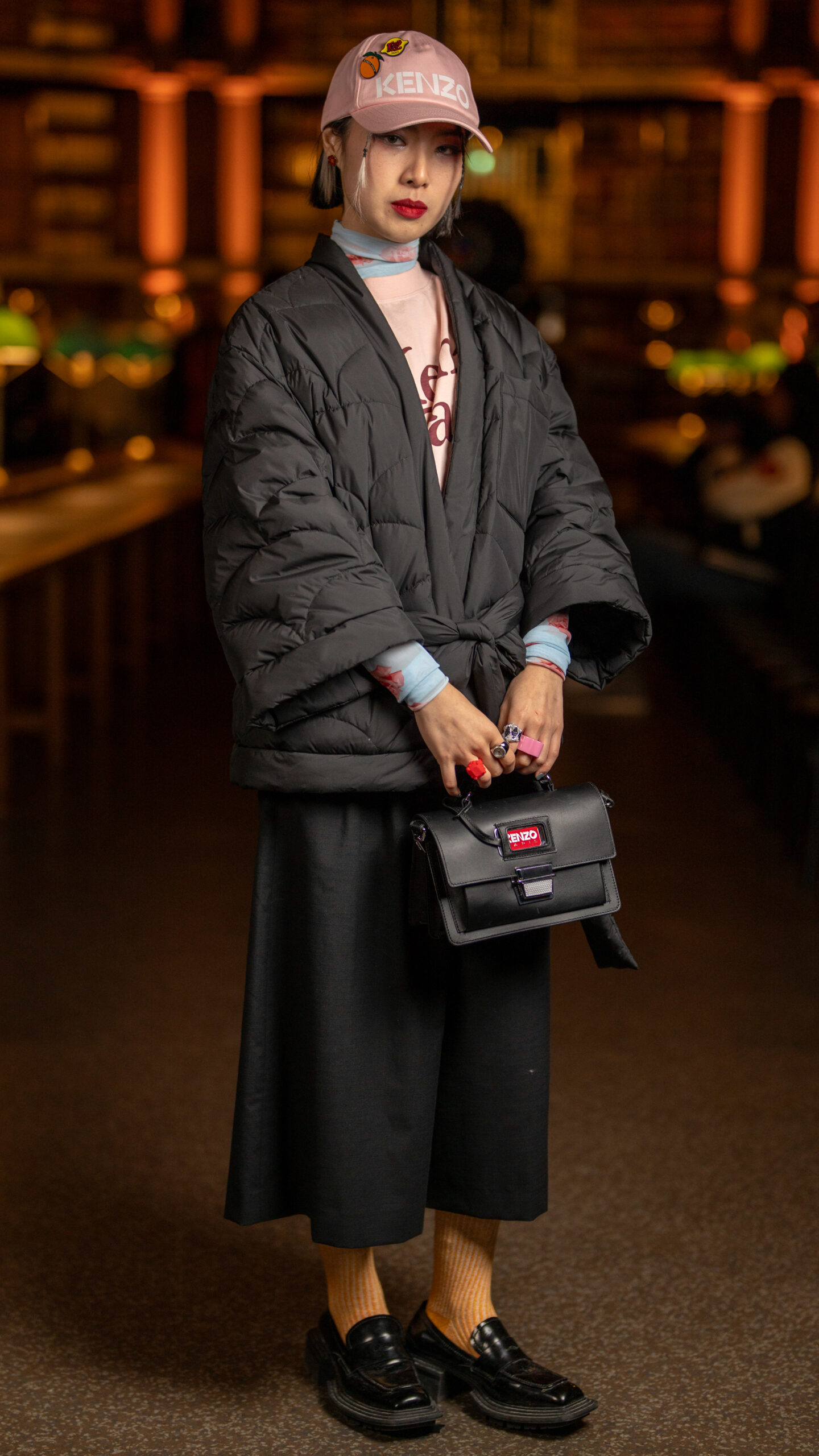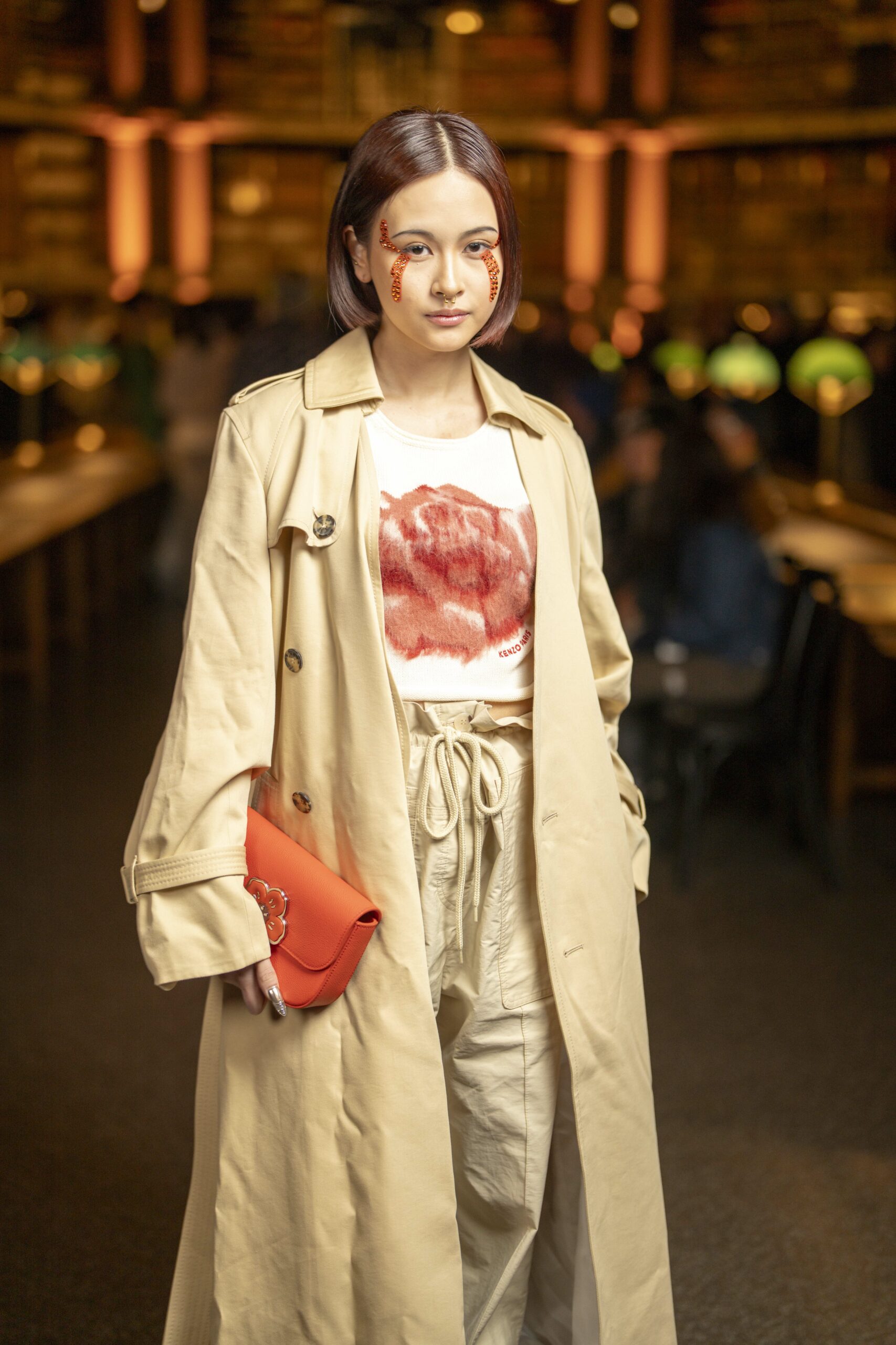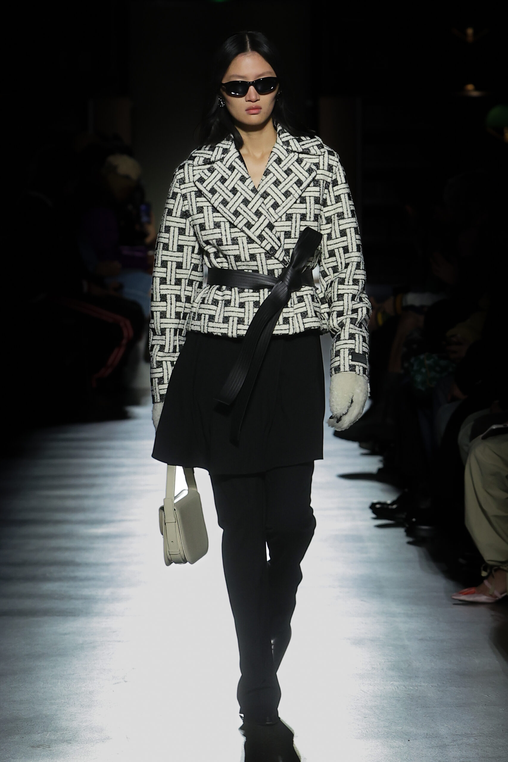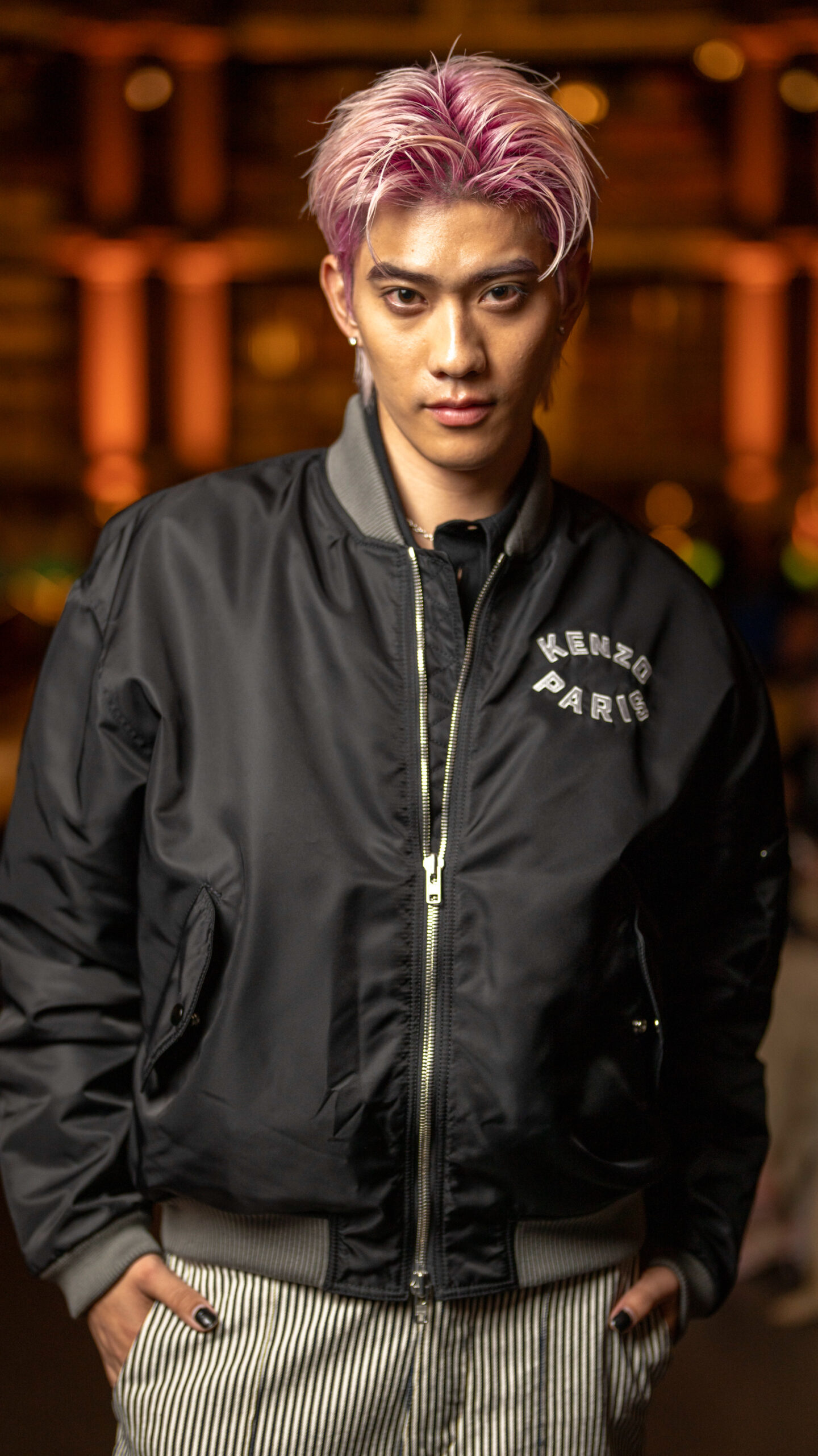 La collection met en avant les textures, du faux fourrure aux tricots tridimensionnels, en passant par les métalliques futuristes et les jacquards. Les costumes Gakuran, les cotons résistants et le denim dans diverses nuances renforcent l’écho entre passé et futur, tradition et innovation.