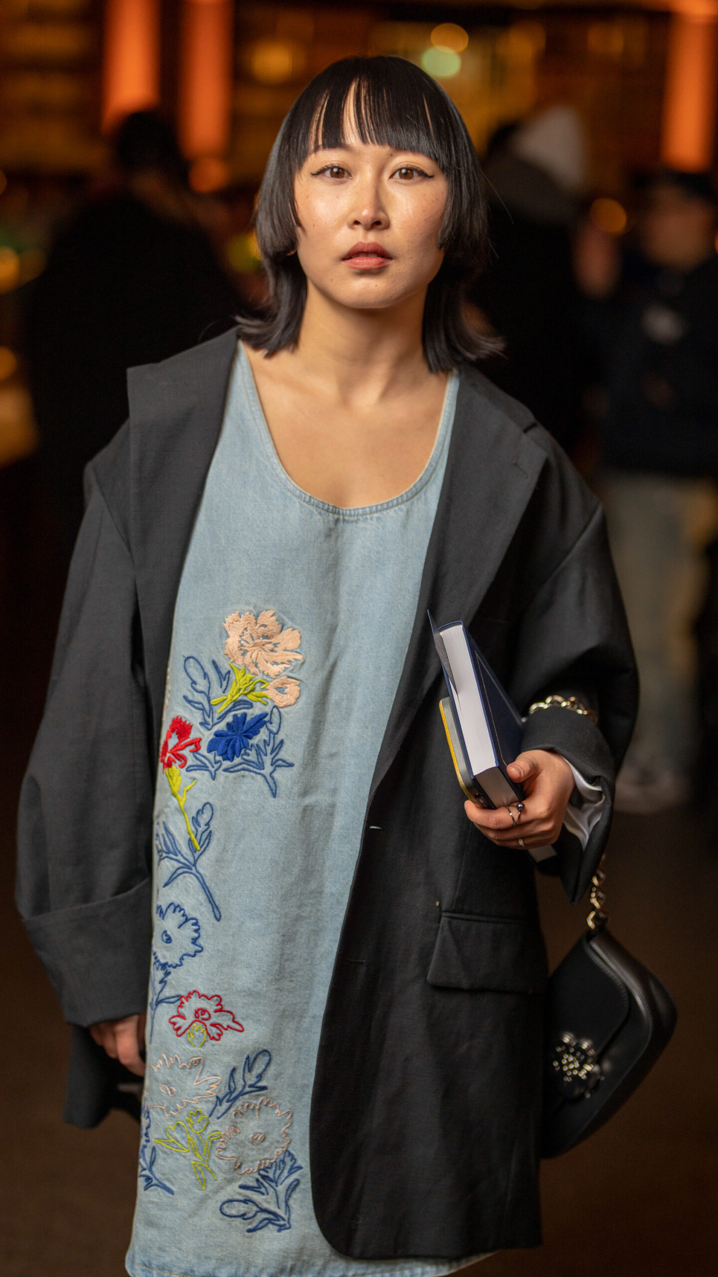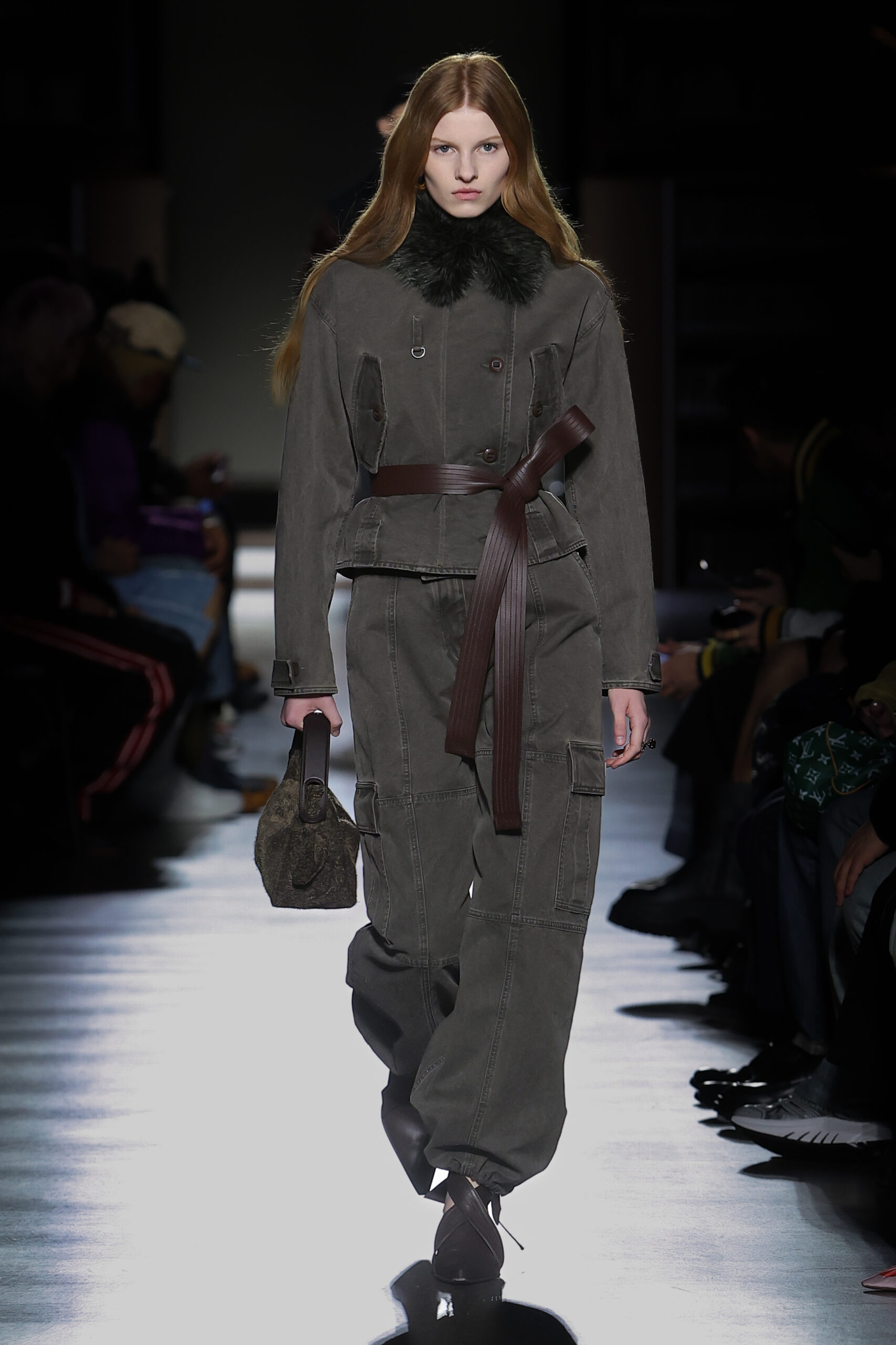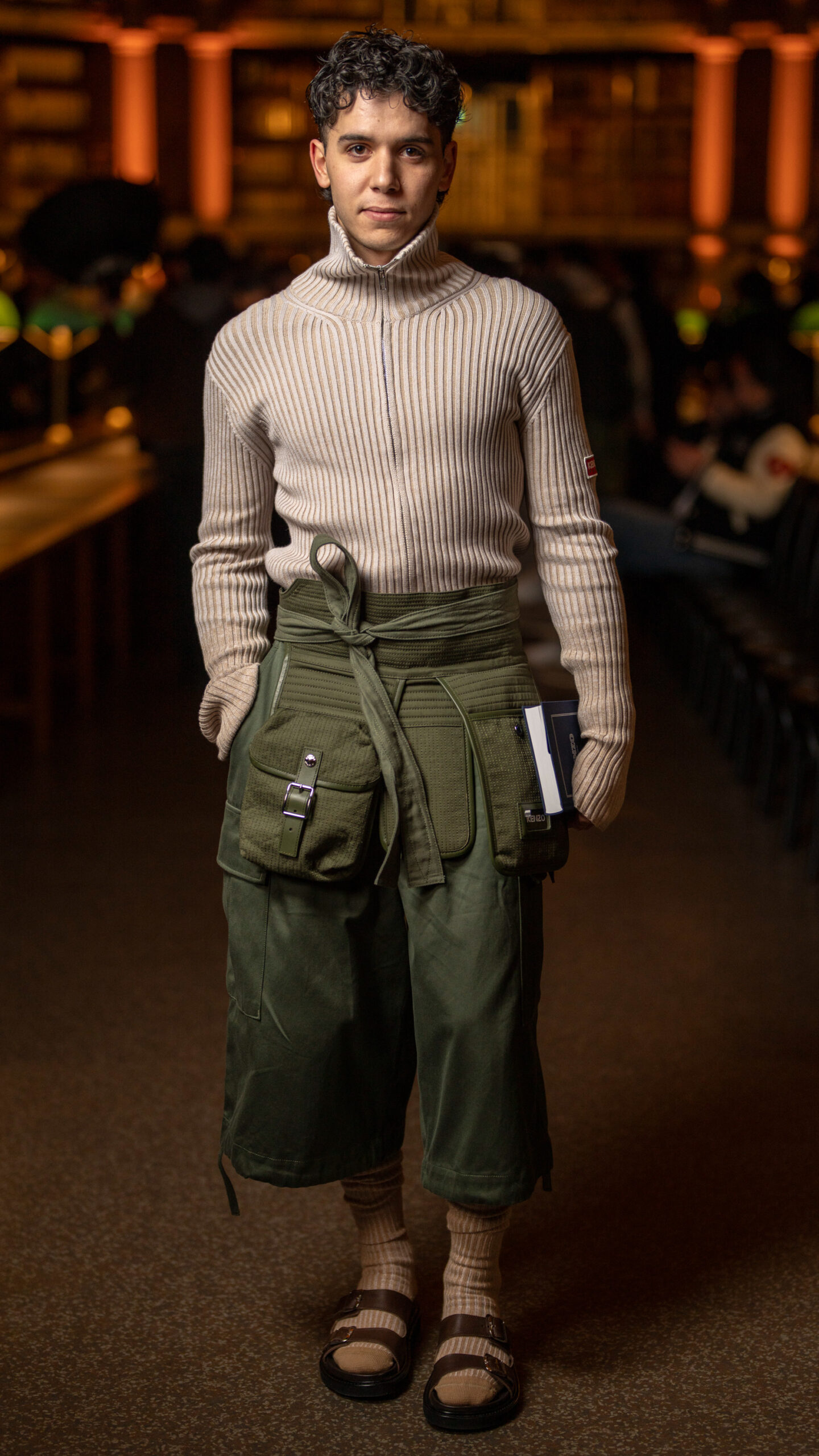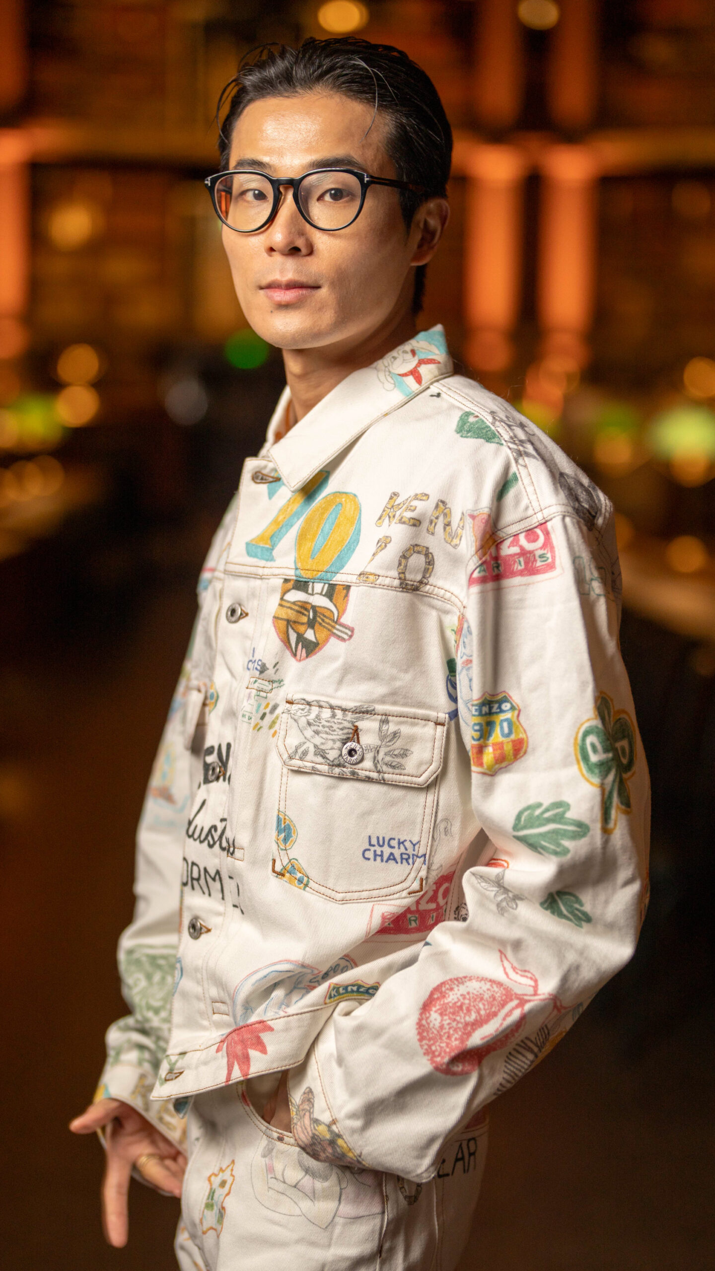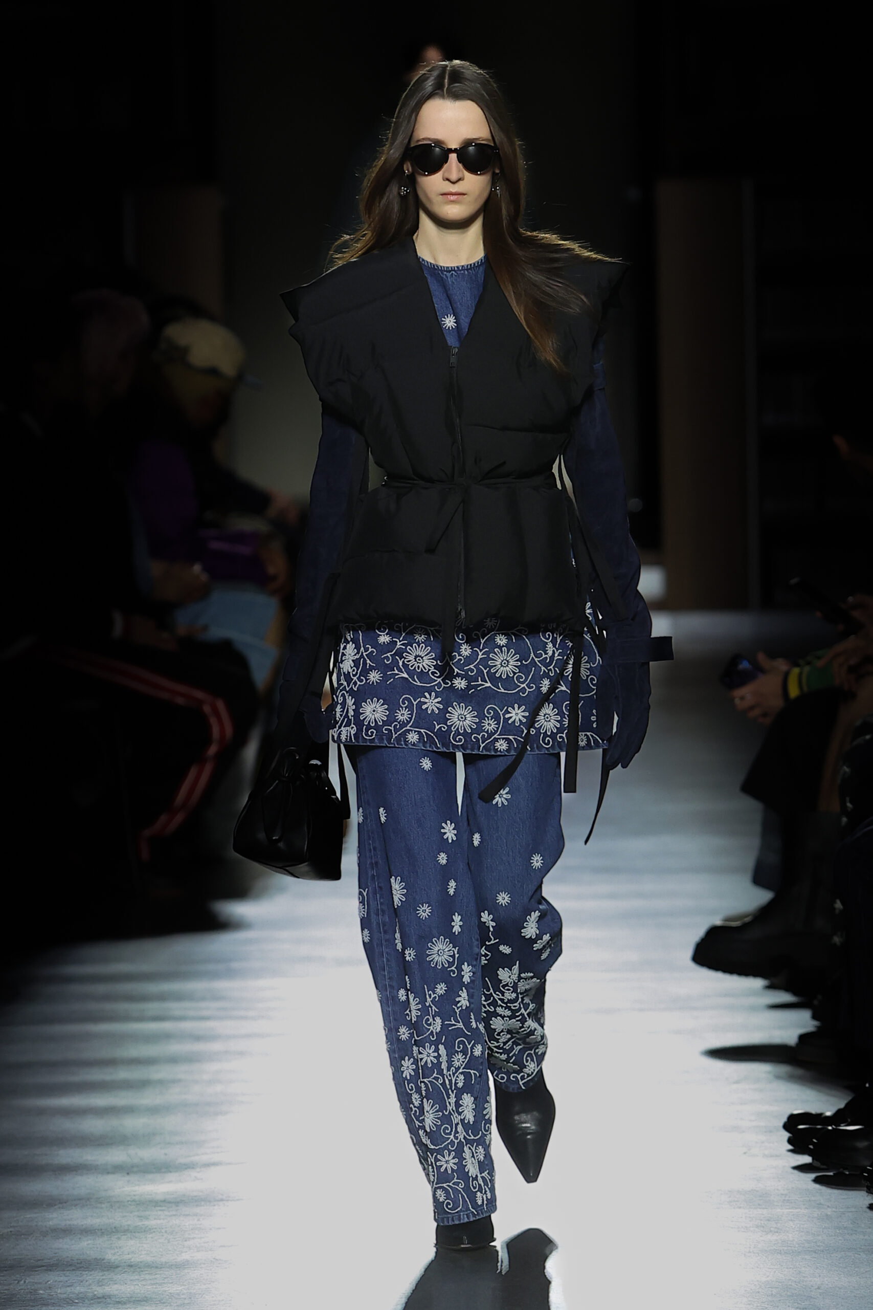 La collection met en avant les textures, du faux fourrure aux tricots tridimensionnels, en passant par les métalliques futuristes et les jacquards. Les costumes Gakuran, les cotons résistants et le denim dans diverses nuances renforcent l’écho entre passé et futur, tradition et innovation.