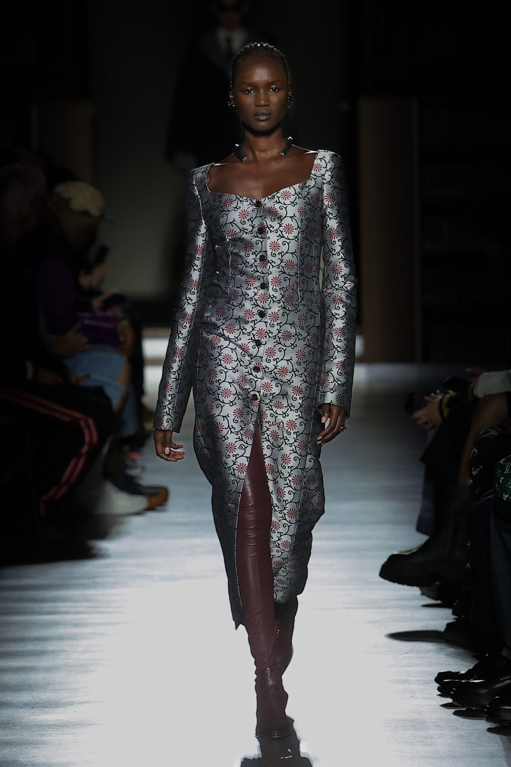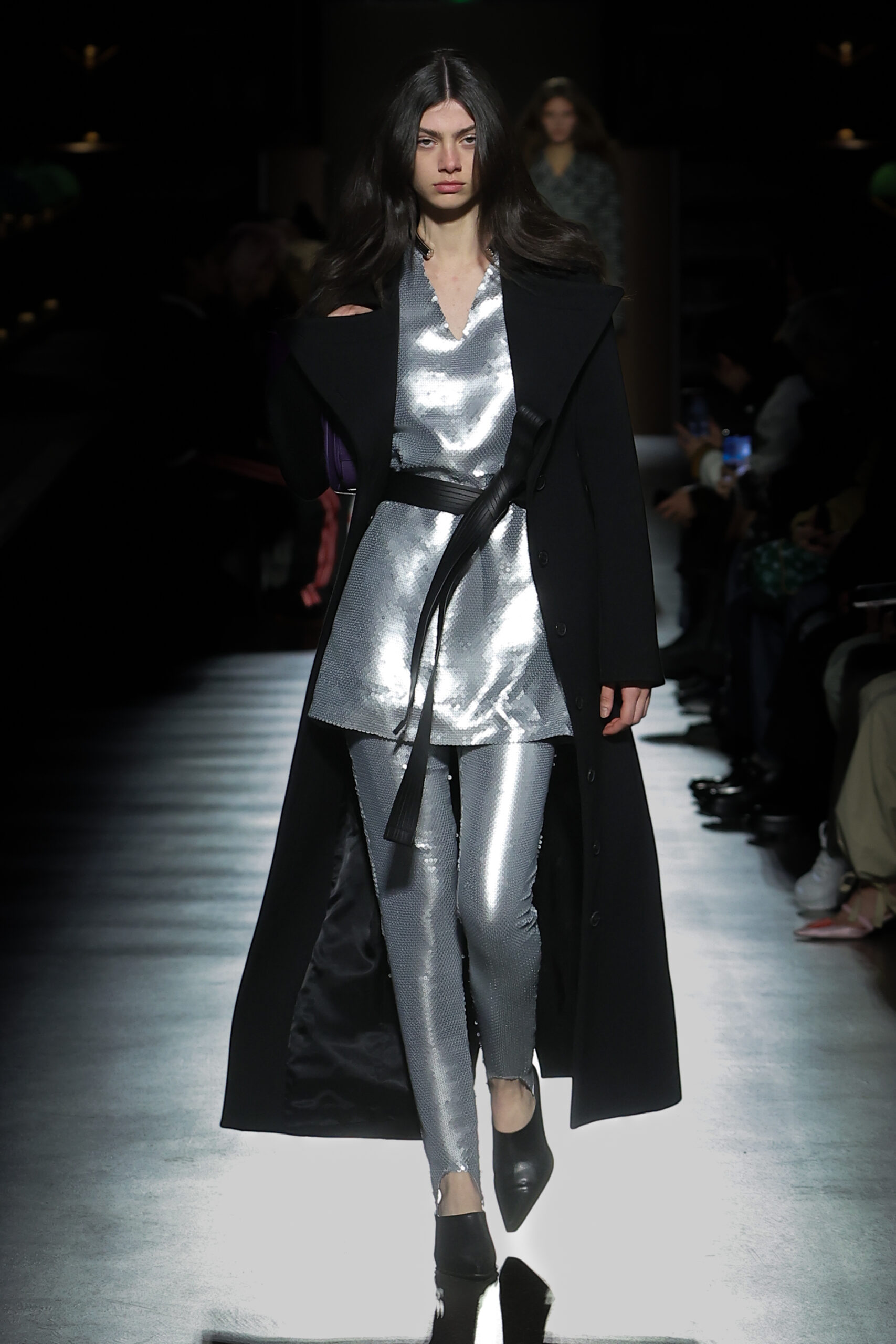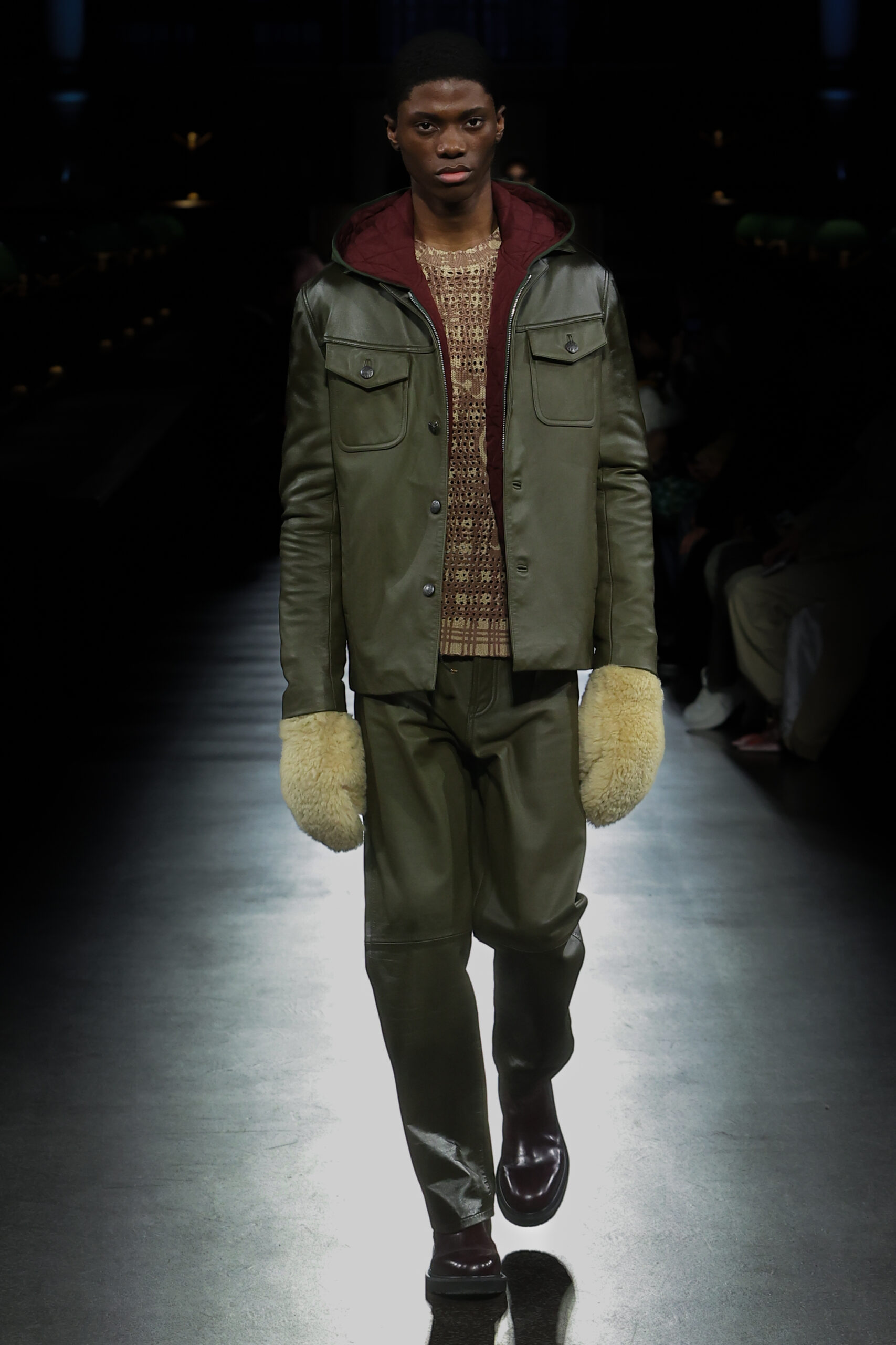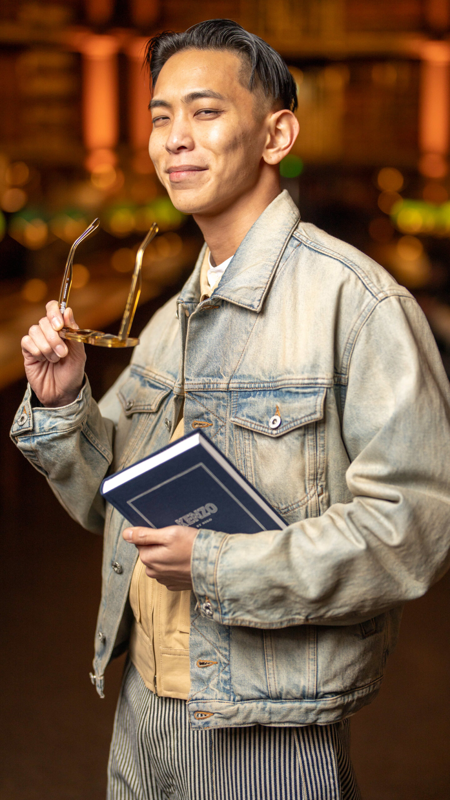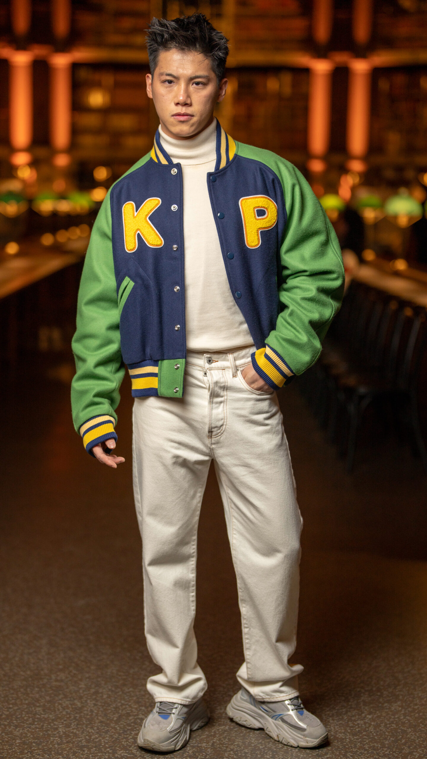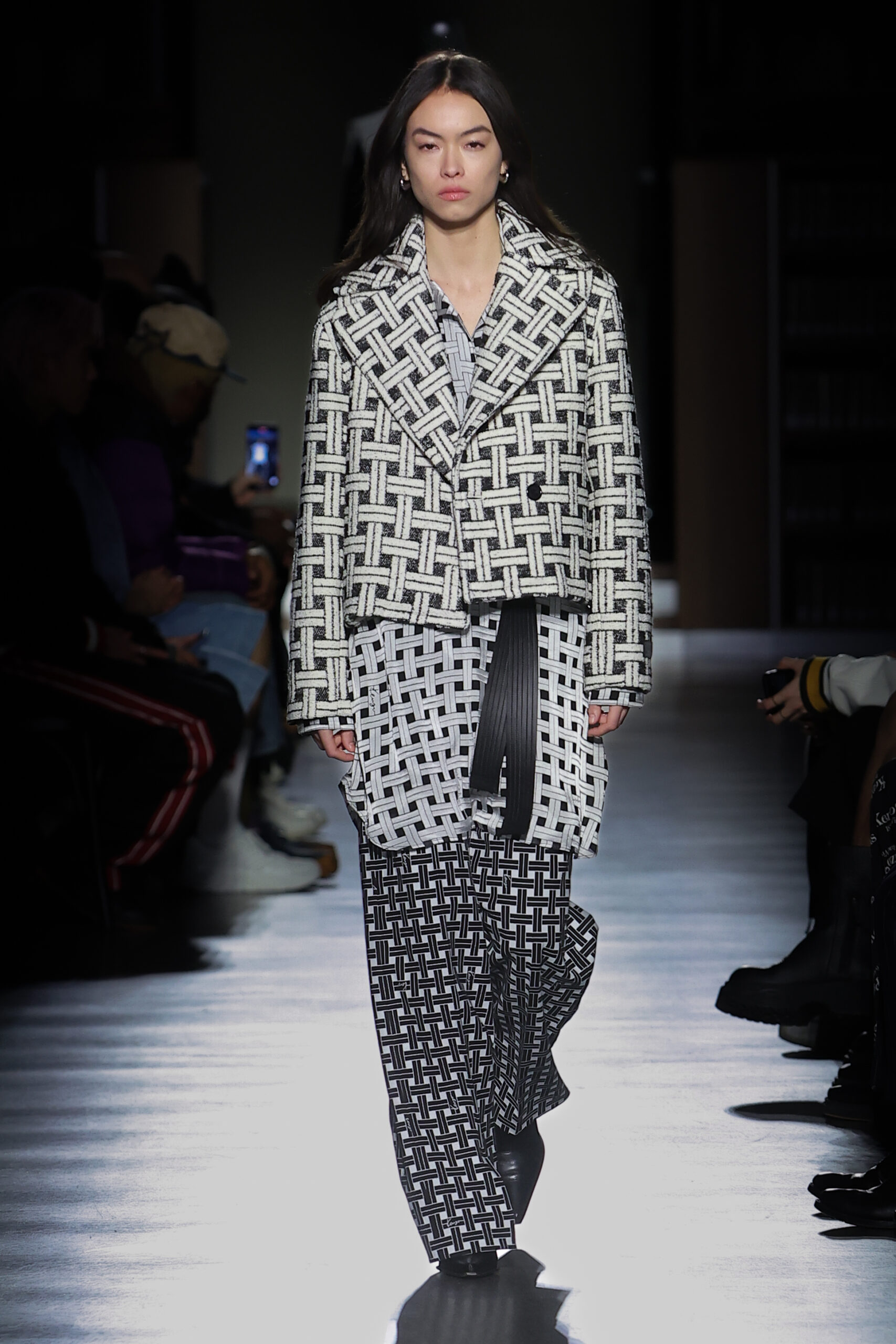 La collection met en avant les textures, du faux fourrure aux tricots tridimensionnels, en passant par les métalliques futuristes et les jacquards. Les costumes Gakuran, les cotons résistants et le denim dans diverses nuances renforcent l’écho entre passé et futur, tradition et innovation.