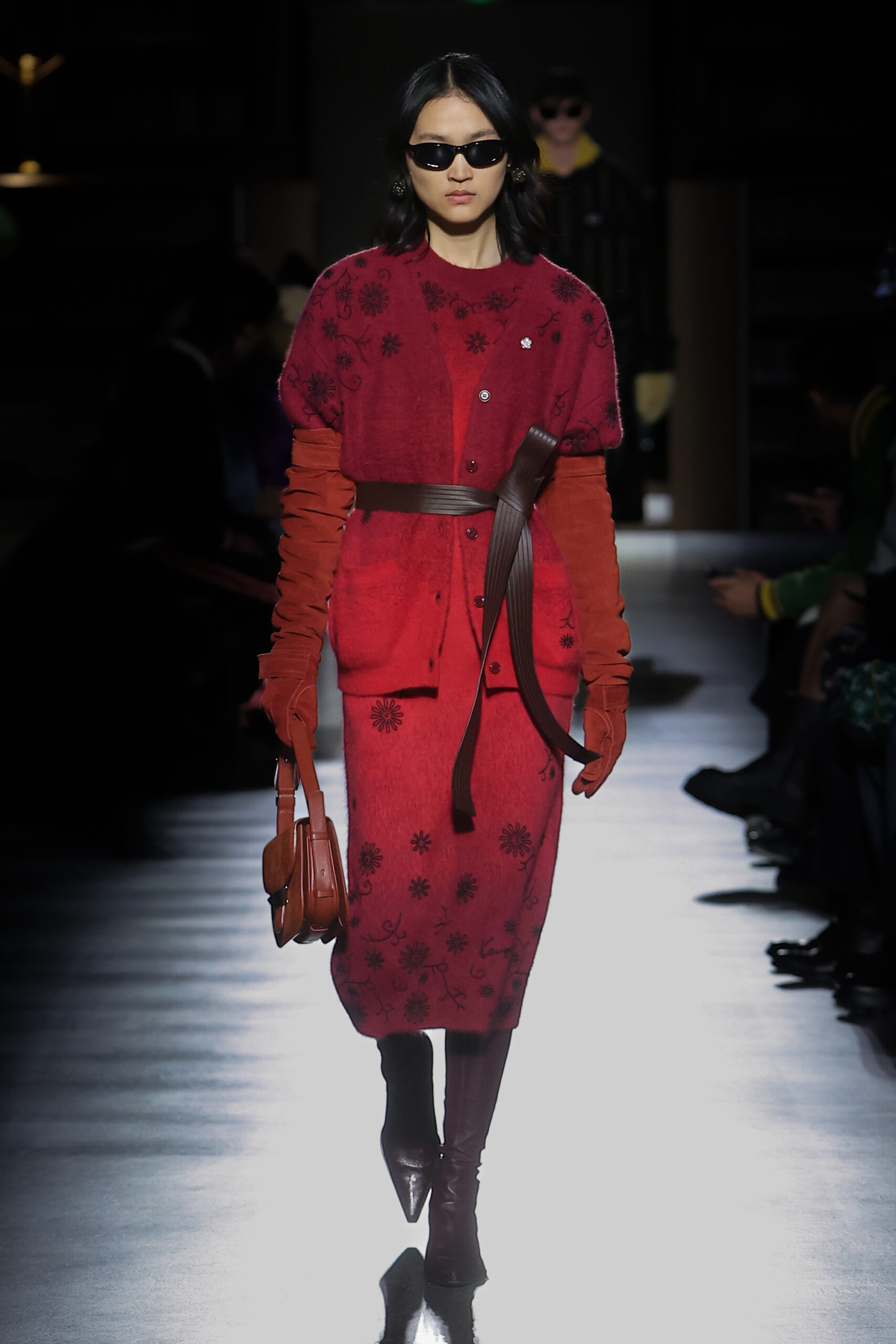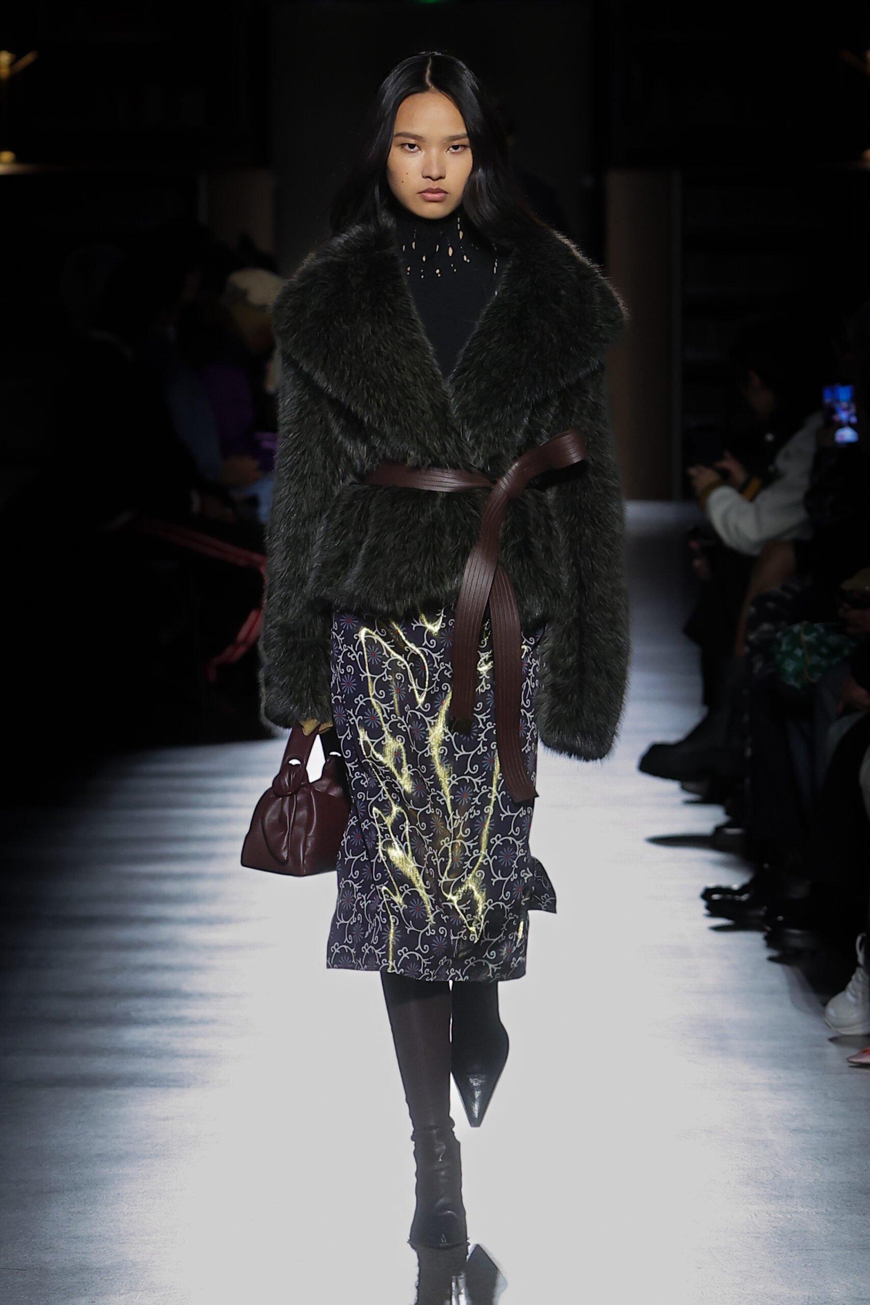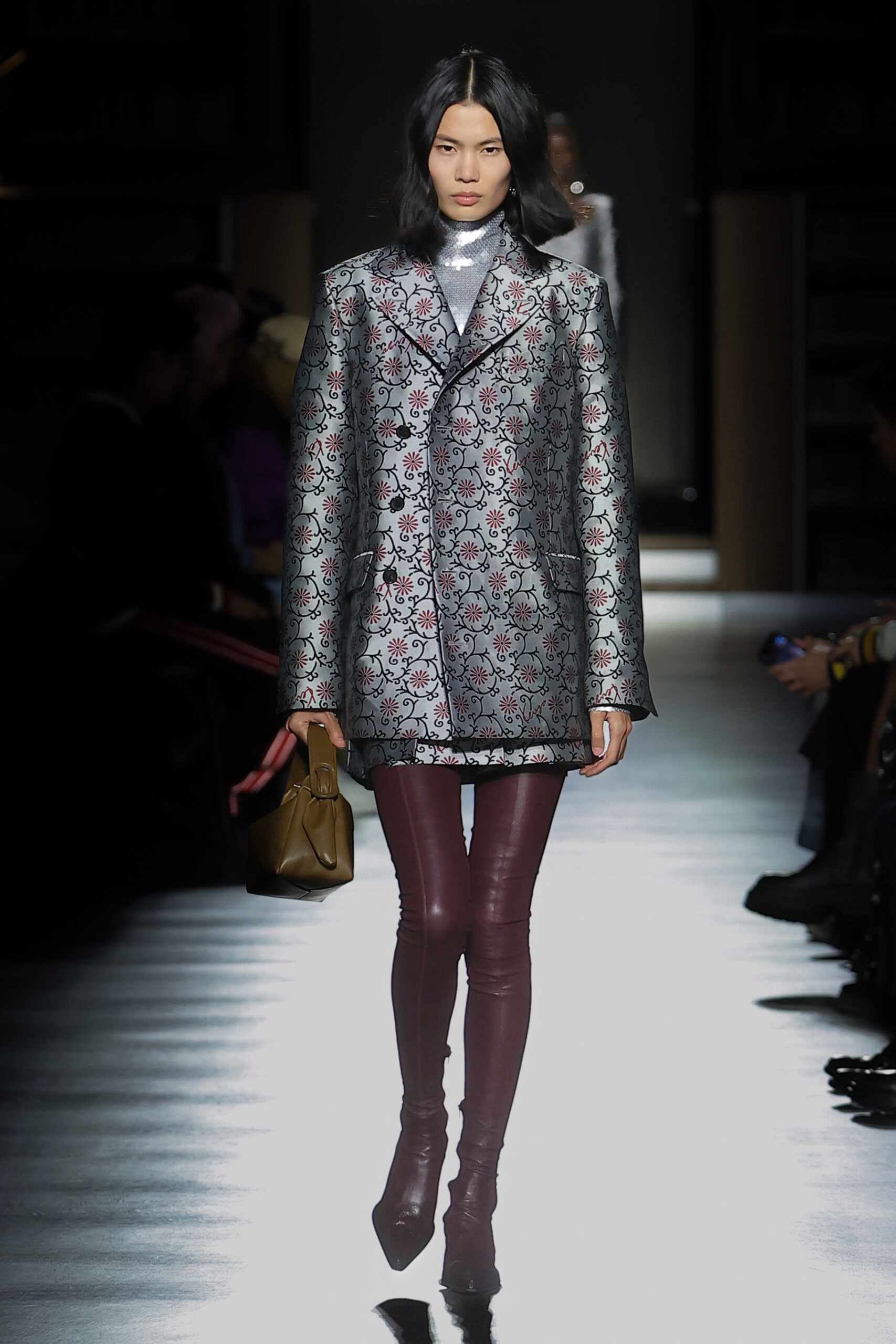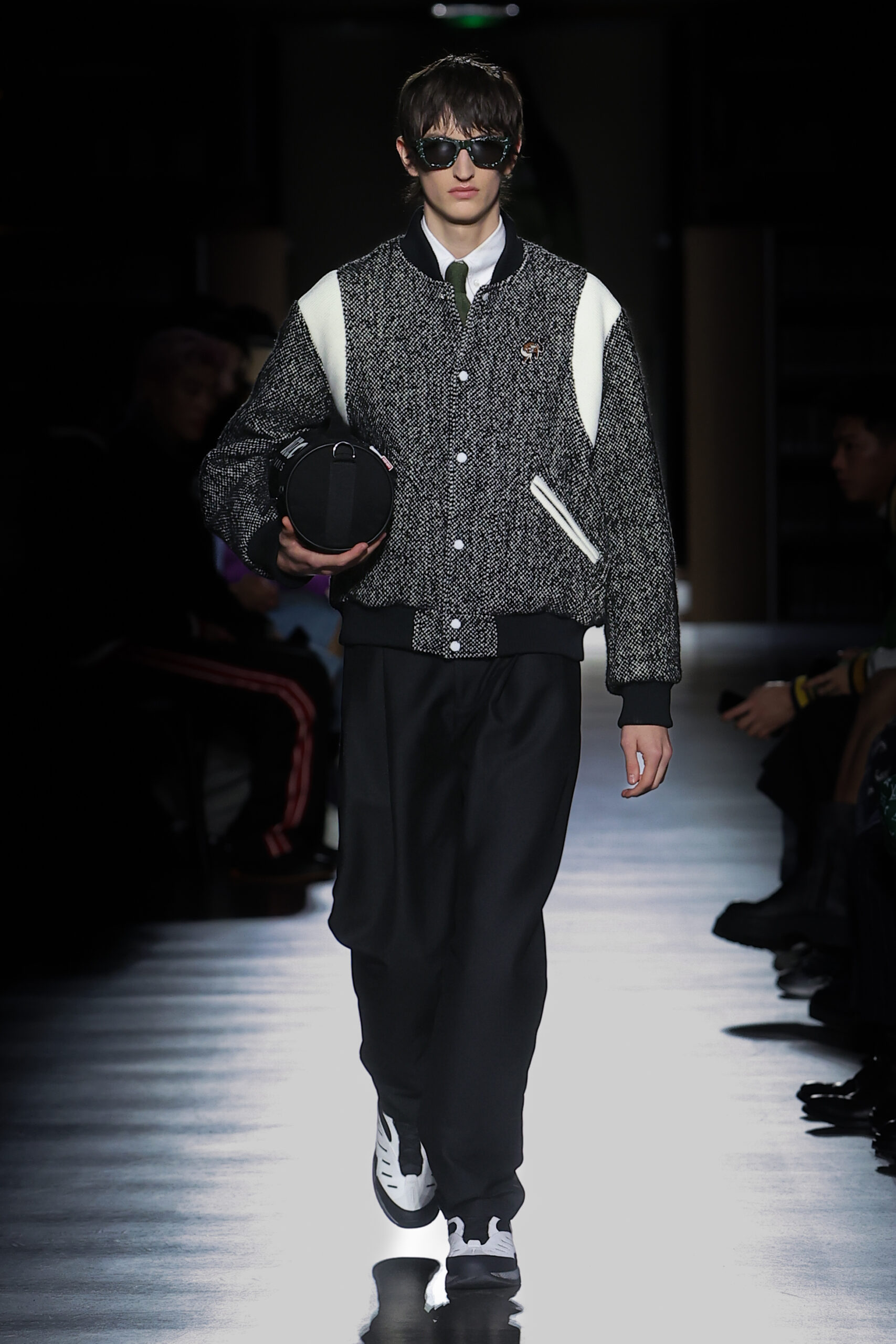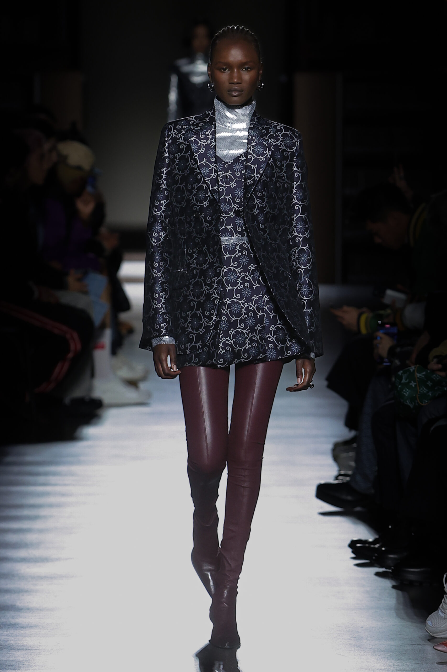 La collection met en avant les textures, du faux fourrure aux tricots tridimensionnels, en passant par les métalliques futuristes et les jacquards. Les costumes Gakuran, les cotons résistants et le denim dans diverses nuances renforcent l’écho entre passé et futur, tradition et innovation.