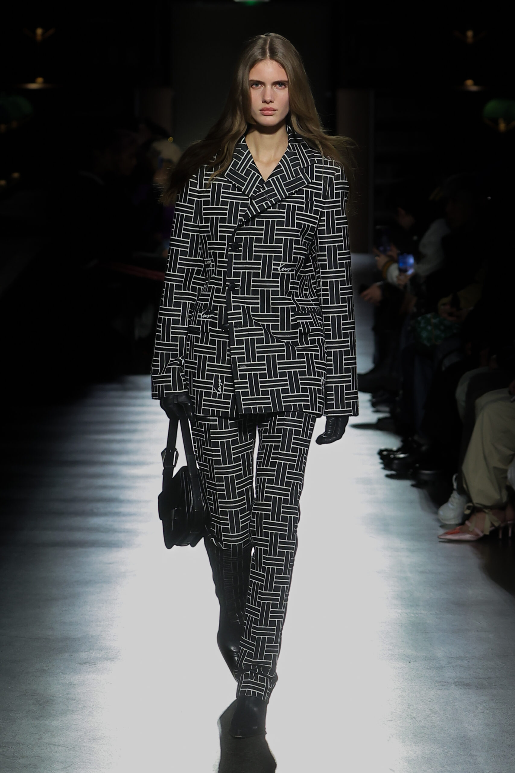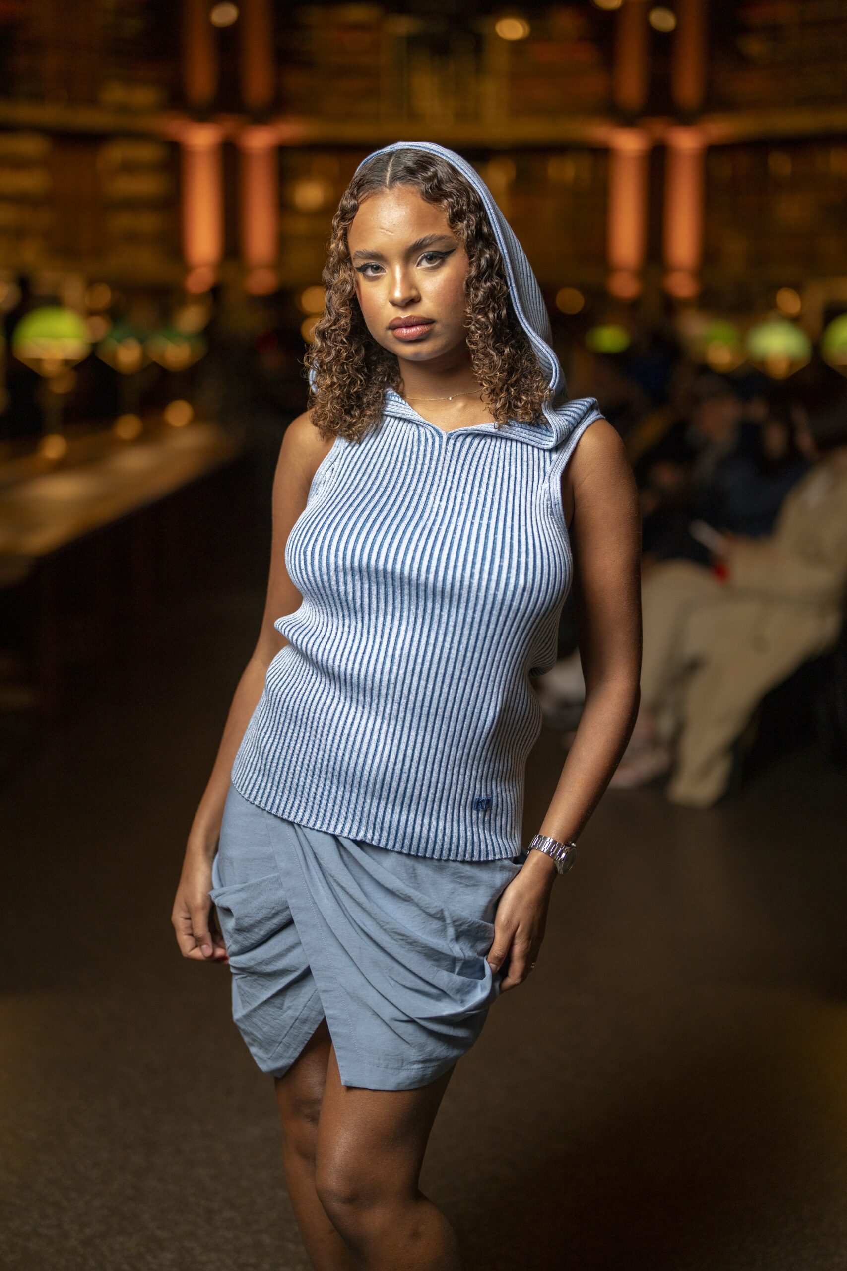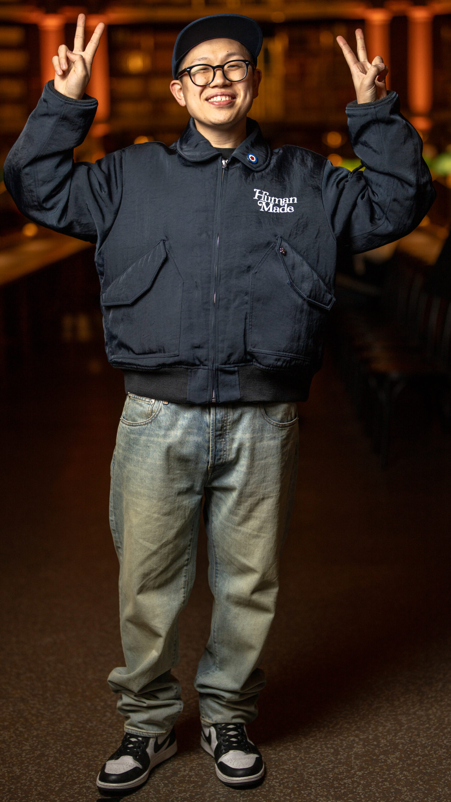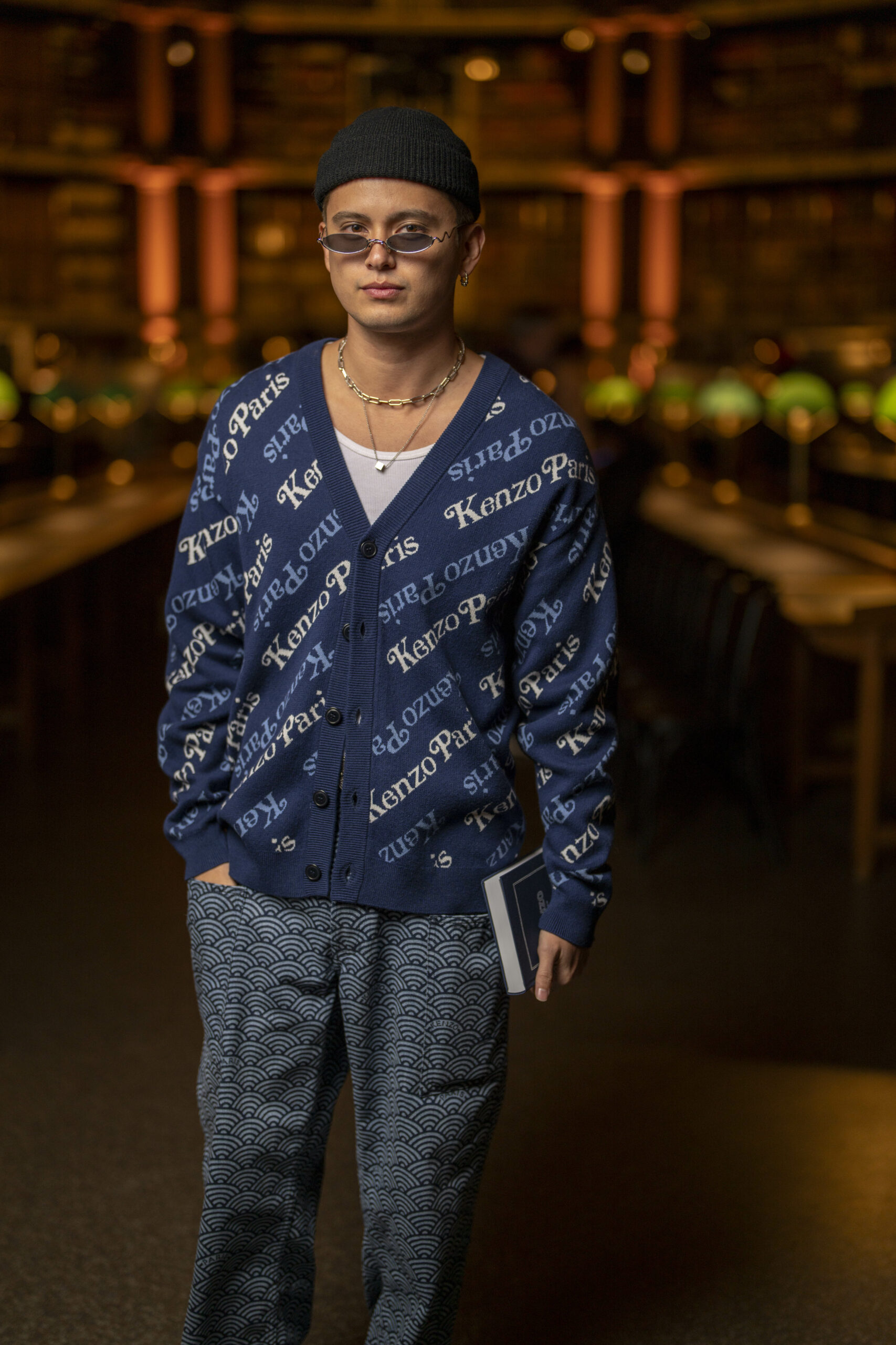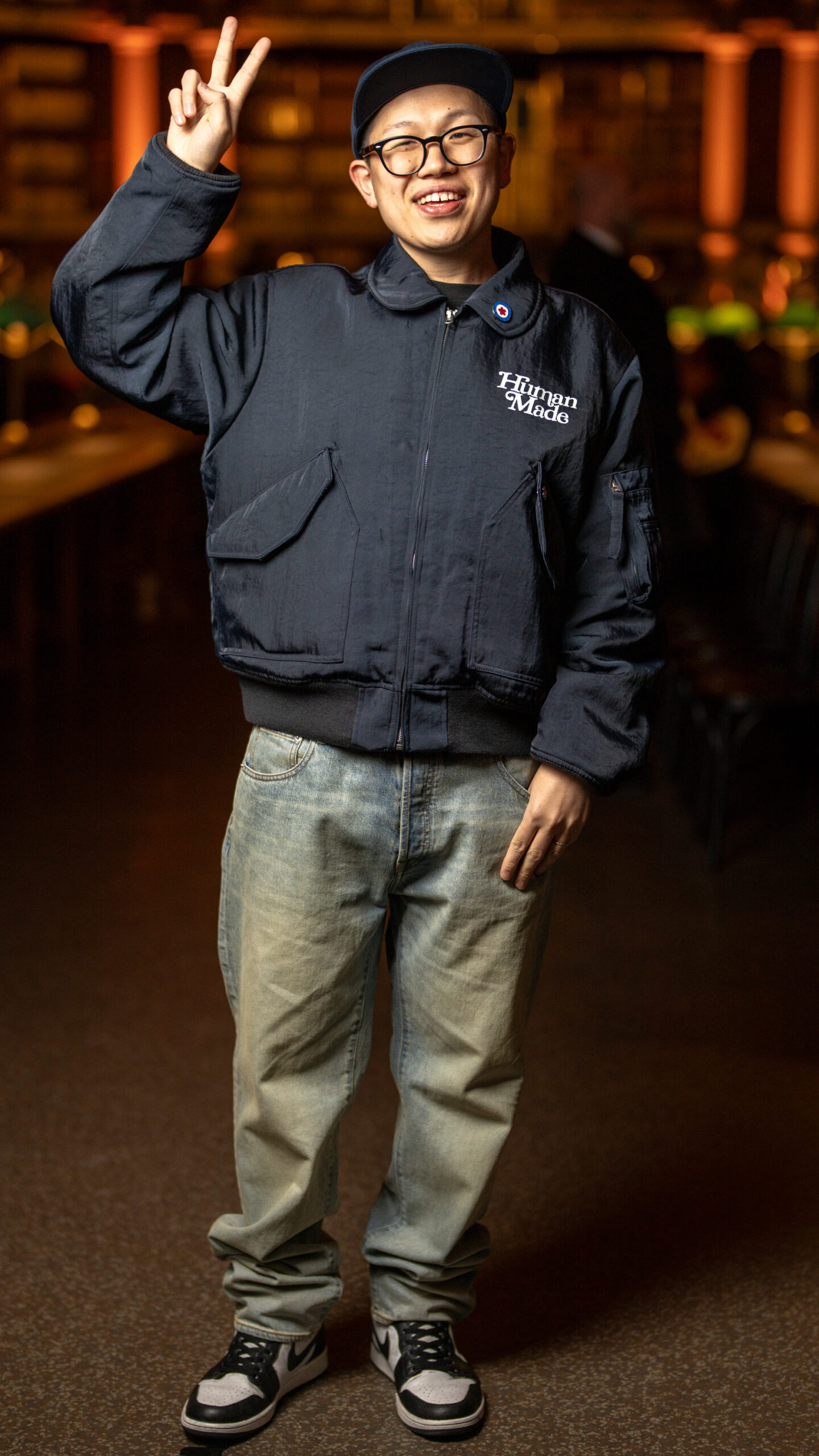 La collection met en avant les textures, du faux fourrure aux tricots tridimensionnels, en passant par les métalliques futuristes et les jacquards. Les costumes Gakuran, les cotons résistants et le denim dans diverses nuances renforcent l’écho entre passé et futur, tradition et innovation.