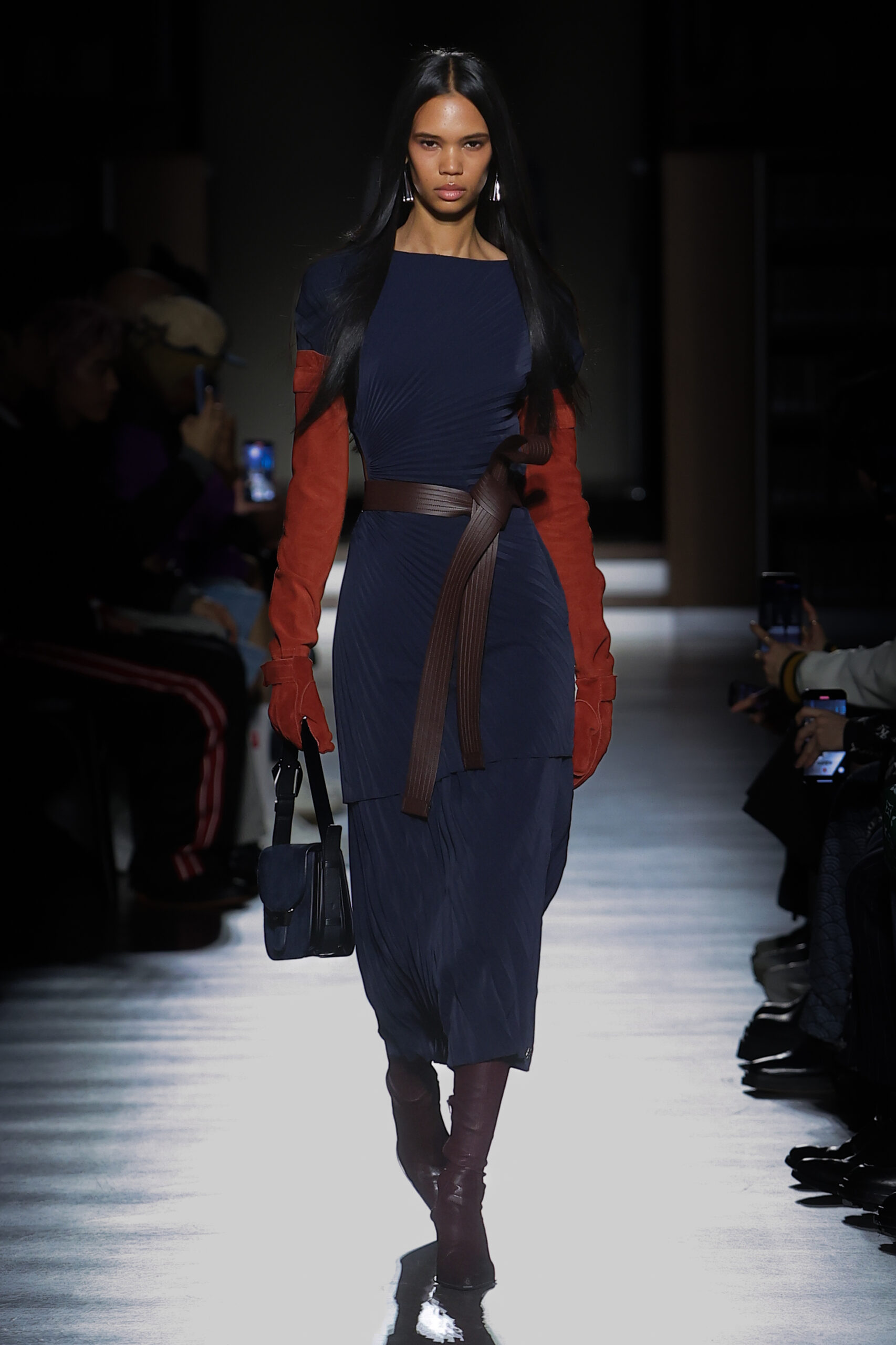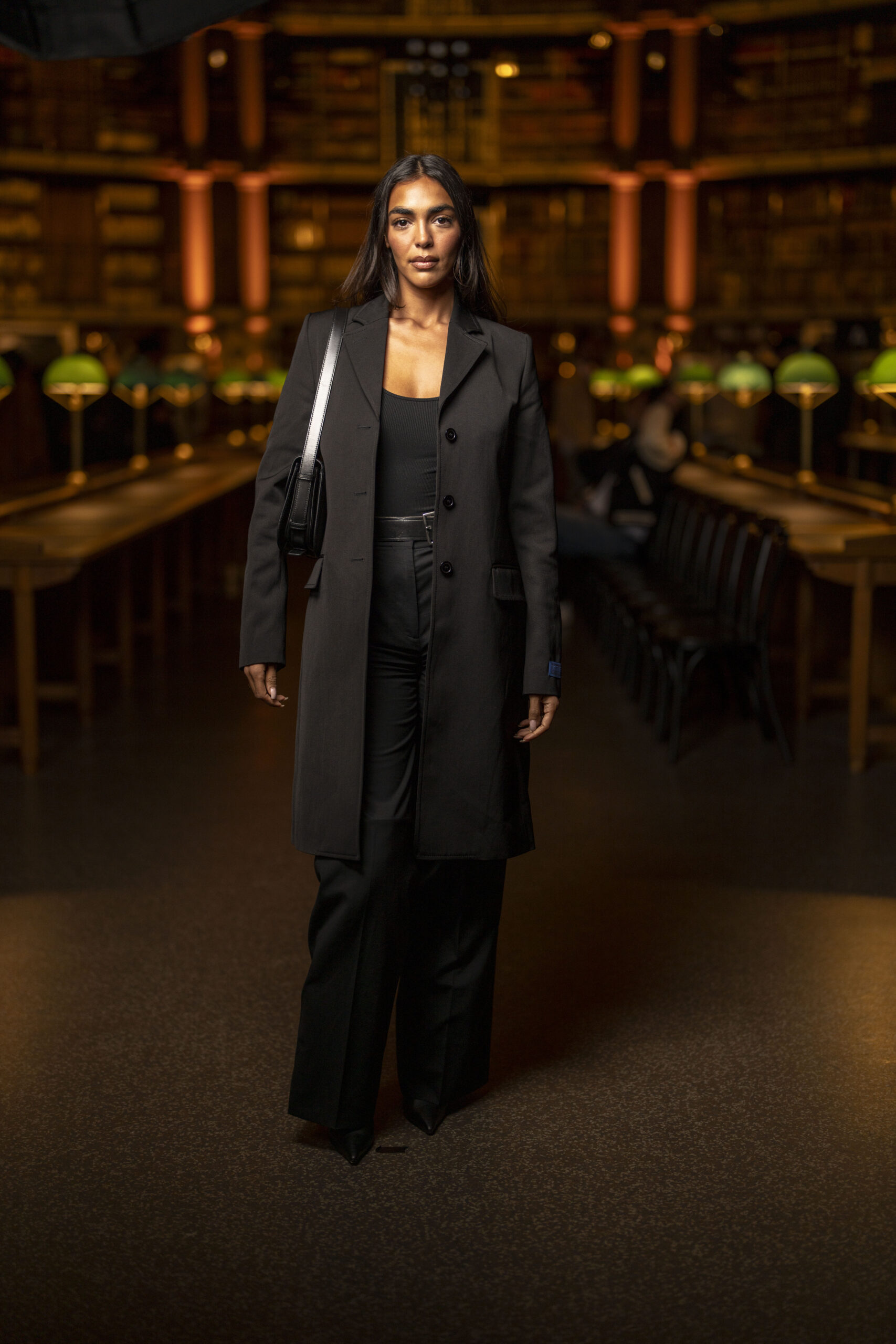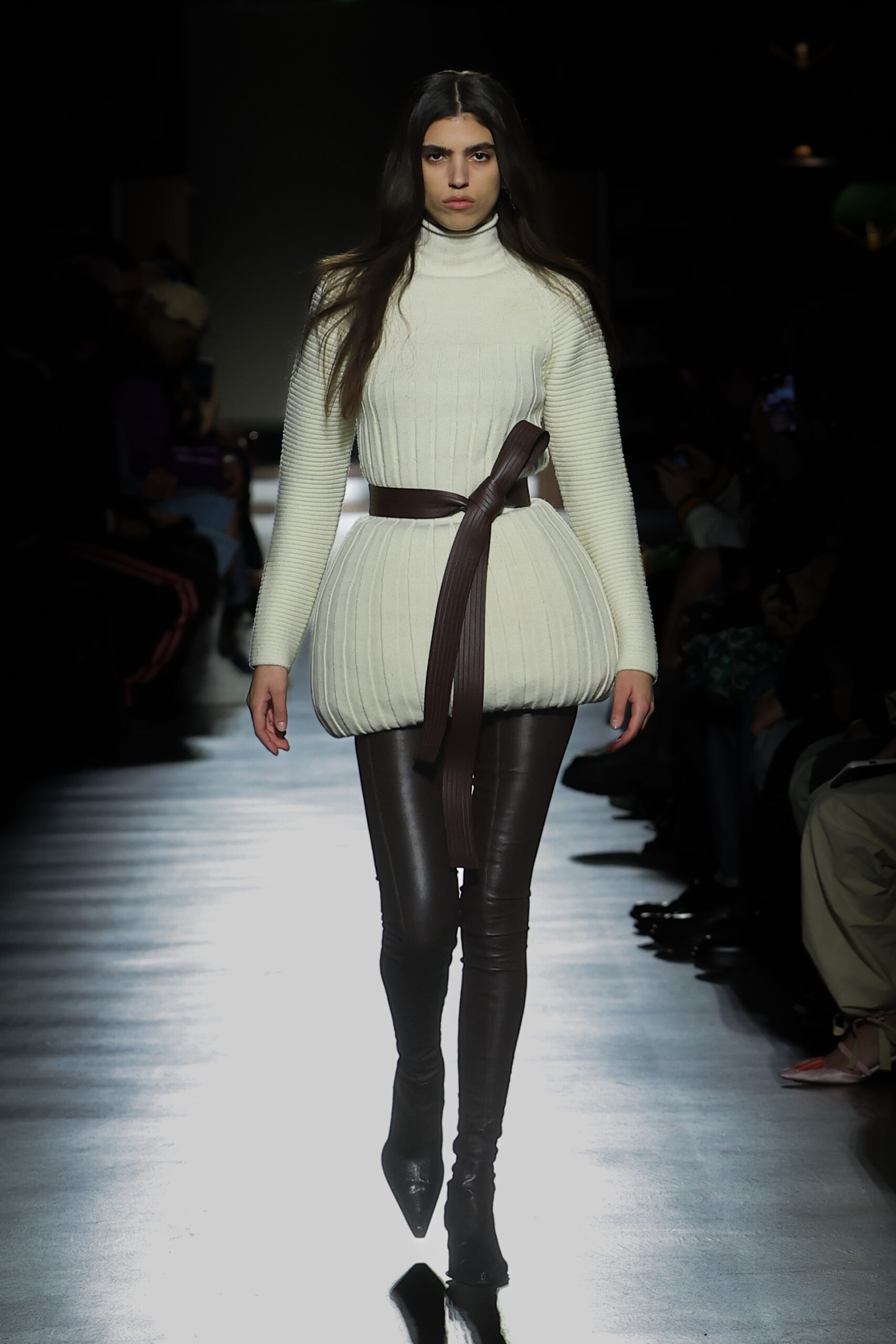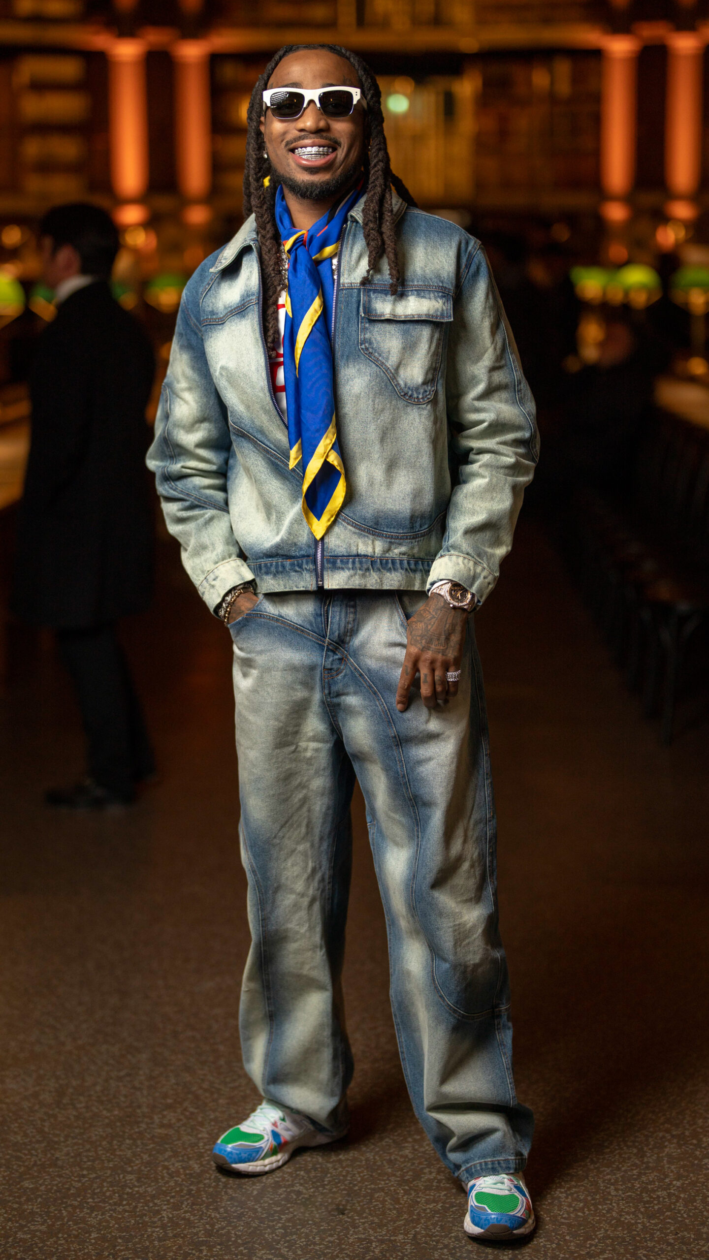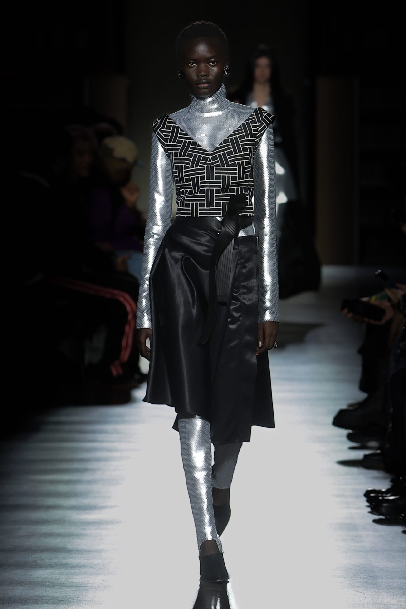 La collection met en avant les textures, du faux fourrure aux tricots tridimensionnels, en passant par les métalliques futuristes et les jacquards. Les costumes Gakuran, les cotons résistants et le denim dans diverses nuances renforcent l’écho entre passé et futur, tradition et innovation.