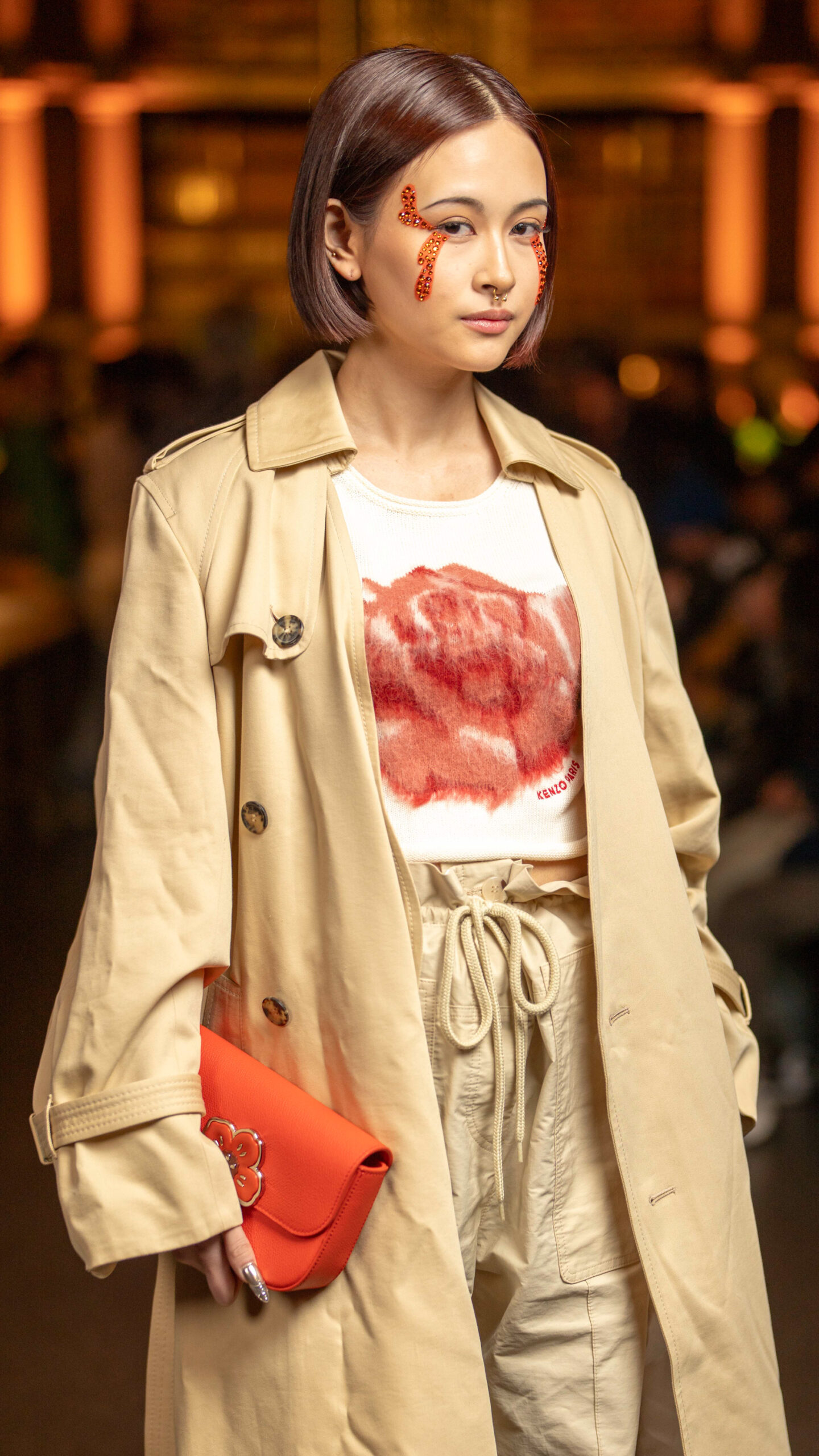 La collection Automne-Hiver 2024 de KENZO, sous la direction artistique de Nigo, s’annonce comme une fusion remarquable entre les héritages de l’Occident et de l’Orient. S’inspirant de l’esprit innovant de Kenzo Takada, Nigo explore les échanges culturels à travers une garde-robe universelle qui célèbre l’élégance nouvelle de la Maison. Cette vision est enrichie par une analogie cinématographique, évoquant l’influence des films de samouraïs d’Akira Kurosawa sur l’univers de Star Wars de George Lucas, pour créer une culture fantaisiste originale.