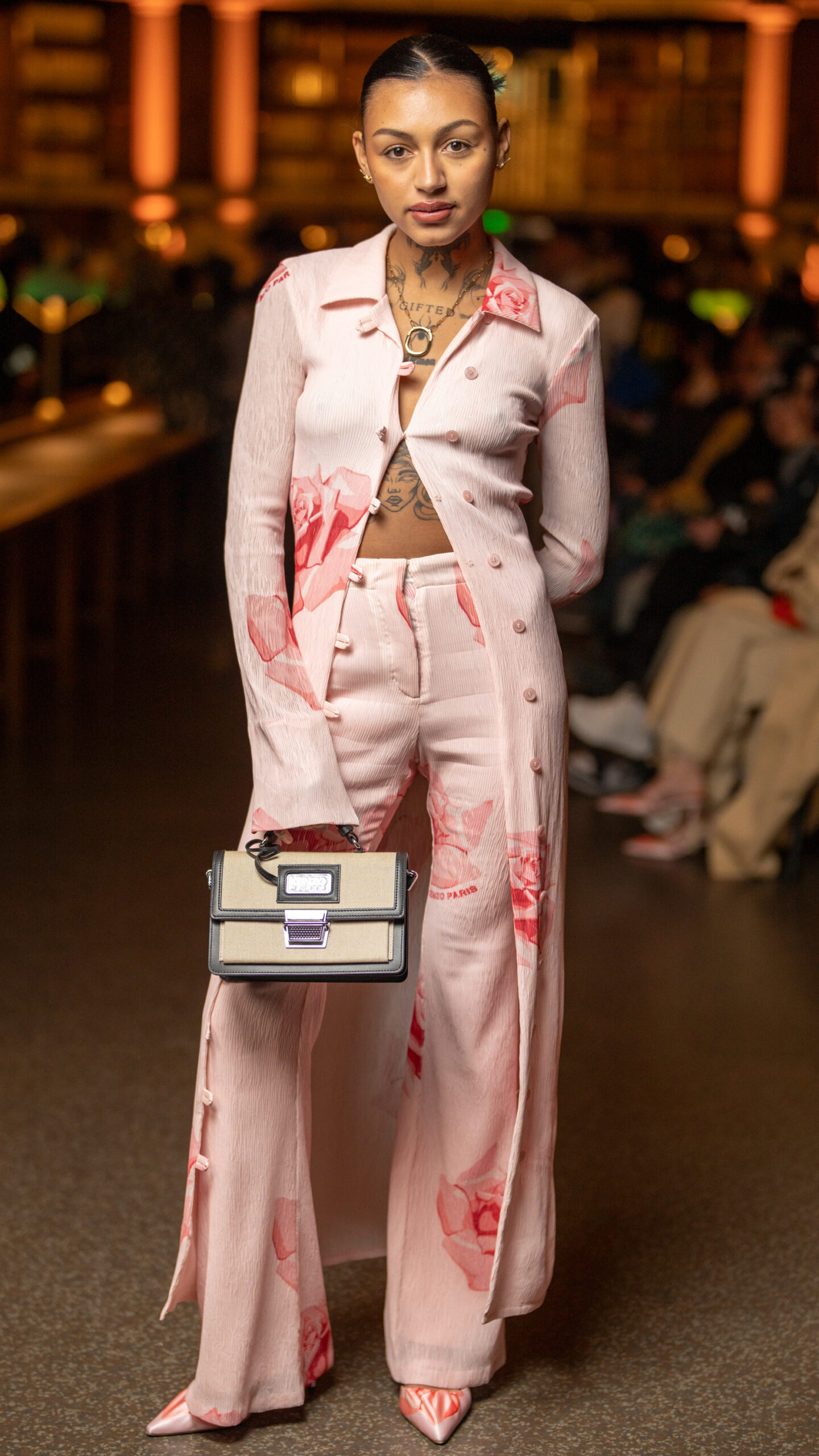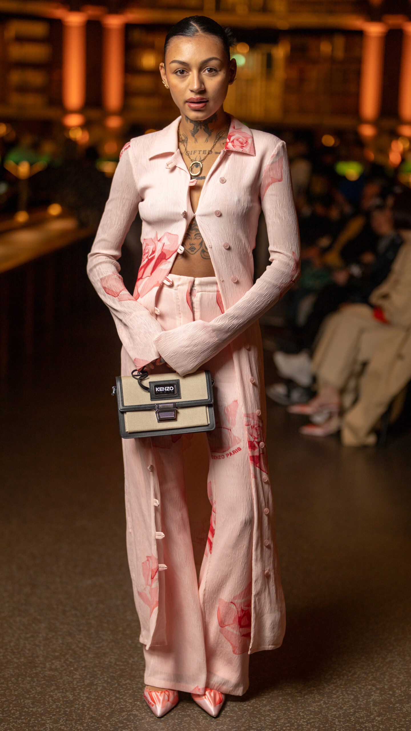 L’accessoirisation inclut le sac KENZO Furoshiki, inspiré de l’art japonais de l’emballage, ainsi que le KENZO Sakura, évoquant le travail de Kenzo Takada avec le patchwork de rubans. Le KENZO Discover réinterprète l’équipement tactique en accessoires futuristes. La collection introduit également une nouvelle sneaker unisexe, ainsi que des chaussures citadines telles que le KENZO Biker et le KENZO Yuki, fusionnant influences des années 1990 et futurisme.