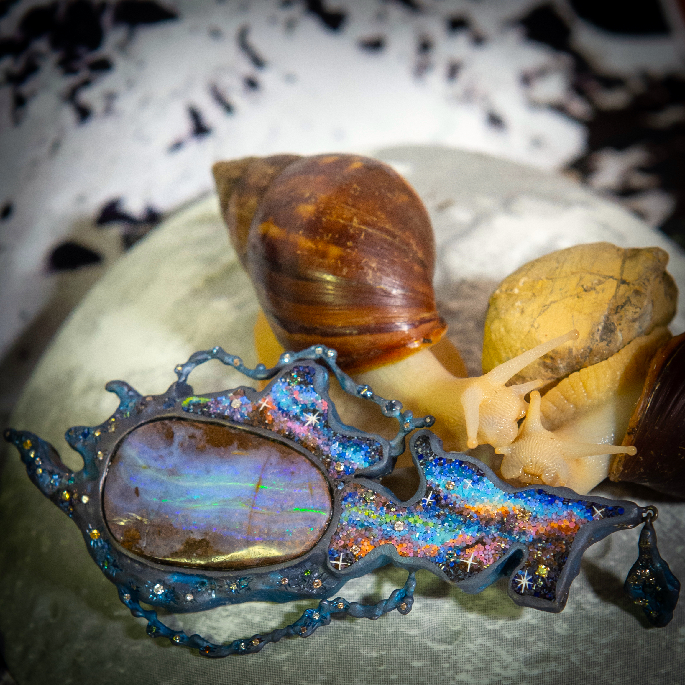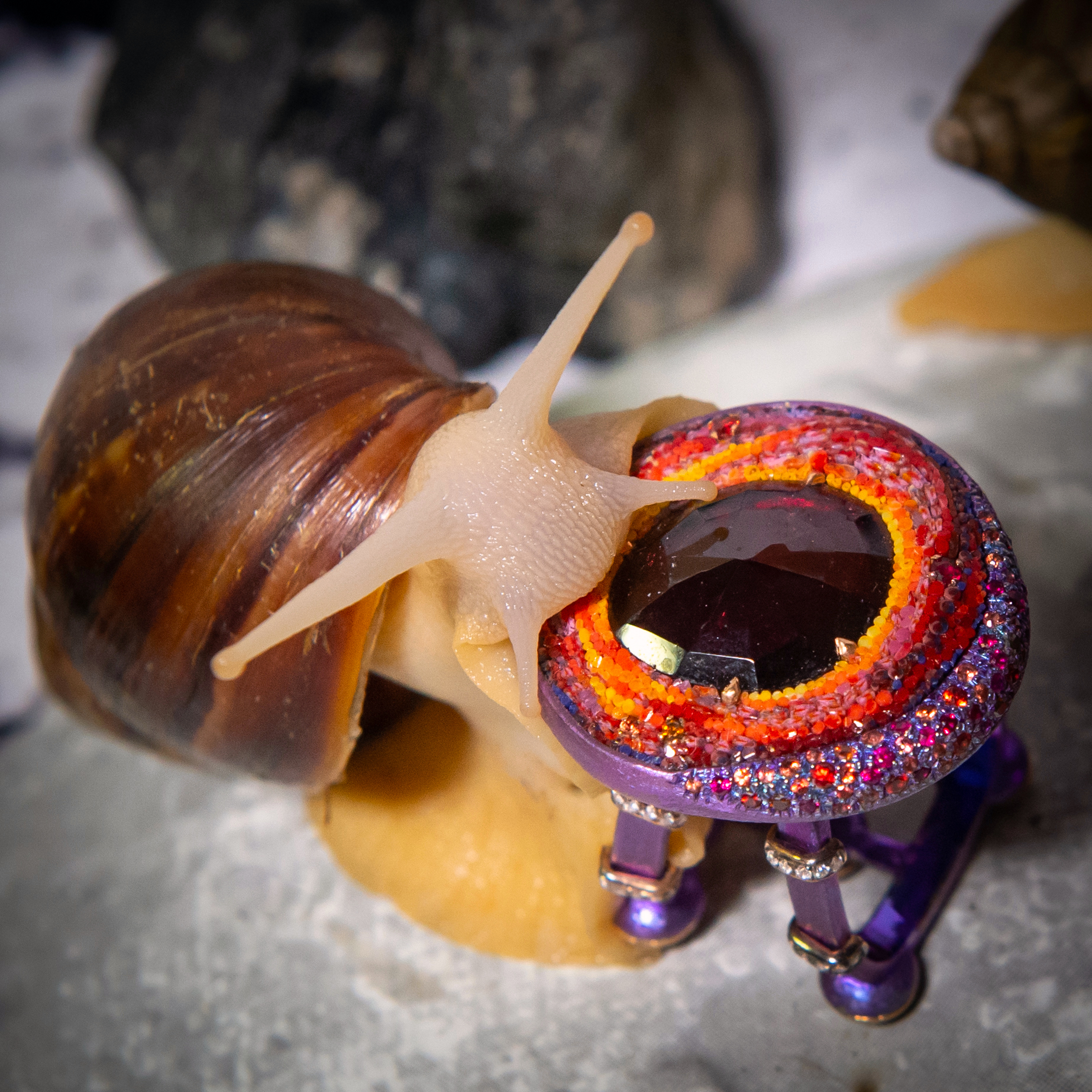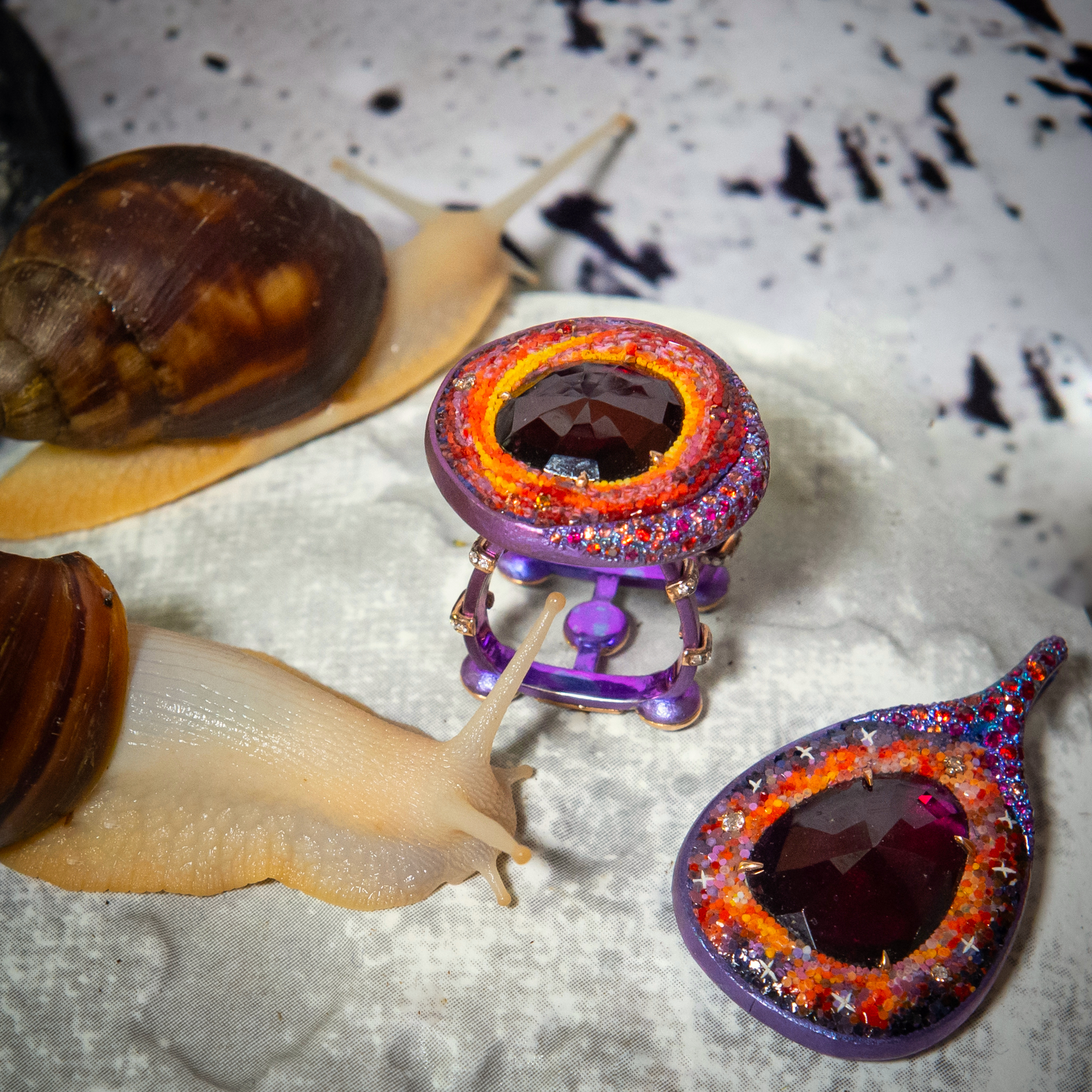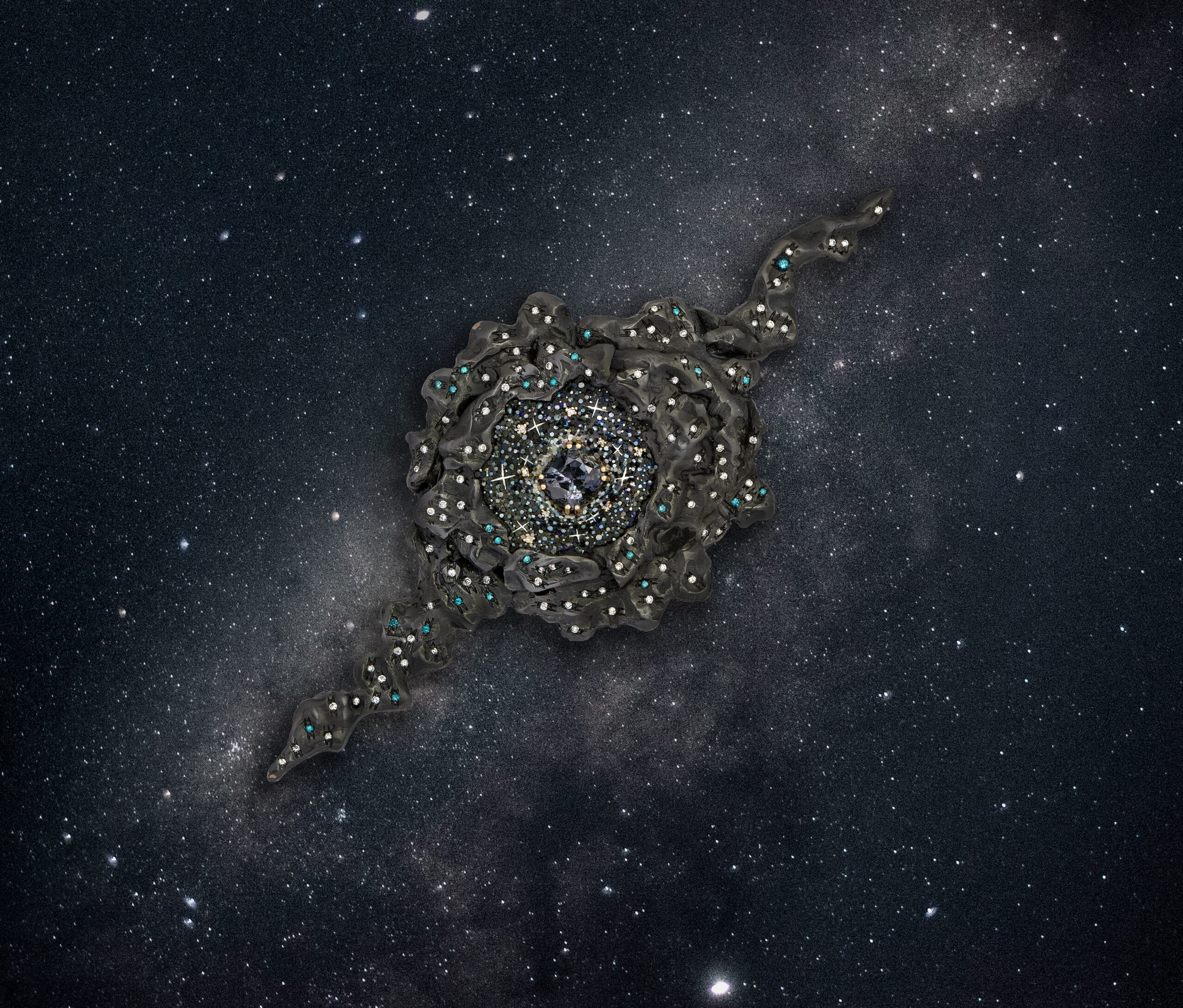 La collection « Galaxies » est une célébration de l’attraction gravitationnelle, décrite par Francesca Neri Serneri comme « une danse, c’est l’amour, qui maintient toutes les galaxies ensemble Ad Infinitum ». Cette vision poétique se traduit dans chaque pièce de la collection, où la tradition millénaire de la micro mosaïque est perpétuée avec une maestria inégalée. Huit pièces exceptionnelles, alliant or rose et blanc, titane et rhodolite, et ornées de diamants, rubis, saphirs orange et or, opale de Boulder australienne et opale de feu Matrix mexicaine, ont été méticuleusement conçues dans l’atelier de Le Sibille par des artisans romains.