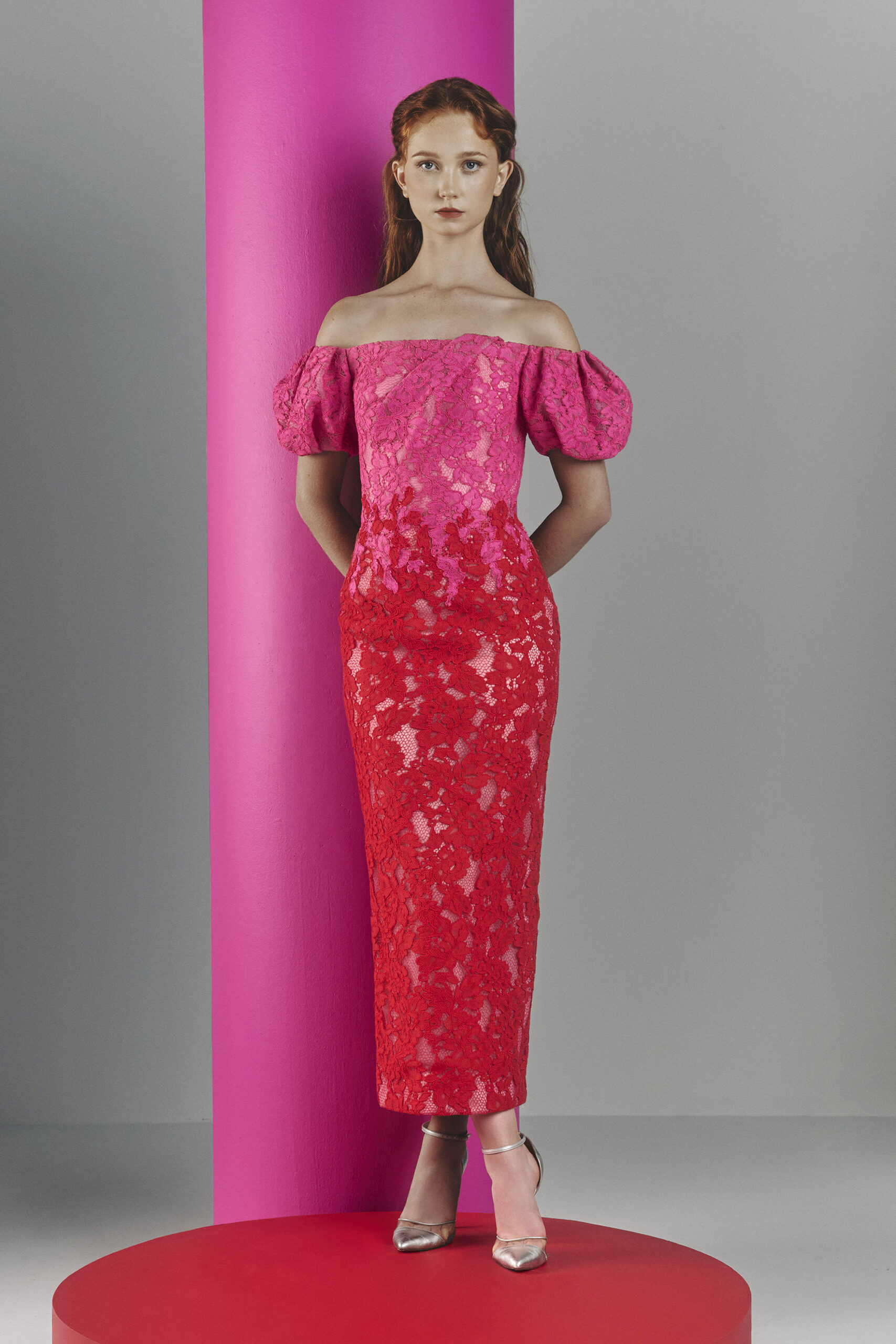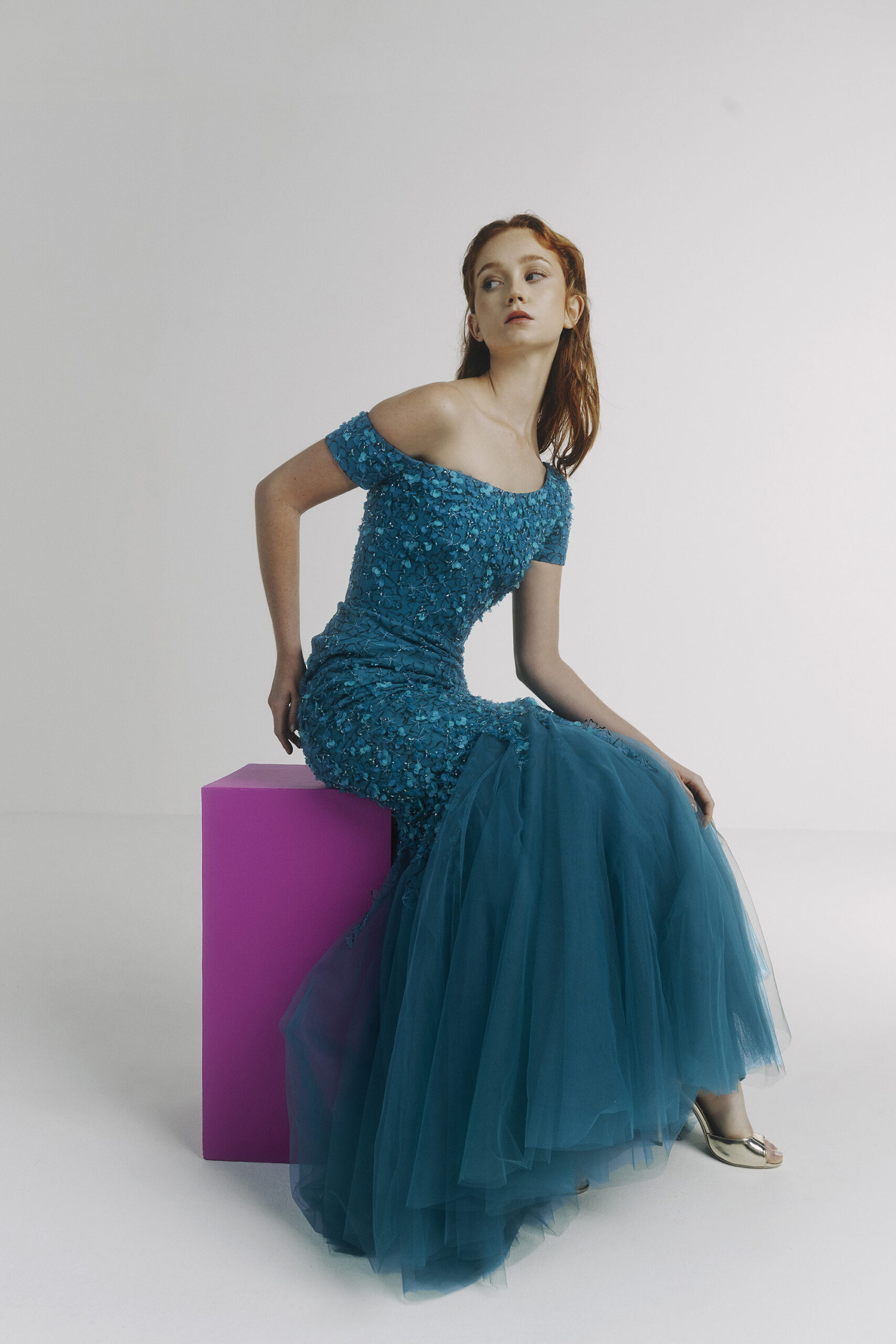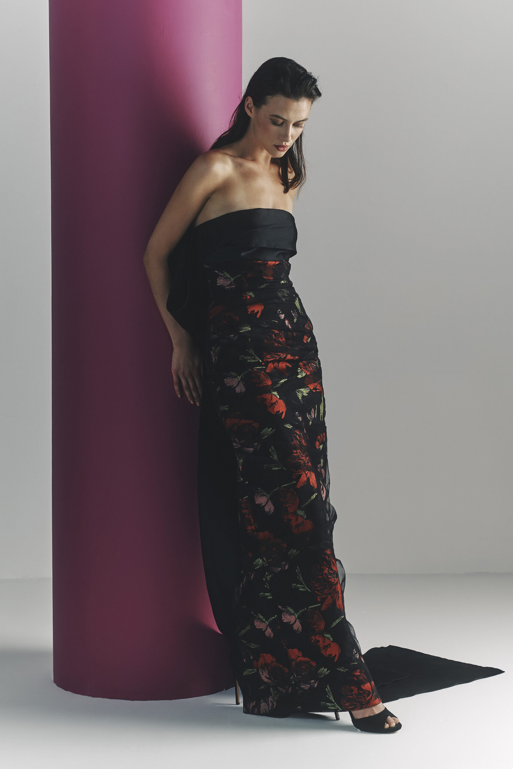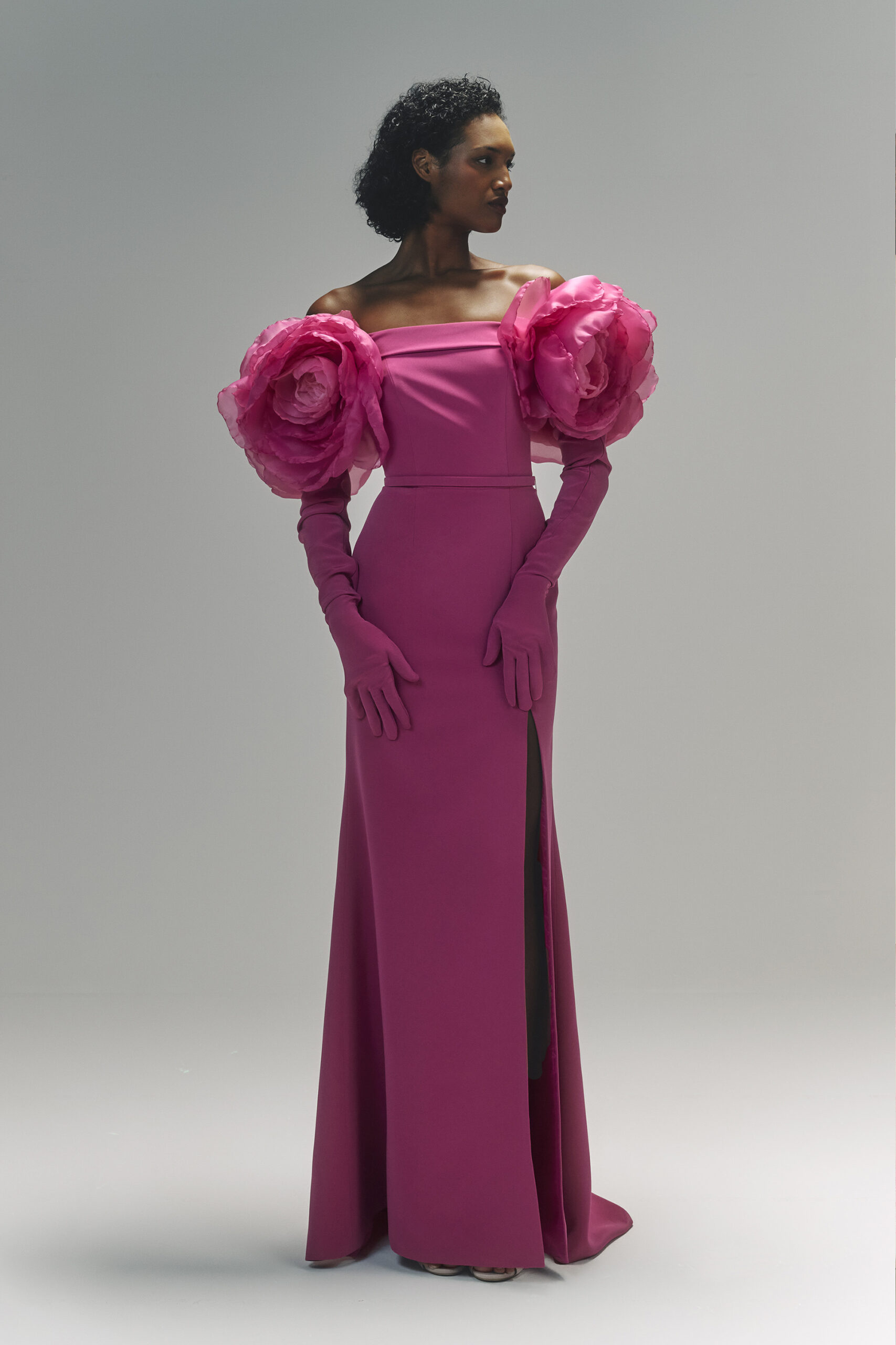 Les pièces sont sublimées par des ornements élaborés – draperies, nœuds, et broderies complexes – ajoutant profondeur et texture à la collection. La palette de couleurs, inspirée de l’environnement du miroir de Matsuyama, propose des tons tels que Vanilla, Lemonade, Cameo Pink, et bien d’autres, évoquant le charme mystique de la culture et de la nature japonaises.