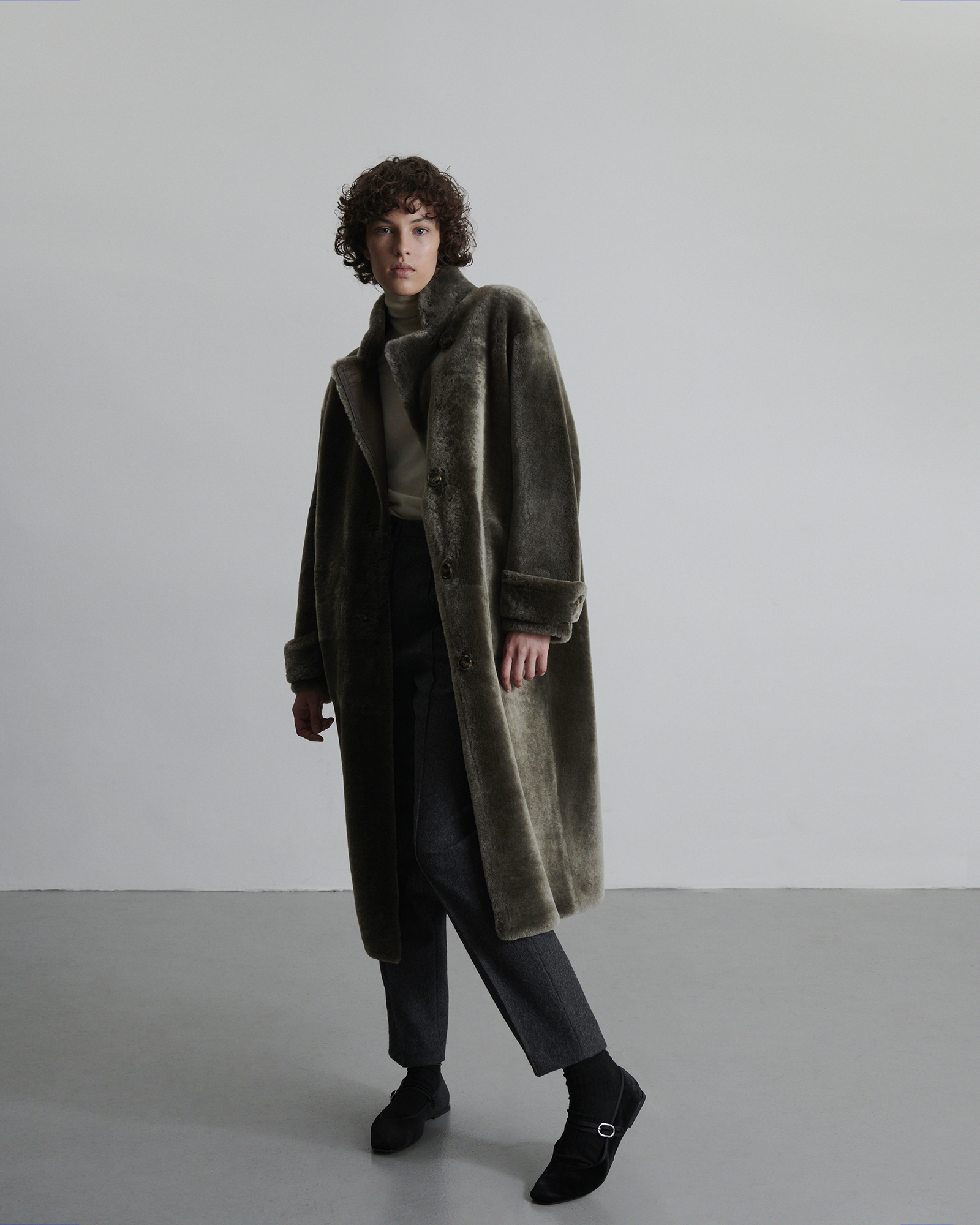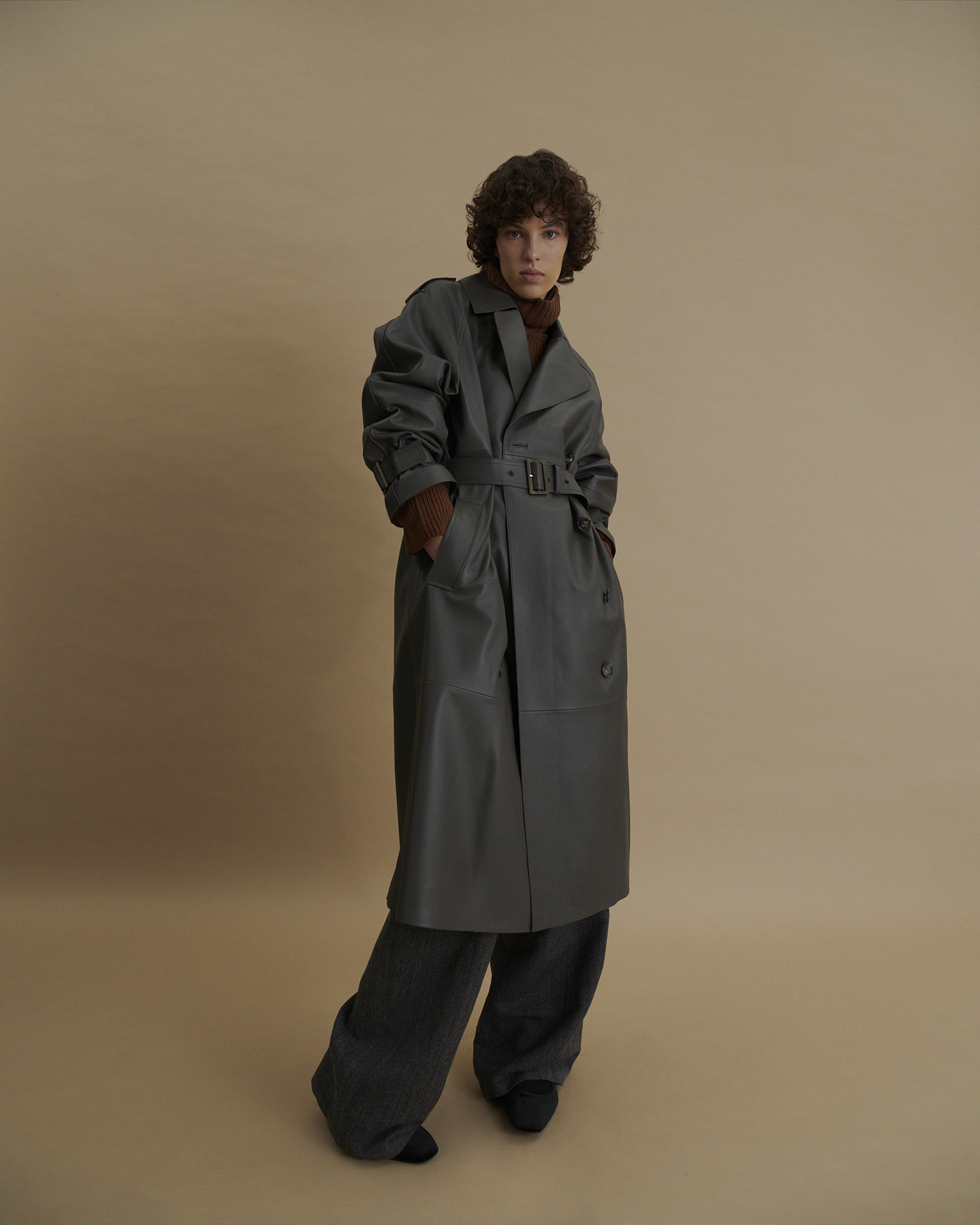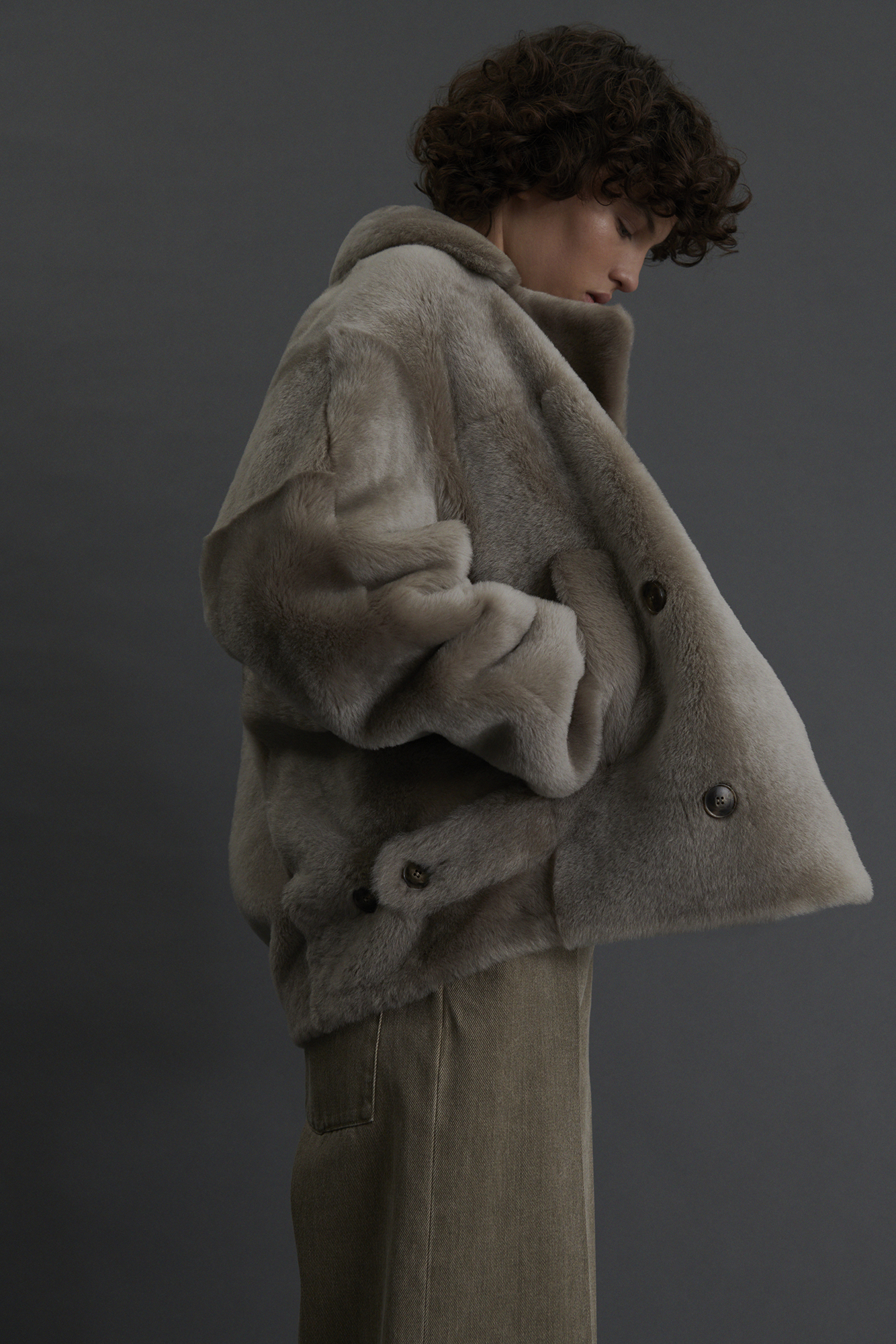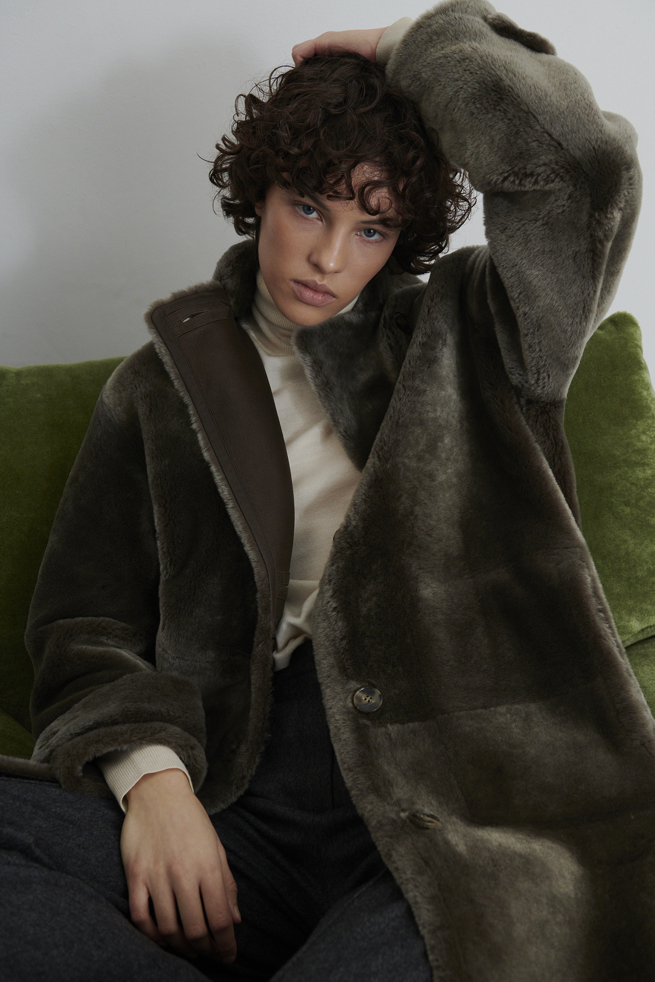 Le « luxe discret », signature de la maison Yves Salomon, se manifeste à travers chaque création. Les manteaux en cachemire, emblèmes de cette discrétion luxueuse, côtoient des vestes finement ajustées, sublimées par des surpiqûres de cuir discrètes. Cette collection témoigne de l’excellence du savoir-faire des ateliers Yves Salomon, mêlant avec brio art, design et technicité.