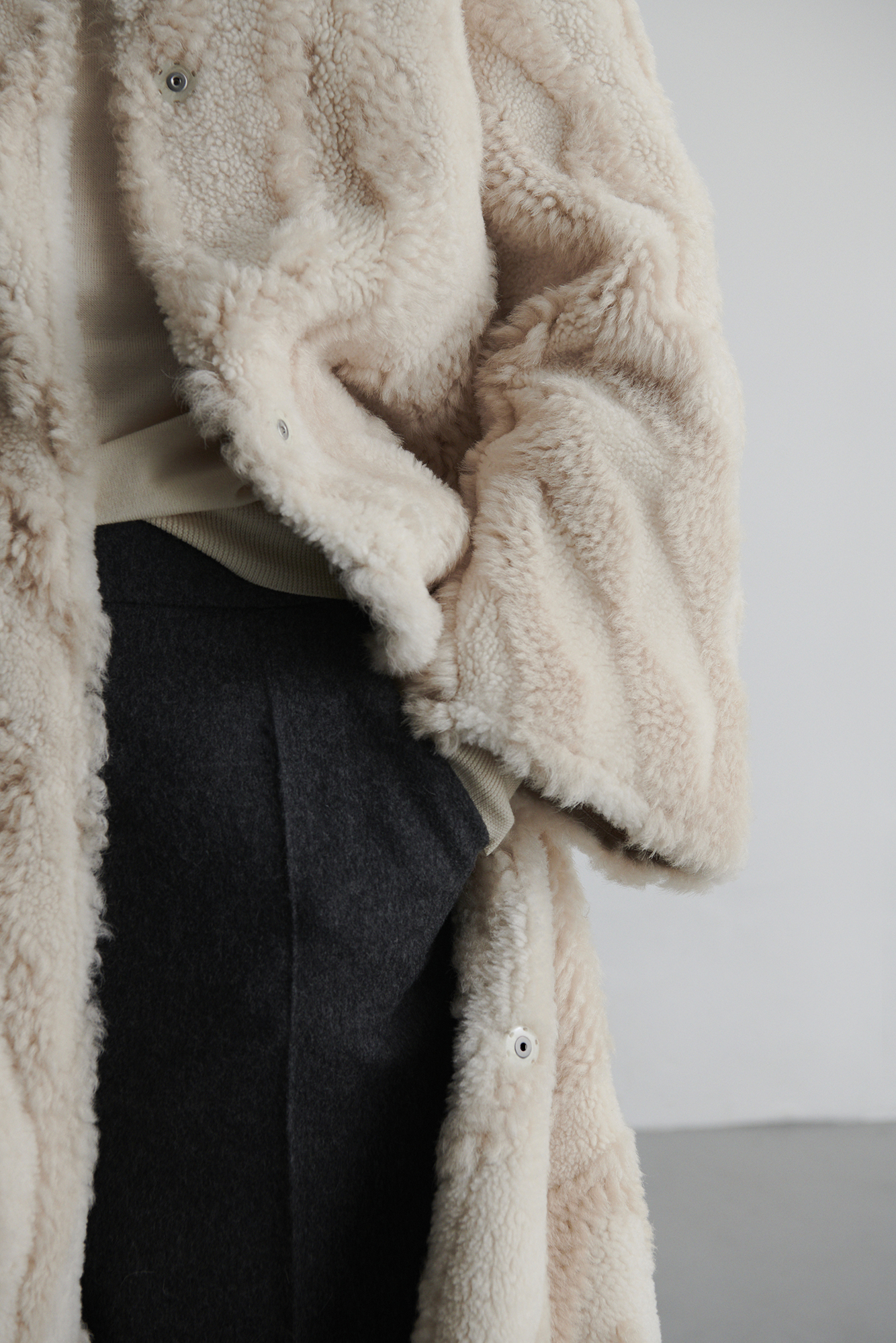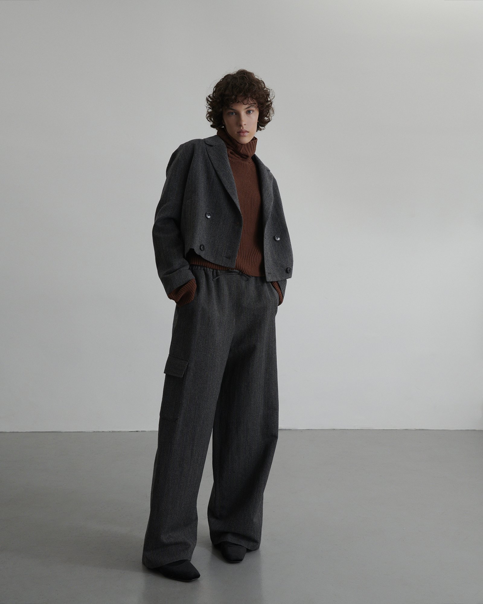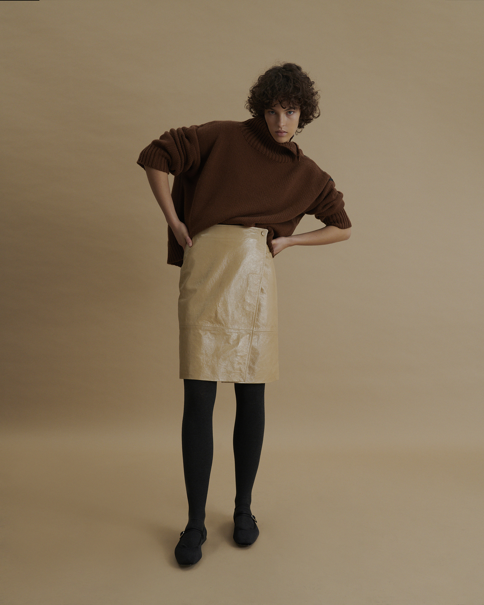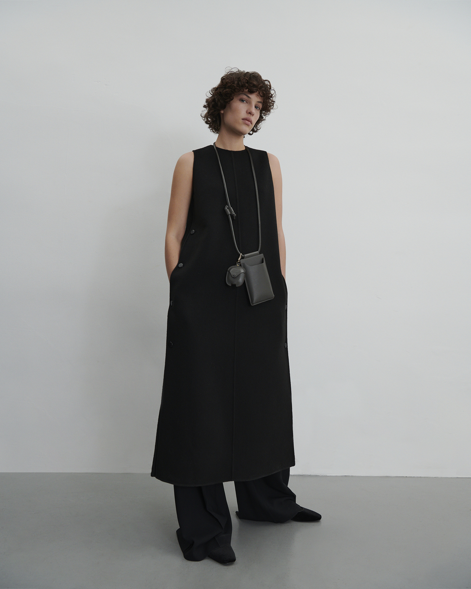 Le « luxe discret », signature de la maison Yves Salomon, se manifeste à travers chaque création. Les manteaux en cachemire, emblèmes de cette discrétion luxueuse, côtoient des vestes finement ajustées, sublimées par des surpiqûres de cuir discrètes. Cette collection témoigne de l’excellence du savoir-faire des ateliers Yves Salomon, mêlant avec brio art, design et technicité.