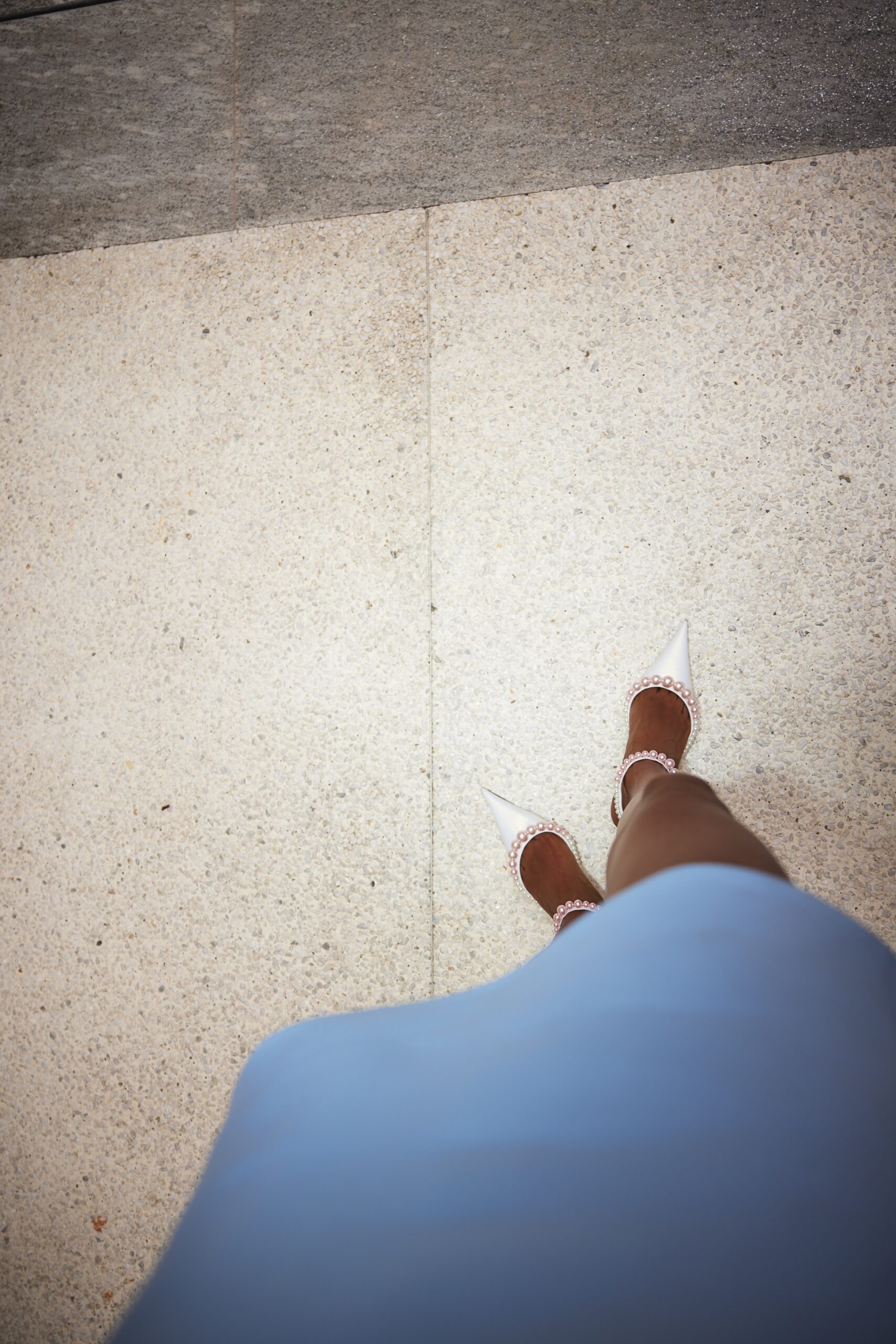 Lorsque la sirène trouve l’amour parmi les coraux luxuriants, elle opte pour les sandales Diamond of Elizabeth, une nouvelle version des escarpins iconiques de Mach & Mach, ornées d’une grande gemme, de PVC, de cuir perlé ou de satin, et décorées de rangées de fausses perles et de diamants.