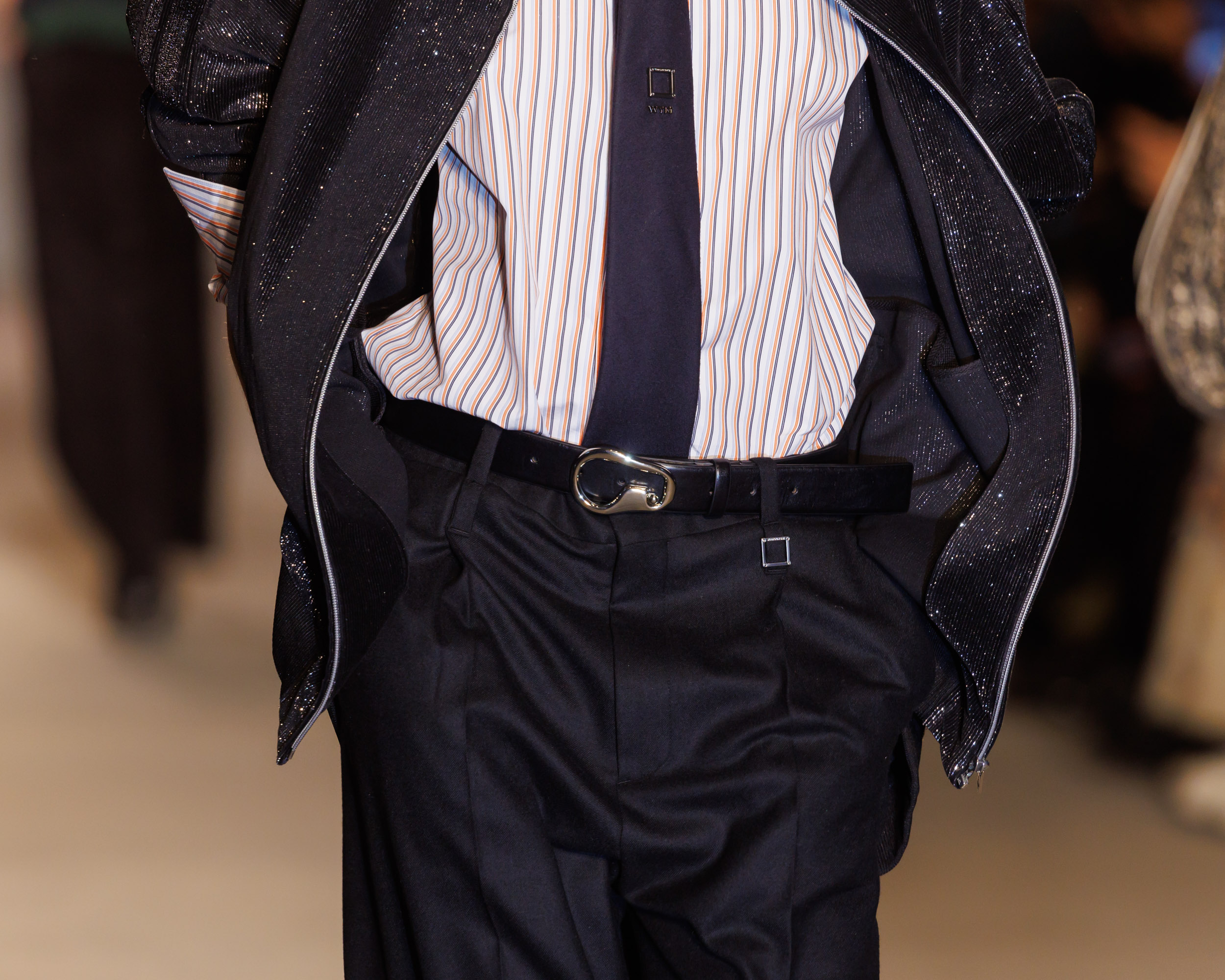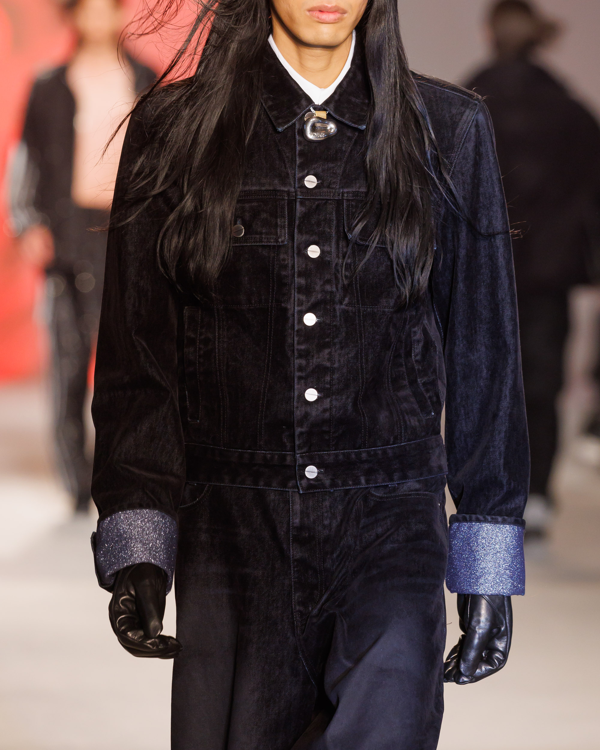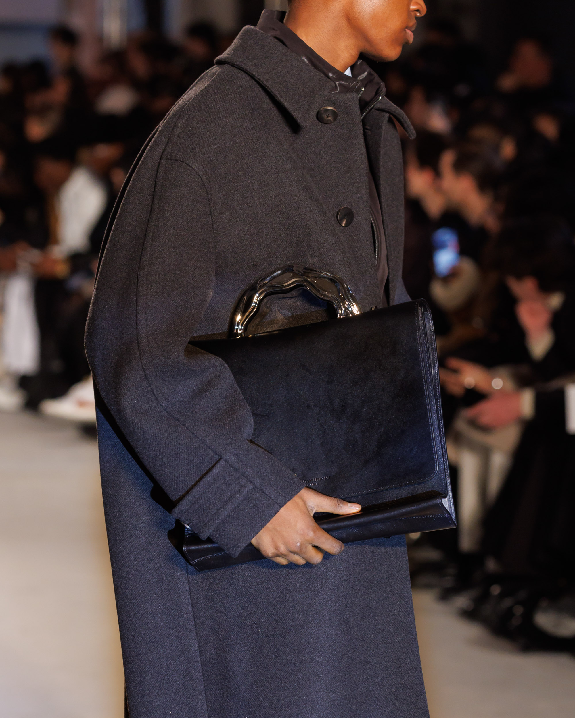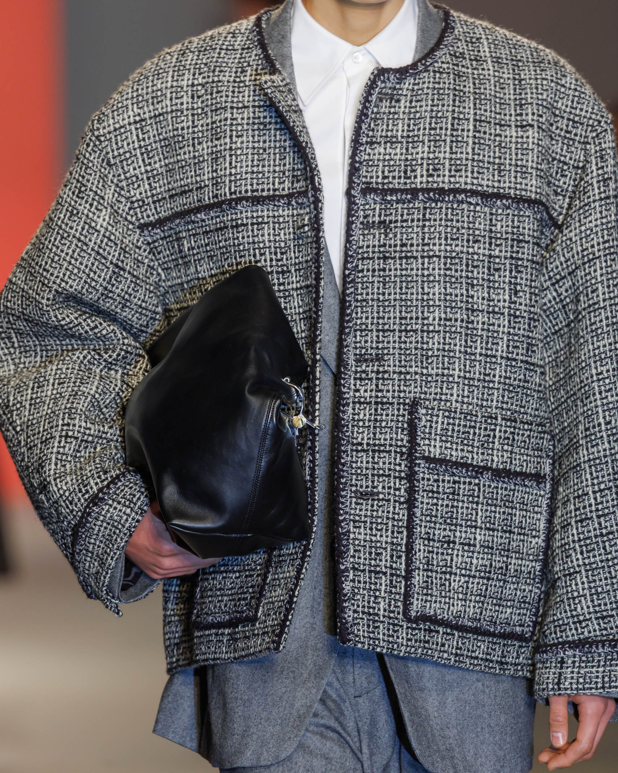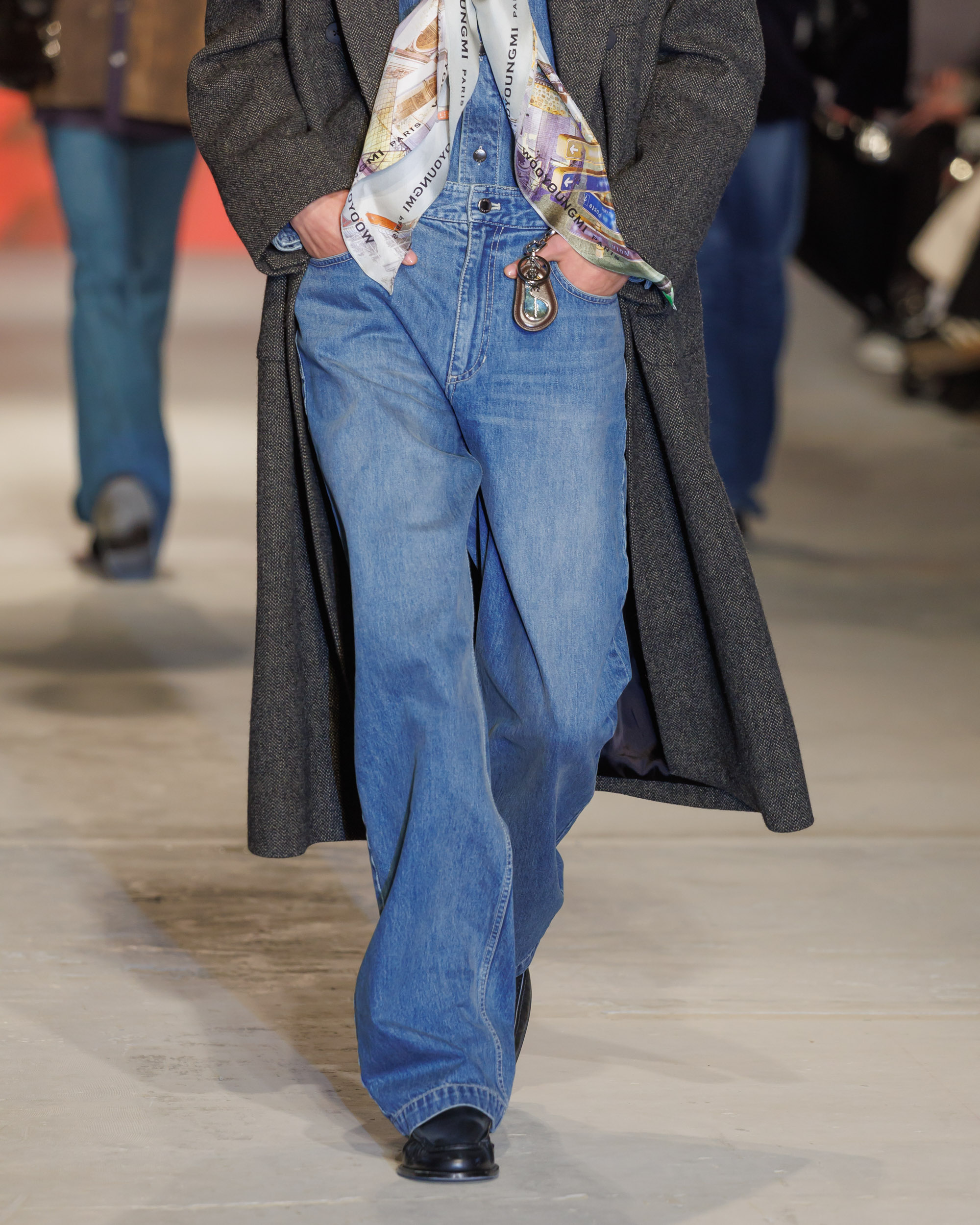 Le défilé est accompagné d’une bande-son mêlant le jazz à la traditionnelle percussion gugak sud-coréenne, reflétant la rencontre entre modernité et tradition qui caractérise Séoul, ainsi que la collection AW24 de Wooyoungmi.
