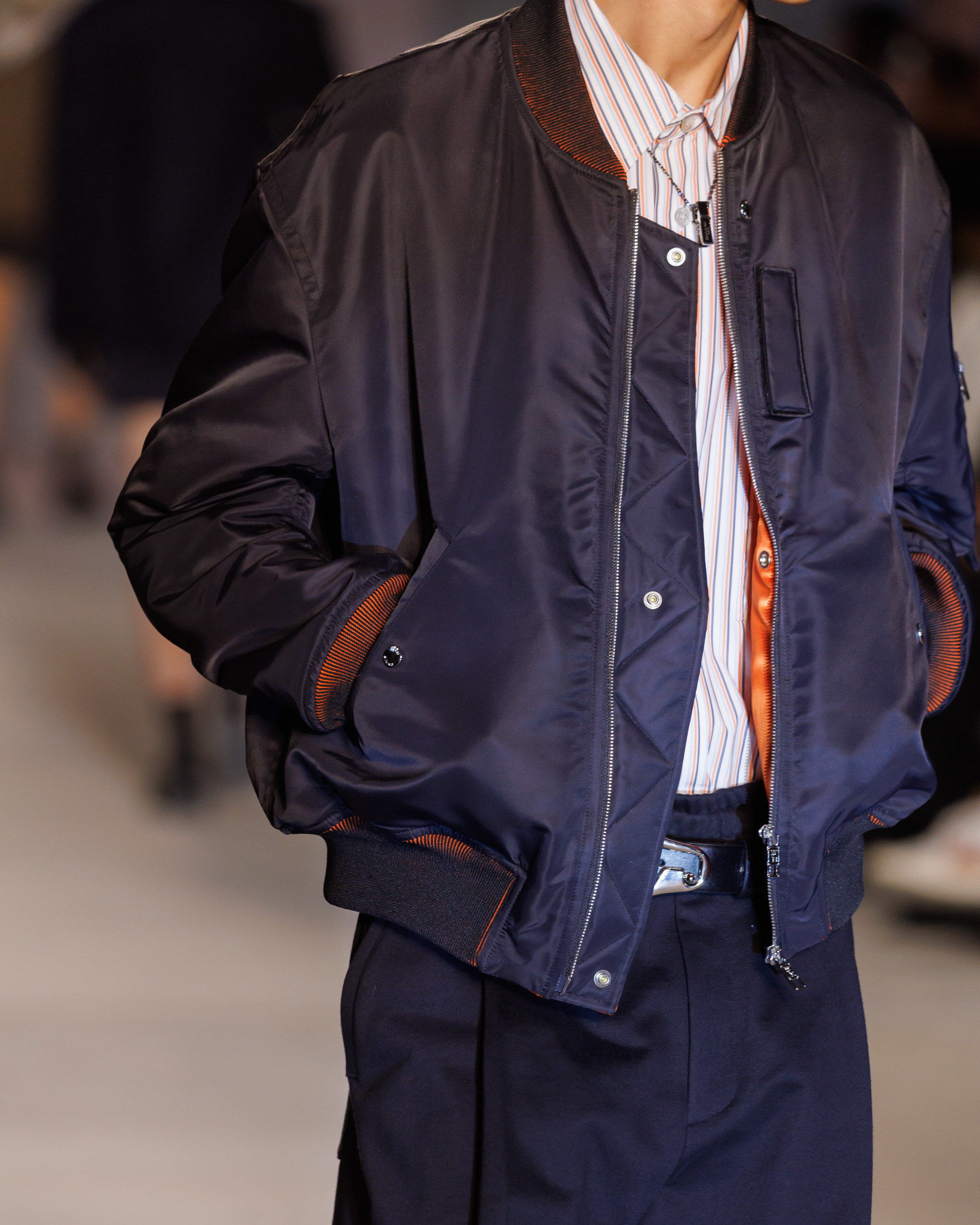 La collection rend hommage aux divers habitants de Séoul, des hommes d’affaires dans leurs manteaux allongés et costumes relax à la bourgeoisie en ensemble jupe-bouclé, sans oublier les écoliers et les scouts dans leur tenue préppy et sportswear. L’esthétique utilitaire des travailleurs de la route de Séoul se mêle aux codes de la culture jeune de la ville, créant un mélange unique qui reflète l’esprit de Séoul.