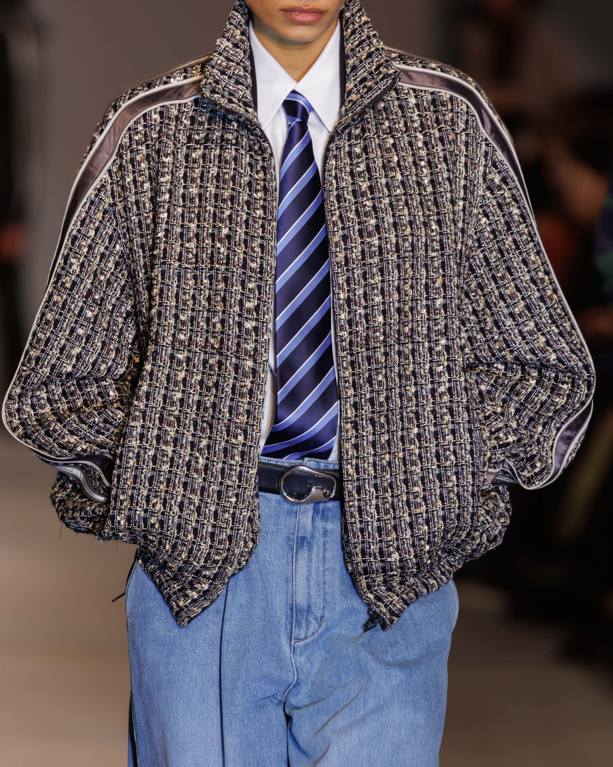 Pour l’Automne-Hiver 2024, Wooyoungmi nous invite à redécouvrir Séoul à travers une collection qui fusionne harmonieusement les influences locales et étrangères, peignant ainsi le portrait vivant d’une métropole en constante conversation avec l’Occident. Inspirée par la richesse culturelle sud-coréenne et l’influence internationale du style urbain, Madame Woo propose une vision distinctive de la mode de Séoul, capturant l’essence d’une ville que beaucoup connaissent sans jamais y avoir mis les pieds.