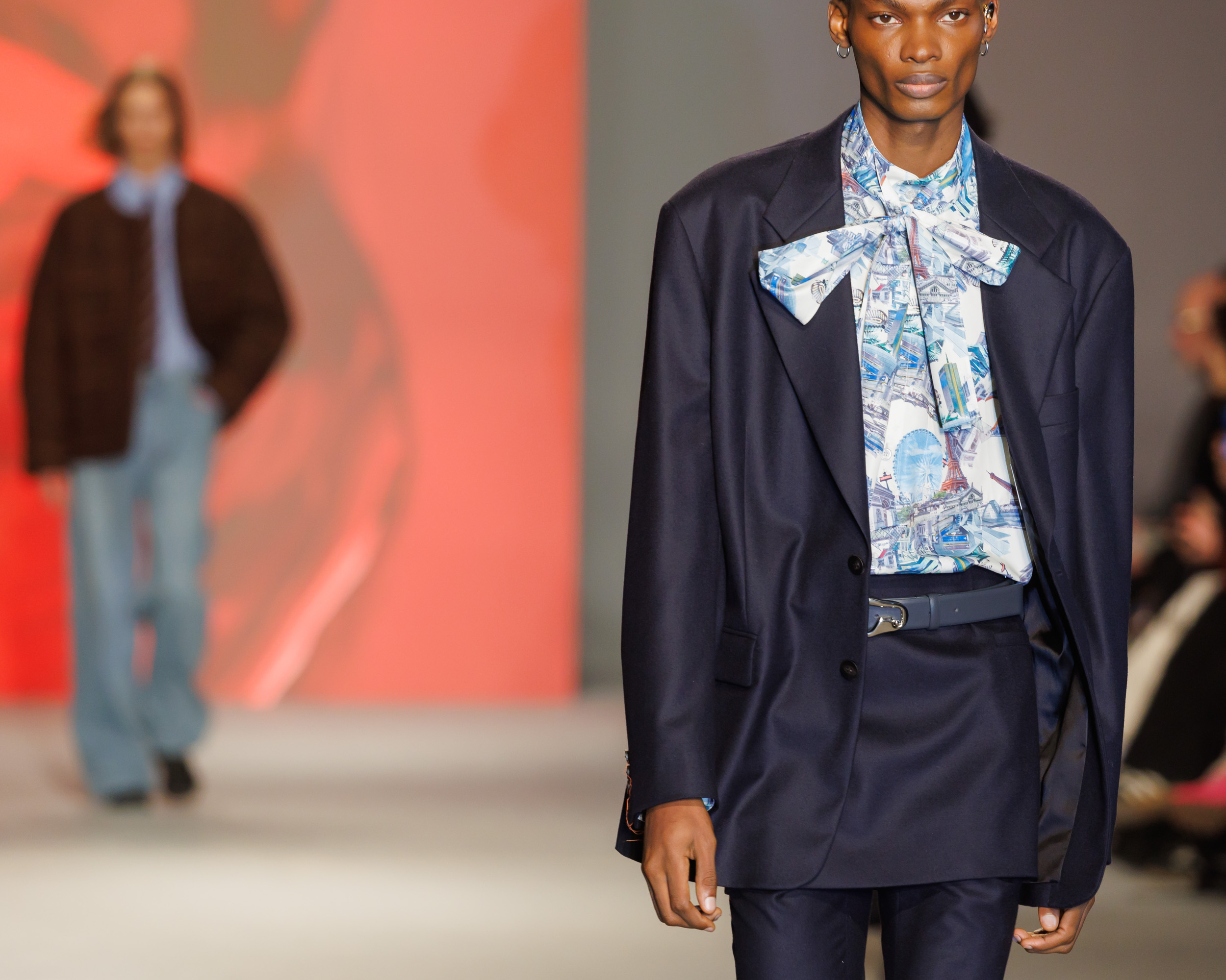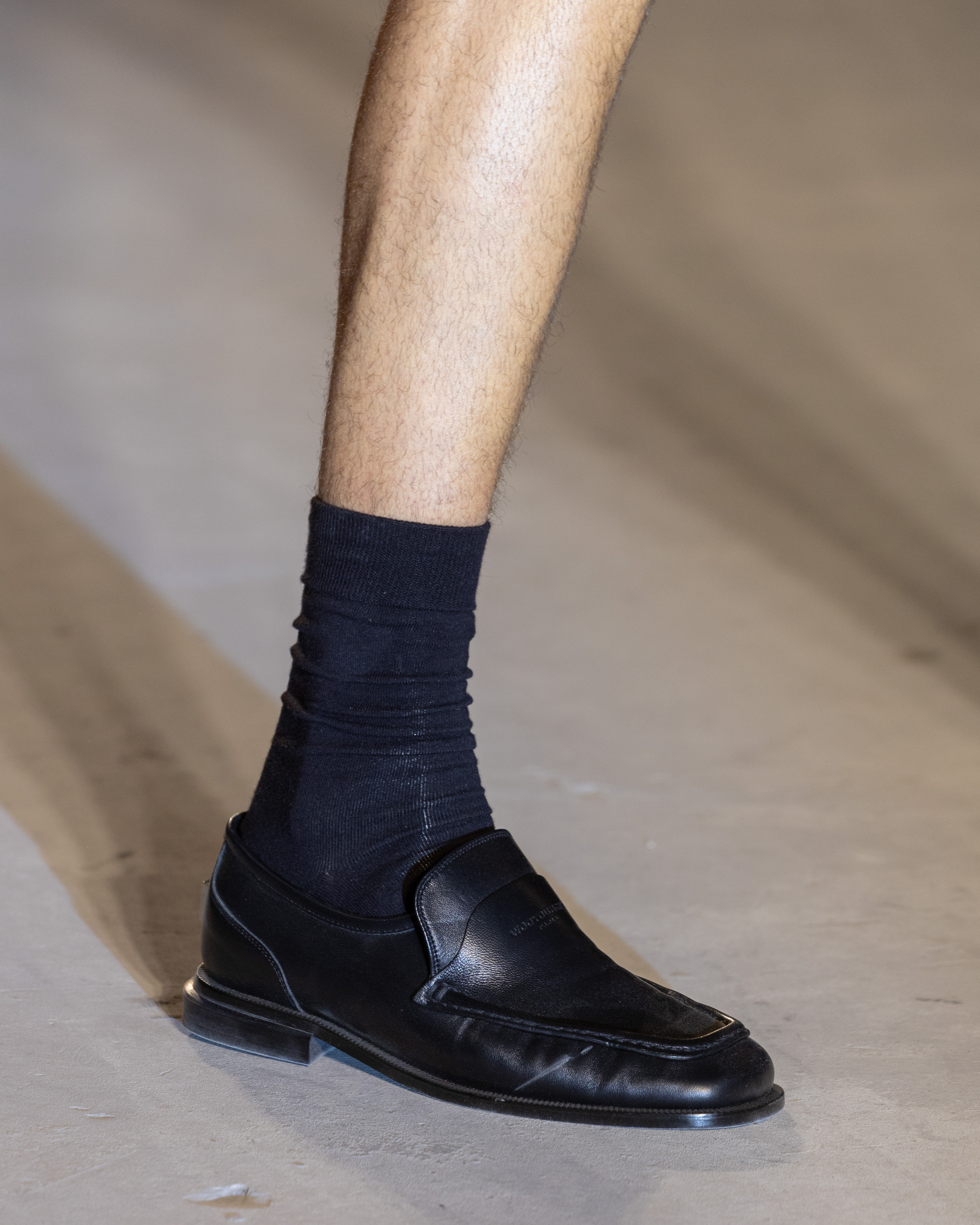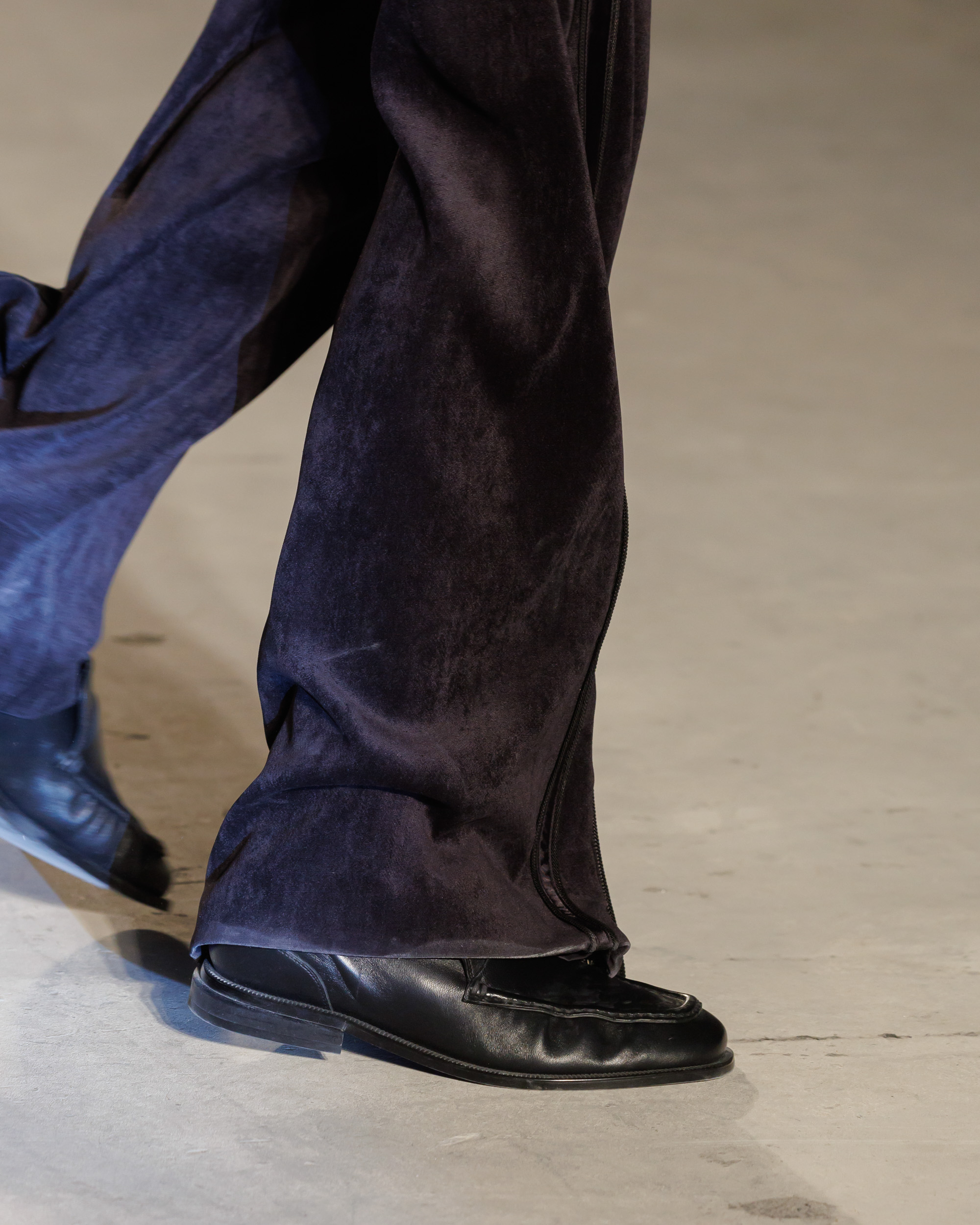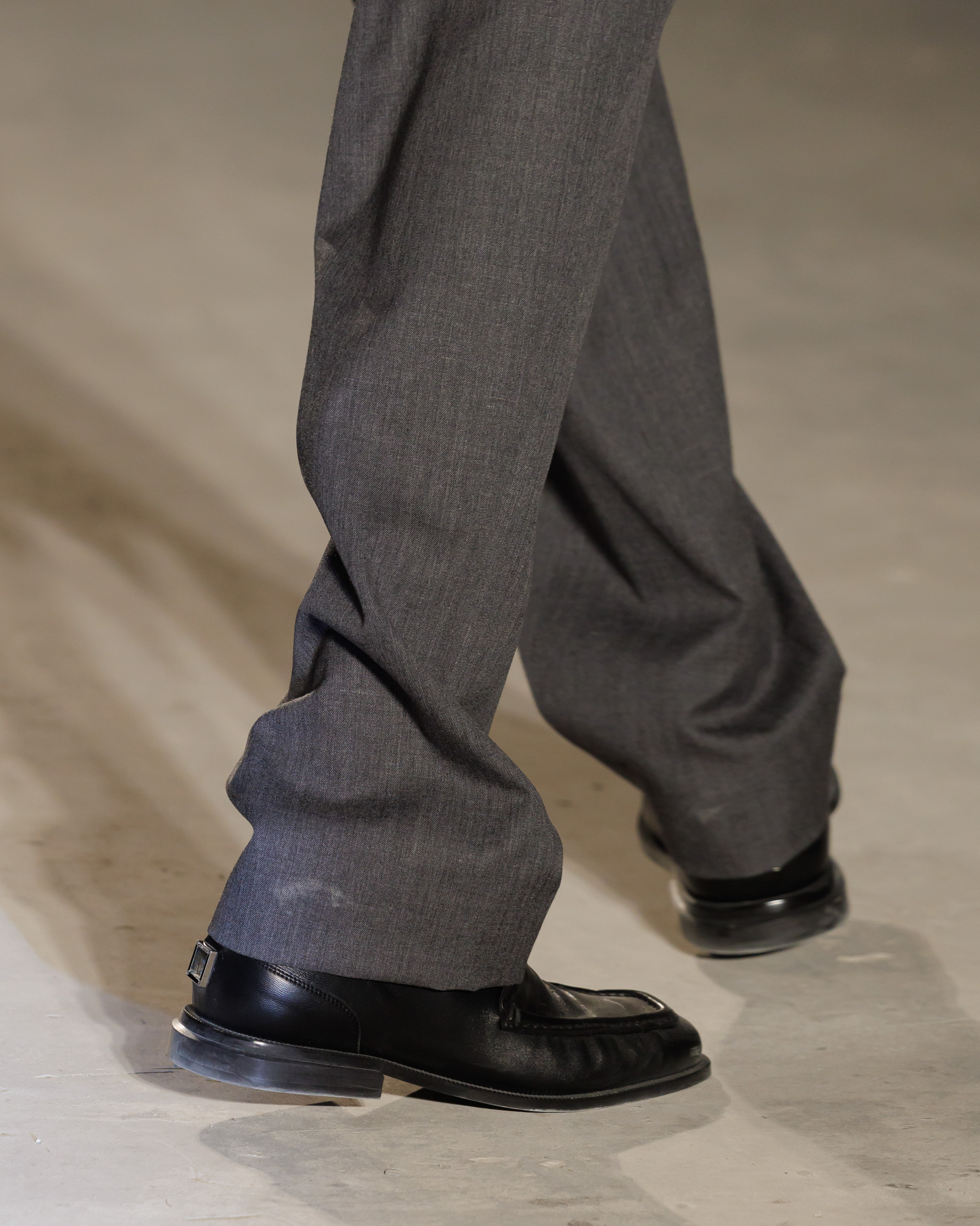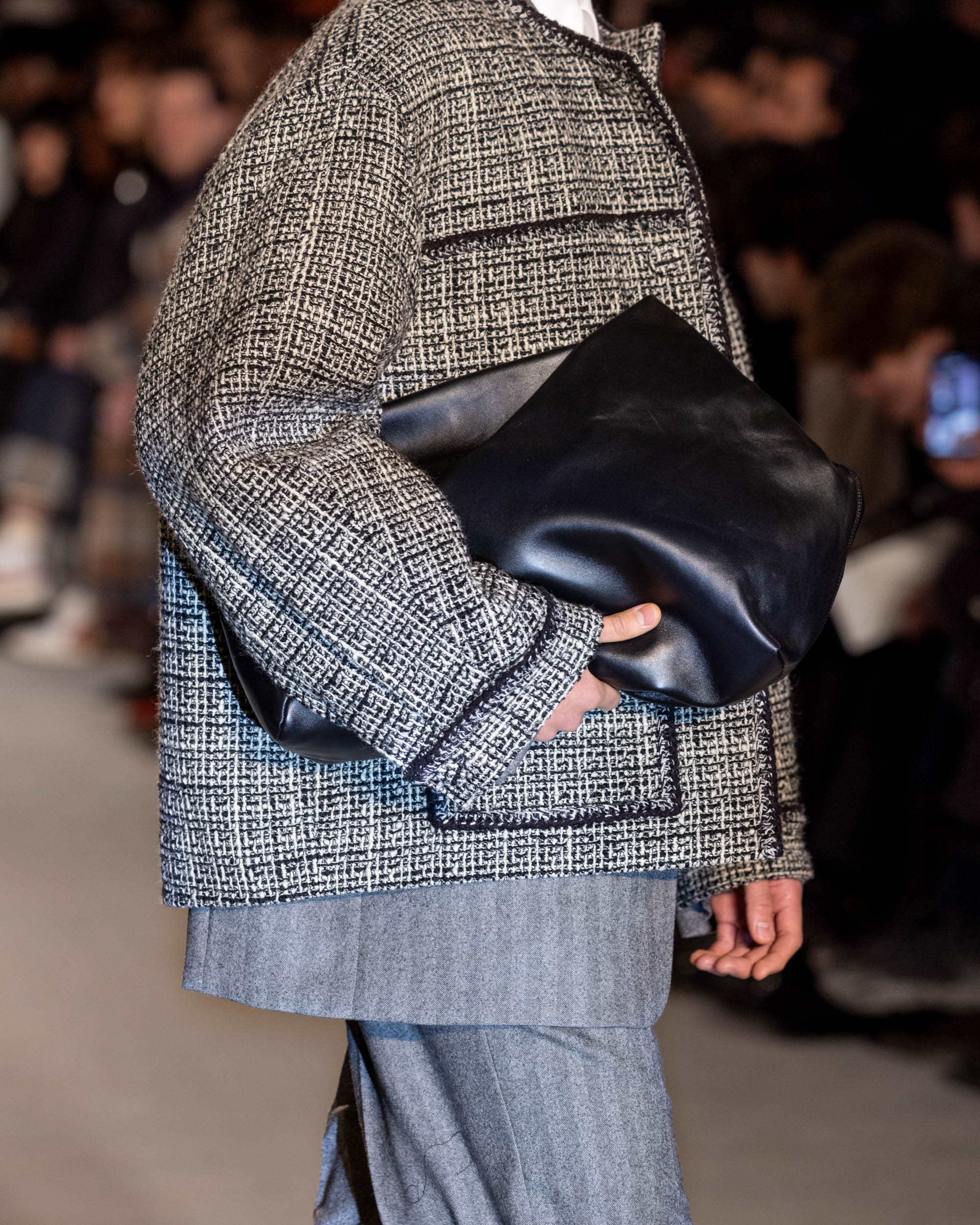Le défilé est accompagné d’une bande-son mêlant le jazz à la traditionnelle percussion gugak sud-coréenne, reflétant la rencontre entre modernité et tradition qui caractérise Séoul, ainsi que la collection AW24 de Wooyoungmi.