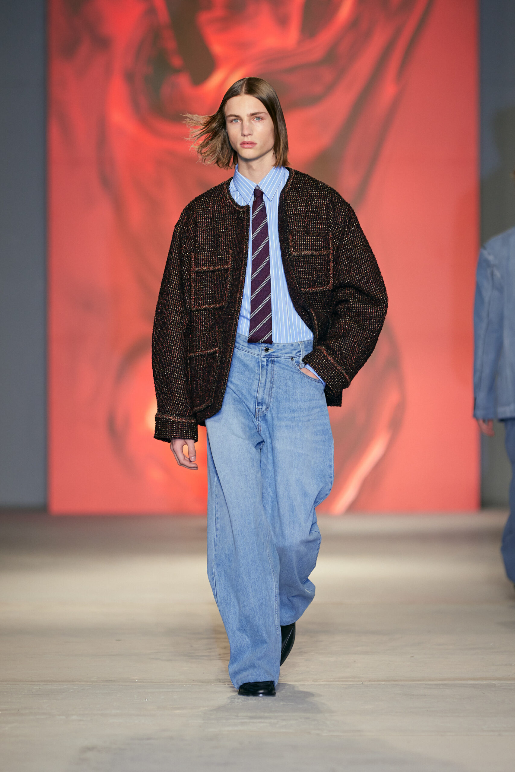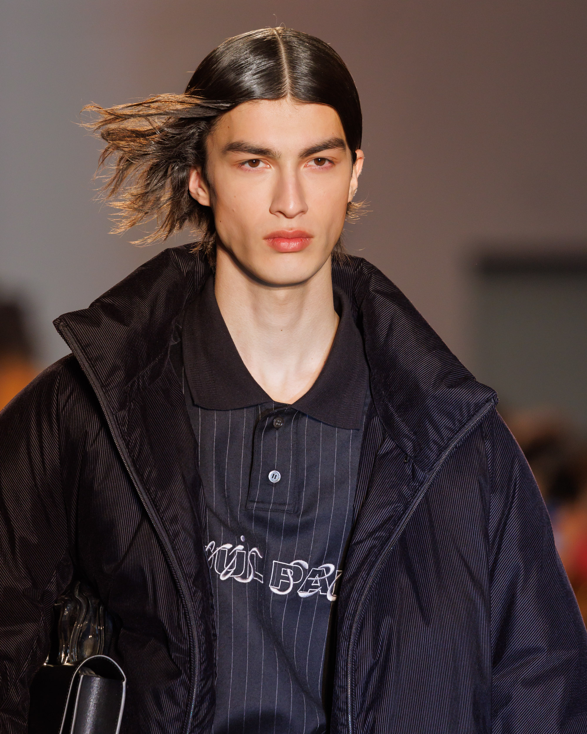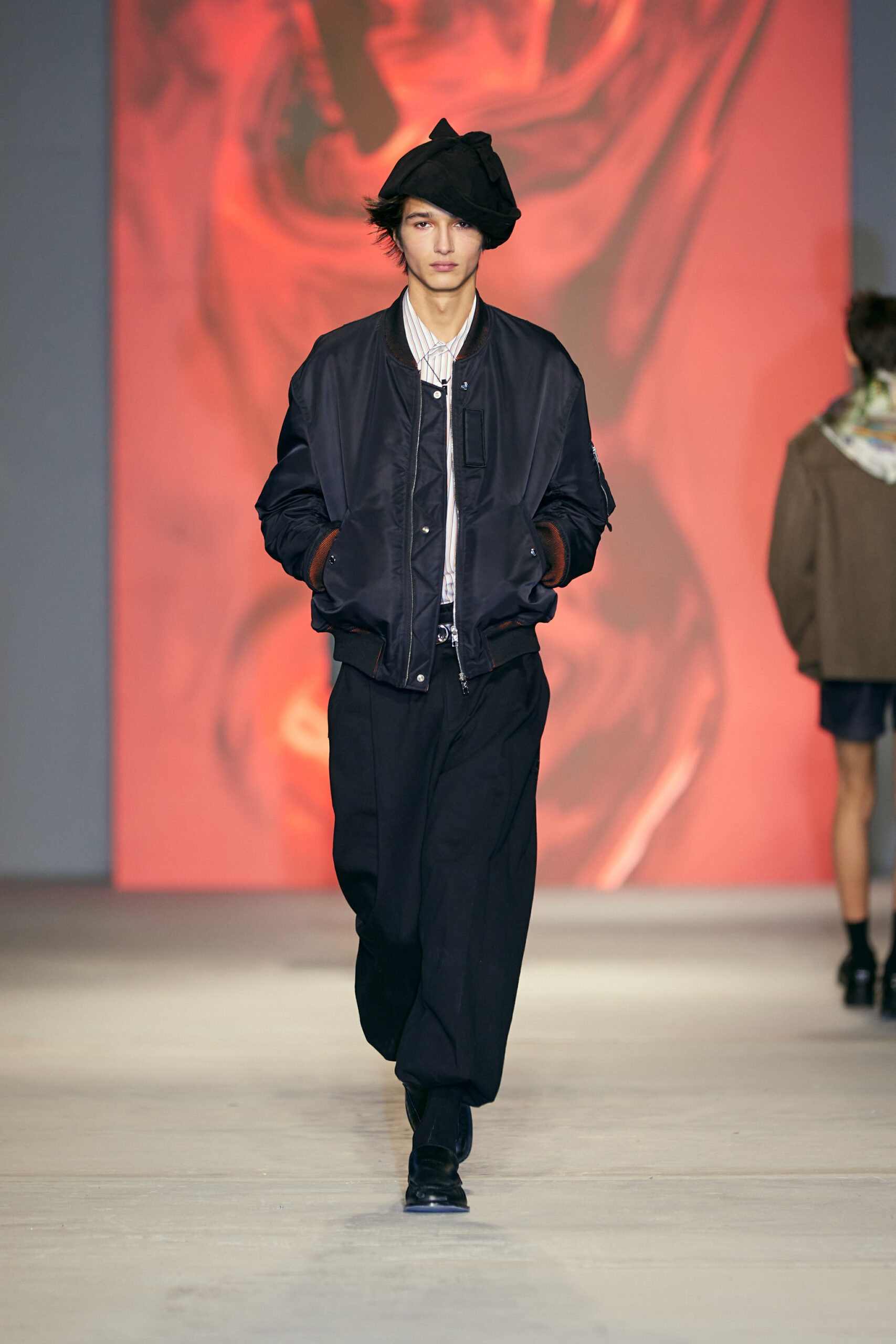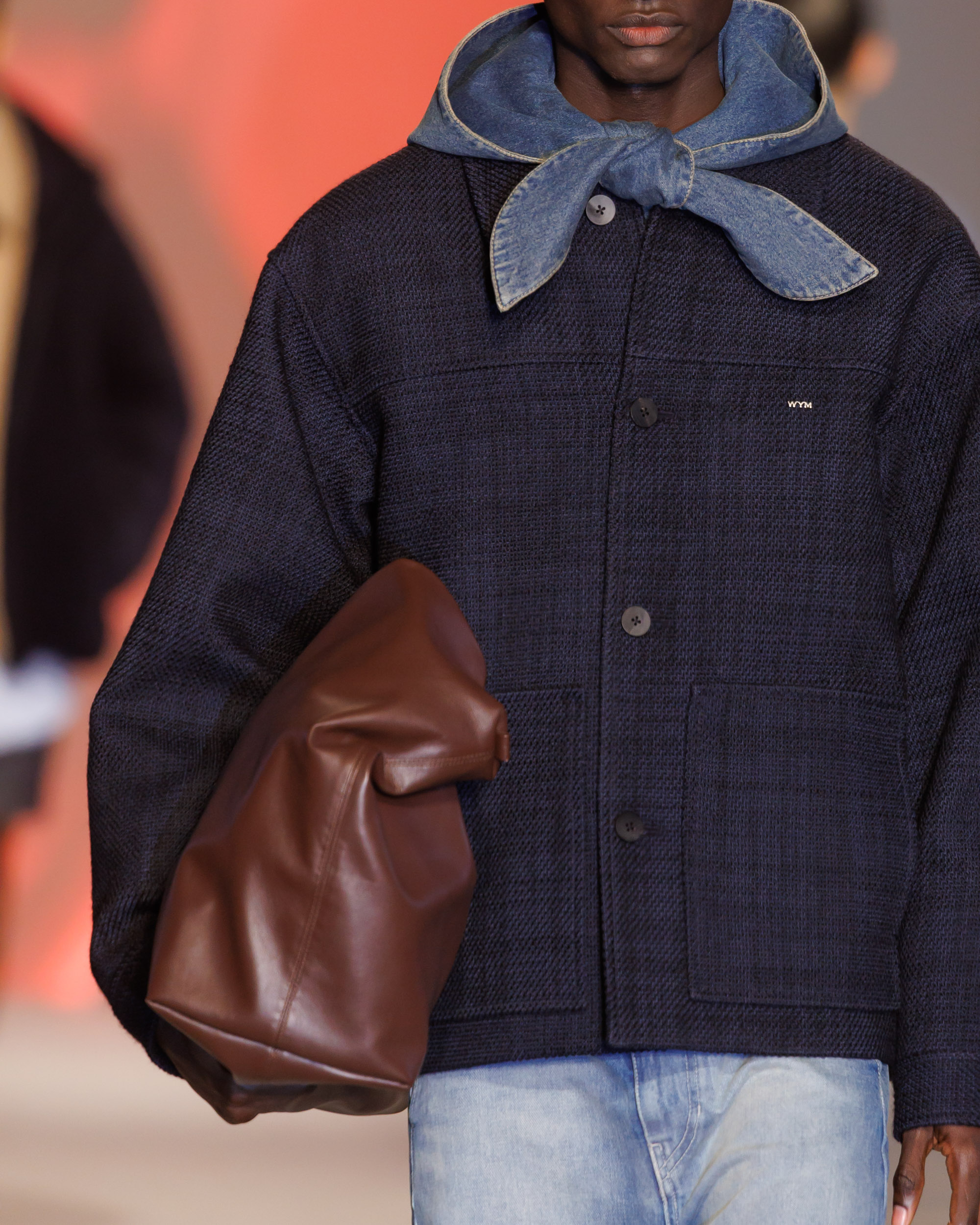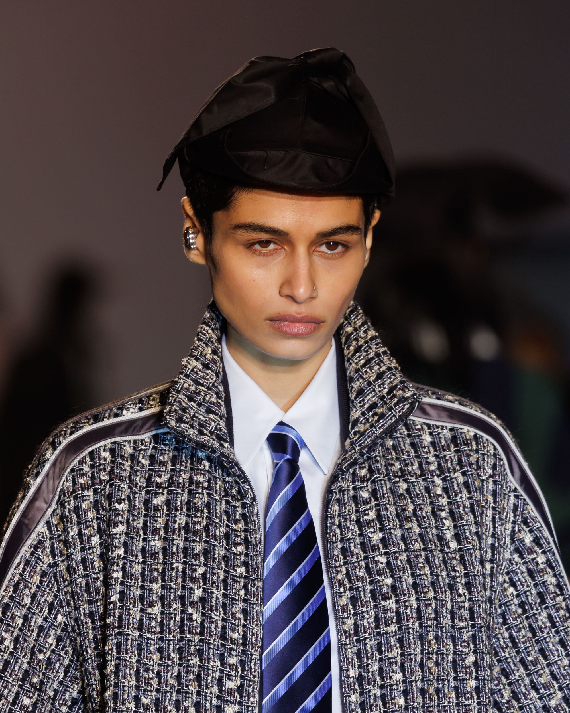 La collection rend hommage aux divers habitants de Séoul, des hommes d’affaires dans leurs manteaux allongés et costumes relax à la bourgeoisie en ensemble jupe-bouclé, sans oublier les écoliers et les scouts dans leur tenue préppy et sportswear. L’esthétique utilitaire des travailleurs de la route de Séoul se mêle aux codes de la culture jeune de la ville, créant un mélange unique qui reflète l’esprit de Séoul.