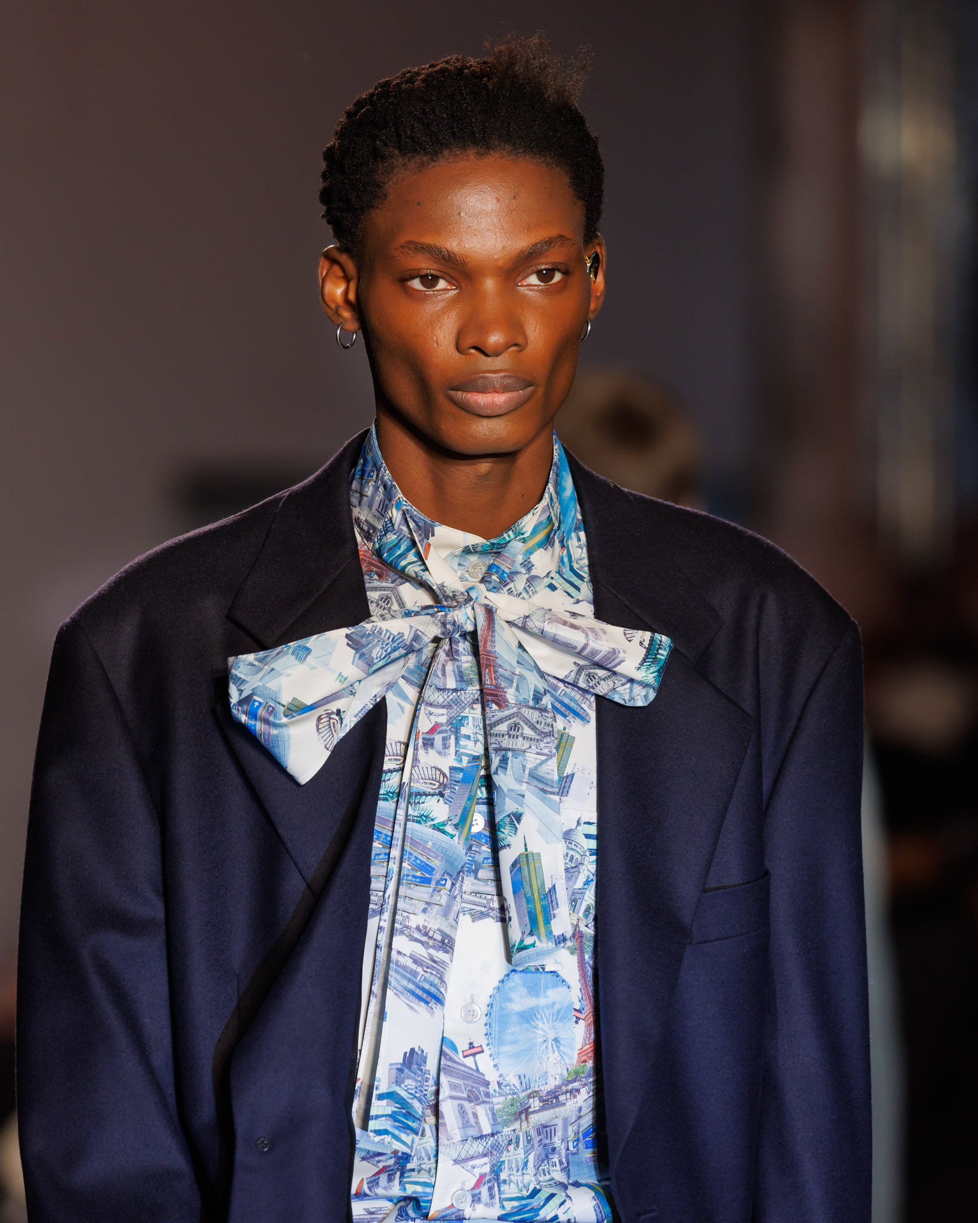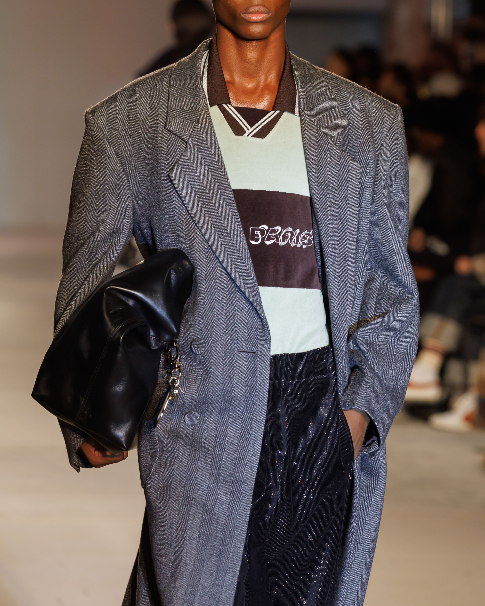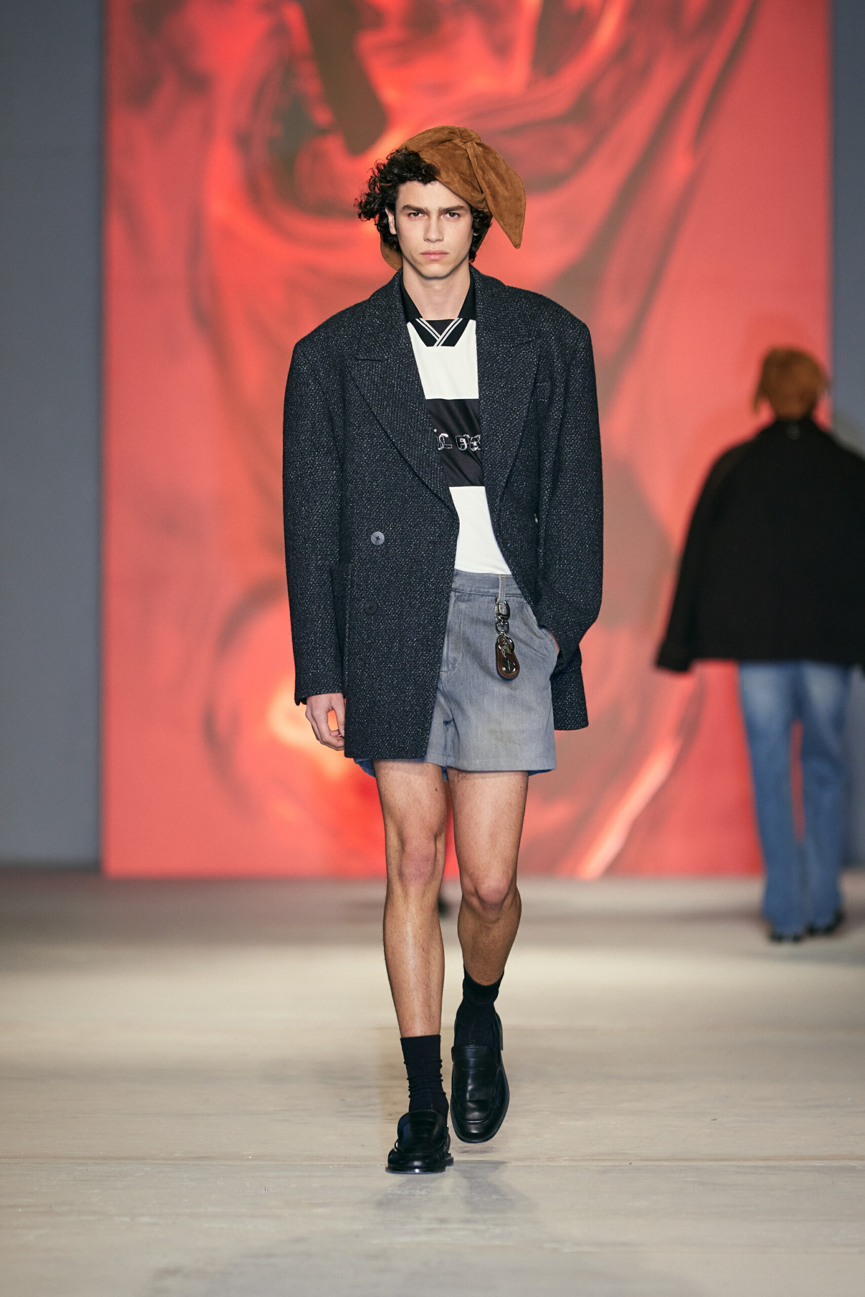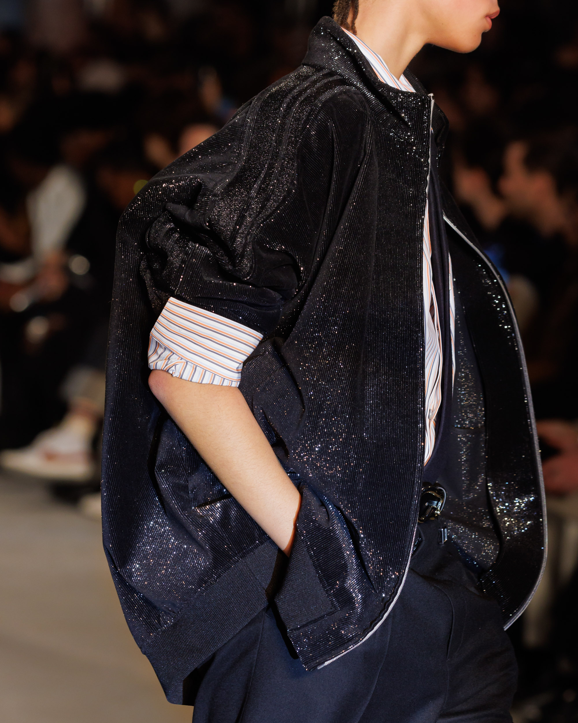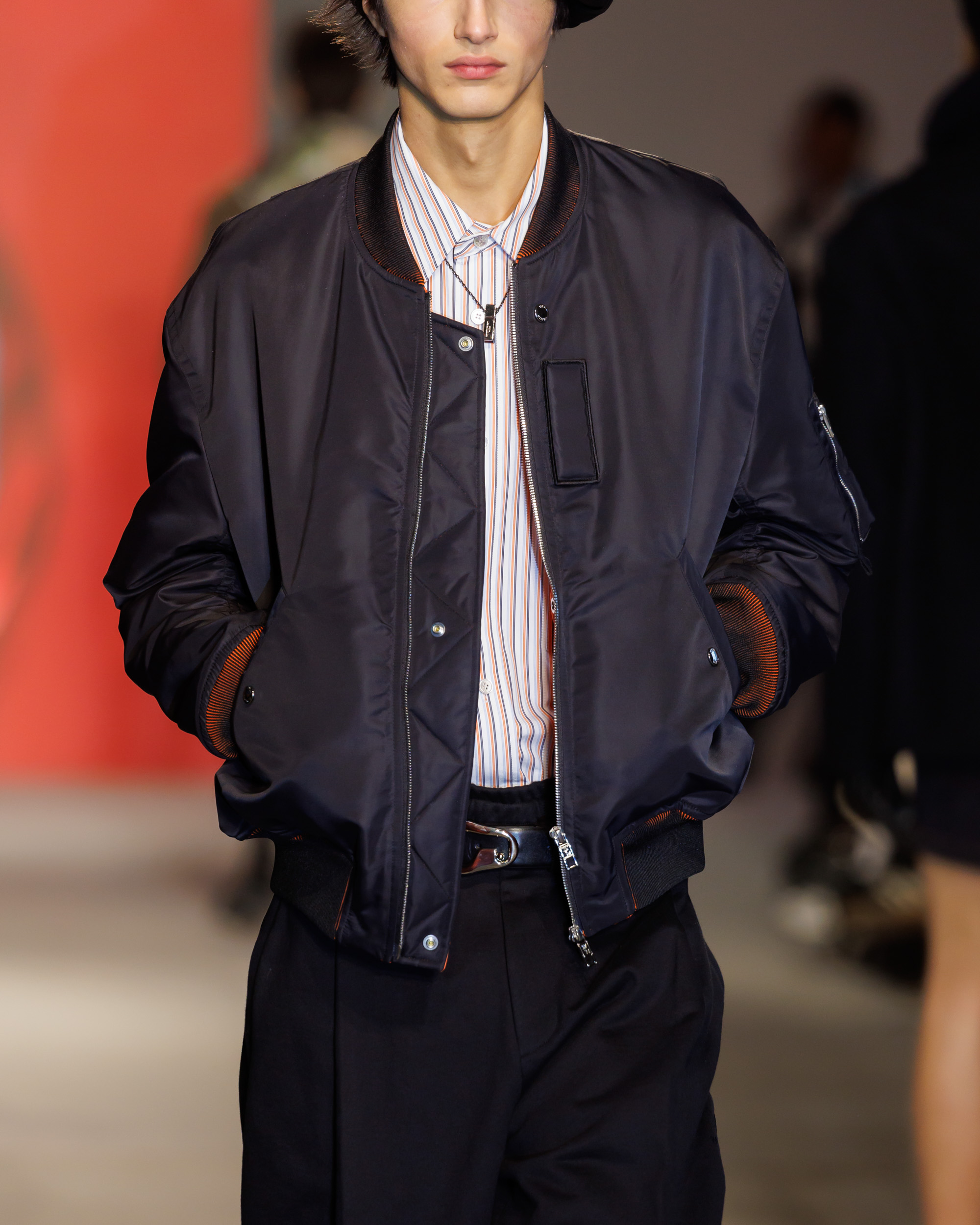 La collection rend hommage aux divers habitants de Séoul, des hommes d’affaires dans leurs manteaux allongés et costumes relax à la bourgeoisie en ensemble jupe-bouclé, sans oublier les écoliers et les scouts dans leur tenue préppy et sportswear. L’esthétique utilitaire des travailleurs de la route de Séoul se mêle aux codes de la culture jeune de la ville, créant un mélange unique qui reflète l’esprit de Séoul.