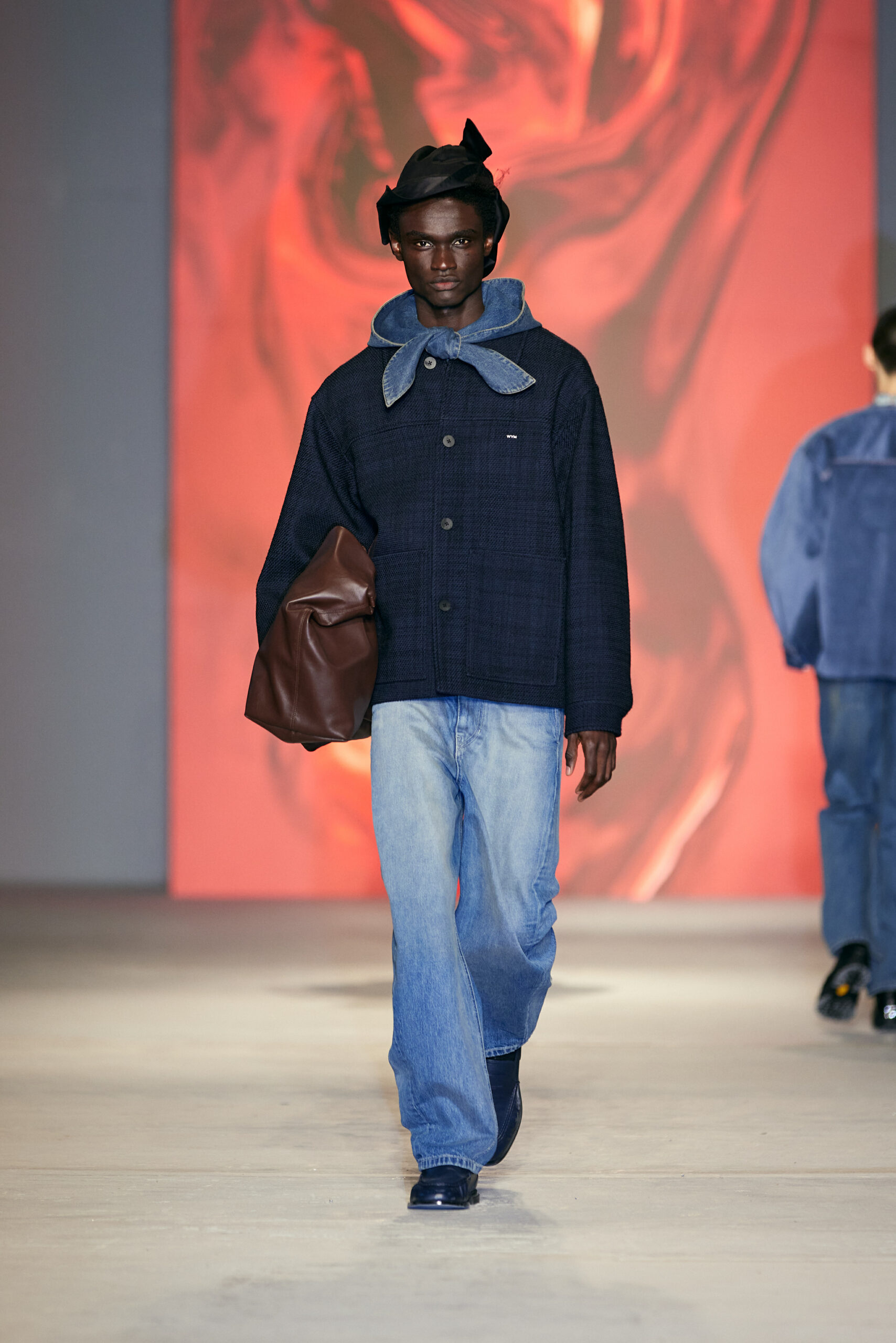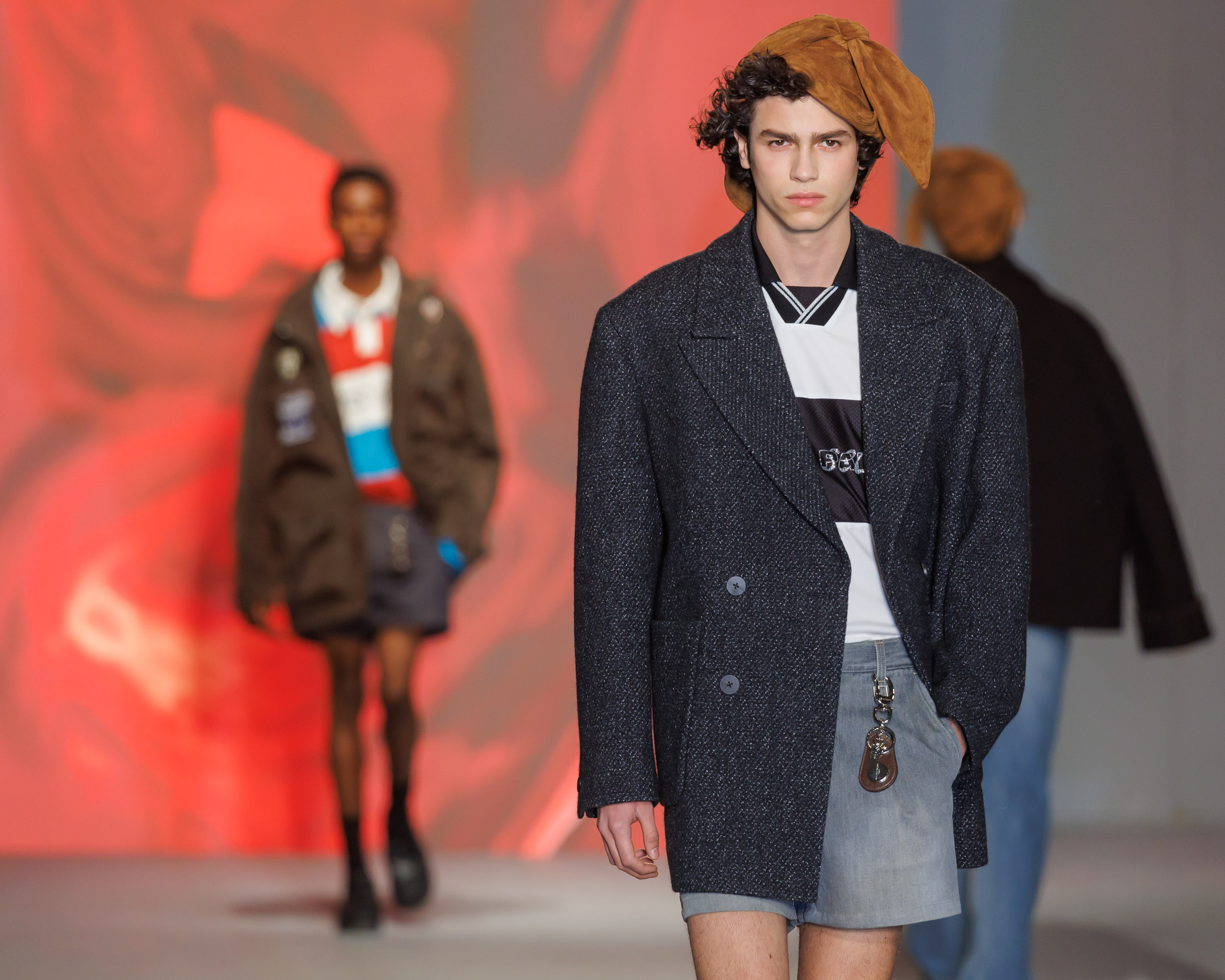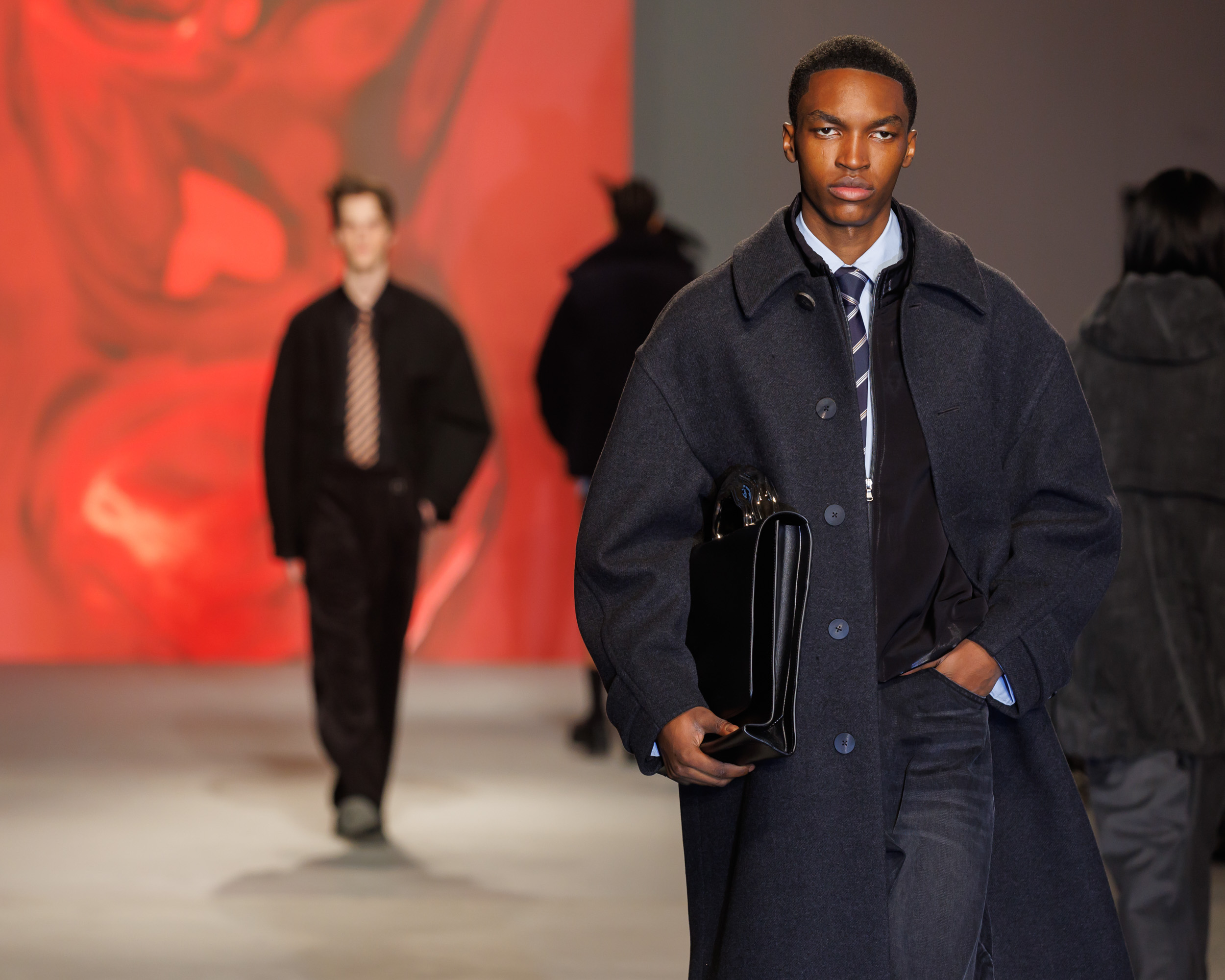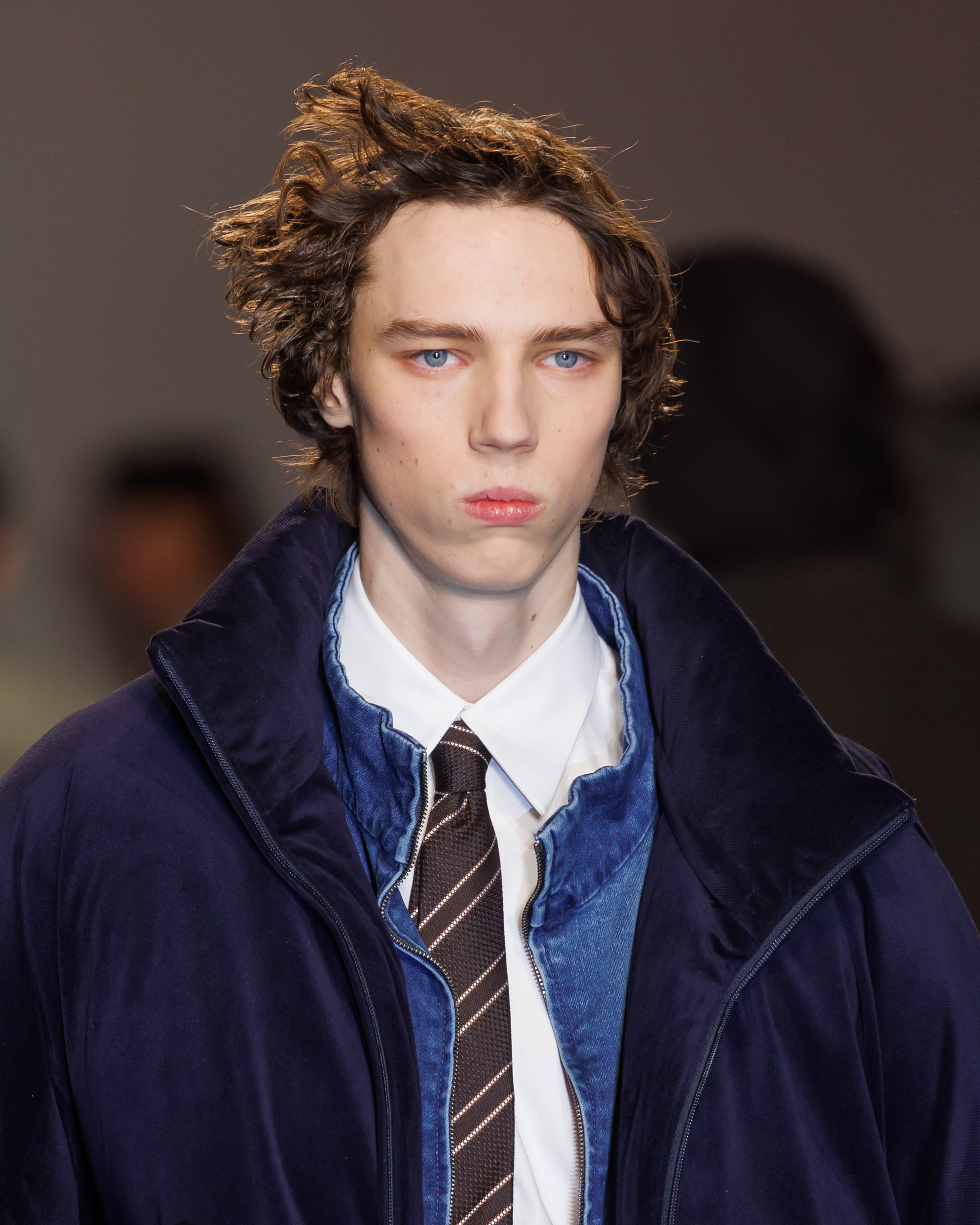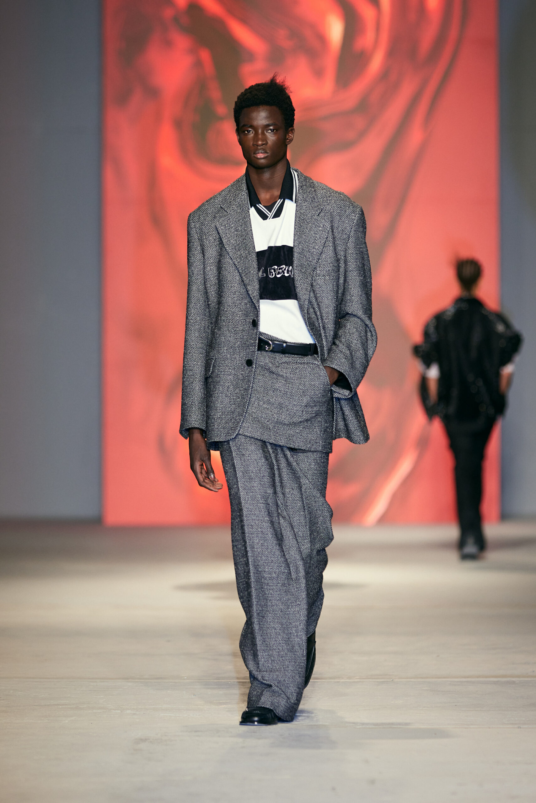 La collection rend hommage aux divers habitants de Séoul, des hommes d’affaires dans leurs manteaux allongés et costumes relax à la bourgeoisie en ensemble jupe-bouclé, sans oublier les écoliers et les scouts dans leur tenue préppy et sportswear. L’esthétique utilitaire des travailleurs de la route de Séoul se mêle aux codes de la culture jeune de la ville, créant un mélange unique qui reflète l’esprit de Séoul.