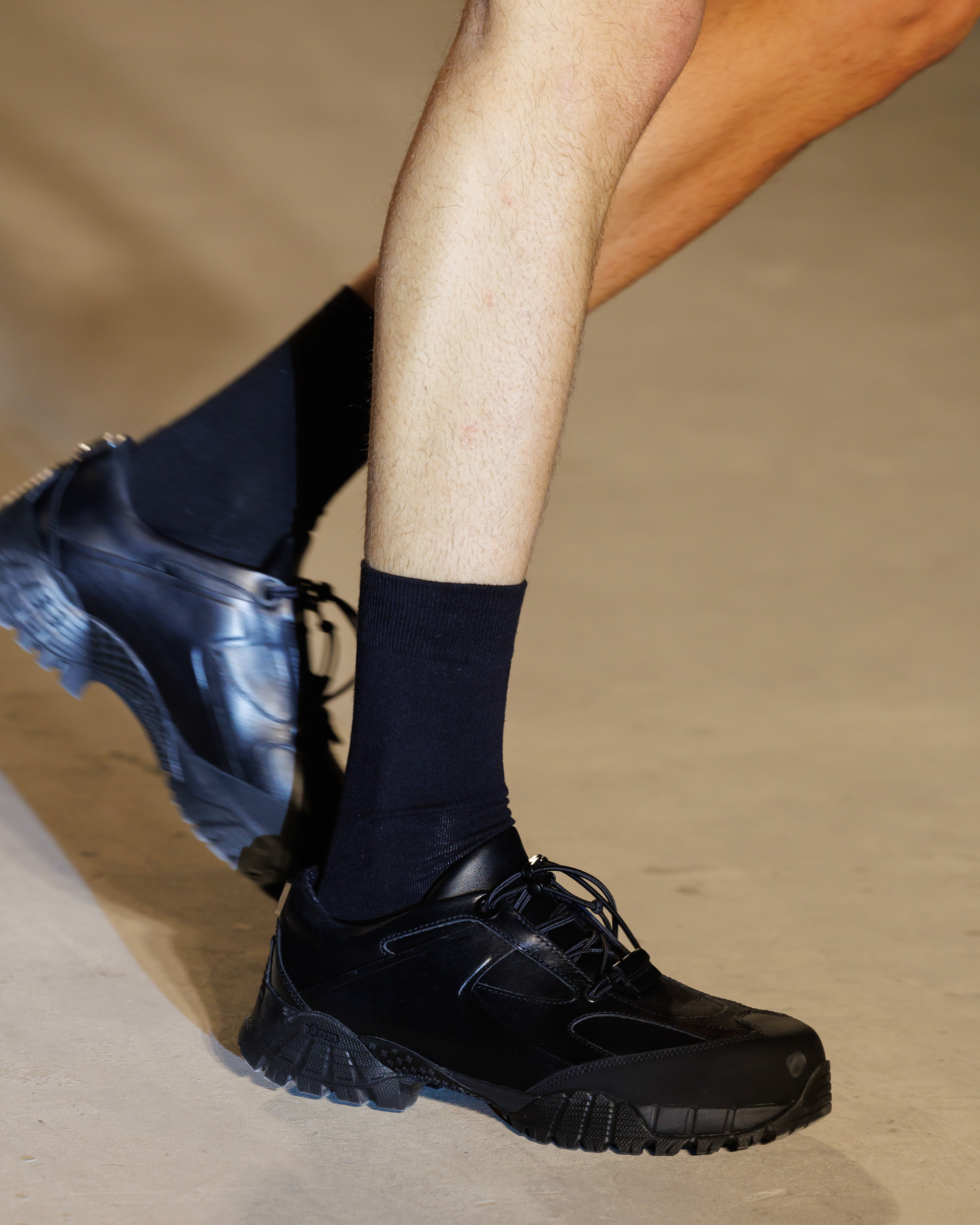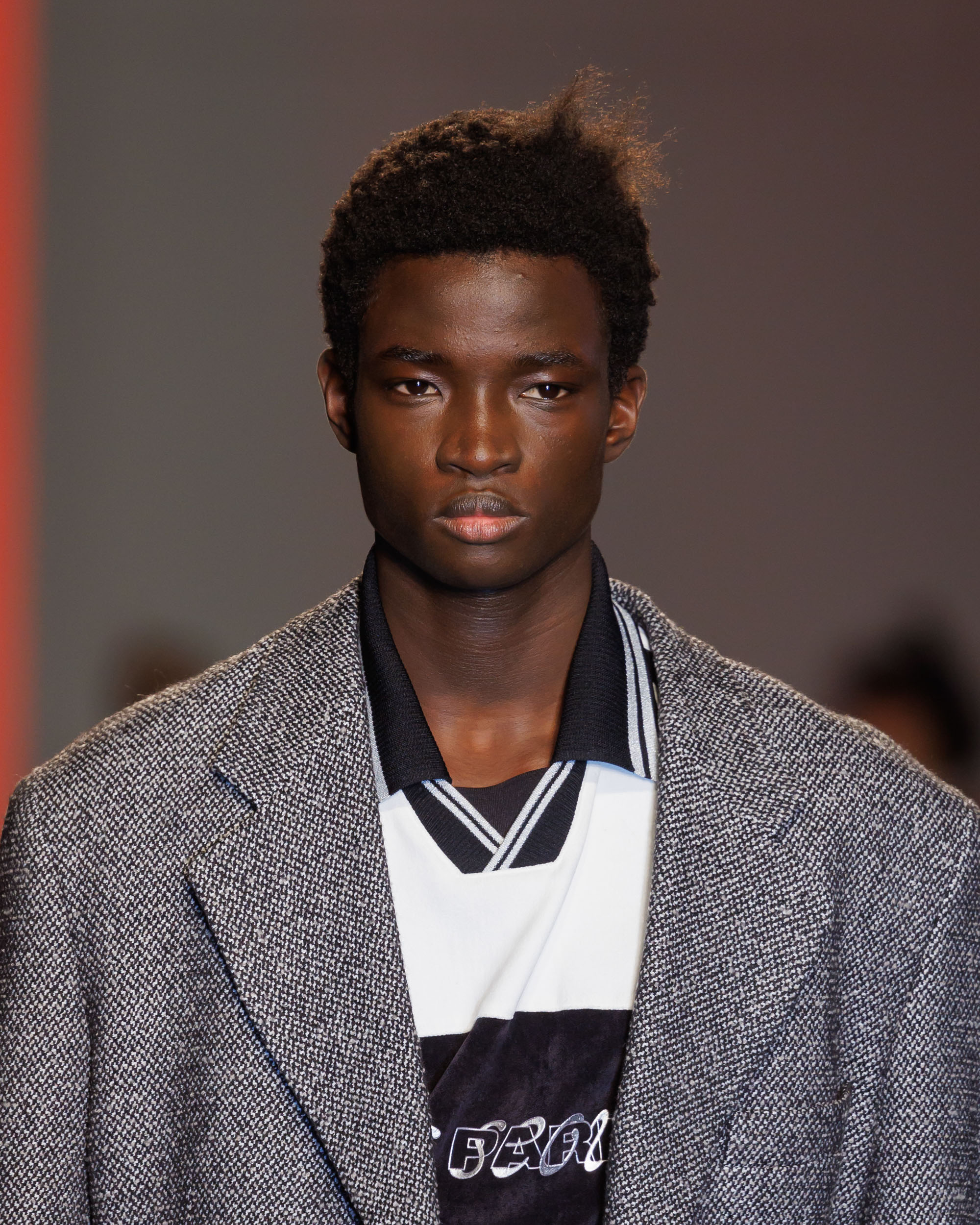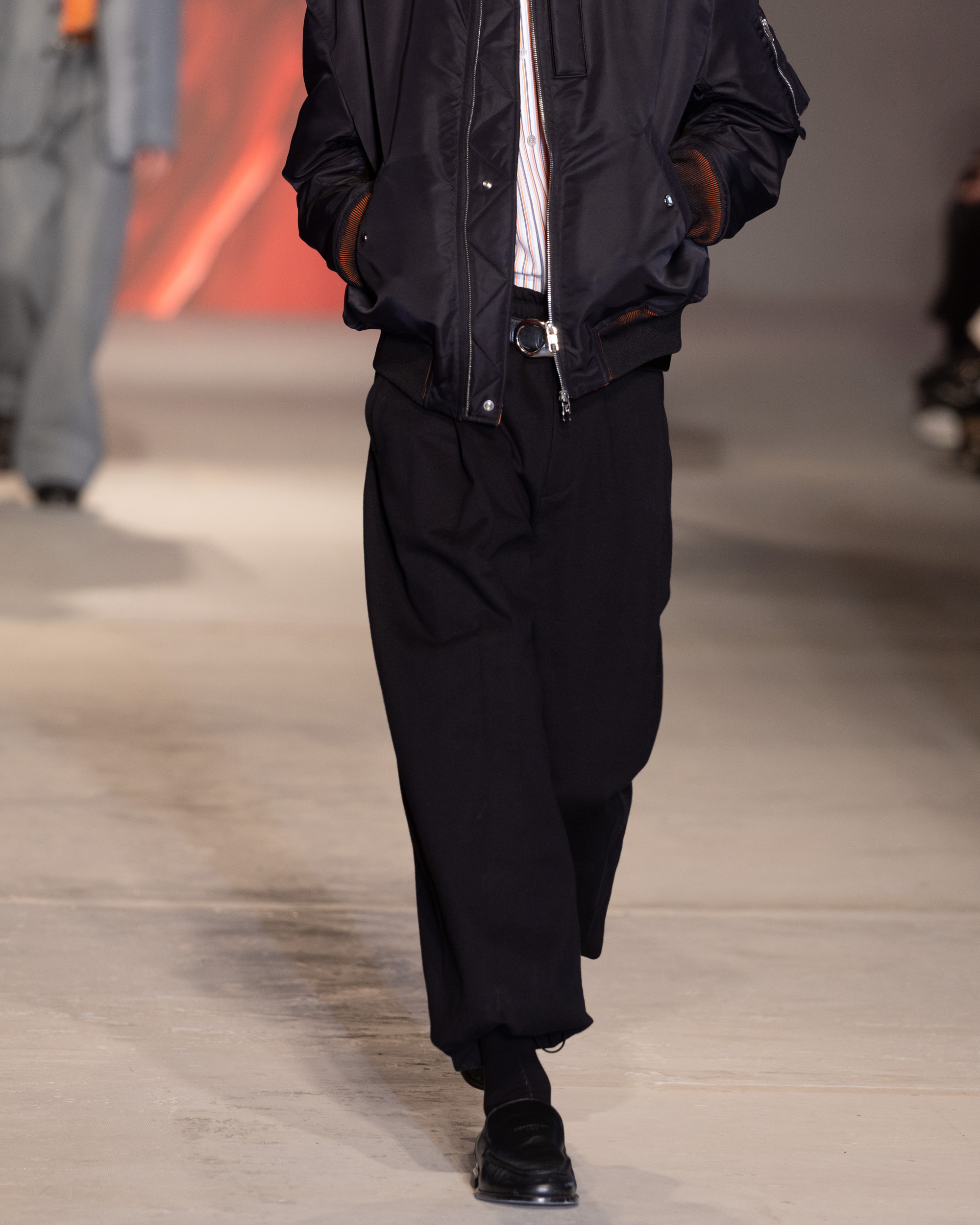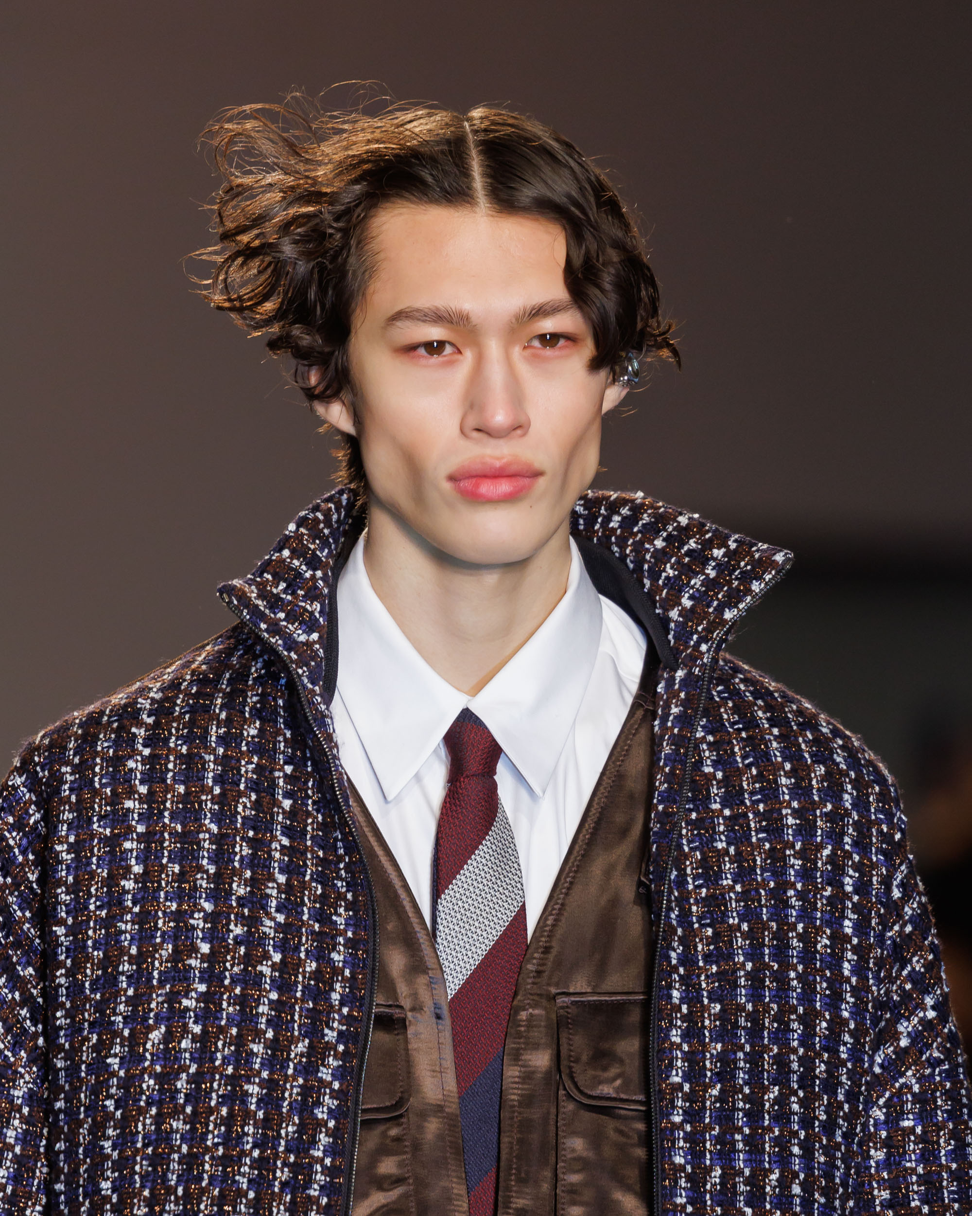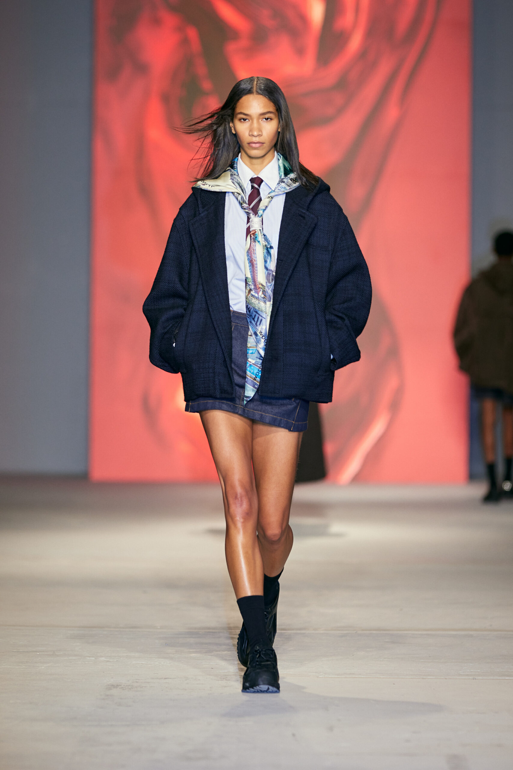 La collection rend hommage aux divers habitants de Séoul, des hommes d’affaires dans leurs manteaux allongés et costumes relax à la bourgeoisie en ensemble jupe-bouclé, sans oublier les écoliers et les scouts dans leur tenue préppy et sportswear. L’esthétique utilitaire des travailleurs de la route de Séoul se mêle aux codes de la culture jeune de la ville, créant un mélange unique qui reflète l’esprit de Séoul.