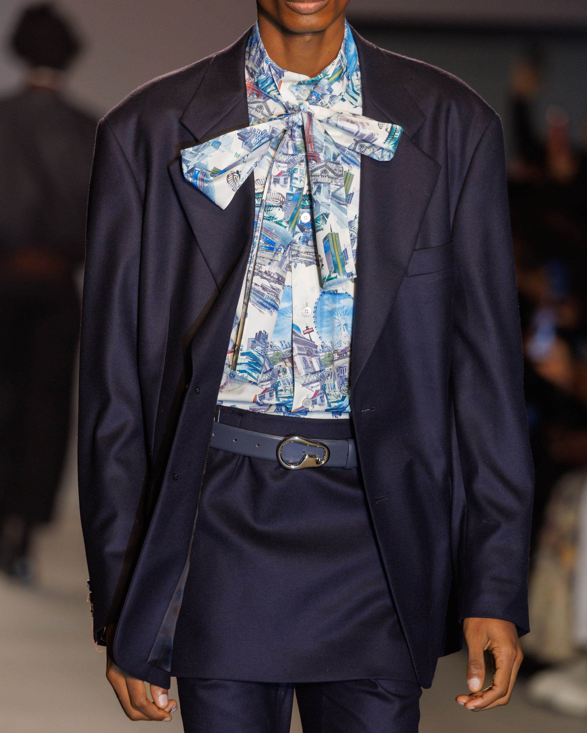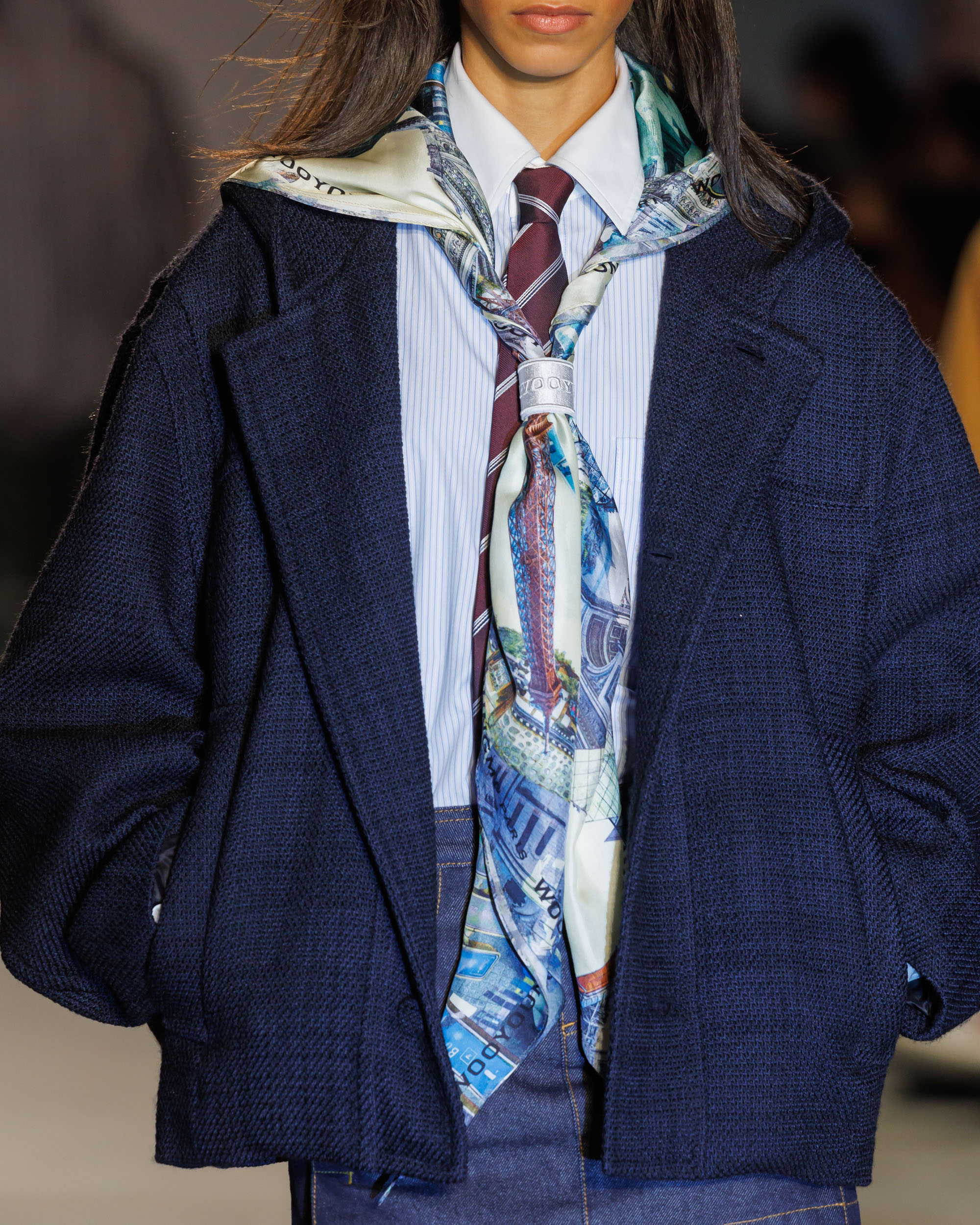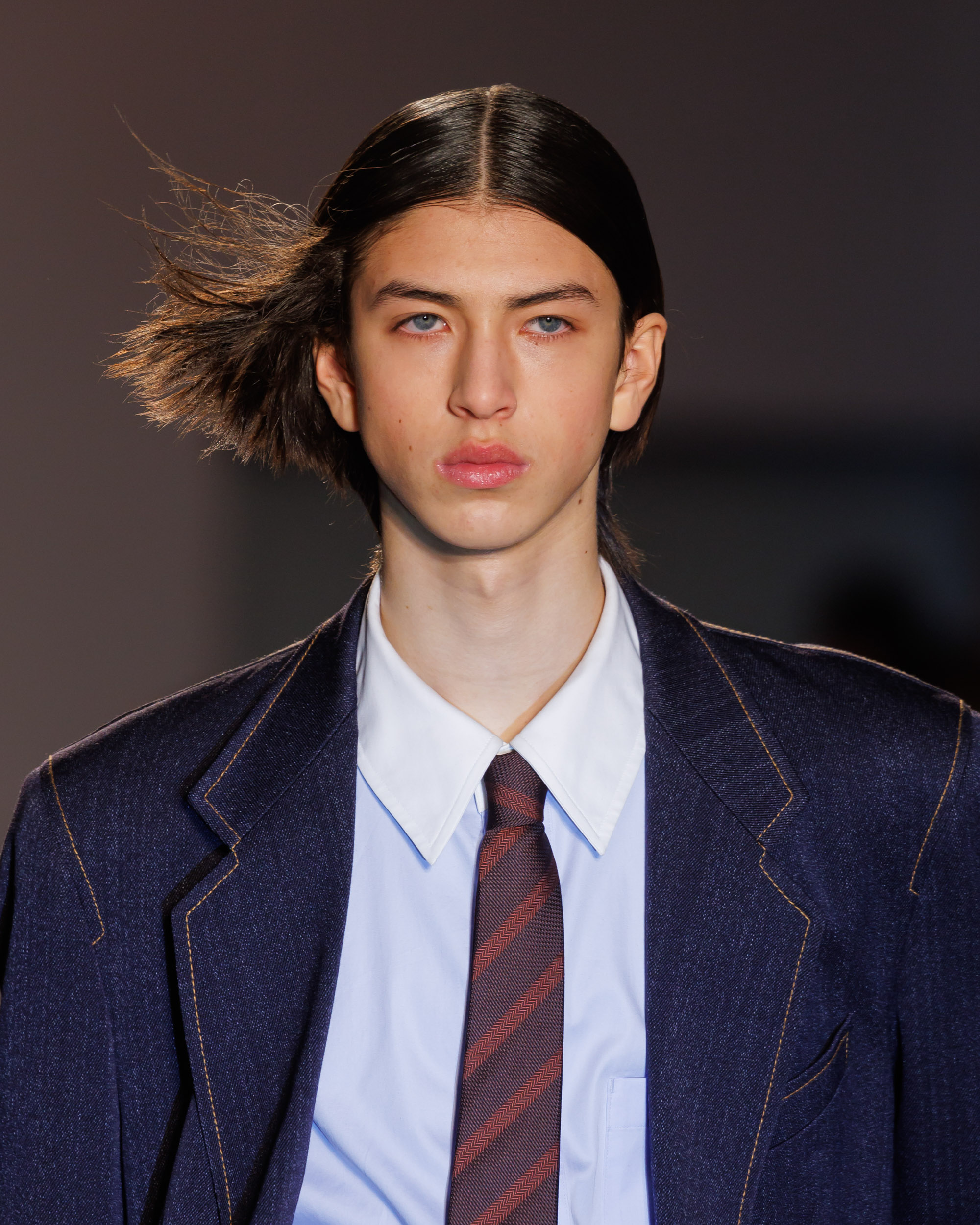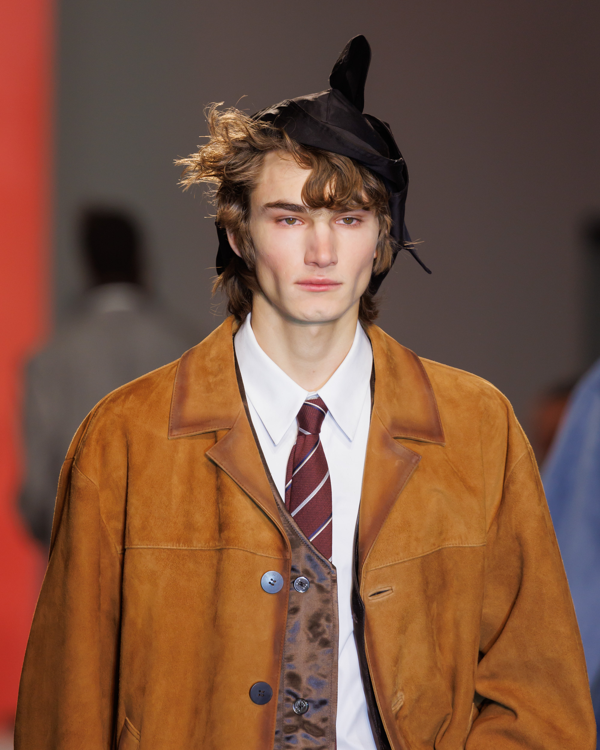 La collection rend hommage aux divers habitants de Séoul, des hommes d’affaires dans leurs manteaux allongés et costumes relax à la bourgeoisie en ensemble jupe-bouclé, sans oublier les écoliers et les scouts dans leur tenue préppy et sportswear. L’esthétique utilitaire des travailleurs de la route de Séoul se mêle aux codes de la culture jeune de la ville, créant un mélange unique qui reflète l’esprit de Séoul.