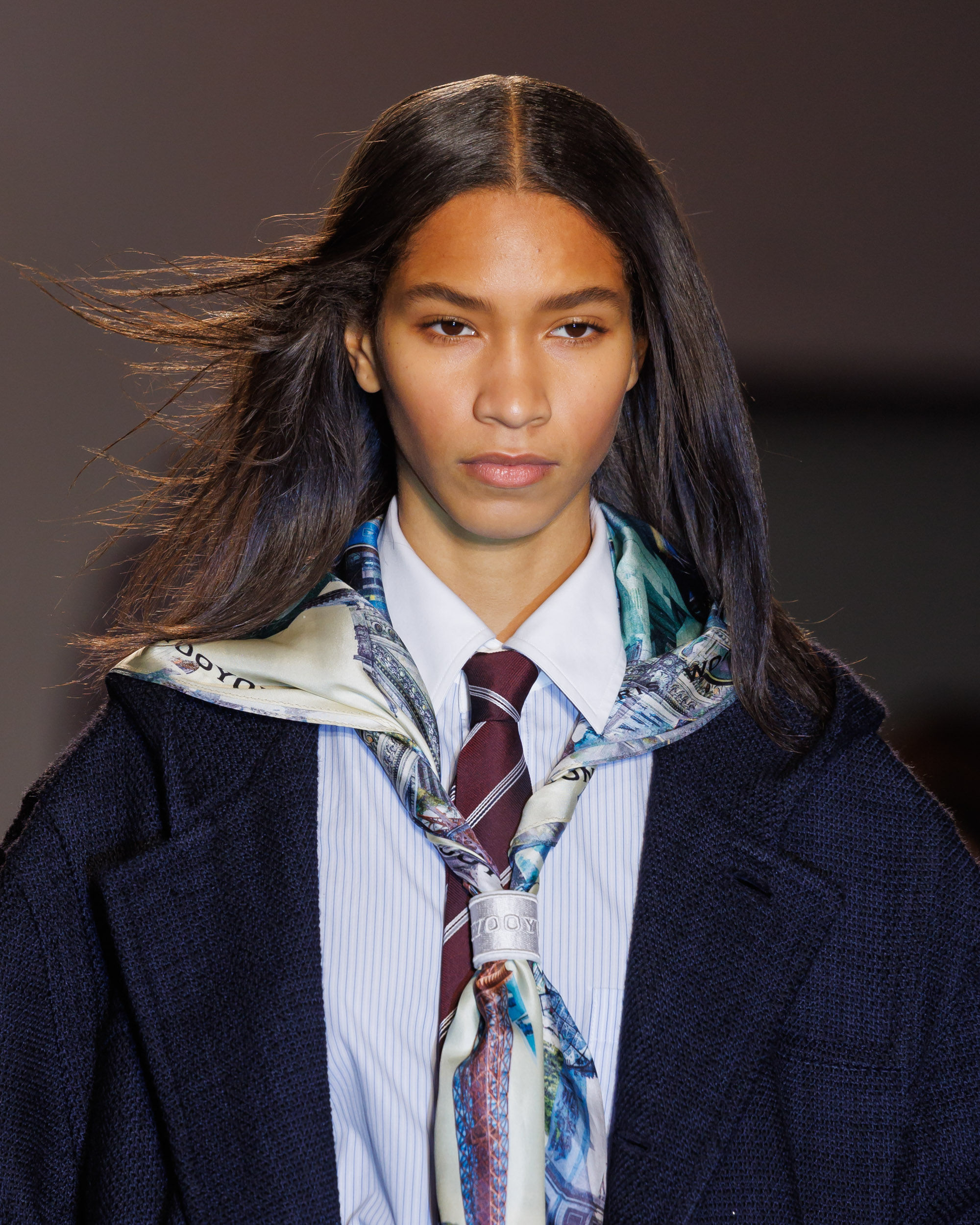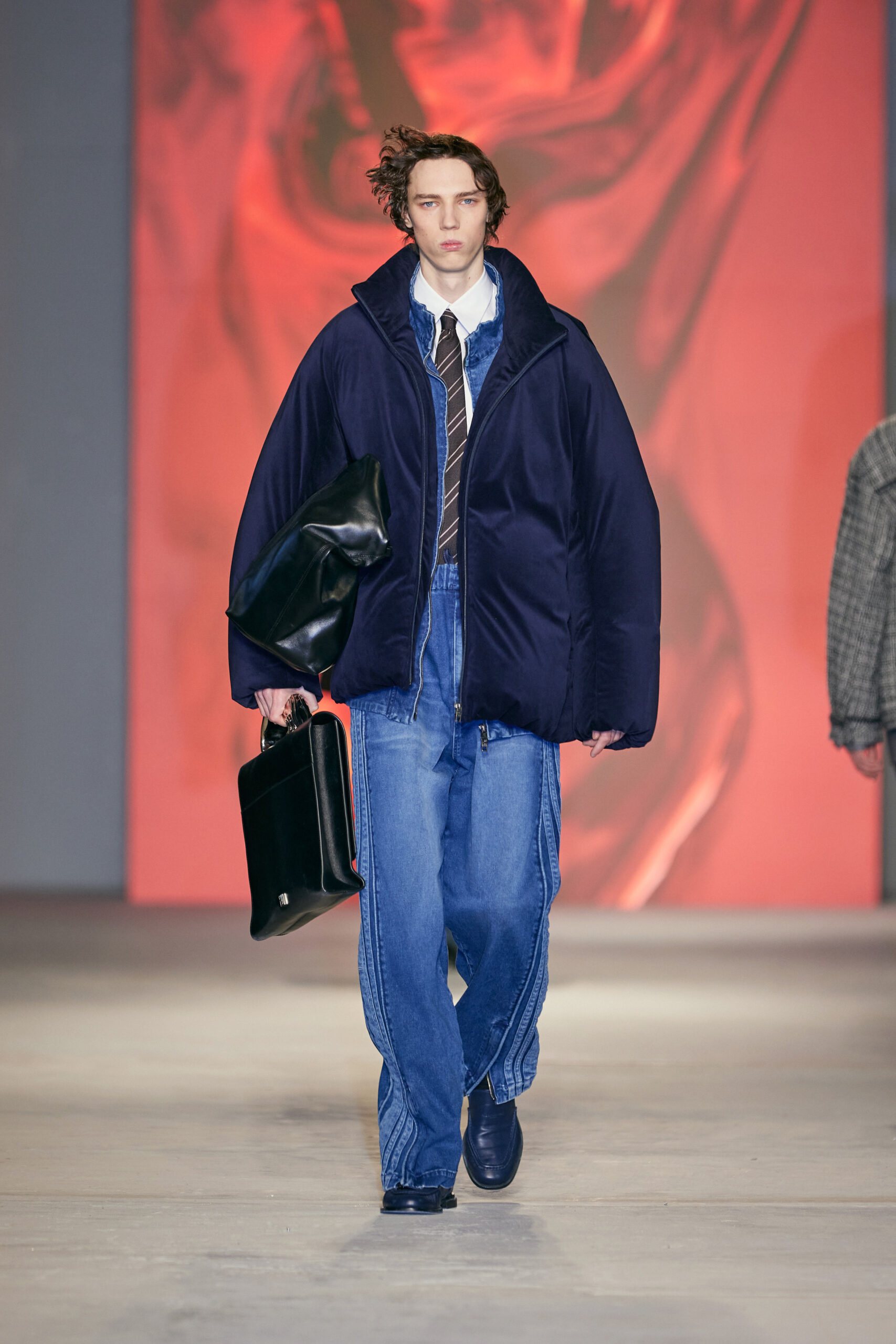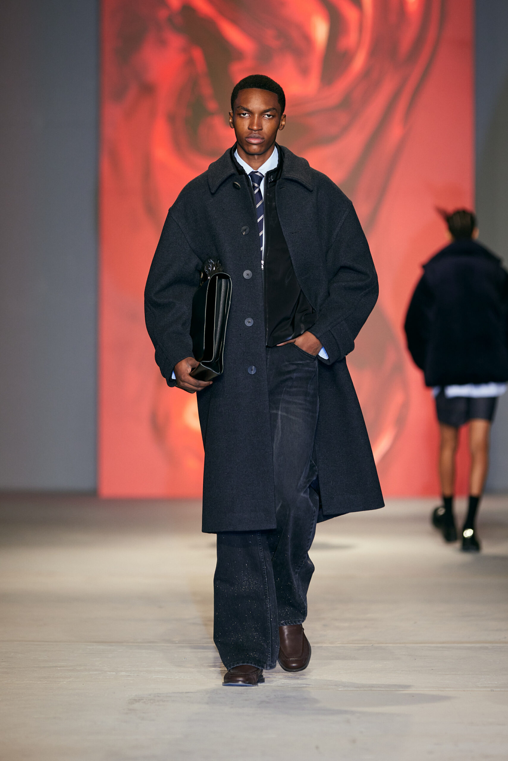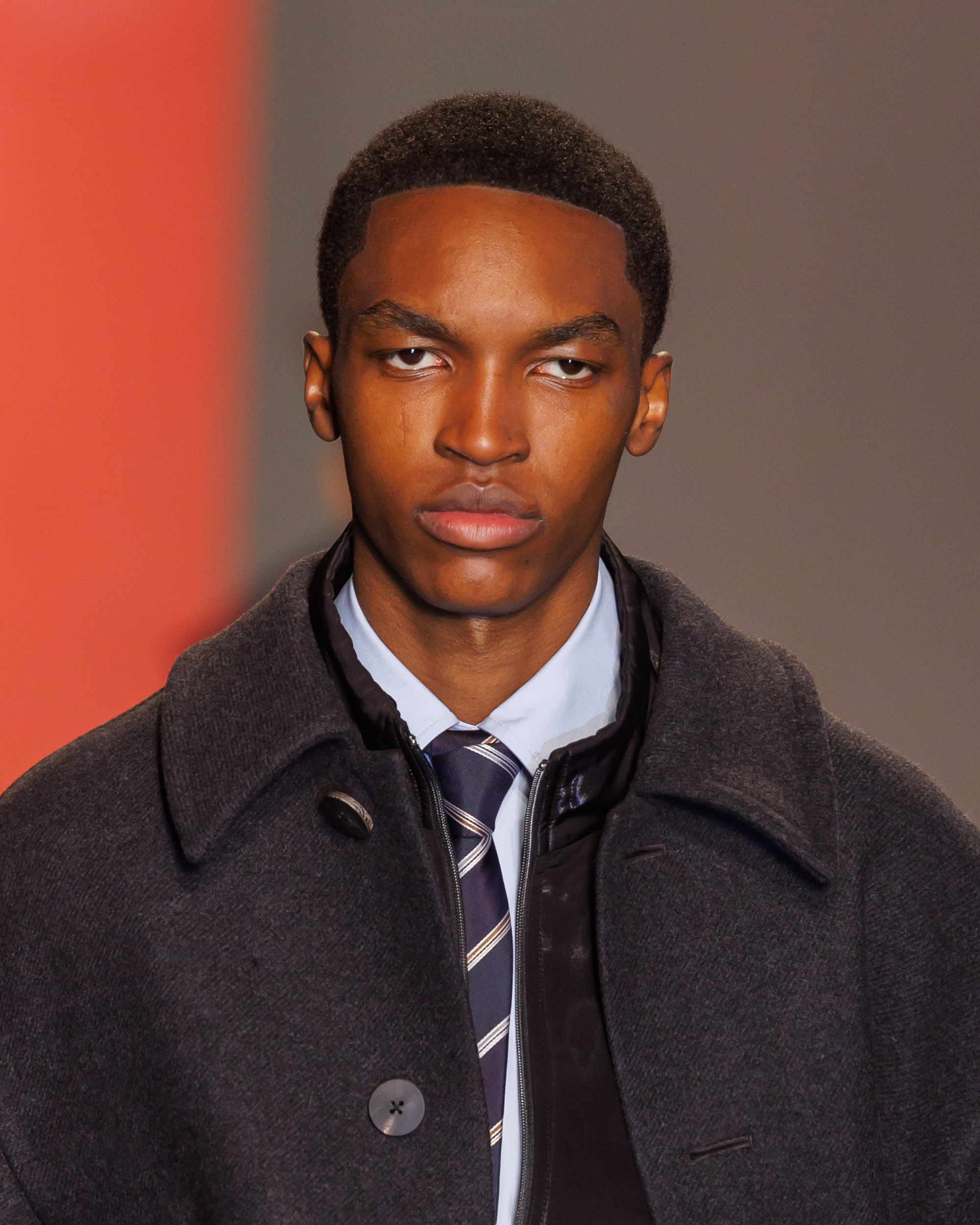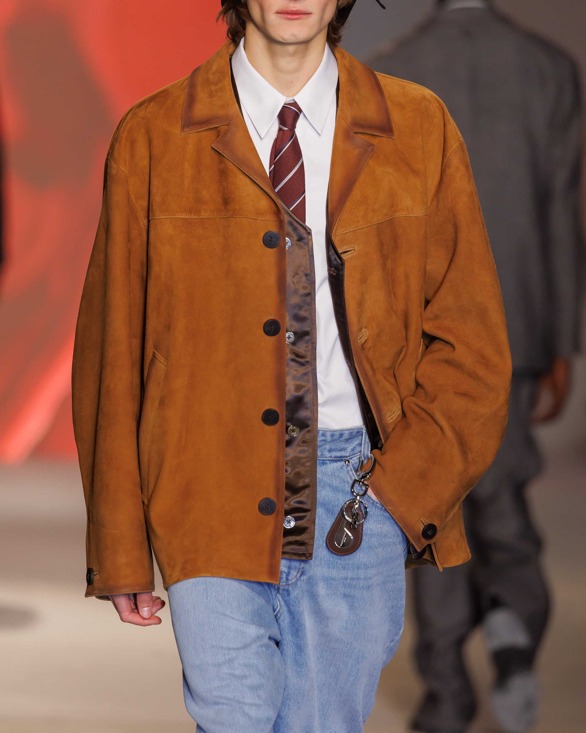 La collection rend hommage aux divers habitants de Séoul, des hommes d’affaires dans leurs manteaux allongés et costumes relax à la bourgeoisie en ensemble jupe-bouclé, sans oublier les écoliers et les scouts dans leur tenue préppy et sportswear. L’esthétique utilitaire des travailleurs de la route de Séoul se mêle aux codes de la culture jeune de la ville, créant un mélange unique qui reflète l’esprit de Séoul.