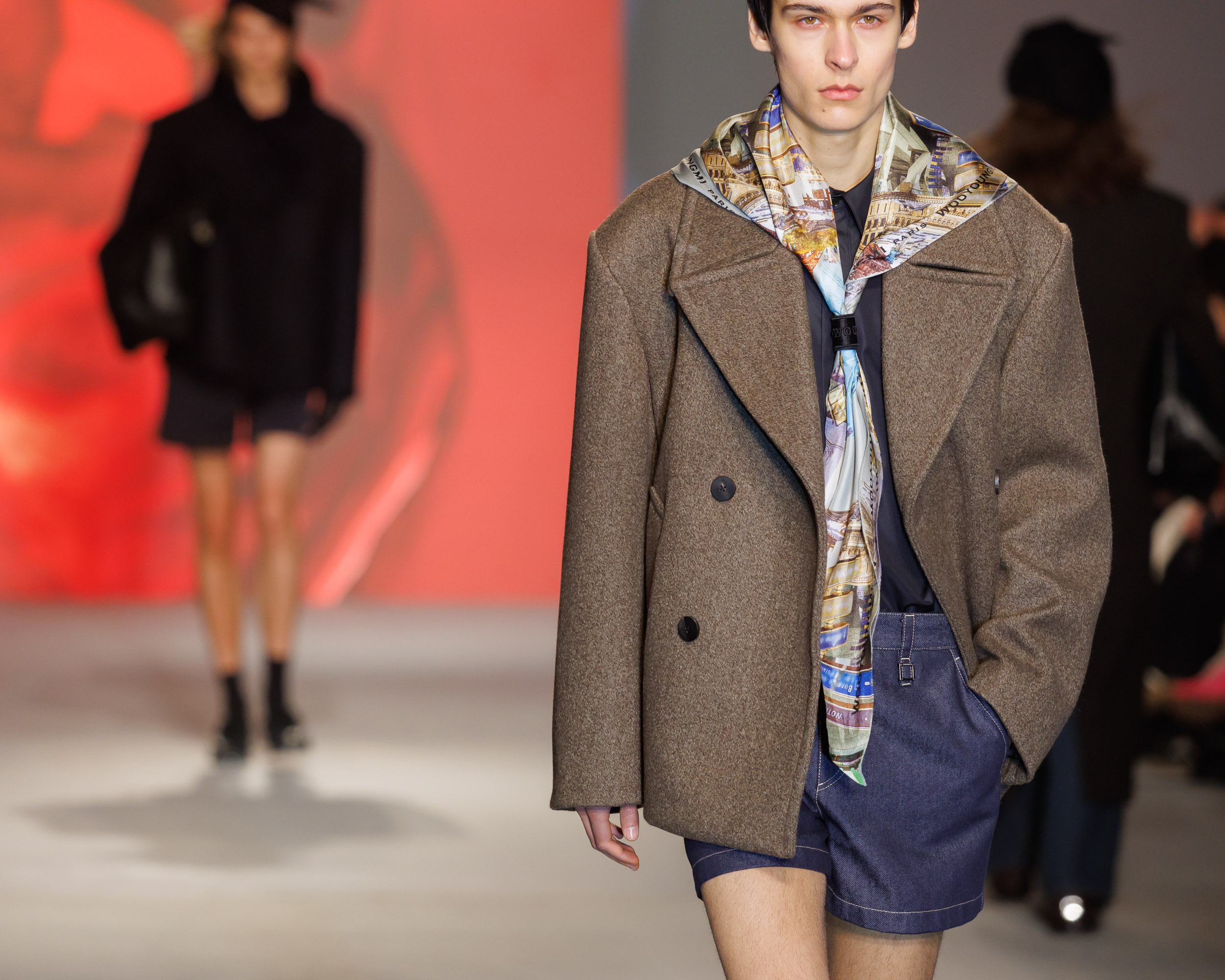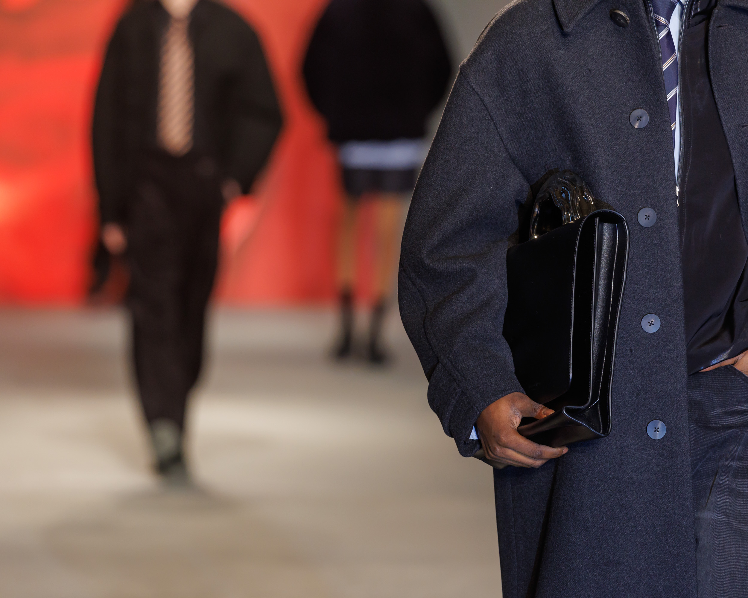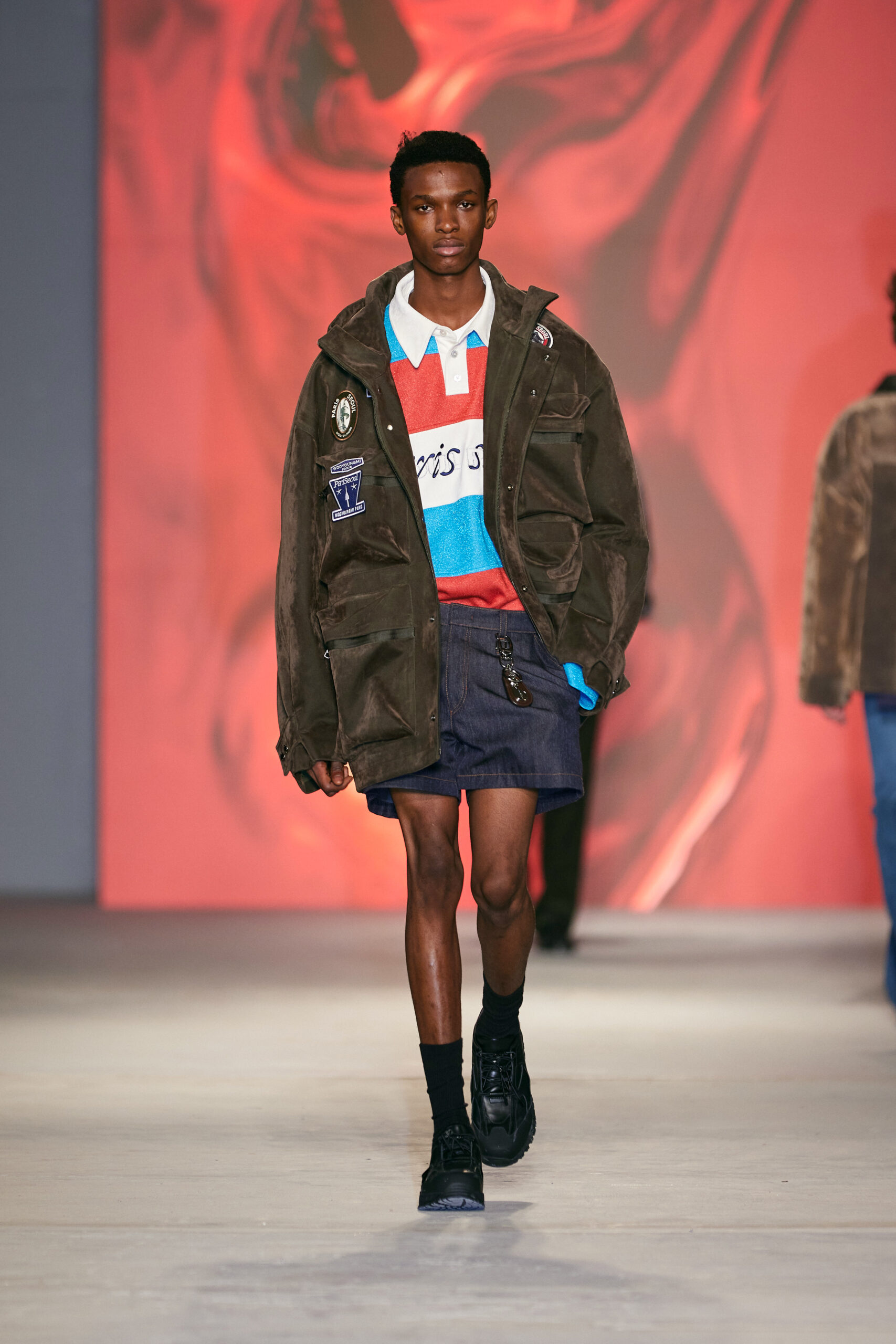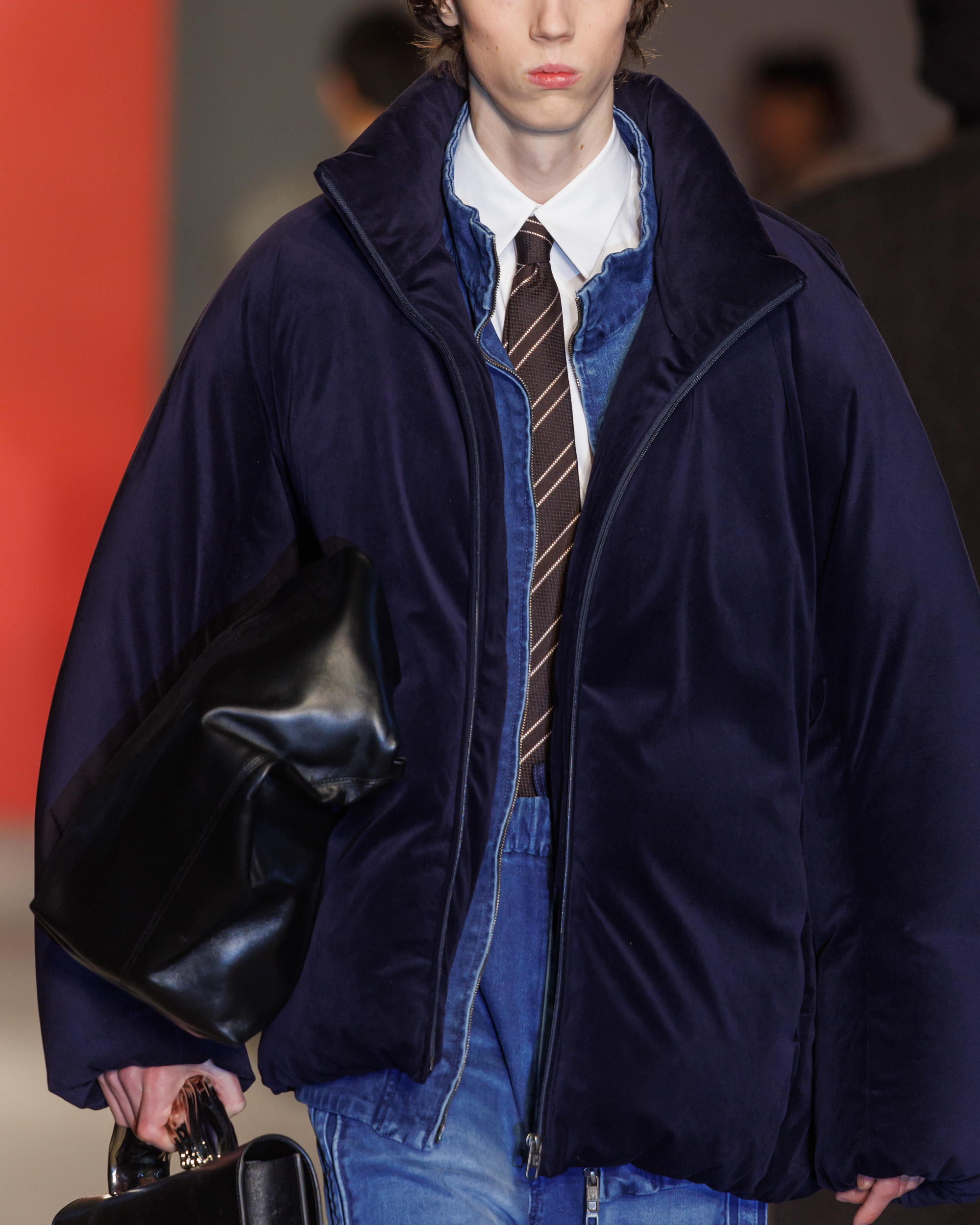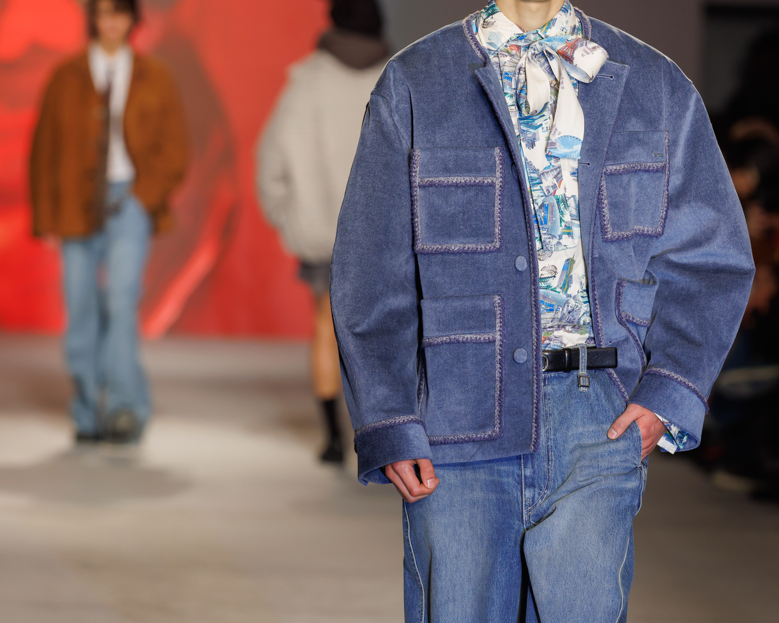 La collection rend hommage aux divers habitants de Séoul, des hommes d’affaires dans leurs manteaux allongés et costumes relax à la bourgeoisie en ensemble jupe-bouclé, sans oublier les écoliers et les scouts dans leur tenue préppy et sportswear. L’esthétique utilitaire des travailleurs de la route de Séoul se mêle aux codes de la culture jeune de la ville, créant un mélange unique qui reflète l’esprit de Séoul.