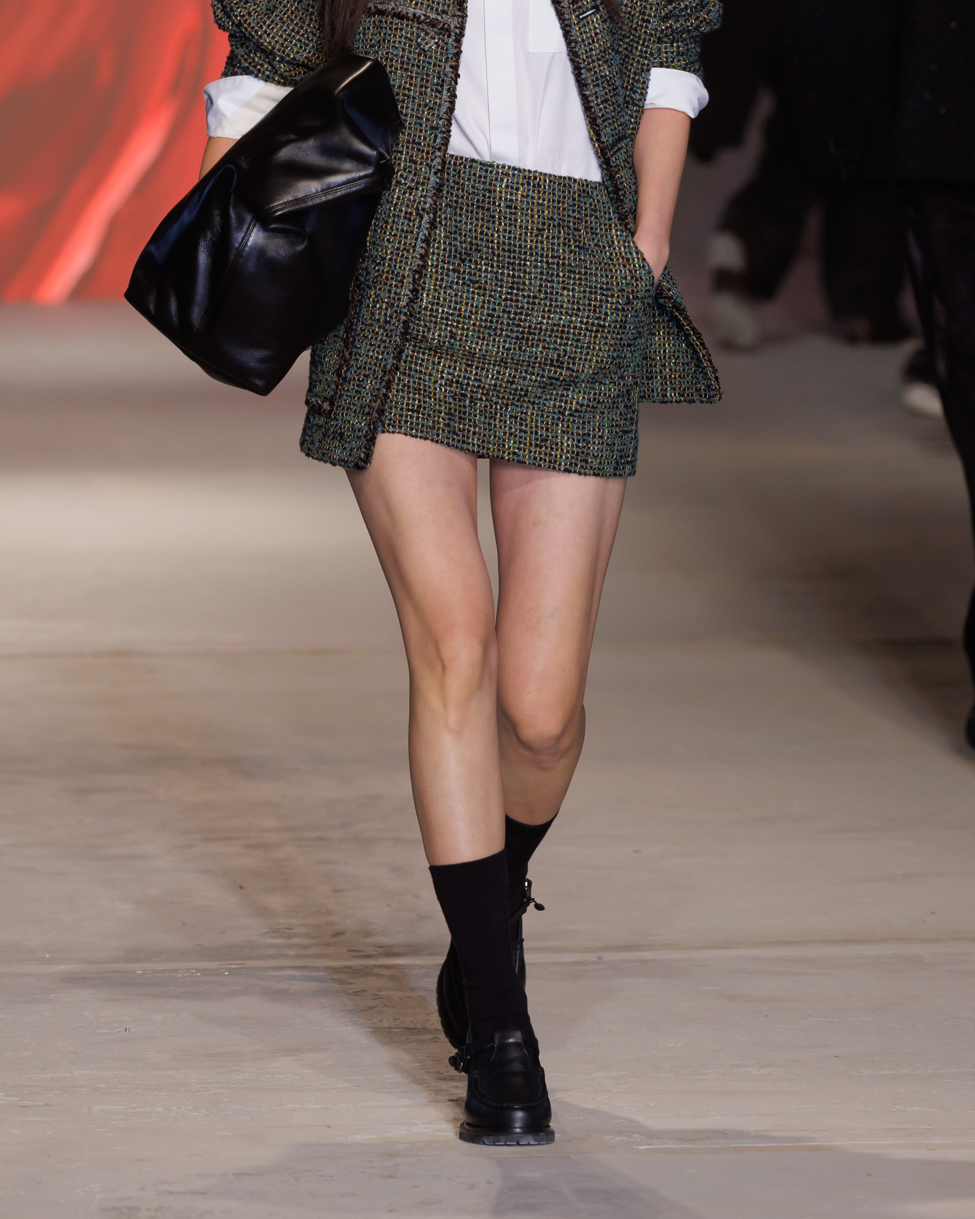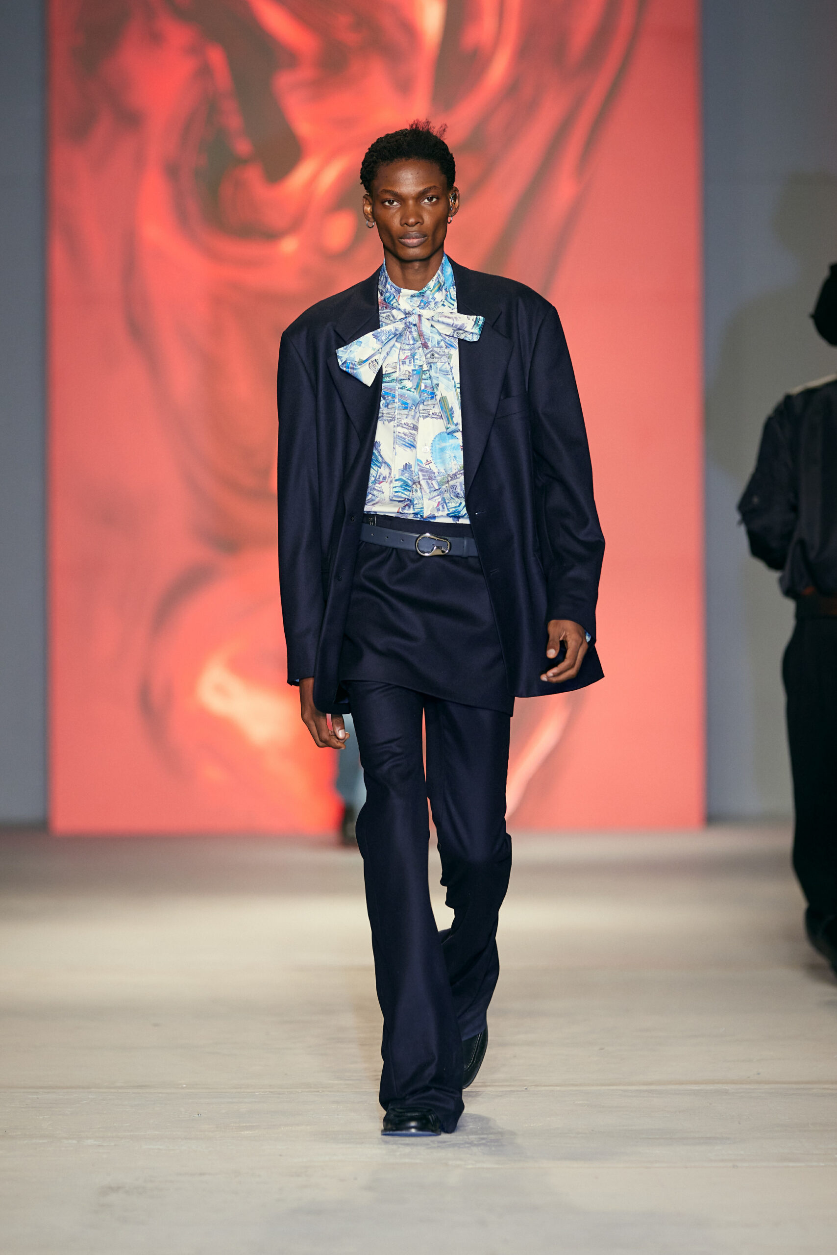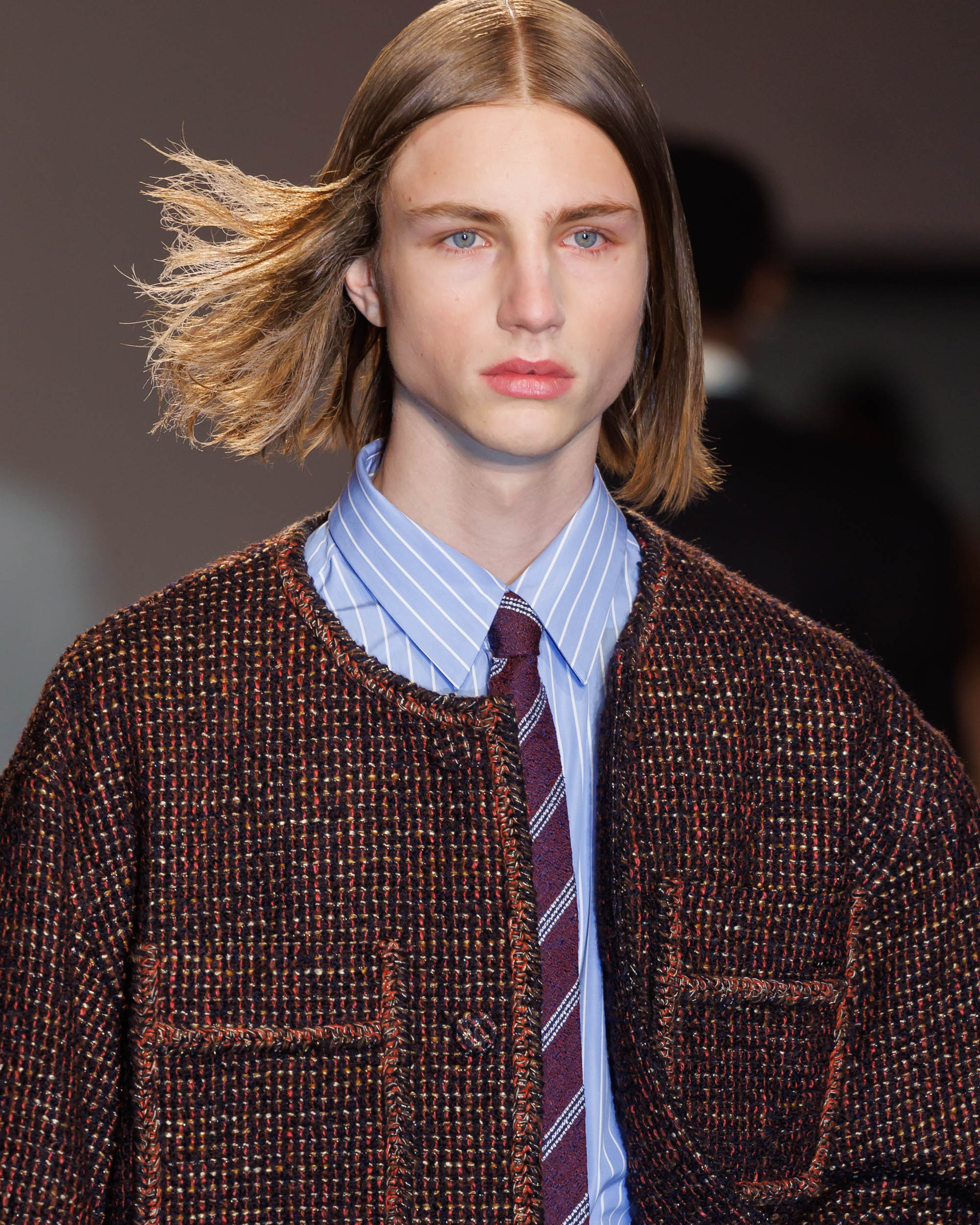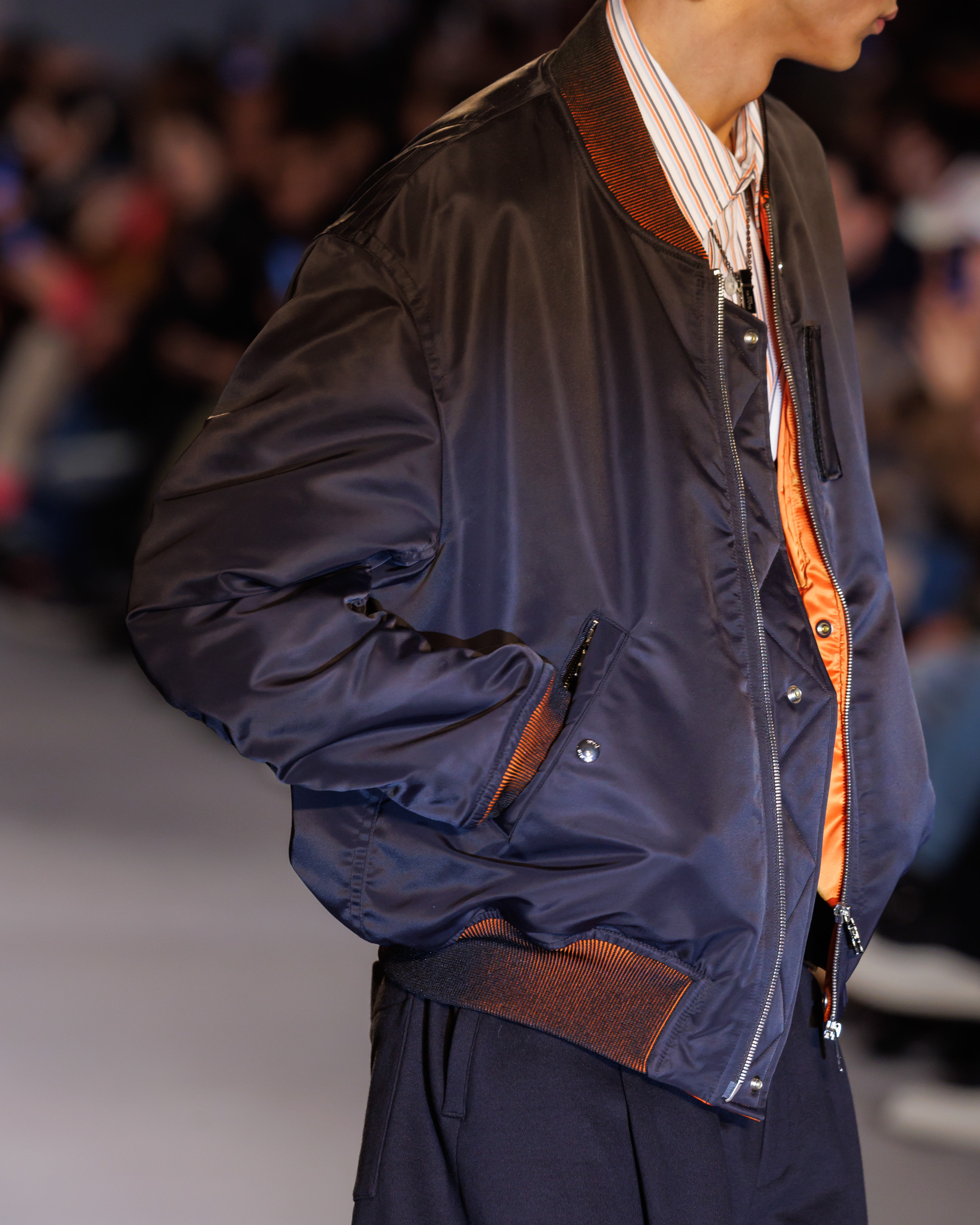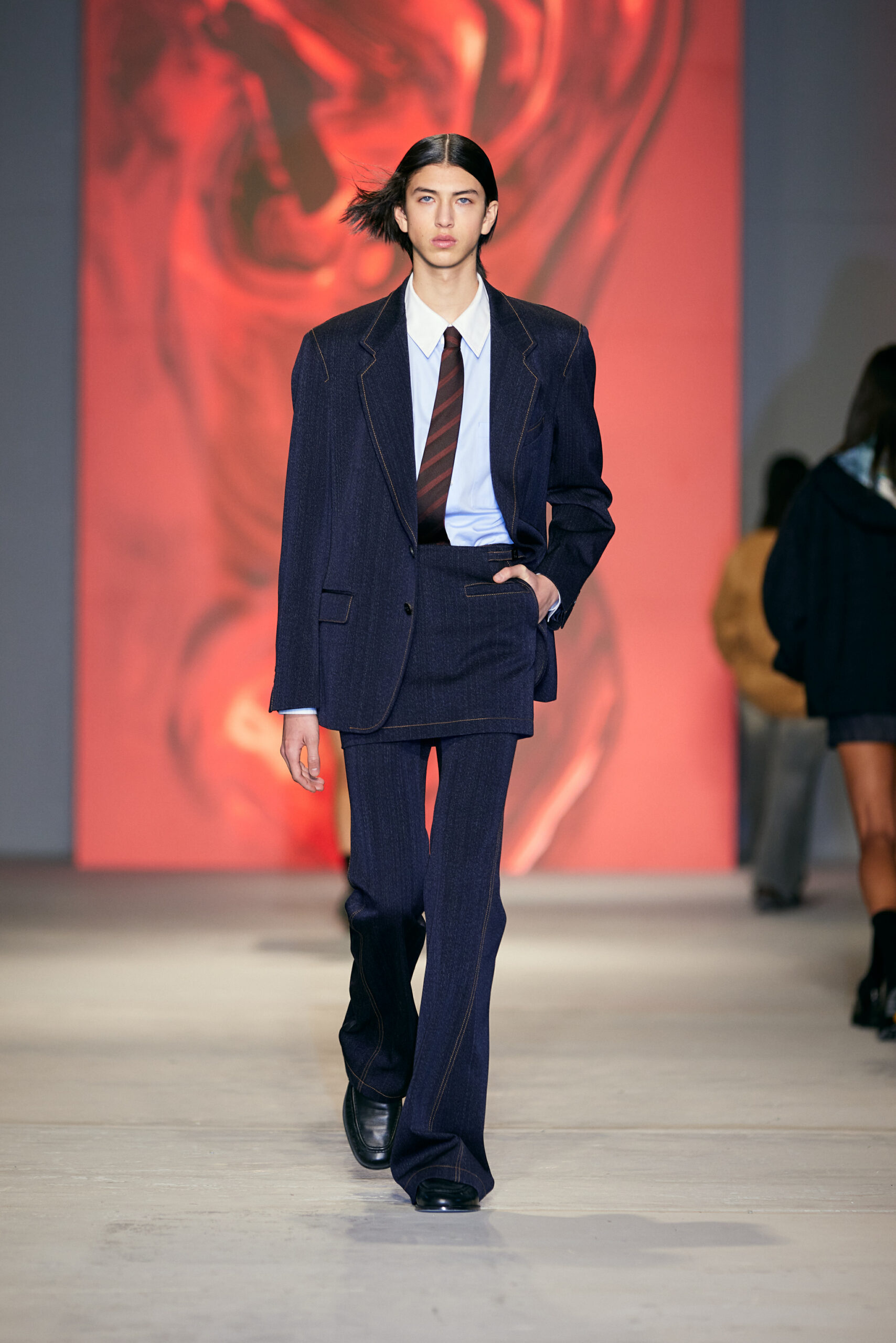 La collection rend hommage aux divers habitants de Séoul, des hommes d’affaires dans leurs manteaux allongés et costumes relax à la bourgeoisie en ensemble jupe-bouclé, sans oublier les écoliers et les scouts dans leur tenue préppy et sportswear. L’esthétique utilitaire des travailleurs de la route de Séoul se mêle aux codes de la culture jeune de la ville, créant un mélange unique qui reflète l’esprit de Séoul.