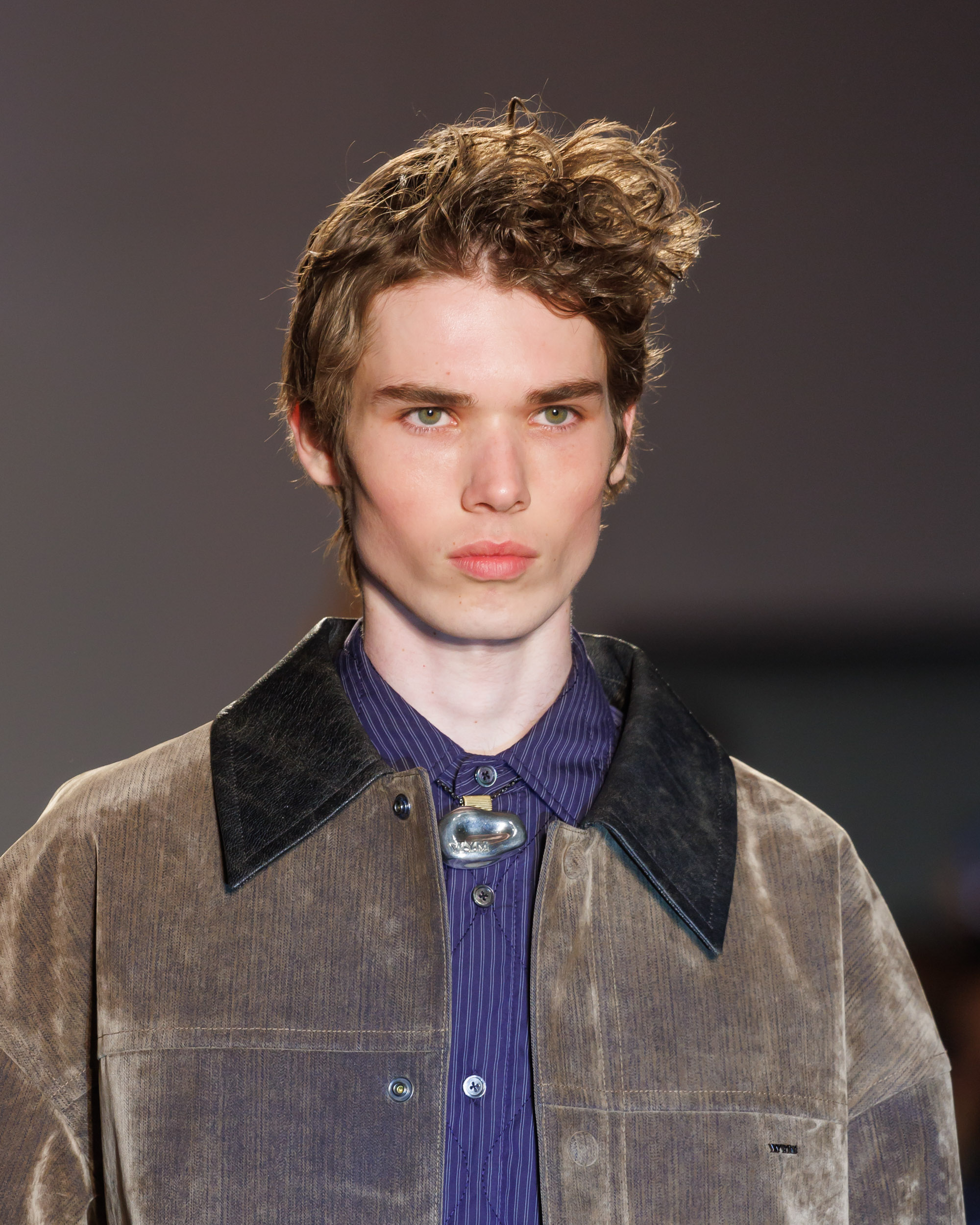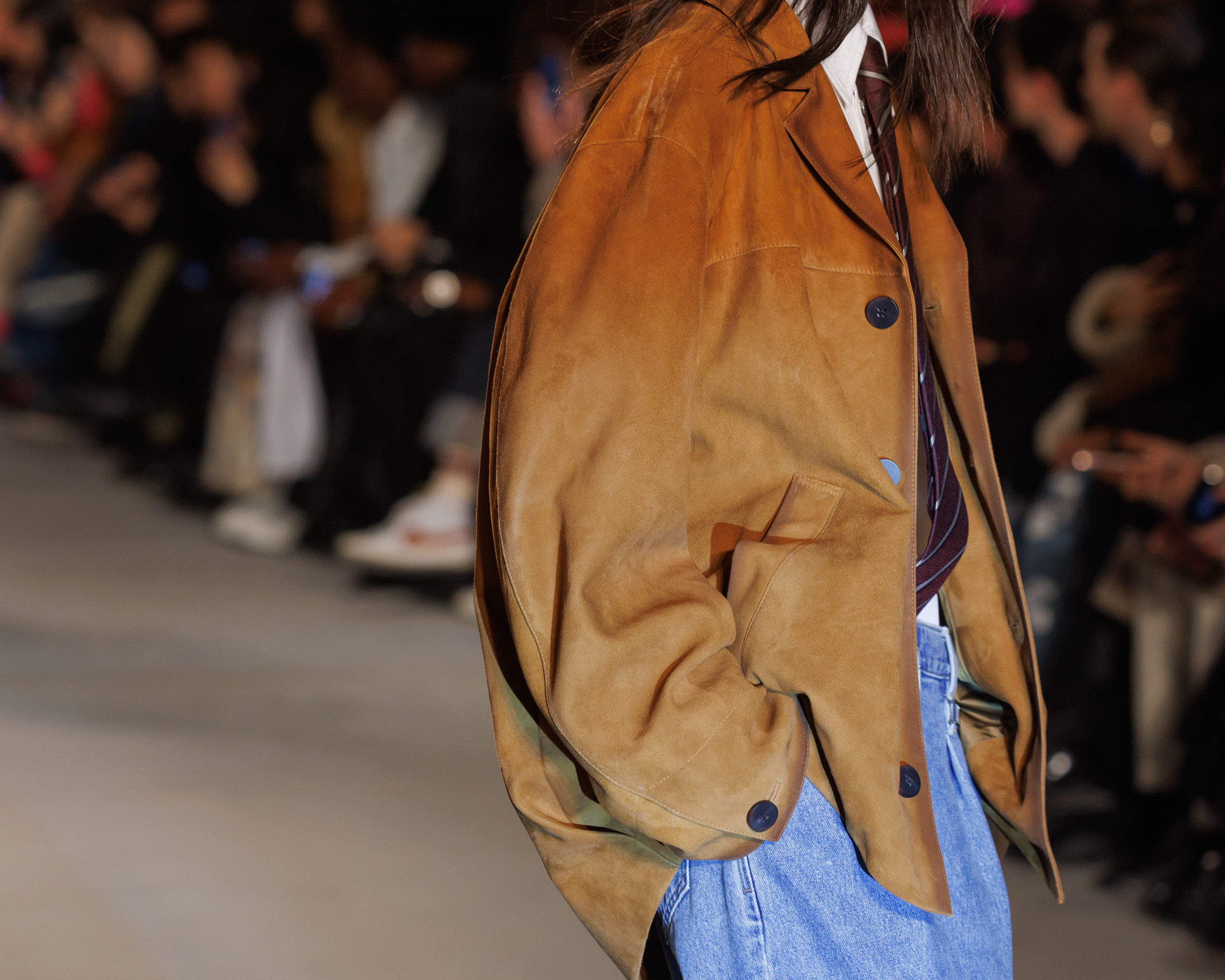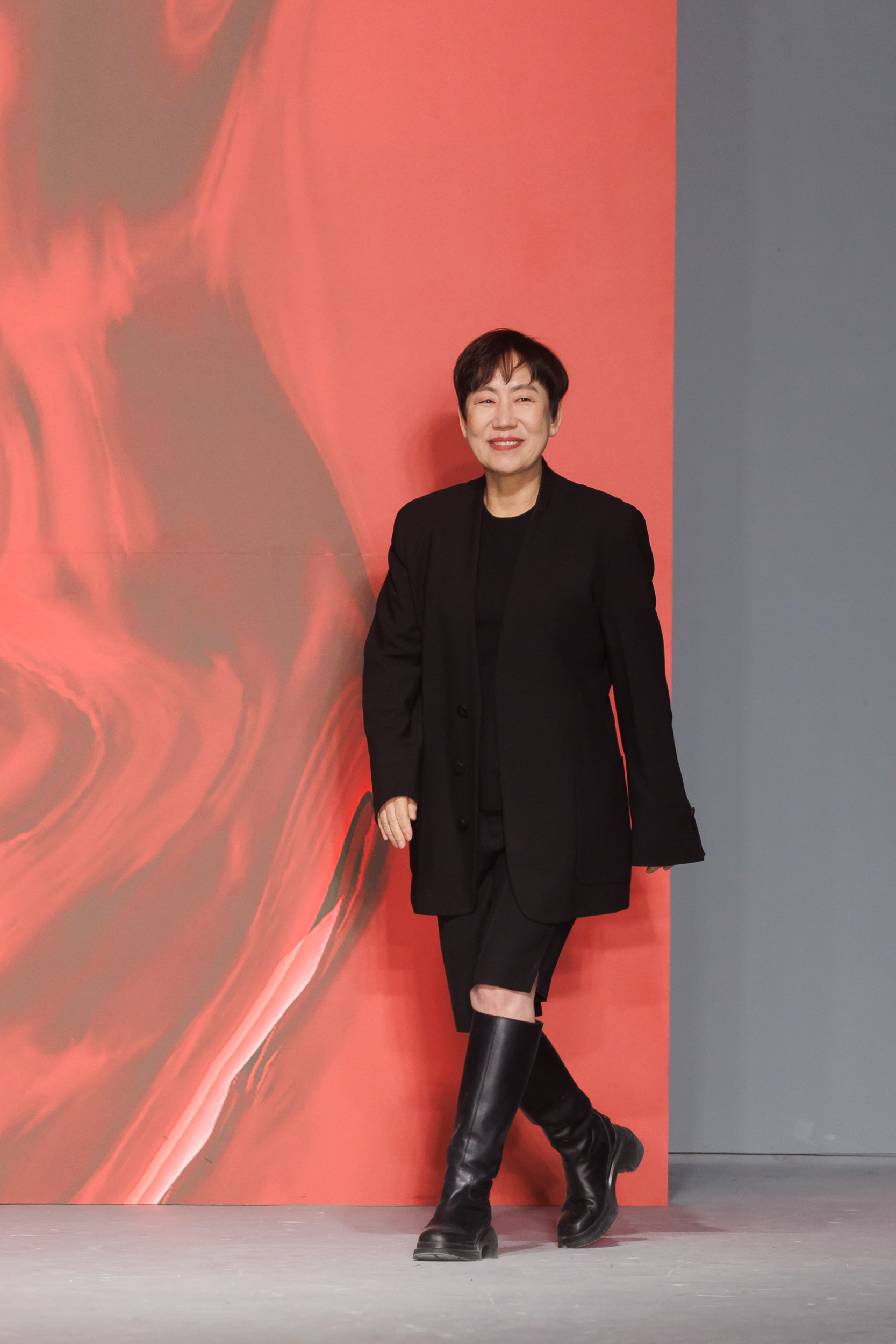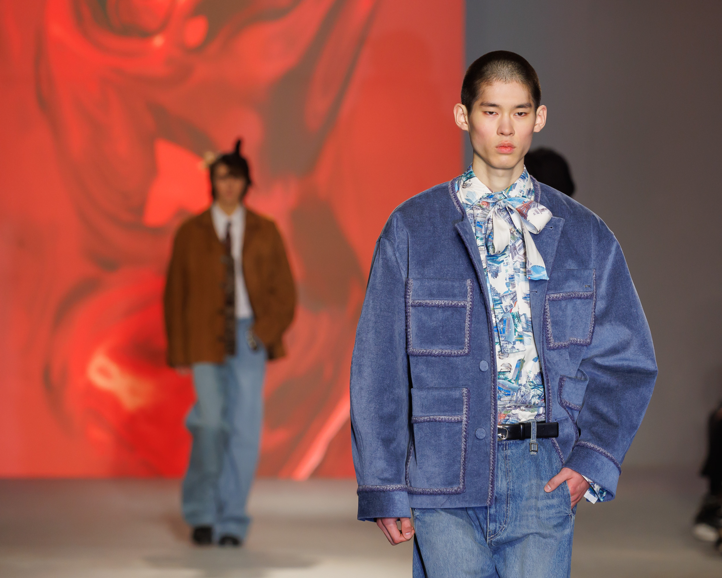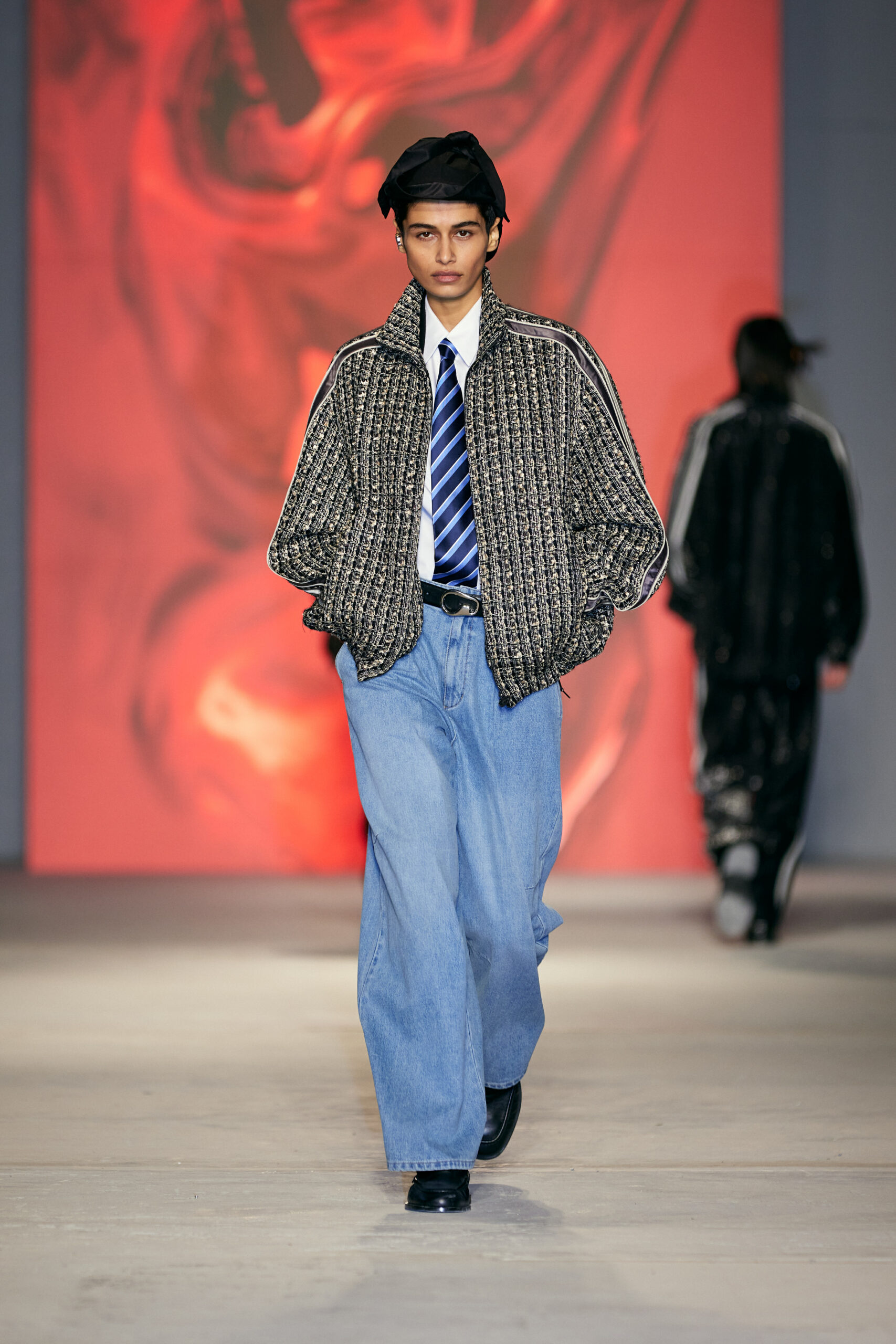 Les nuances automnales de la collection s’inspirent des couleurs naturelles de Séoul, éclairées par des imprimés chaotiques de la ville et des éclats de paillettes sur le sportswear et le denim. Les accessoires, comme les bijoux sculptés en forme d’oreilles, rendent hommage à la philosophie bouddhiste, symbolisant la sagesse et la compassion.