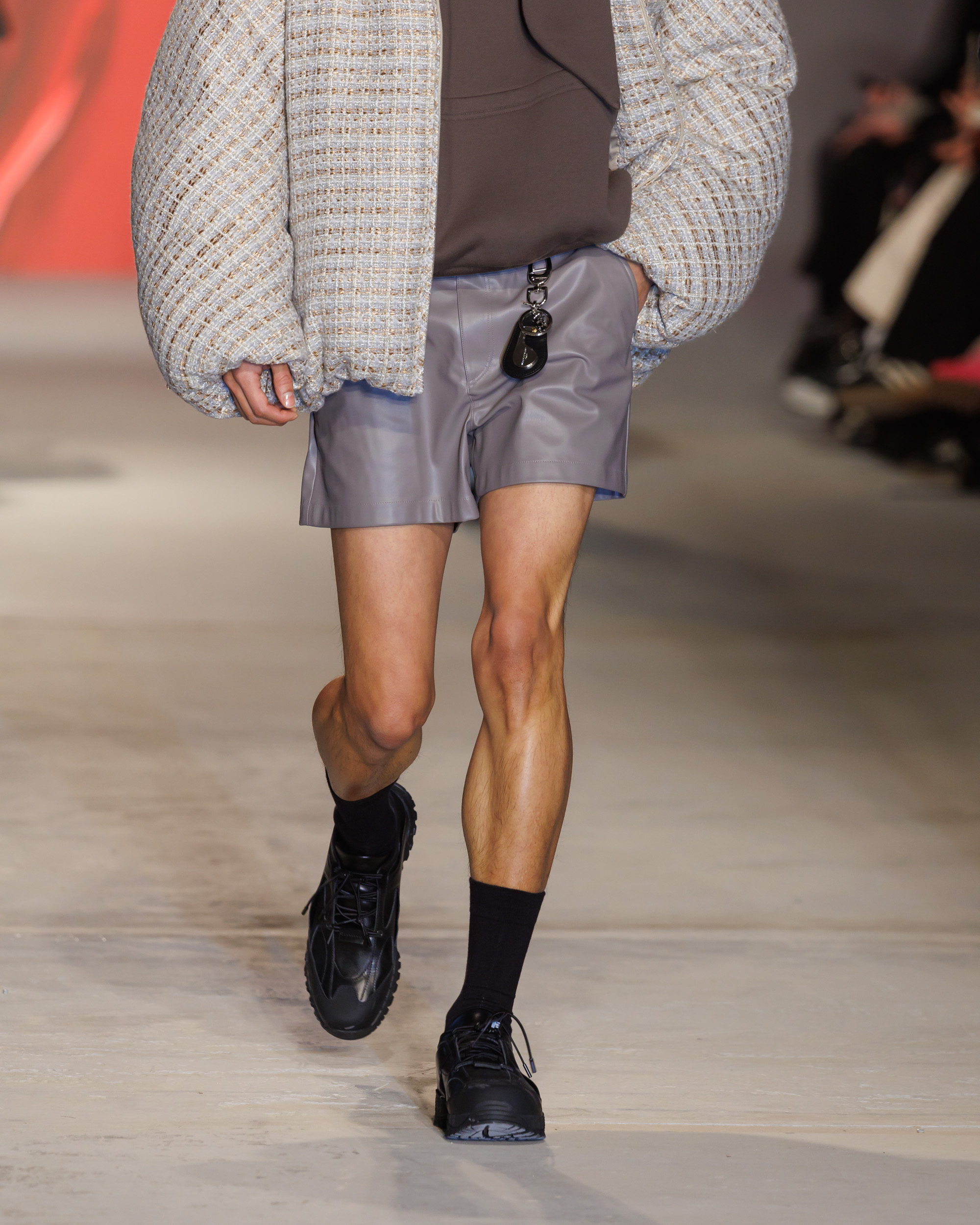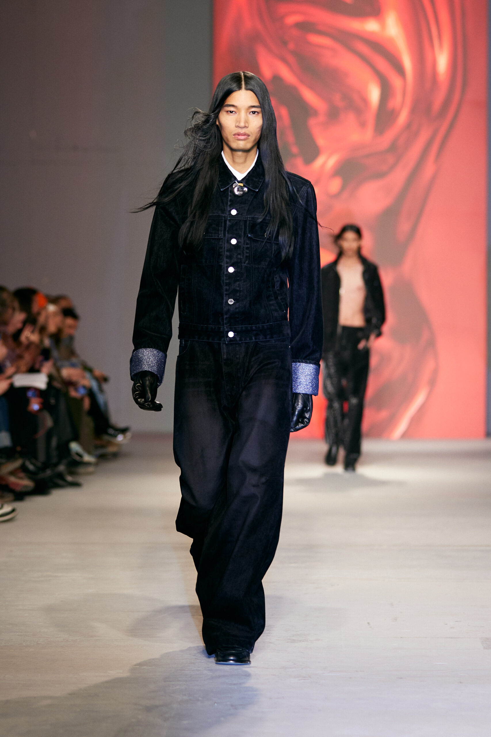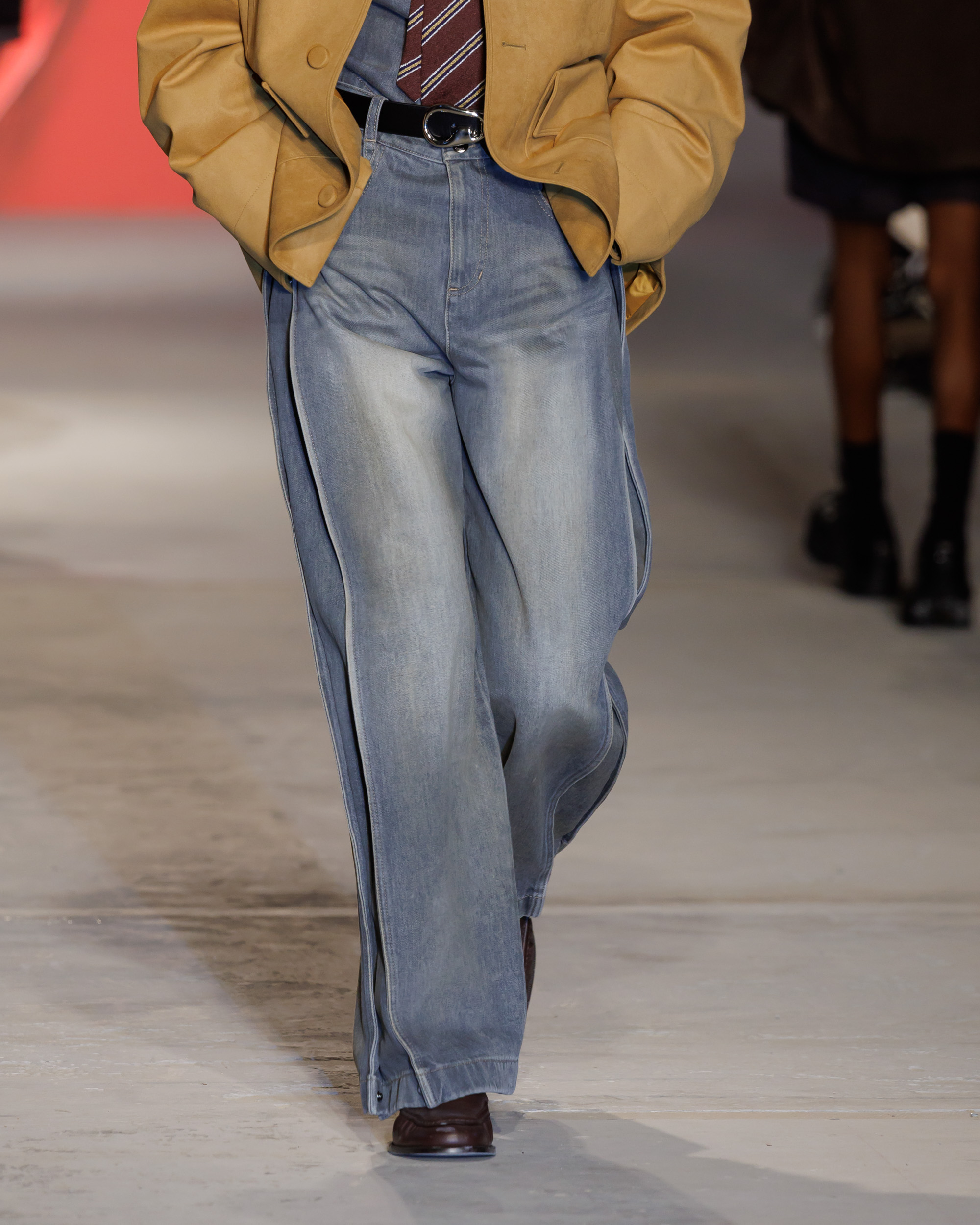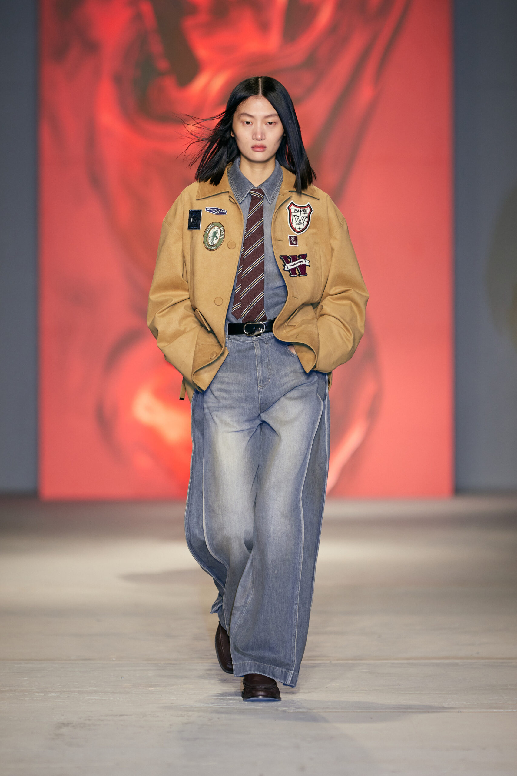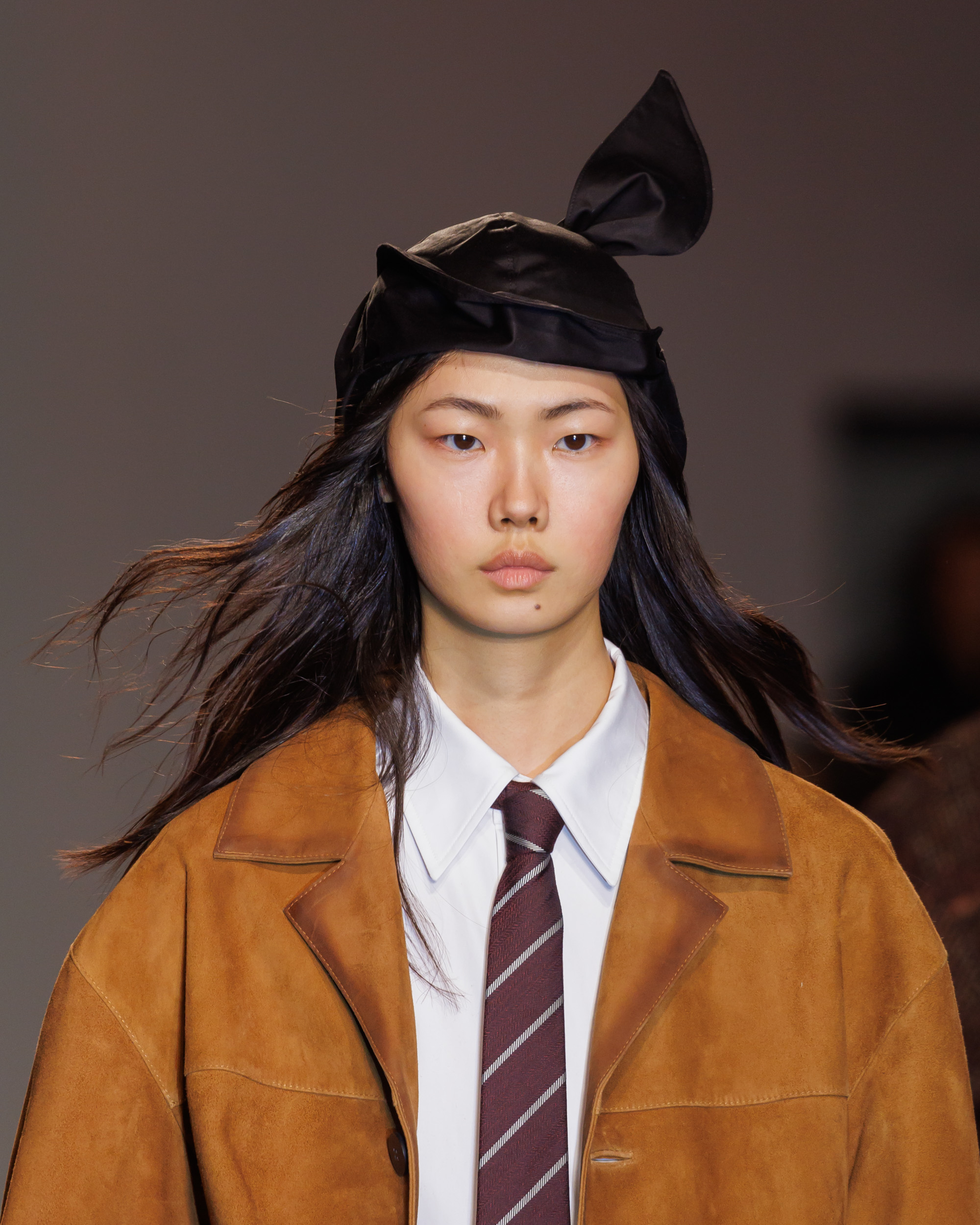 Les nuances automnales de la collection s’inspirent des couleurs naturelles de Séoul, éclairées par des imprimés chaotiques de la ville et des éclats de paillettes sur le sportswear et le denim. Les accessoires, comme les bijoux sculptés en forme d’oreilles, rendent hommage à la philosophie bouddhiste, symbolisant la sagesse et la compassion.